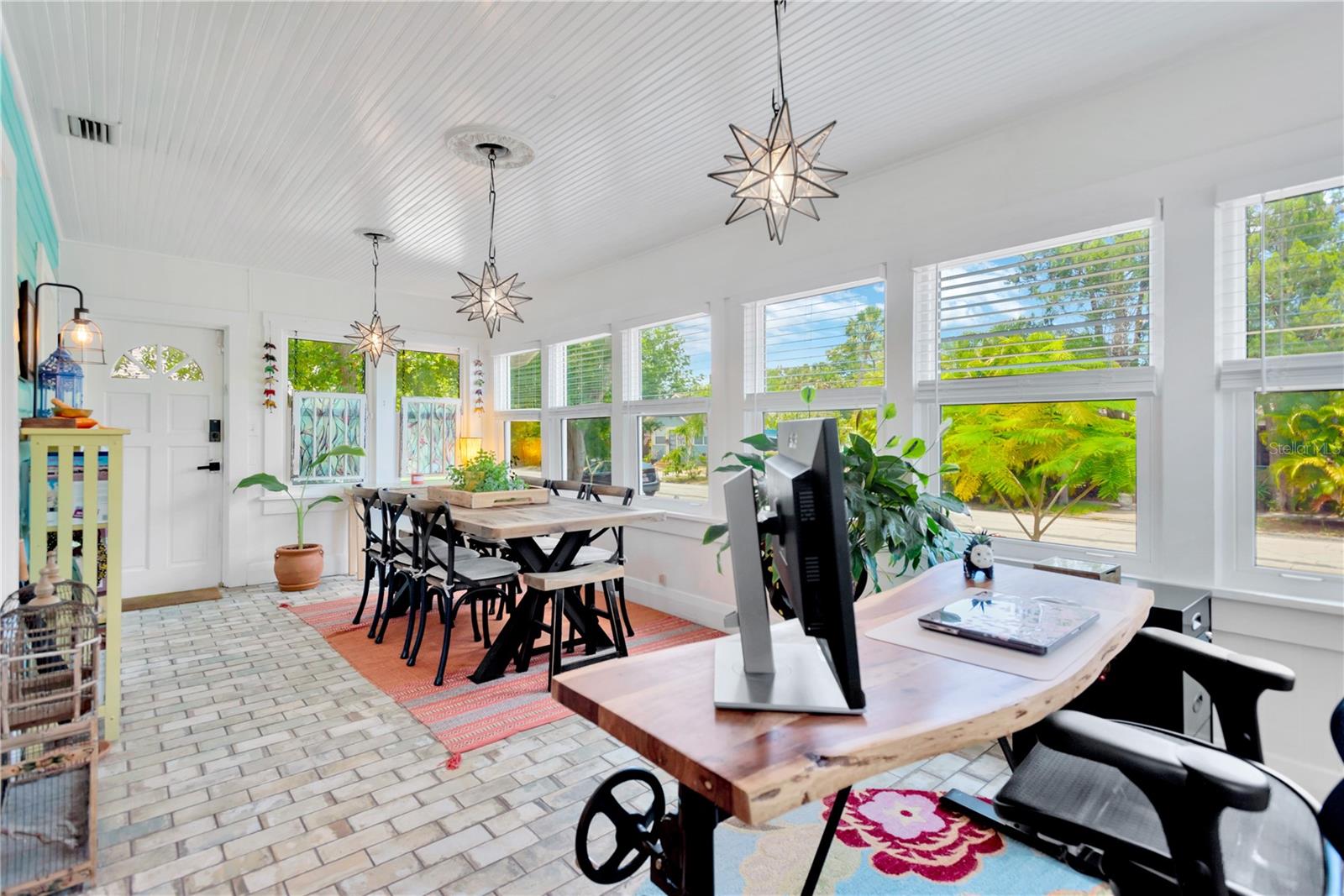 With NO HURRICANE DAMAGE, this exceptional property features TWO SEPARATE HOMES on a spacious corner lot, ideal for comfortable living and investment potential. Situated at a secure 49-foot elevation in Flood Zone X, it lies within a NON-EVACUATION ZONE for added peace of mind. Both homes boast a one-year-old roof with hurricane straps and clips, ensuring durability and significant insurance savings. Hurricane windows throughout provide an extra layer of protection, making this the perfect safe haven for your family. Don't miss your chance to own this unique gem! The main house radiates warmth with its bright and sunny 3-bedroom, 2-bathroom layout, featuring newer A/C units and tankless water heater for endless hot water. Original hardwood floors add charm, while the luxurious master suite boasts an extra-large walk-in closet. The spacious kitchen is a chef's dream, showcasing granite counters, updated stainless steel appliances, a stove with a double oven and six-burner gas range, two pantries, and abundant storage space. An enclosed, air-conditioned sunroom offers versatility as an office, bonus room, or game room—the possibilities are endless! The kitchen opens to a large dining room, with a working gas fireplace and French doors leading to a great outdoor space, complete with a fenced yard, lighted paver pathway, and charming café lights. Additional amenities include indoor laundry with a full-size washer and dryer, off-street parking for up to three vehicles, a storage shed, and an alarm system with a Ring doorbell for added security. The second house is completely updated, separately metered, and features a private fenced patio, opening a world of possibilities. This charming 1-bedroom, 1-bathroom home includes a full kitchen, indoor laundry, and a spacious layout. Whether you choose to use it as a rental for significant monthly income, guest accommodations, an office, a studio, or a mother-in-law suite, the options are endless. You'll love coming home to this charming tree-lined street in the historic Woodlawn neighborhood. You'll be just steps - or a quick pedal - from some of St. Pete's top attractions, including Tropicana Field, Sunken Gardens, Crescent Lake Park, downtown, and the waterfront. And enjoy easy access to nearby Trader Joe's, Whole Foods, cafes, shops, organic markets, breweries, restaurants, and galleries. A dedicated bike corridor is just yards away, connecting you with downtown, the Pinellas Trail, or the beach trolley. Exploring all the city offers will be fun and easy. Don't miss this rare opportunity to own a piece of paradise. Schedule your showing, and start living the Florida lifestyle you've always dreamed of!