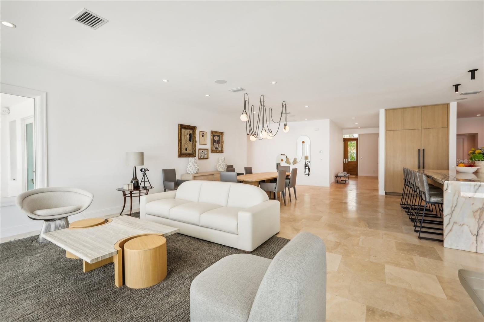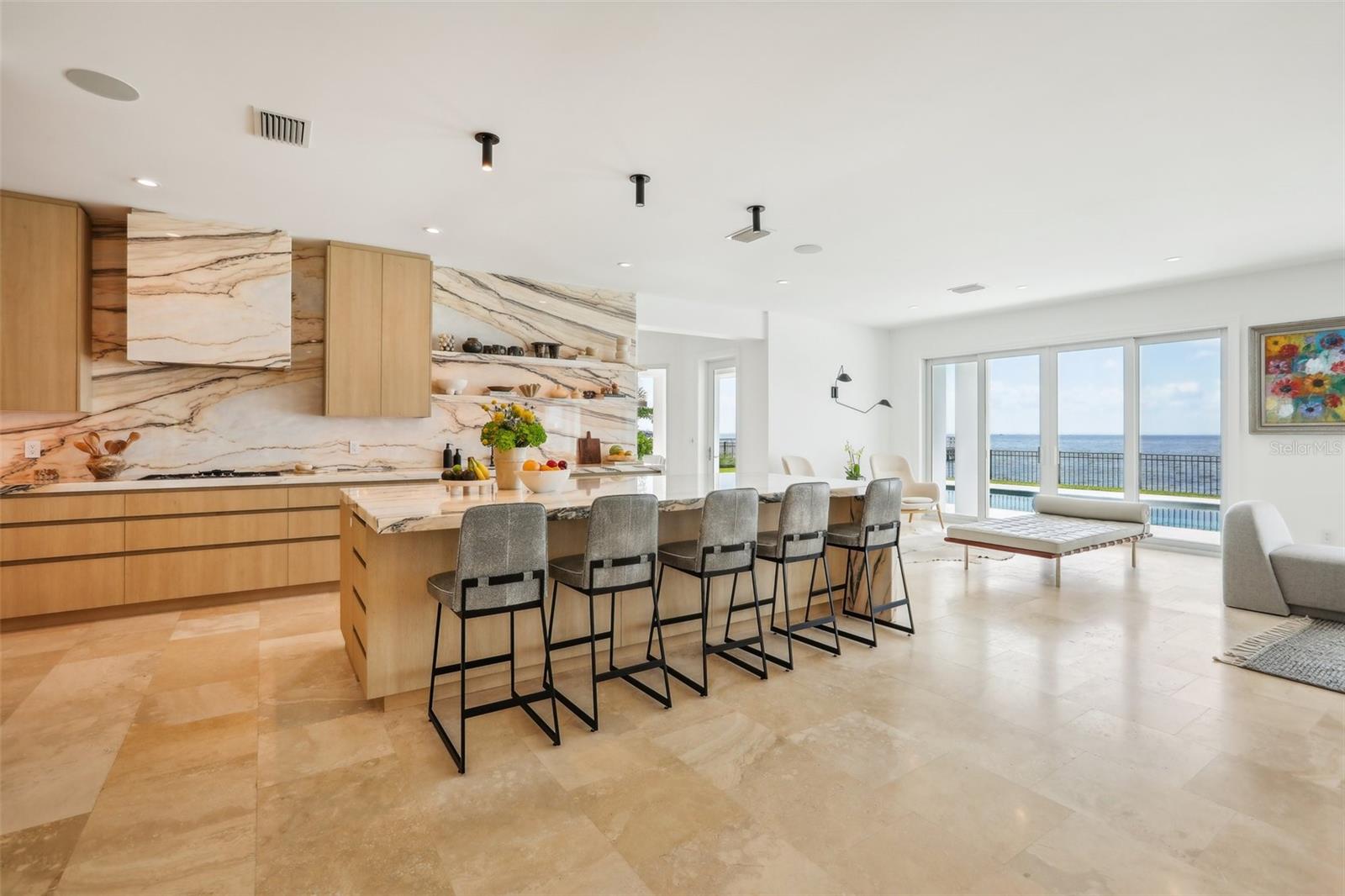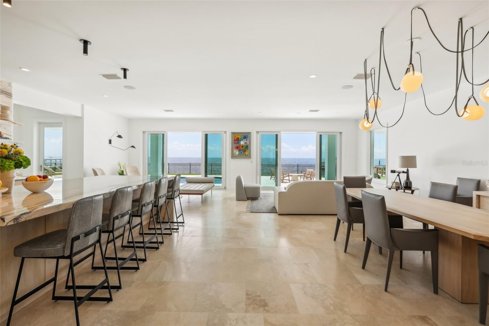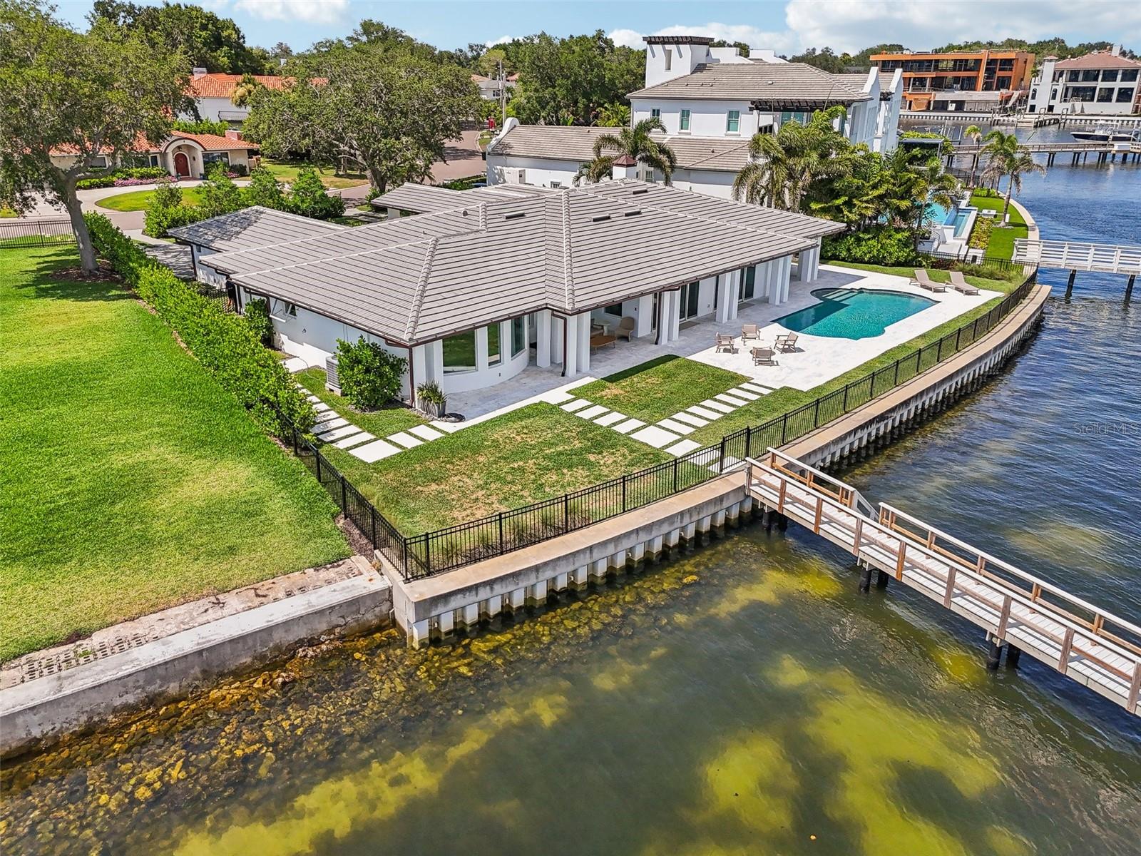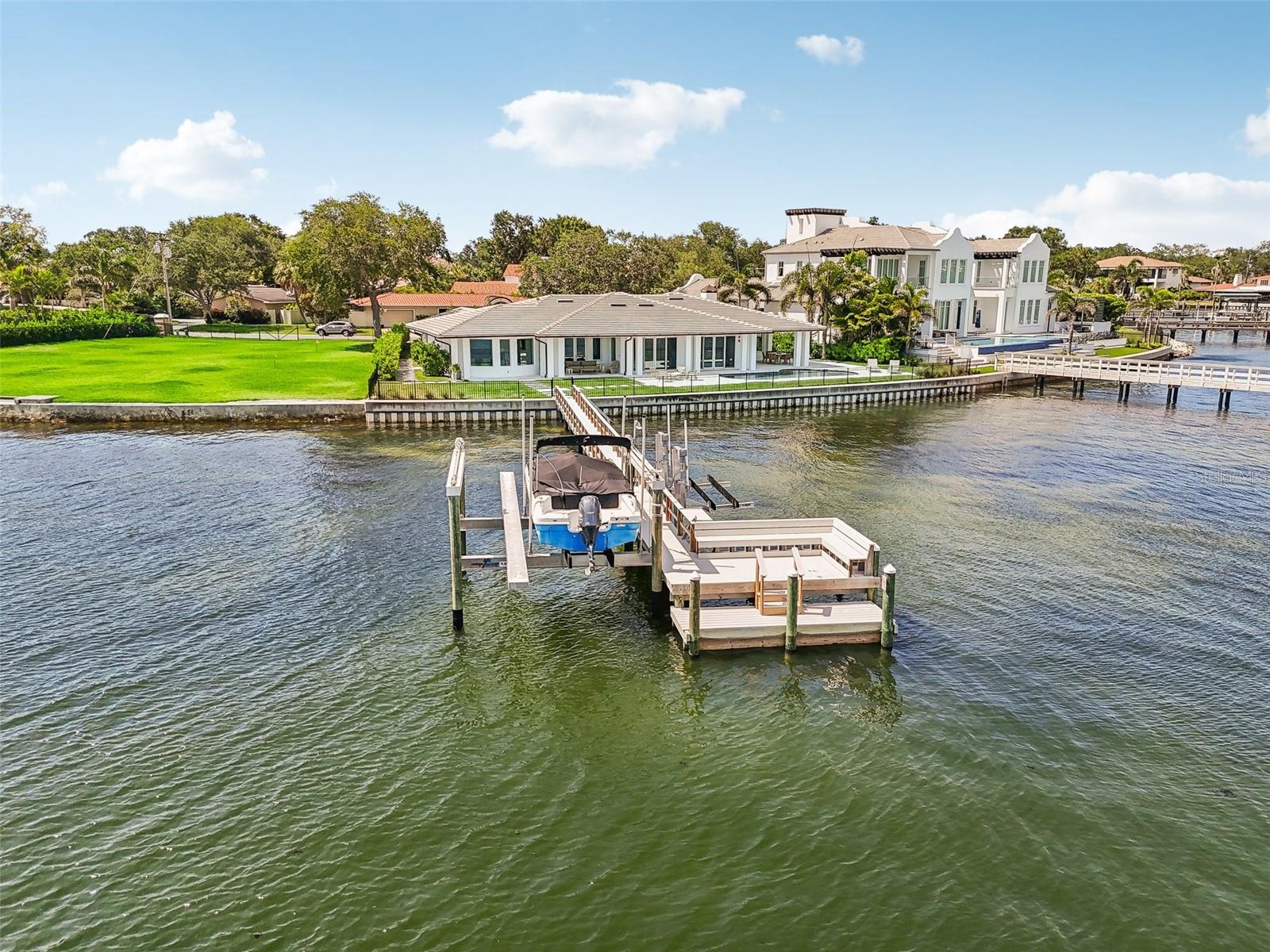 Nestled on the prestigious Snell Isle, this waterfront oasis offers an unparalleled vista of St. Pete's dynamic skyline, setting the stage for an extraordinary lifestyle. Immerse yourself in the unparalleled craftsmanship and design of this resort-style, One Story Contemporary home, where every detail speaks to a commitment to luxury living. Inspired by the timeless elegance of Palm Beach estates, this residence seamlessly blends contemporary materials with exceptional design, creating a sanctuary of sophistication and style. From the moment you step inside this 4-bedroom, 4.5-bath, 3-car garage home, the panoramic views of the downtown skyline and Tampa Bay beckon, framing the perfect backdrop for gatherings and relaxation alike. Enjoy the ultimate in outdoor living with a saltwater heated pool overlooking the tranquil waters of Tampa Bay, complemented by over 130 feet of water frontage complete with a new dock (2022), 24,000 lb. and 7,000 lb. lift with great deep water boating access. Whether hosting soirées or simply enjoying quiet moments by the water, this home offers the perfect balance of entertainment and serenity. Thoughtfully remodeled to maximize its natural surroundings, this home boasts an open, flowing floor plan that seamlessly integrates indoor and outdoor living spaces. Organic materials and finishes, including stone floors and bleached walnut custom cabinetry, imbue every corner with a sense of tranquility and warmth. No detail has been overlooked in the creation of this exceptional residence, from Michael Bright’s custom cabinetry to the copper gutters, hurricane impact-rated windows, and new concrete tile roof. The kitchen is a chef's dream, featuring Rehau mission maple cabinets, polished Evora marble, and top-of-the-line Miele pure-line appliances, including an espresso machine, steam oven, and convection oven. Additional appliances include a Liebherr fridge, freezer, undercounter fridge, Miele undercounter wine fridge, and dishwasher. The kitchen is complemented by a Brizo kitchen faucet and gas cooktop. The butler's laundry also boasts Rehau Mission maple cabinets and polished Platinum marble. Meticulously landscaped hedges offer privacy and natural beauty, while the meticulously designed driveways and marble pathways underscore the attention to detail that defines this home. Beyond its stunning aesthetics and unparalleled waterfront views, this property boasts a prime location just minutes from downtown St. Pete. Walk or bike to restaurants, galleries, and coffee shops, or take a short drive to world-renowned beaches and Tampa International Airport, ensuring that every convenience is within reach. Discover the epitome of luxury waterfront living on Snell Isle, where impeccable design and breathtaking views converge to create a home that transcends the ordinary and embraces the extraordinary. Give us a call for your private viewing today.