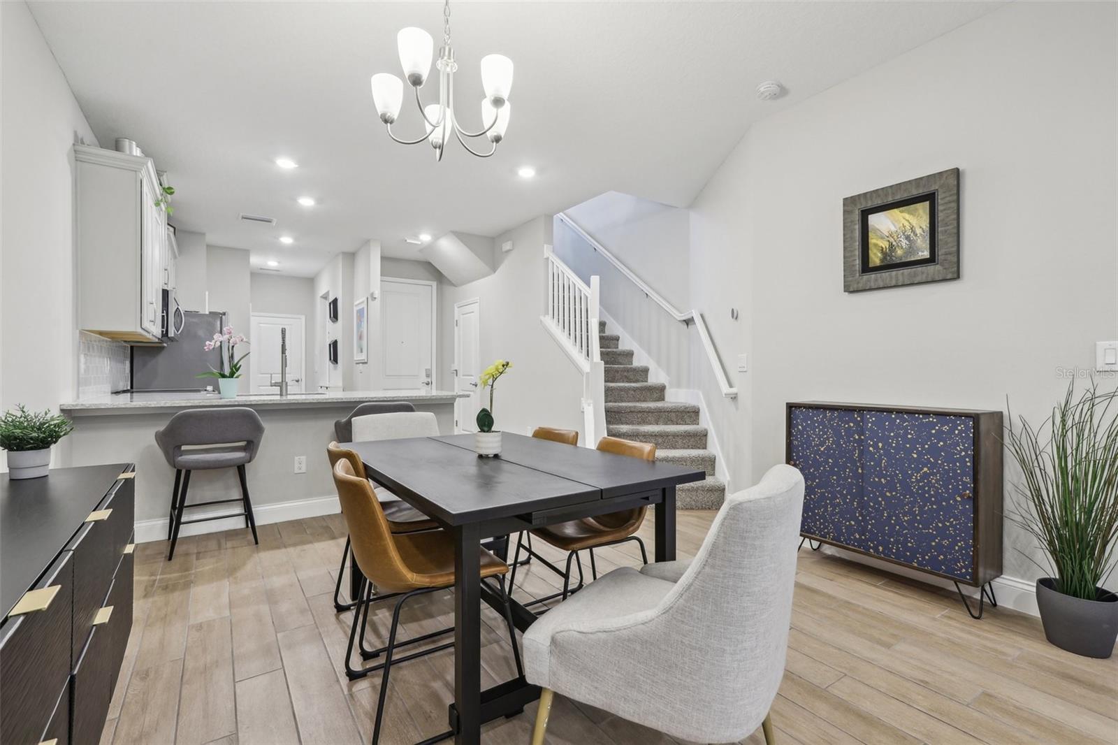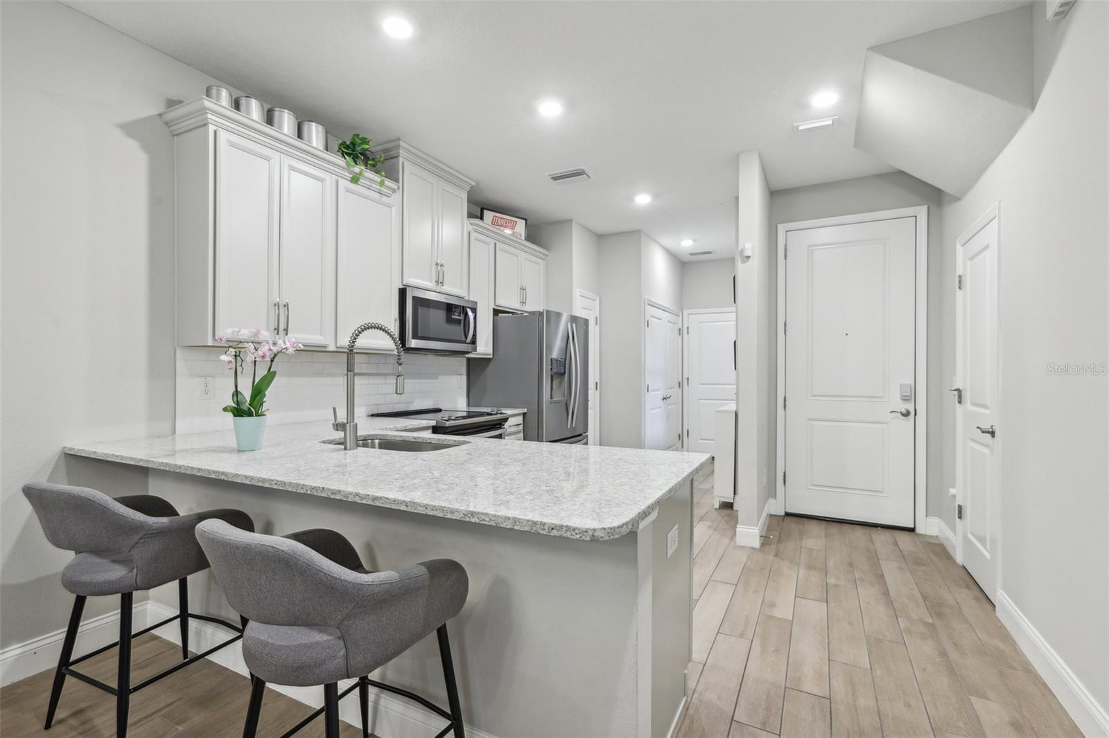 Welcome to the newly constructed, centrally located, gated community of Heritage Oaks in St. Petersburg! This stunning, Energy-Star-certified townhouse is a remarkable opportunity for buyers seeking modern updates and comfort in a serene setting. Minutes from I-275, close to downtown and the beaches, this is the perfect community for anyone who is looking to enjoy all that St. Pete has to offer. Incredibly spacious, this townhouse was built in 2021 with many upgraded features and has 3 bedrooms, 2.5 bathrooms, a 2-car garage, and over 1,700 square feet. As you enter the foyer, you’ll be greeted by high ceilings with an open space that flows from the kitchen, dining, and living room equipped with surround sound and a Yamaha receiver, that is perfect for entertaining. The kitchen features NEW appliances, plenty of pantry space, a large quartz kitchen island, and laundry right off of the kitchen. The garage has a special epoxy-coated garage floor. One of the unique features of this townhome is that you have a large first-floor primary bedroom and an en-suite bathroom with dual sinks. Upstairs, you’ll find a den perfectly juxtaposed between the second and third bedrooms for an ideal split floor plan. This bonus room would make a great office space or family room. Hurricane shutters are included for low-maintenance living! In this pet-friendly community, you can walk right outside of your screened-in lanai to a beautiful green space outside. You’re also conveniently located right next to the clubhouse, pool, and guest parking. Don’t miss your opportunity, schedule your showing today!
