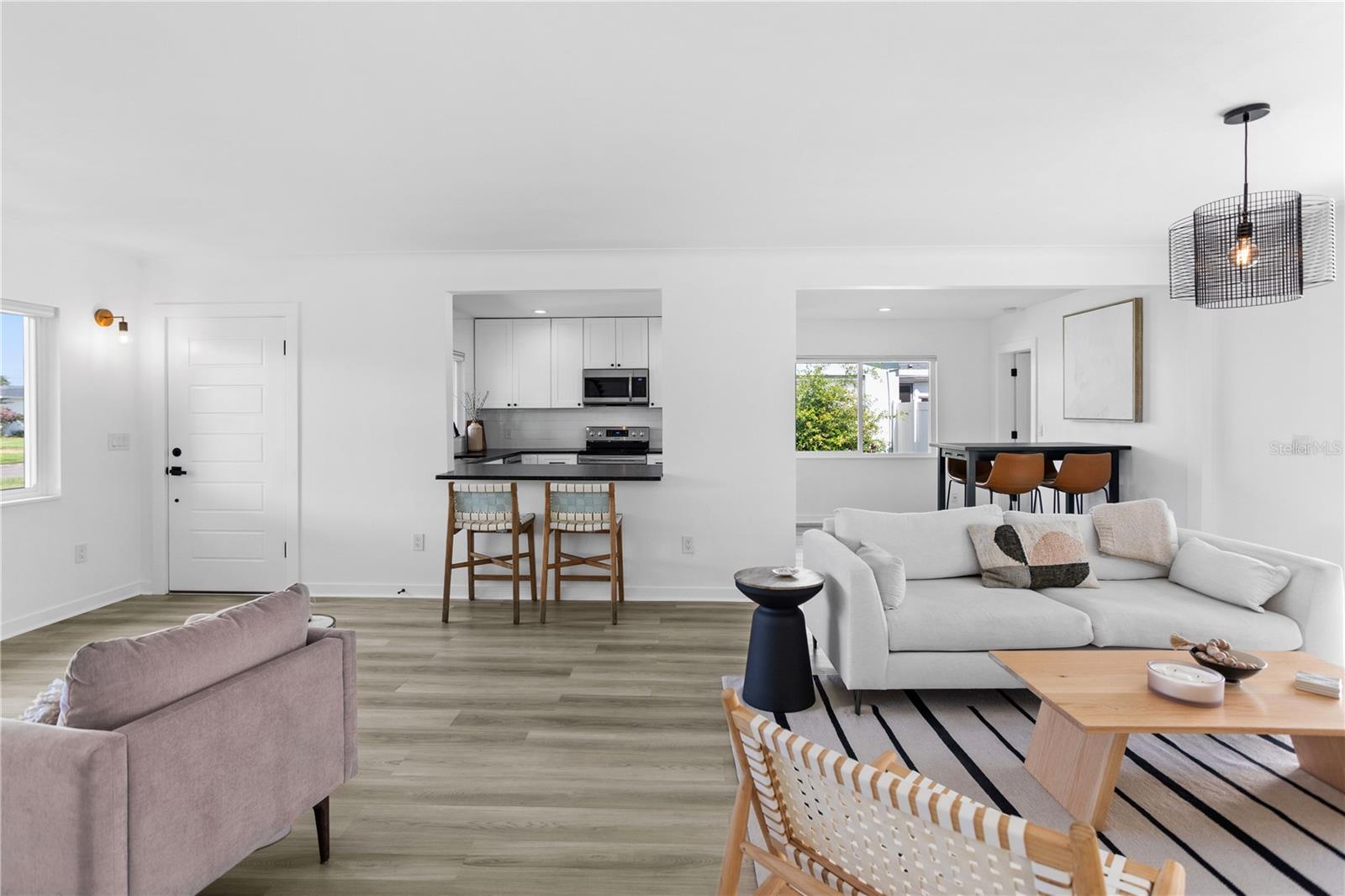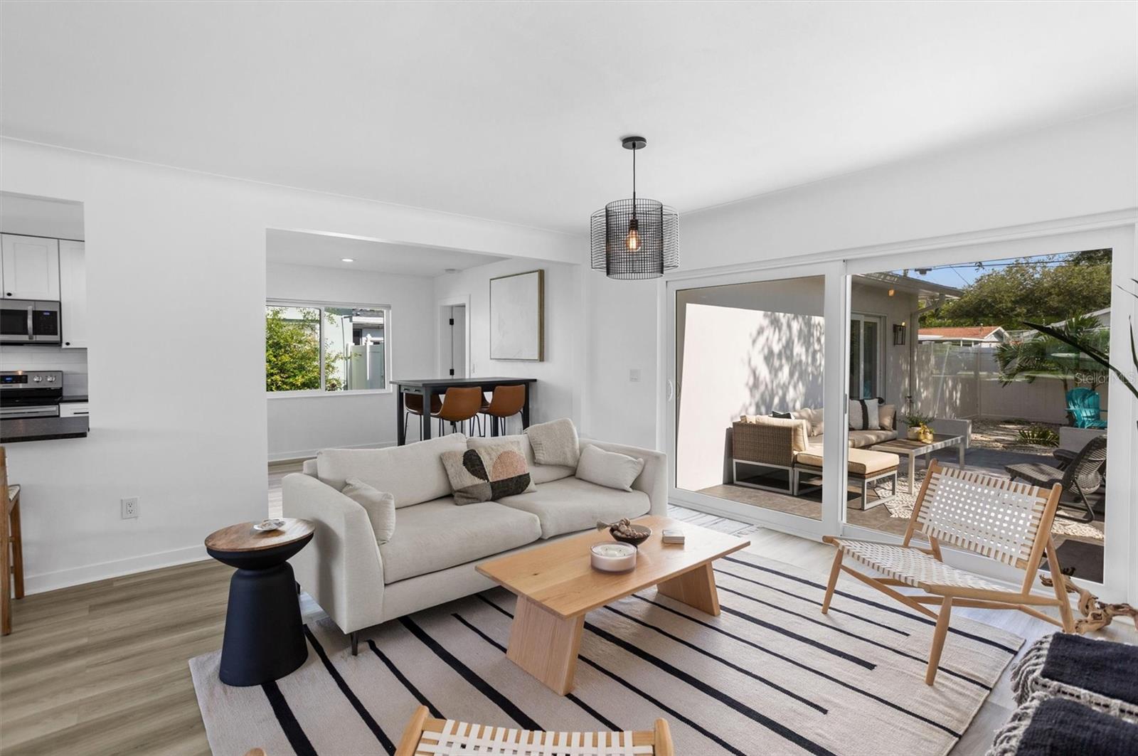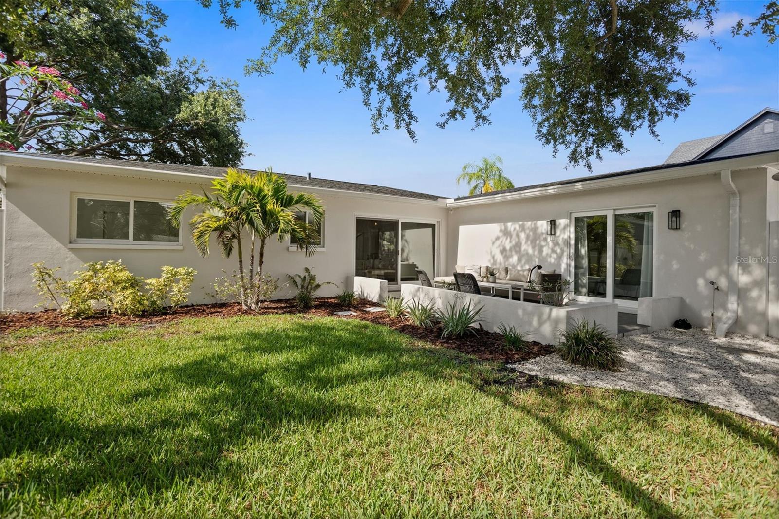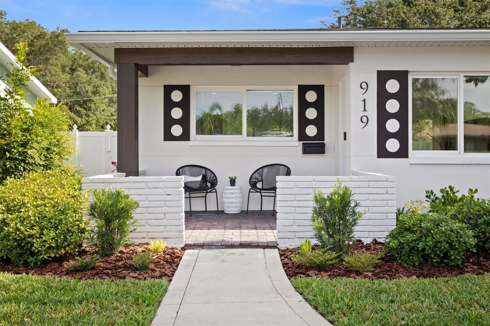 Welcome to the desirable Snell Shores neighborhood. Recently remodeled in 2022, this 3 bedroom, 2 bath has been meticulously maintained. The beautifully landscaped front yard with new circular driveway and charming front porch provide a welcome entrance into this fully updated home. Home has an open floor plan with a new kitchen featuring leathered granite counters and new stainless appliances. The light filled living room opens to a tiled patio and a large fenced backyard perfect for entertaining. Split plan layout with 2 bedrooms and a bathroom located on the east wing of the home. The primary bedroom is a private oasis leading out to the patio and backyard. The ensuite has a dual sink vanity, glass enclosed walk-in shower and an energy efficient combo washer/dryer. New roof, HVAC, and water heater in 2021 & 2022. There is plenty of room for a pool in the backyard. Alley access parking pad for 2 cars and plenty of space for additional cars, boat, etc. Located 3 blocks from Crisp Park and boat ramp, 3 miles to downtown and 11 miles to the beaches. This home is a must see - schedule a showing today!