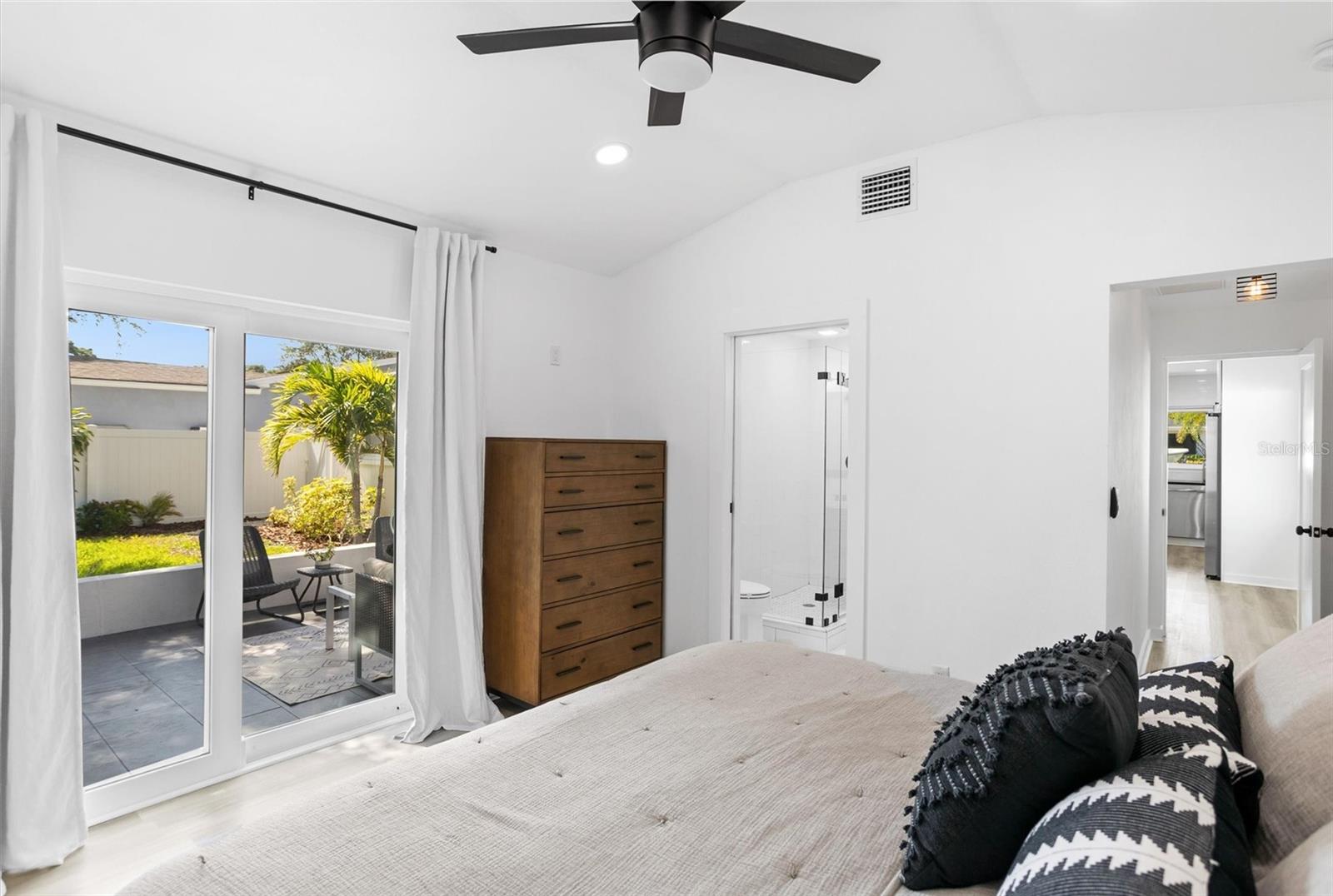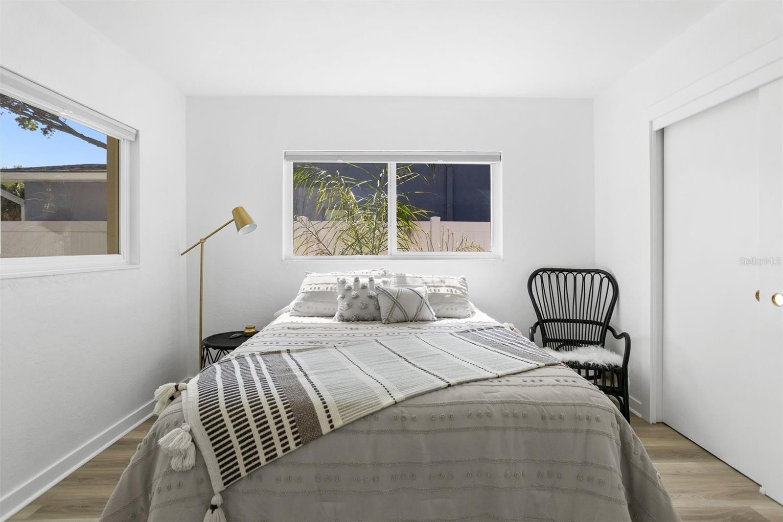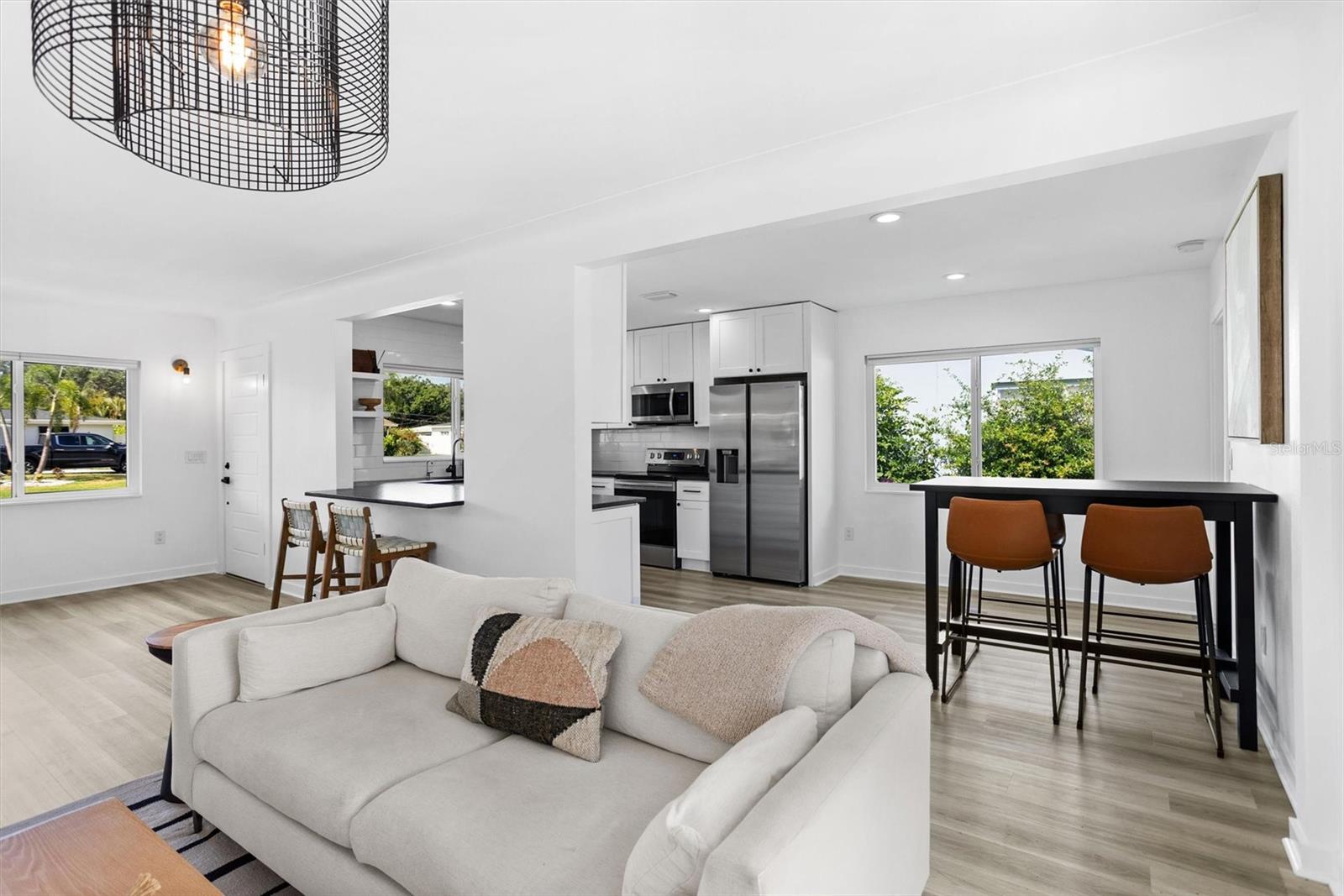 Welcome to the desirable Snell Shores neighborhood. Recently remodeled in 2022, this 3 bedroom, 2 bath has been meticulously maintained. The beautifully landscaped front yard with new circular driveway and charming front porch provide a welcome entrance into this fully updated home. Home has an open floor plan with a new kitchen featuring leathered granite counters and new stainless appliances. The light filled living room opens to a tiled patio and a large fenced backyard perfect for entertaining. Split plan layout with 2 bedrooms and a bathroom located on the east wing of the home. The primary bedroom is a private oasis leading out to the patio and backyard. The ensuite has a dual sink vanity, glass enclosed walk-in shower and an energy efficient combo washer/dryer. New roof, HVAC, and water heater in 2021 & 2022. There is plenty of room for a pool in the backyard. Alley access parking pad for 2 cars and plenty of space for additional cars, boat, etc. Located 3 blocks from Crisp Park and boat ramp, 3 miles to downtown and 11 miles to the beaches. This home is a must see - schedule a showing today!