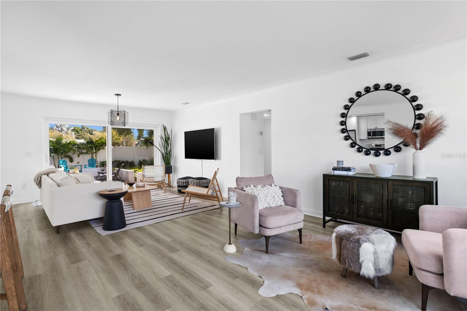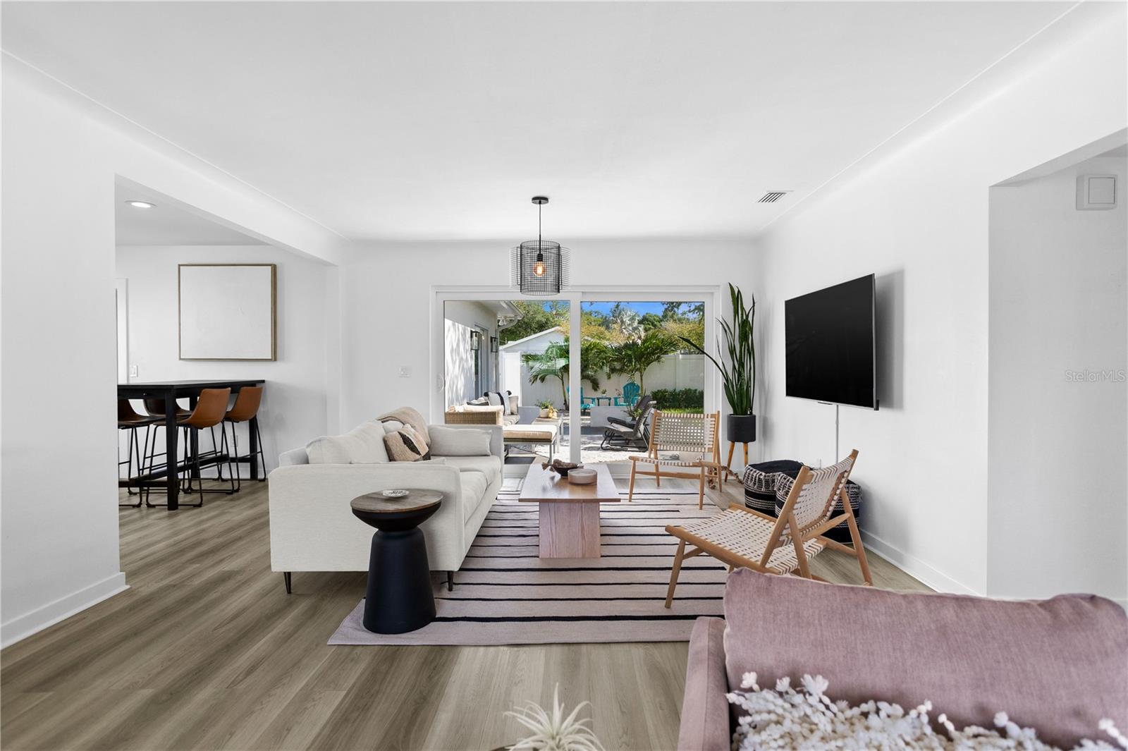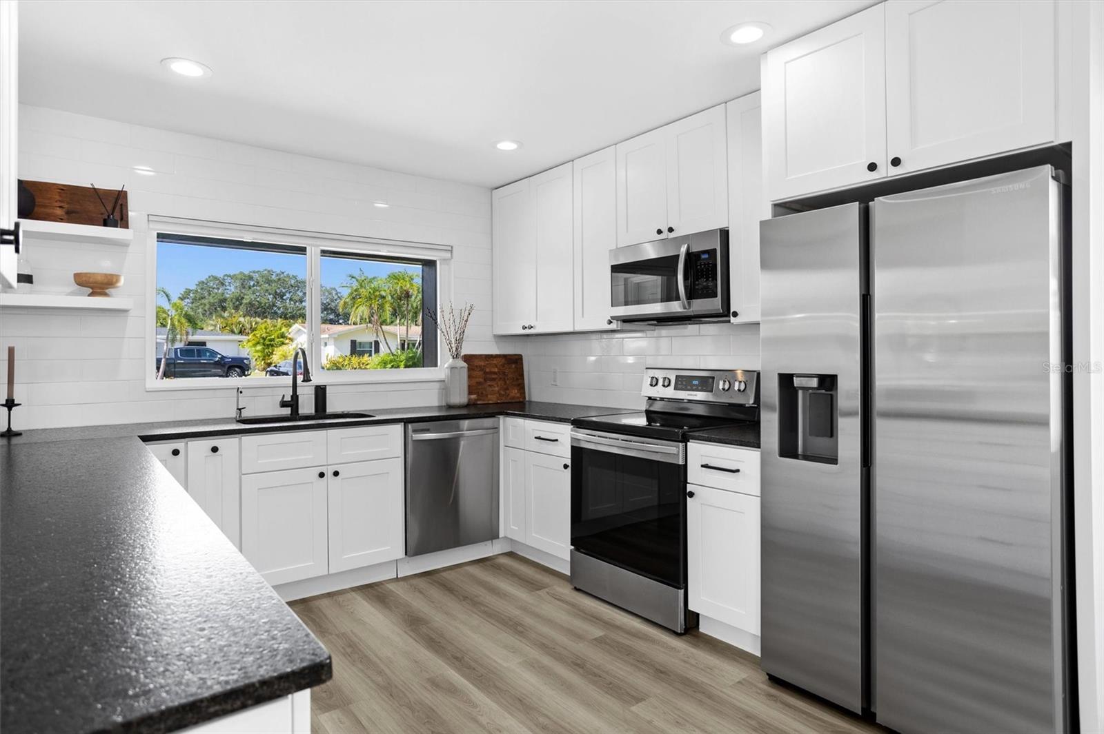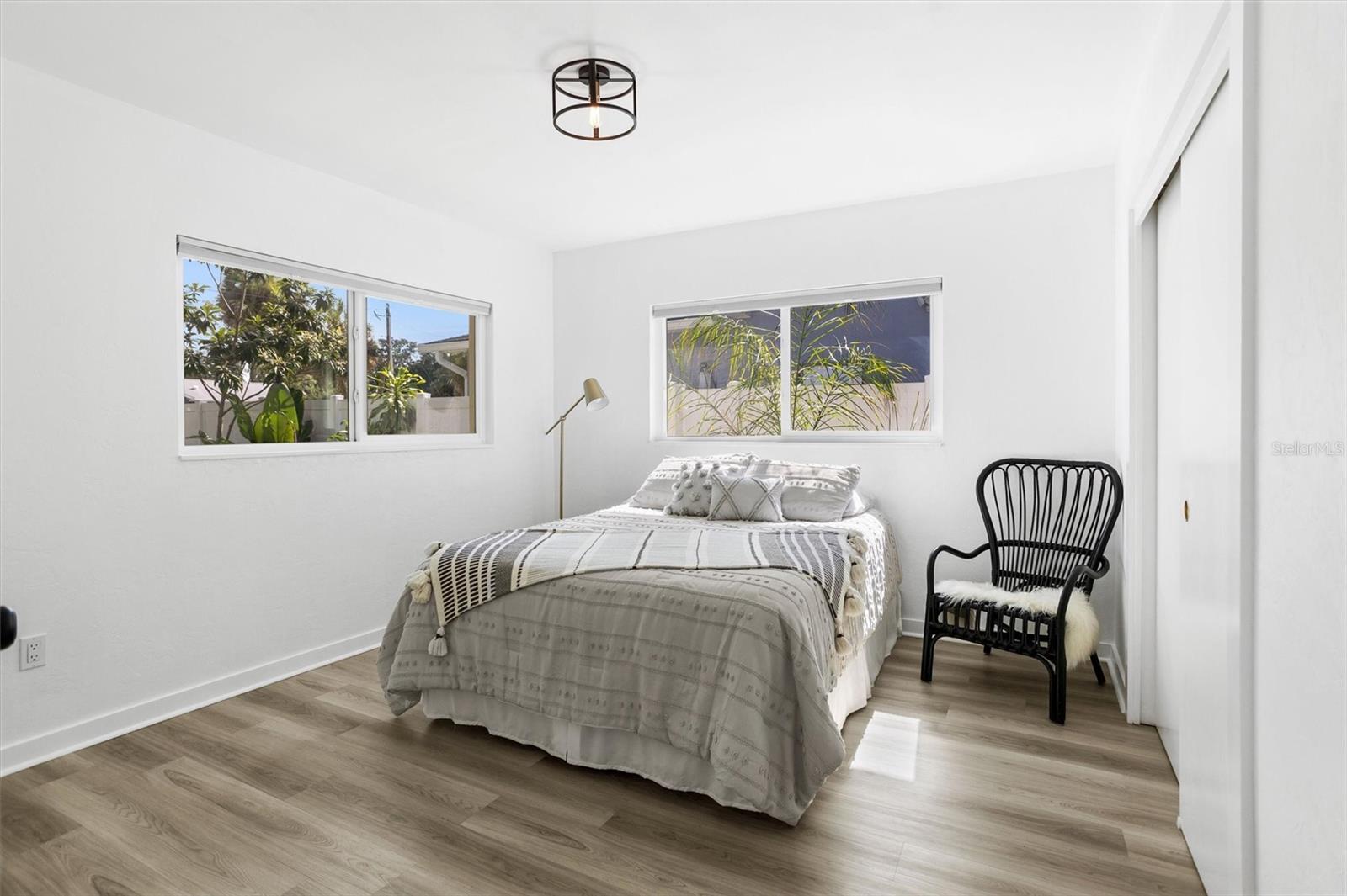 Welcome to the desirable Snell Shores neighborhood. Recently remodeled in 2022, this 3 bedroom, 2 bath has been meticulously maintained. The beautifully landscaped front yard with new circular driveway and charming front porch provide a welcome entrance into this fully updated home. Home has an open floor plan with a new kitchen featuring leathered granite counters and new stainless appliances. The light filled living room opens to a tiled patio and a large fenced backyard perfect for entertaining. Split plan layout with 2 bedrooms and a bathroom located on the east wing of the home. The primary bedroom is a private oasis leading out to the patio and backyard. The ensuite has a dual sink vanity, glass enclosed walk-in shower and an energy efficient combo washer/dryer. New roof, HVAC, and water heater in 2021 & 2022. There is plenty of room for a pool in the backyard. Alley access parking pad for 2 cars and plenty of space for additional cars, boat, etc. Located 3 blocks from Crisp Park and boat ramp, 3 miles to downtown and 11 miles to the beaches. This home is a must see - schedule a showing today!