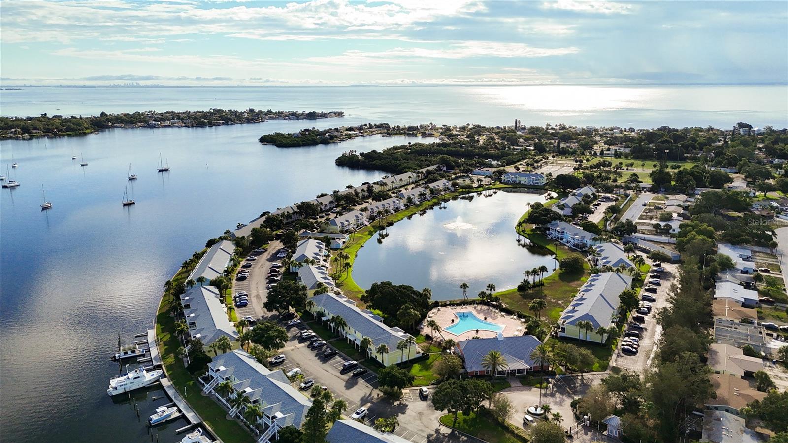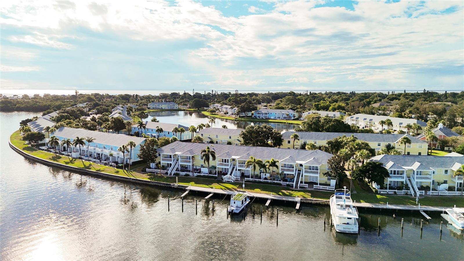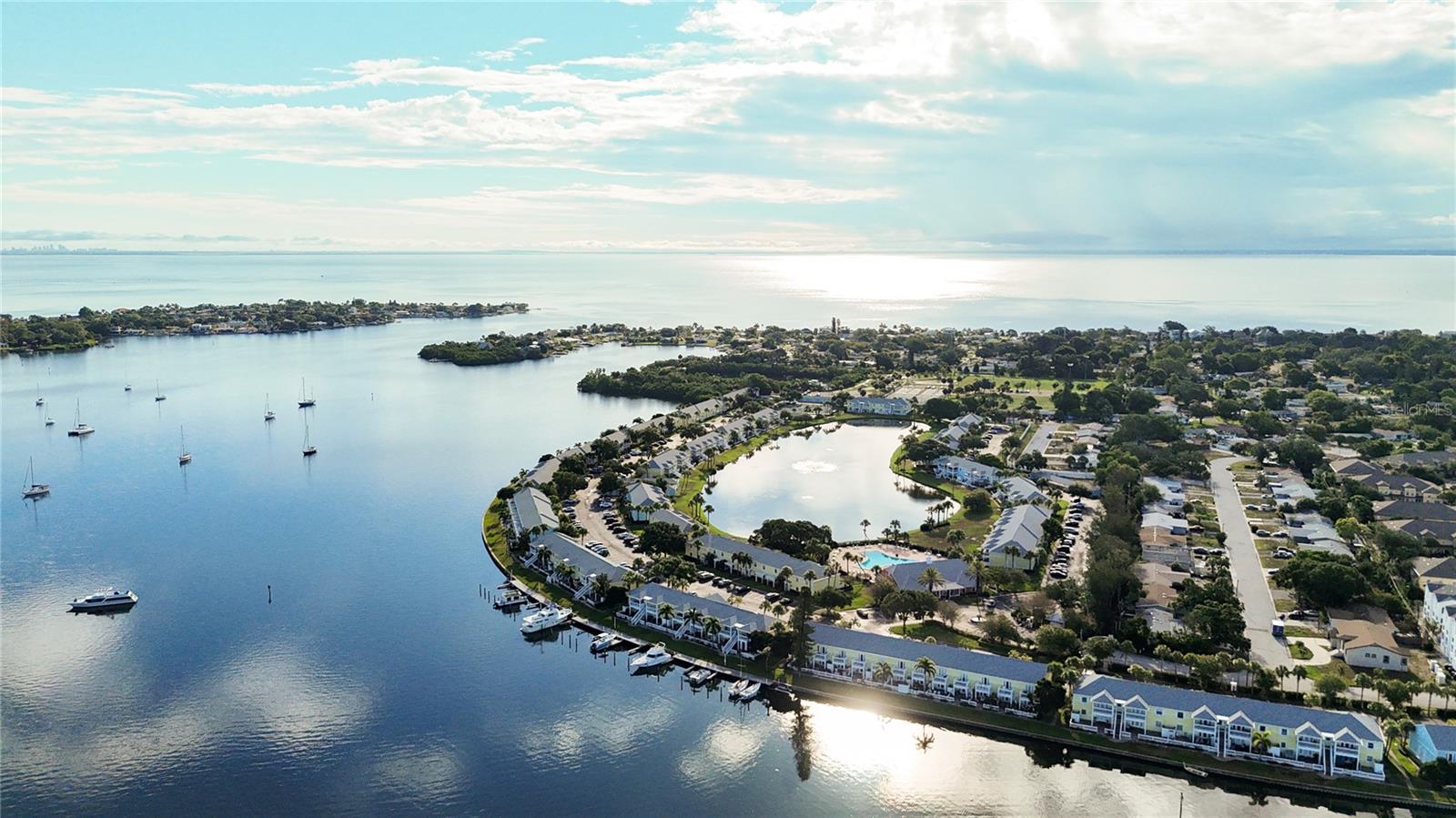 A true tropical paradise with a stunning water view! This condo boasts a spectacular view of the Big Bayou that directly connects with Tampa Bay. Fully furnished, turn key, ready to move in or rent. Desirable ground floor, corner, 2 bedroom/ 2 bathroom unit. Updated kitchen cabinets and appliances with Corian counter tops. Beautiful ceramic tile throughout. Large closets with plenty of storage. In unit washer/dryer. French doors that open to your own tropical oasis with a large paved open patio featuring direct water access where you can watch the dolphins or manatee at play. This resort style waterfront community is nestled on a tropical island with views of the famous Sunshine Skyway Bridge, Bird Island and Tampa Bay. Enjoy the calm serenity of island life with the convenience of urban living. Minutes from downtown St. Pete and a short drive to St. Pete Beach. Amenities includes Yacht club wth full bar, 2 pools/ hot tubs, day fishing dock, sand volleyball, tennis, basketball courts, shuffleboard, horseshoes, fitness center, 24 hour security, dog park and pet friendly. Option to rent a dock just steps from your backdoor. Well maintained grounds with mature manicured landscaping with 3 miles of waterfront paths.