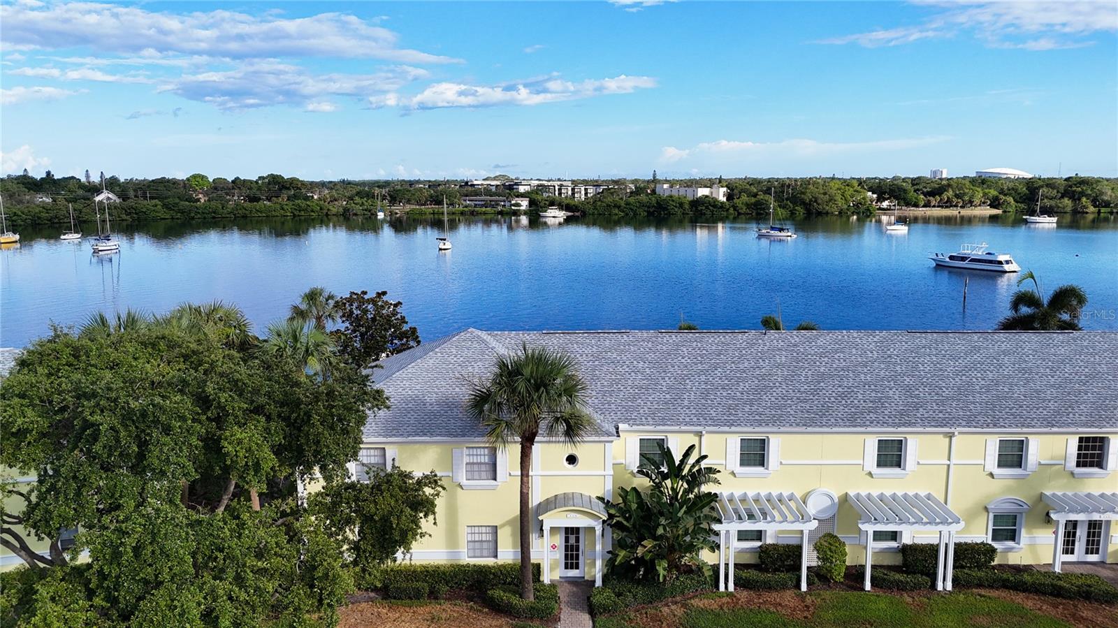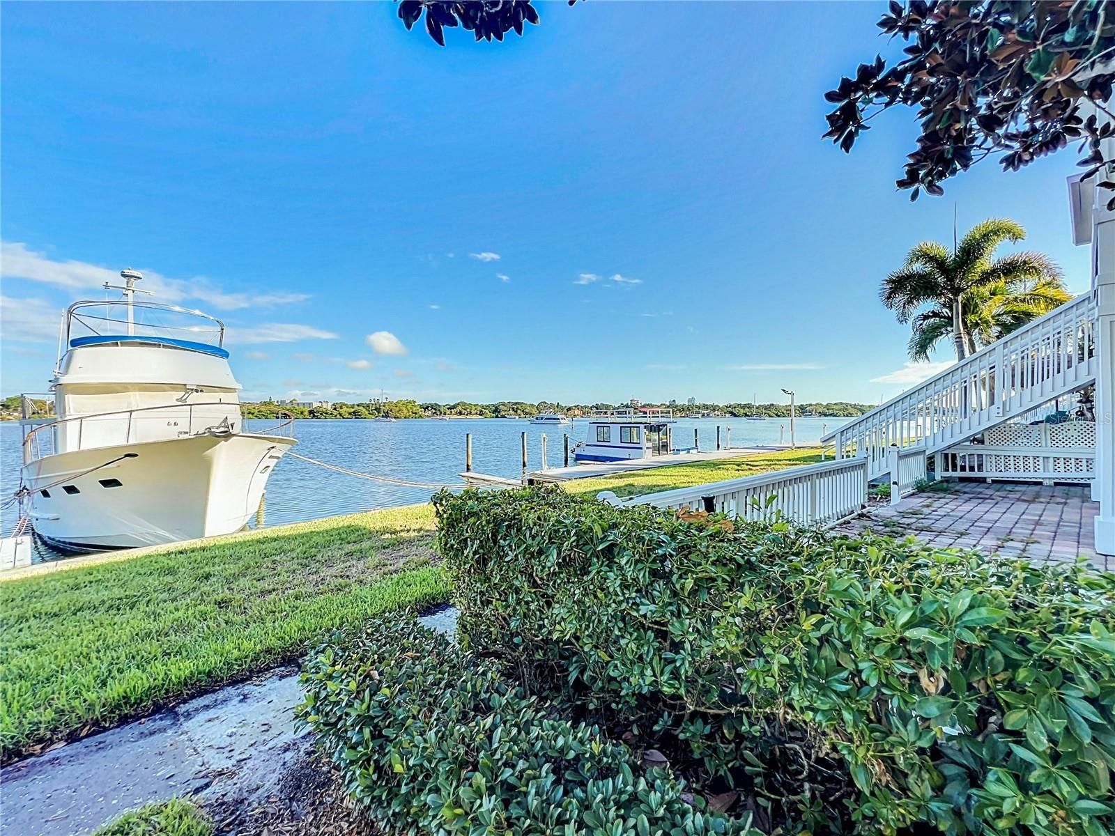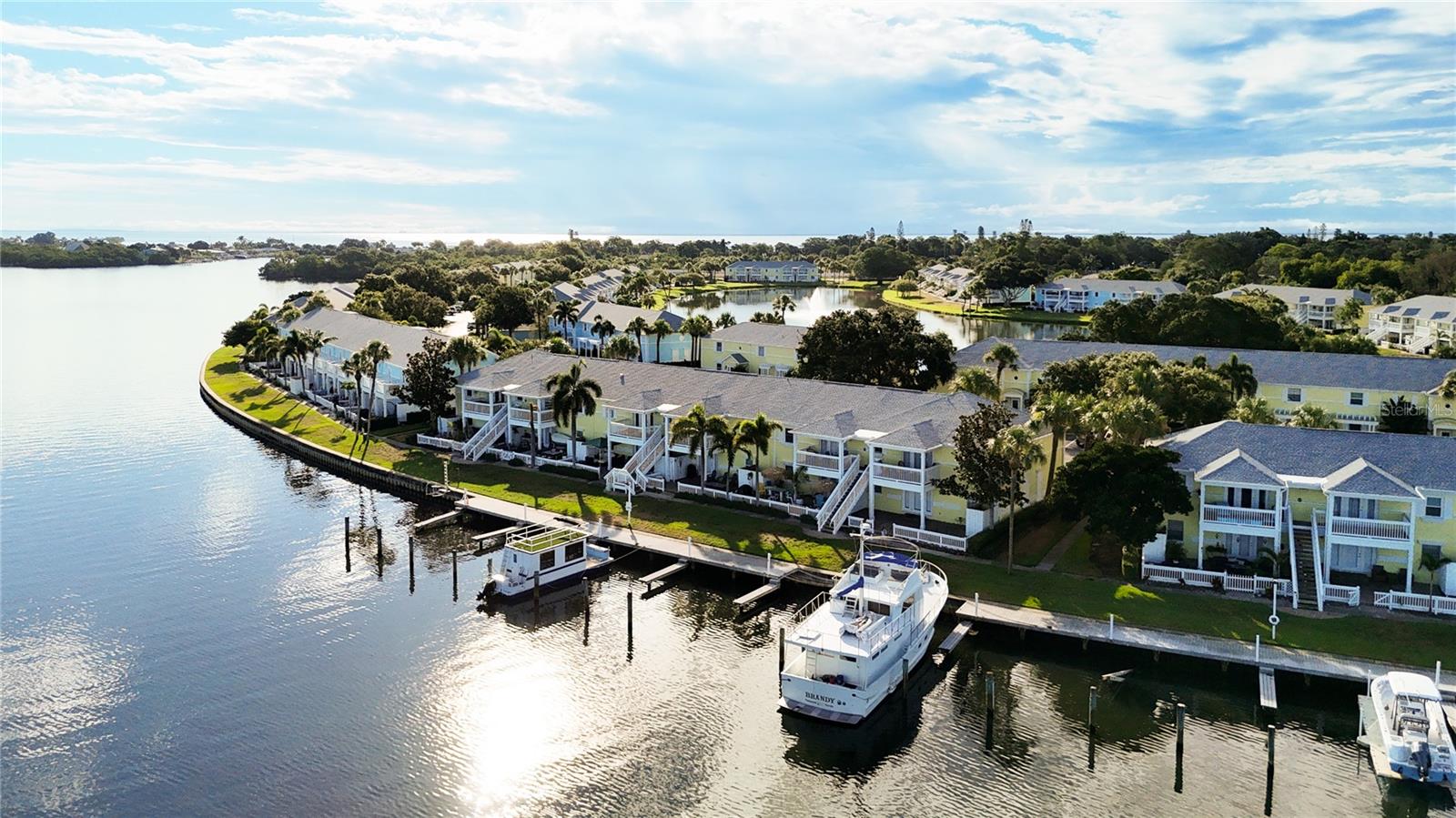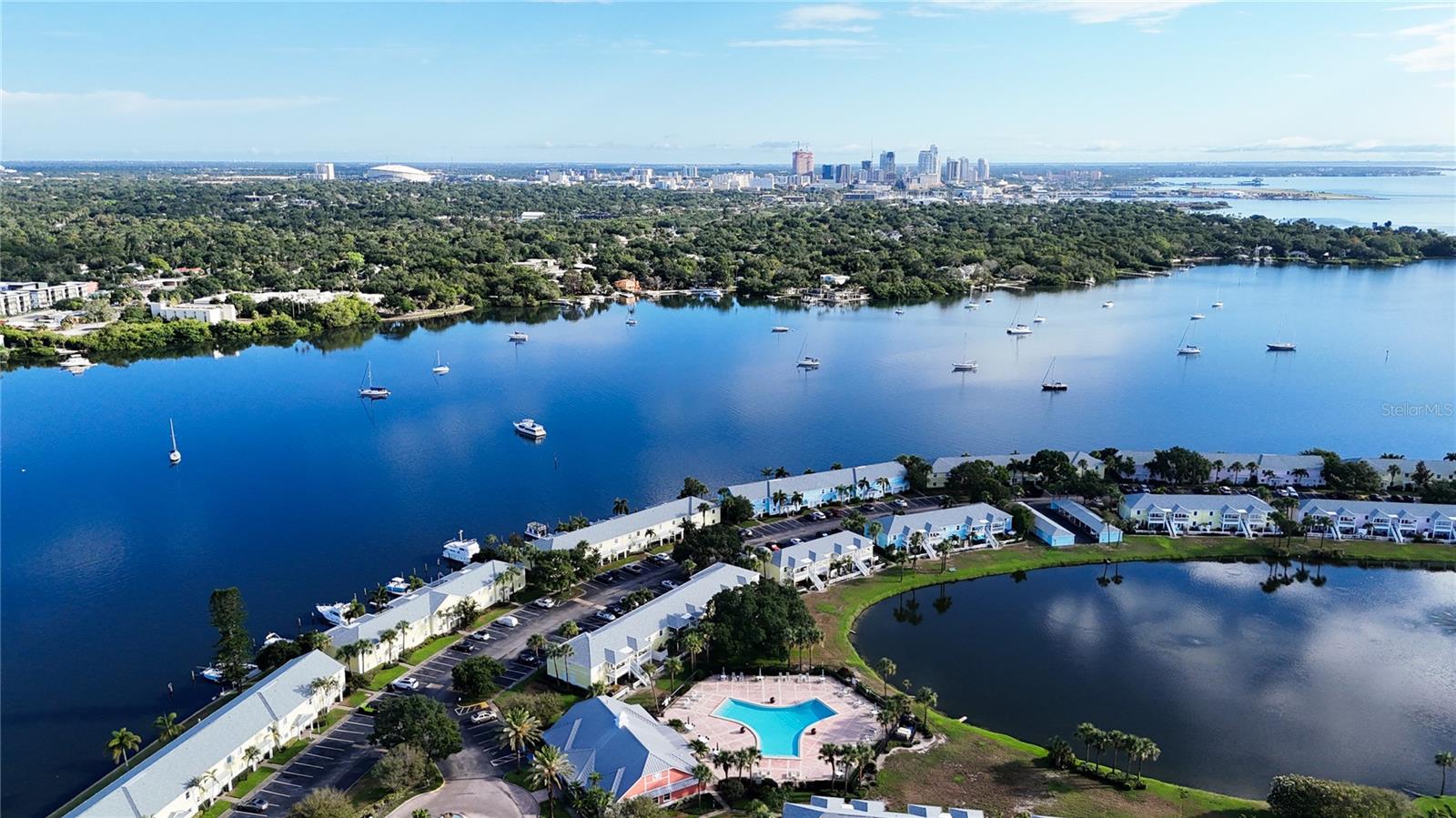 A true tropical paradise with a stunning water view! This condo boasts a spectacular view of the Big Bayou that directly connects with Tampa Bay. Fully furnished, turn key, ready to move in or rent. Desirable ground floor, corner, 2 bedroom/ 2 bathroom unit. Updated kitchen cabinets and appliances with Corian counter tops. Beautiful ceramic tile throughout. Large closets with plenty of storage. In unit washer/dryer. French doors that open to your own tropical oasis with a large paved open patio featuring direct water access where you can watch the dolphins or manatee at play. This resort style waterfront community is nestled on a tropical island with views of the famous Sunshine Skyway Bridge, Bird Island and Tampa Bay. Enjoy the calm serenity of island life with the convenience of urban living. Minutes from downtown St. Pete and a short drive to St. Pete Beach. Amenities includes Yacht club wth full bar, 2 pools/ hot tubs, day fishing dock, sand volleyball, tennis, basketball courts, shuffleboard, horseshoes, fitness center, 24 hour security, dog park and pet friendly. Option to rent a dock just steps from your backdoor. Well maintained grounds with mature manicured landscaping with 3 miles of waterfront paths.