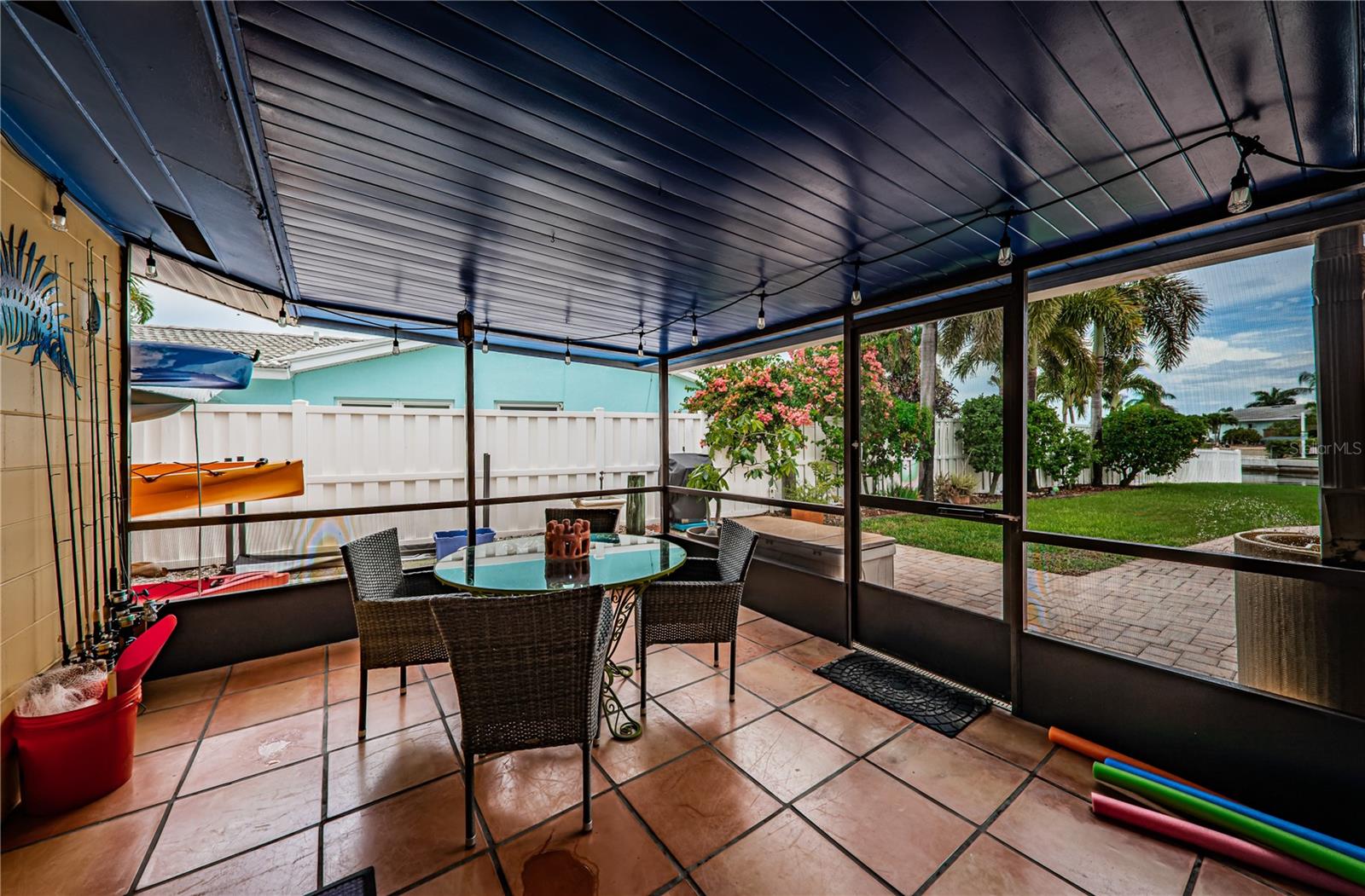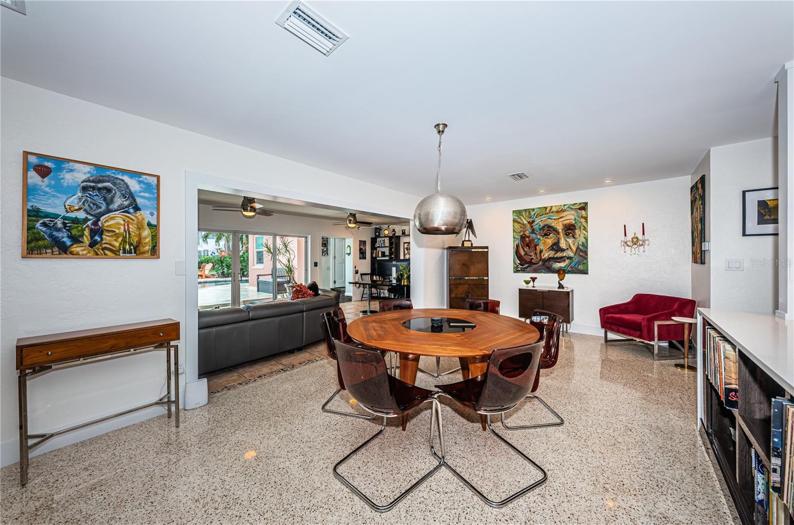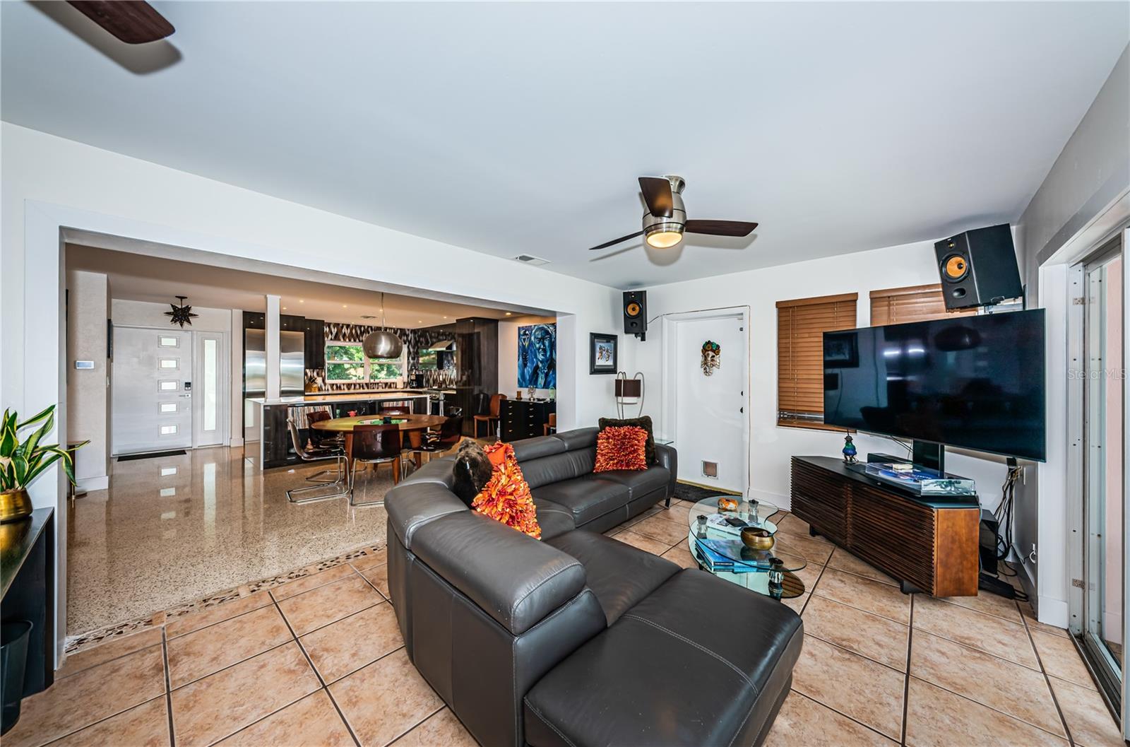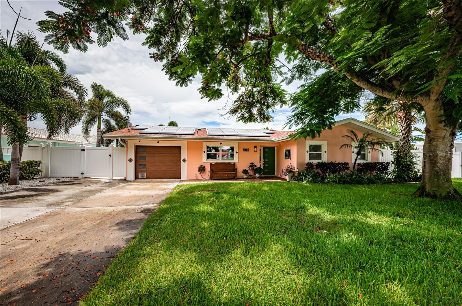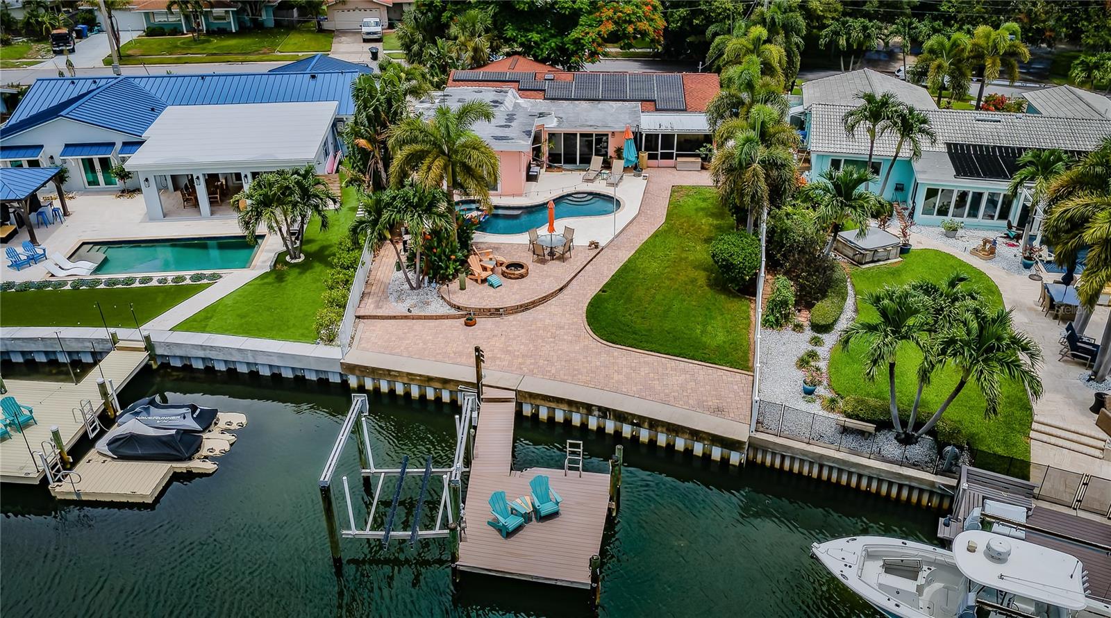This beautiful three-bedroom, two-bathroom house in St. Petersburg is a tropical paradise with a private dock and a pool with a spillover spa. The vintage restored terrazzo floors add a touch of elegance to the open floor plan, which is perfect for entertaining guests. The gourmet kitchen is a chef's dream, with high-end appliances and a large island. There are state-of-the-art upgrades throughout the home, The high-end primary bath is a luxurious retreat, with a spacious shower. The backyard is a tranquil oasis, with dolphins and manatees visiting the dock and the flats just a short 200-yard paddle away. A brand new roof is being installed. The property is energy-efficient with Tesla solar and power walls, and the Pentair Intellicenter allows for app-controlled hot tub temperature and lighting. The base elevation of over eight feet ensures that the property has never flooded. Conveniently located just minutes from downtown St. Pete, the Gulf beaches, and the Tampa International Airport, this property is a must-see for those looking for a permanent residence or vacation home. This home did not flood from the last two Hurricanes.