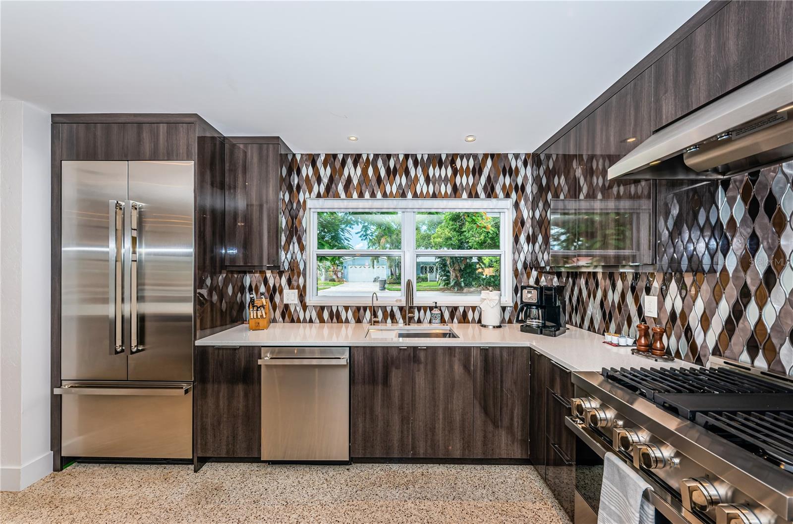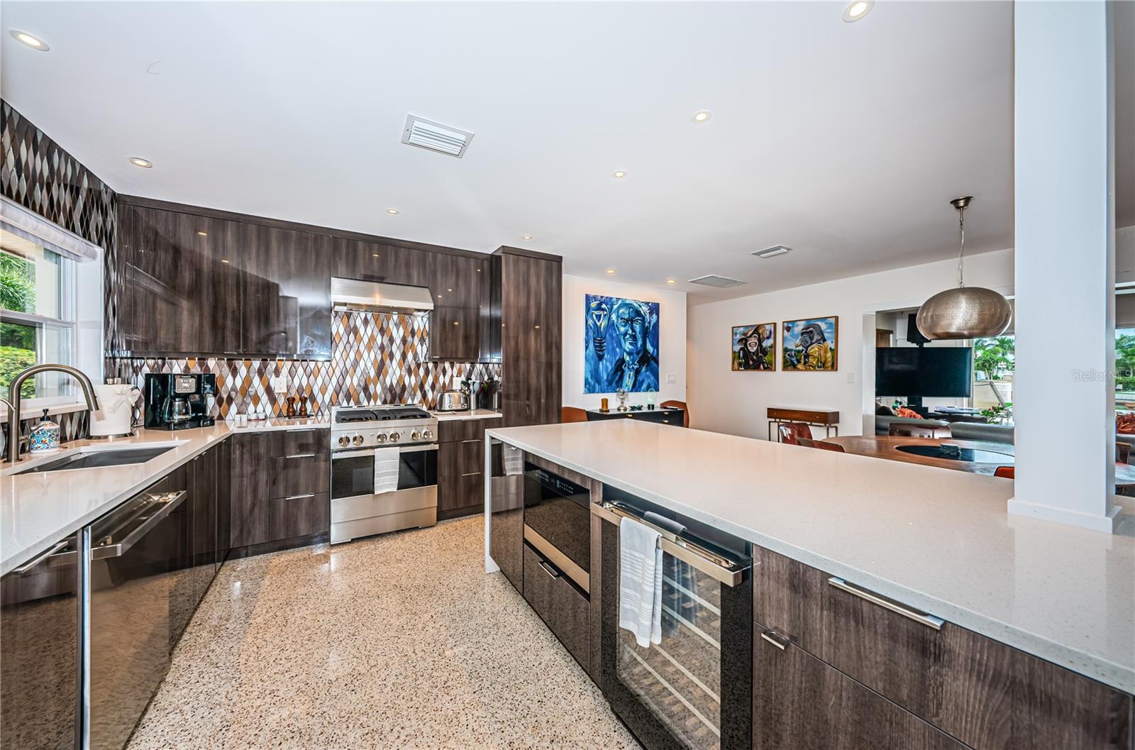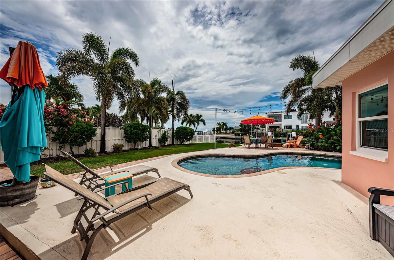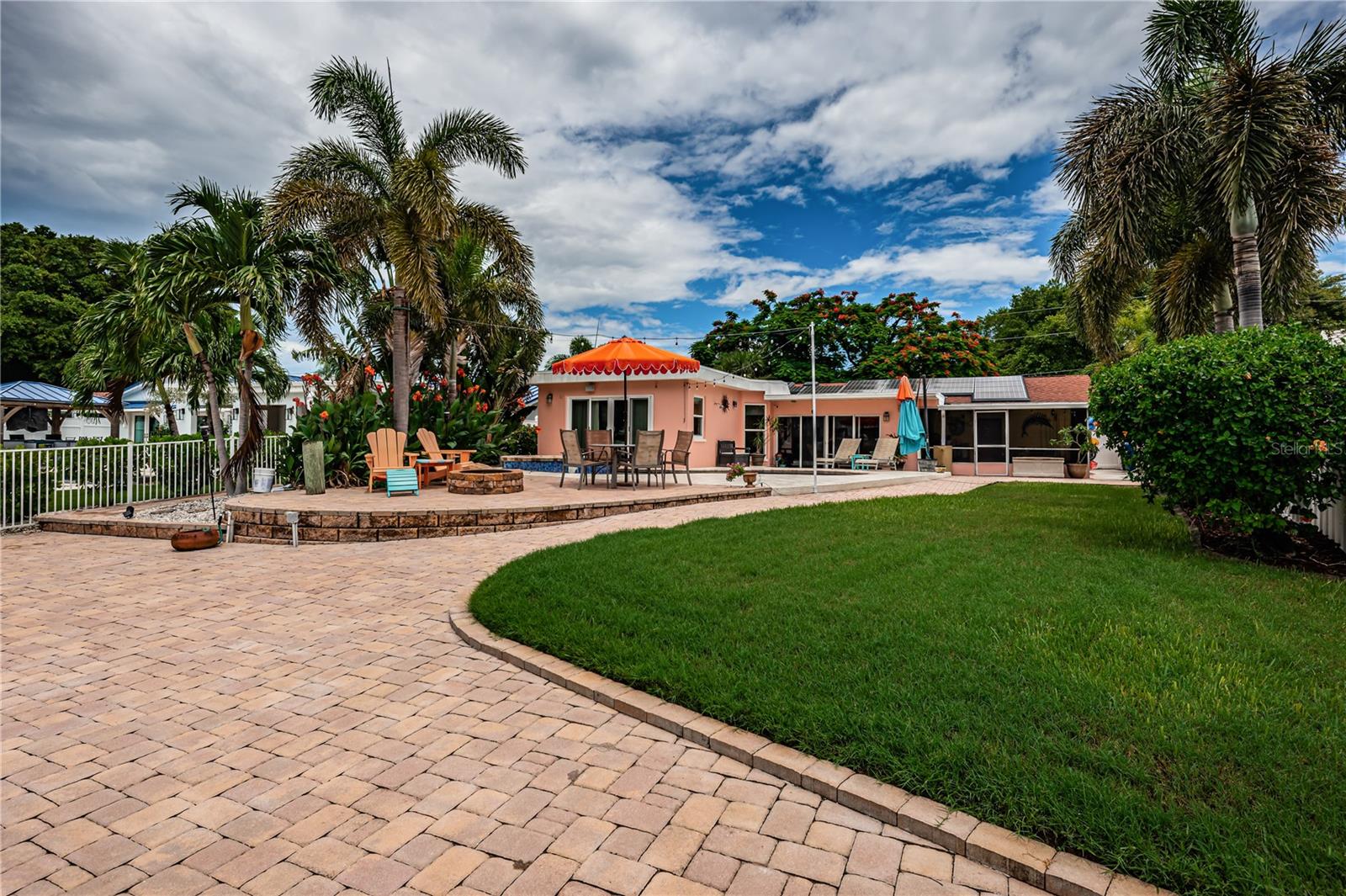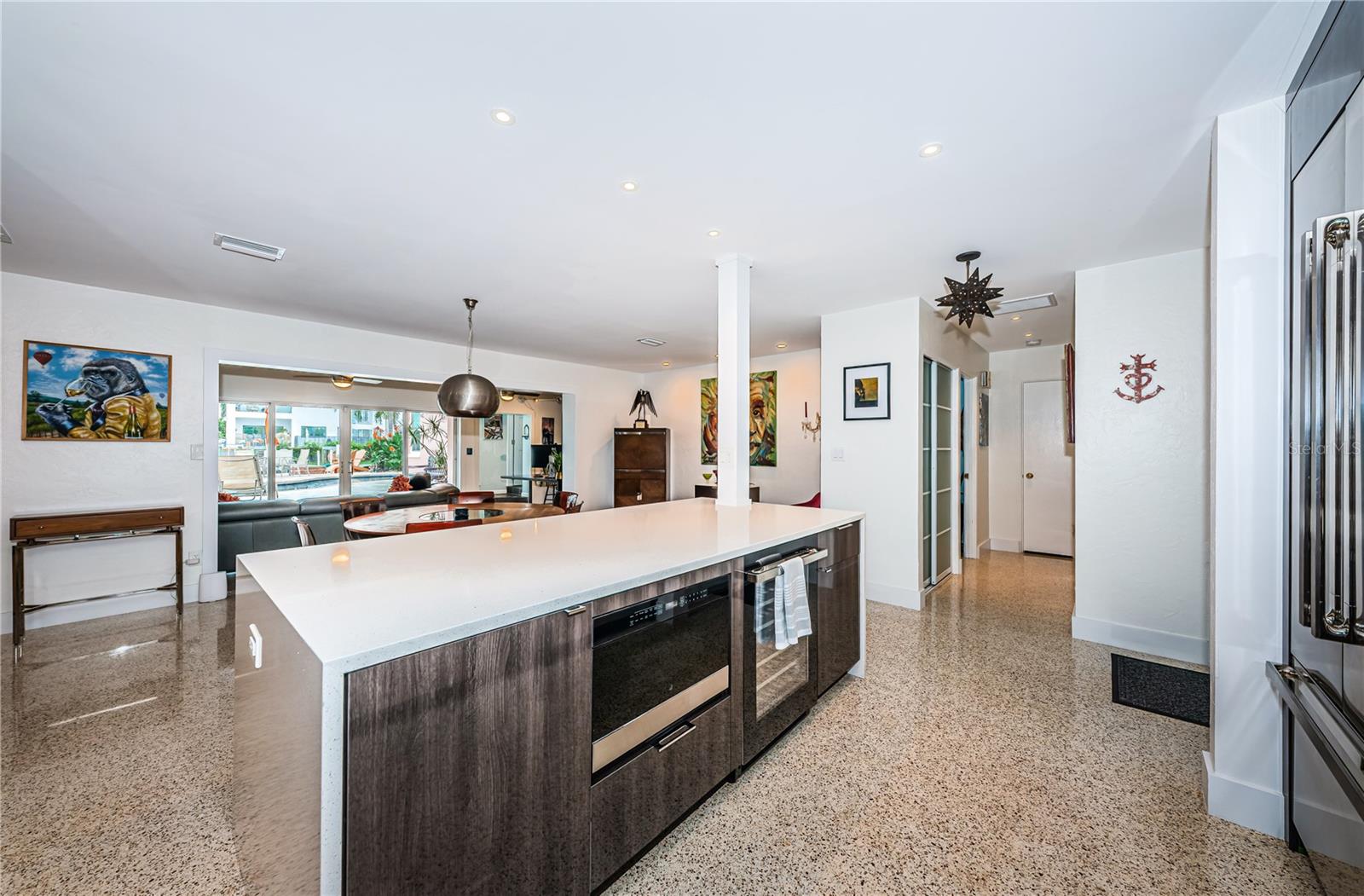 This beautiful three-bedroom, two-bathroom house in St. Petersburg is a tropical paradise with a private dock and a pool with a spillover spa. The vintage restored terrazzo floors add a touch of elegance to the open floor plan, which is perfect for entertaining guests. The gourmet kitchen is a chef's dream, with high-end appliances and a large island. There are state-of-the-art upgrades throughout the home, The high-end primary bath is a luxurious retreat, with a spacious shower. The backyard is a tranquil oasis, with dolphins and manatees visiting the dock and the flats just a short 200-yard paddle away. A brand new roof is being installed. The property is energy-efficient with Tesla solar and power walls, and the Pentair Intellicenter allows for app-controlled hot tub temperature and lighting. The base elevation of over eight feet ensures that the property has never flooded. Conveniently located just minutes from downtown St. Pete, the Gulf beaches, and the Tampa International Airport, this property is a must-see for those looking for a permanent residence or vacation home. This home did not flood from the last two Hurricanes.