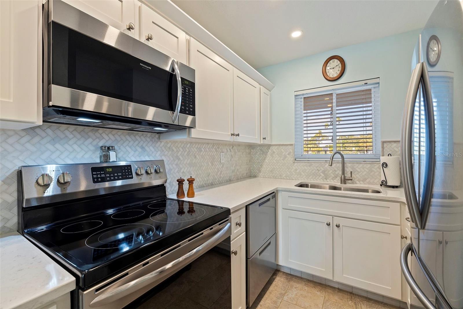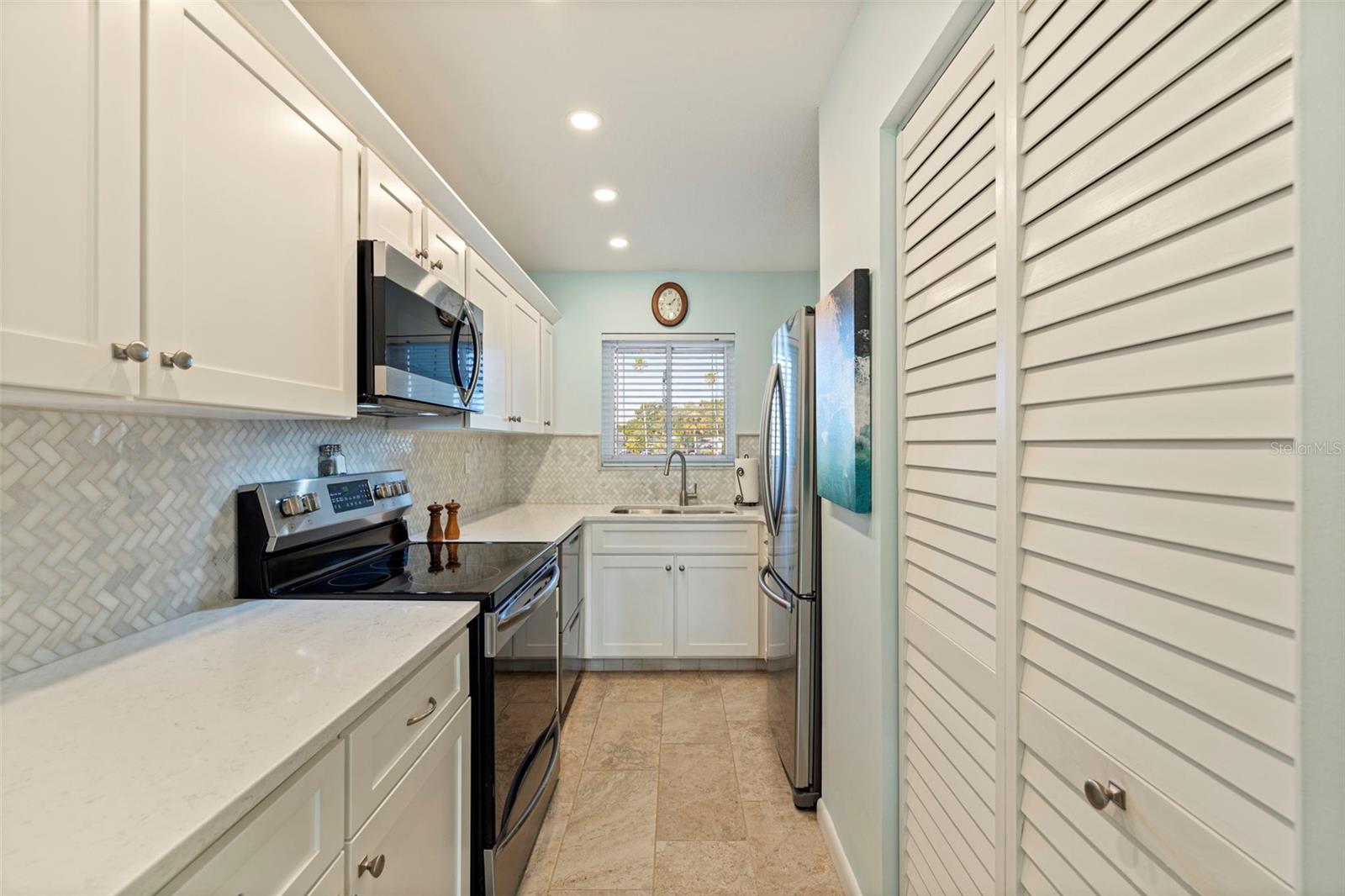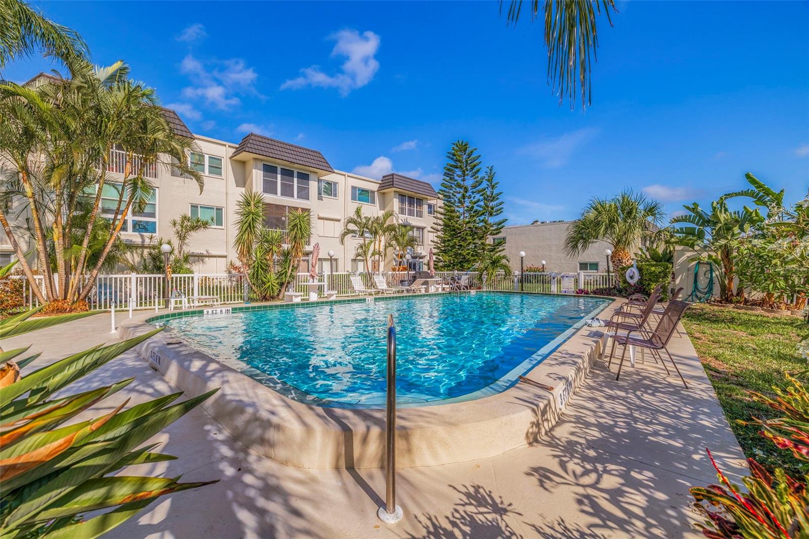 Amazing opportunity to own a turn-key property in St Pete. Just a 7 minute drive to Beach Drive or the North 4th St corridor this newly renovated 2 BR, 1 BA unit is convenient to both PIE and Tampa International airports. The building?s roof was replaced 2 years ago and, although it is located in a flood zone, it sits on one of the higher points in Shore Acres and has never had a water event. This unit's open floor plan has 24 X 12 porcelain tiles in the entry, living areas and kitchen. The renovated kitchen is efficiently designed with a large single sink, double drawer dishwasher, French door refrigerator, and five burner stove with convection oven. All appliances are stainless steel. The bath has a remodeled shower with glass doors that sits adjacent to the laundry closet with euro-style all in one washer/dryer. A new quartz topped vanity with LED lighted mirror complete this fresh makeover. Enjoy the lifestyle of low maintenance living with the quiet pool and grilling area steps from your back door. There's also a communal laundry area for those extra big loads and a small gym. This property is perfect for a first home, a downsize home, or as a second home in vibrant St Pete. Sellers are offering to pay for two years of a home warranty with the sale.