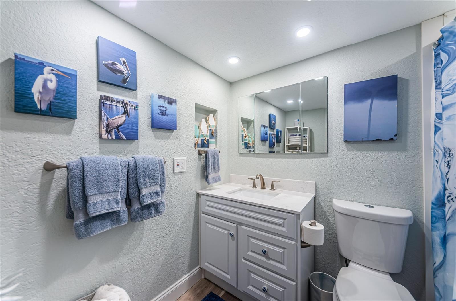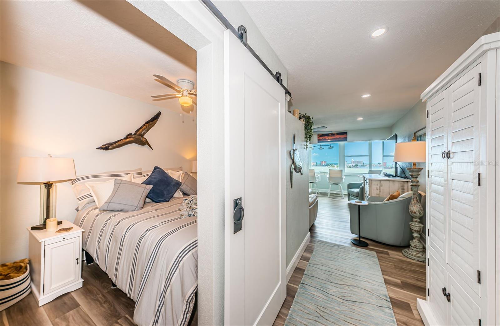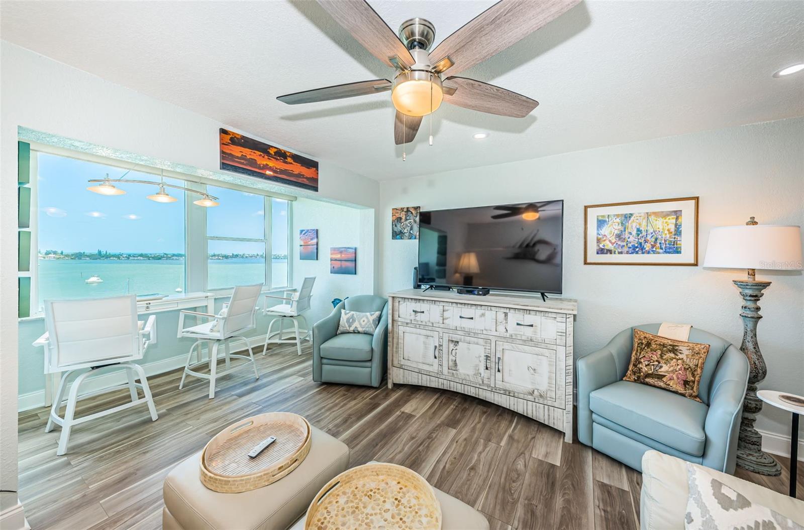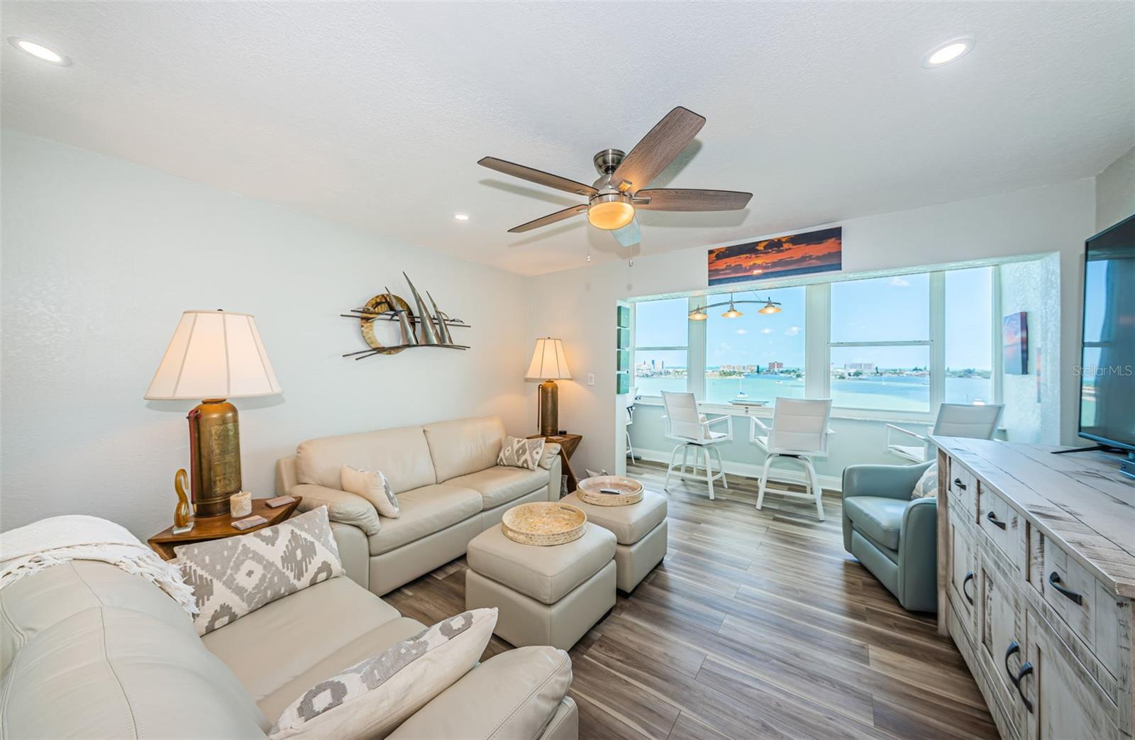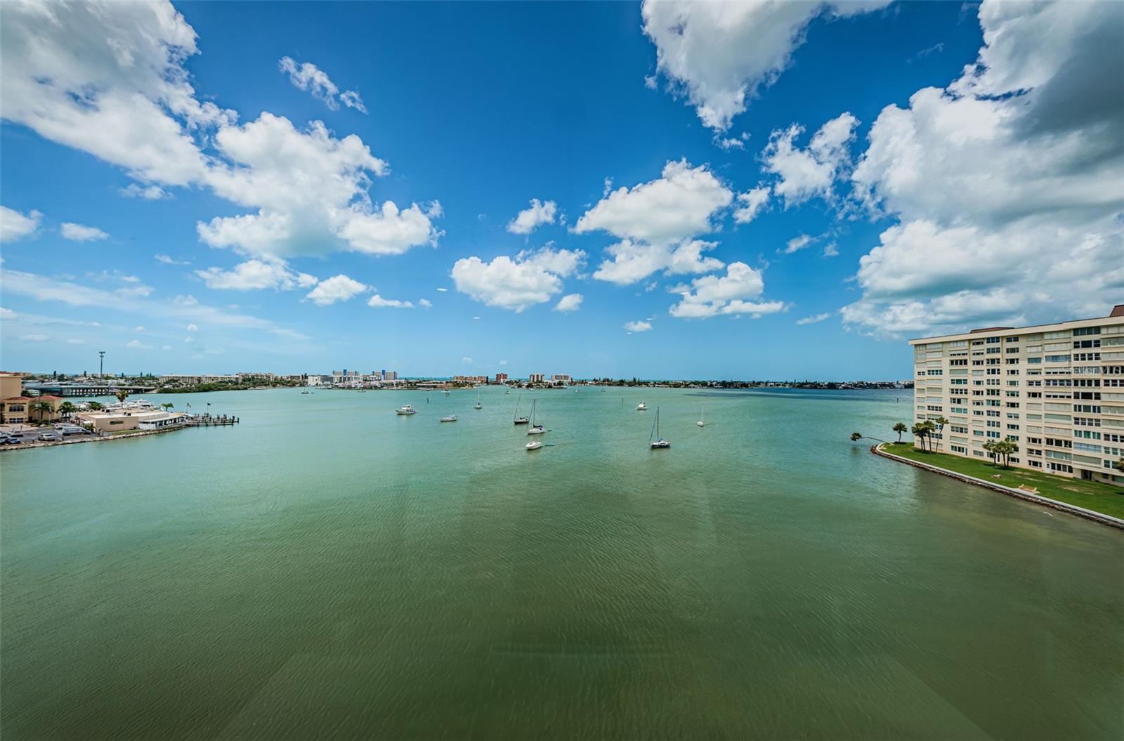 Welcome to this Luxury Studio turned into a 1 bedroom with spectacular views of the Intracoastal and Gulf of Mexico! This 1BR/1BA is a gorgeous unit and furniture is negotiable! TV stand in the living room turns into a queen-sized bed for your guest comfort! The condo has been completely renovated from floor to ceiling with top-of-the-line touches, laminate flooring throughout, bathroom has new vanity, sink, toilet plus new lighting and ceilings fans, updated kitchen with white cabinets and appliances, quartz countertops and the bedroom features a barn door with large closet, updated window plus HURRICANE SHUTTER, new hot water heater plus exquisitely decorated to enjoy the Florida lifestyle. Community here at SEA TOWERS: This waterfront community, 55+, offers fantastic amenities - two heated pools; tennis courts; fishing piers; shuffleboard courts; a putting green; a fitness center; saunas; and much more! There's even a full-time social director whose mission is to fill your calendar with exciting activities on-site, in and around St. Petersburg, and beyond. 100% Funded and Milestone inspection complete per new Condo Guidelines. Access to the beaches, nearby restaurants, shopping, John's Pass, and entertainment plus close to the bus line which makes this the perfect place to live! Call today to see this lovely unit!