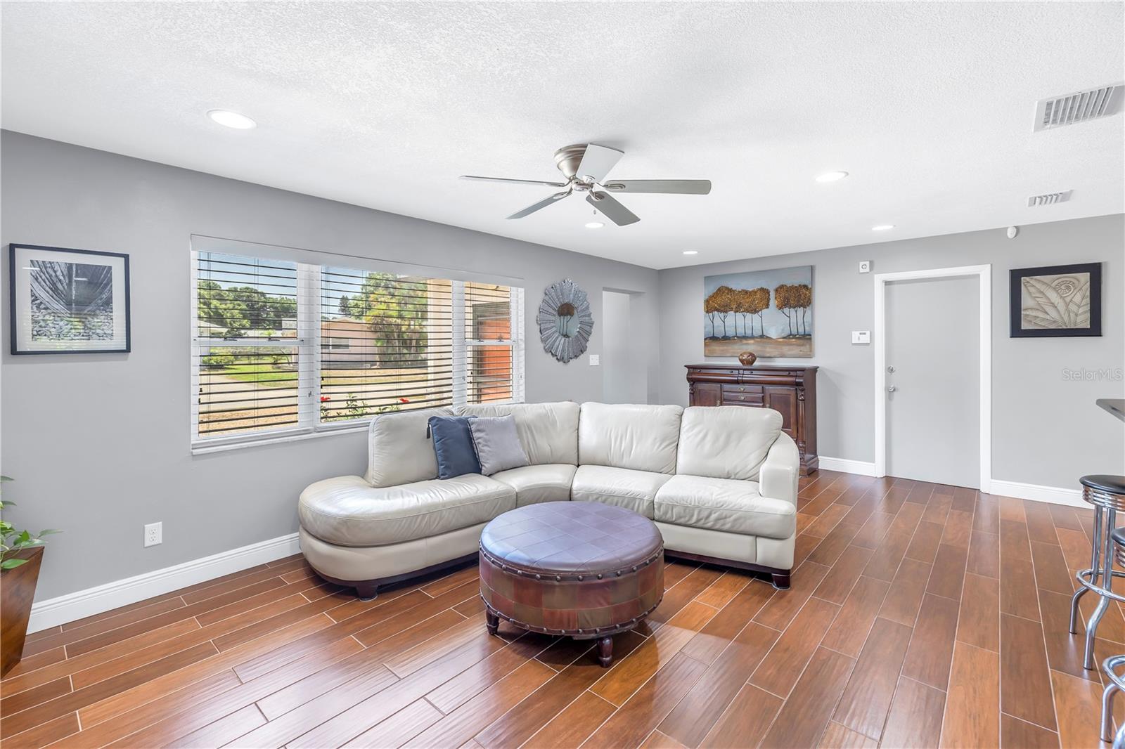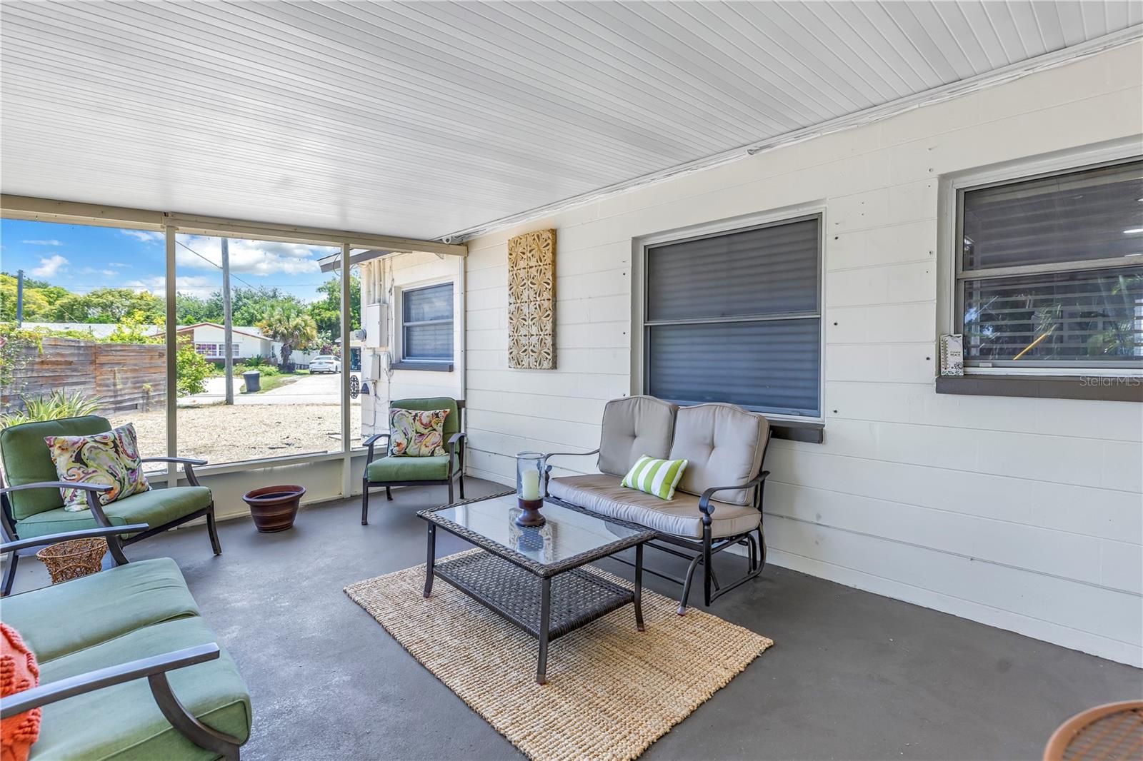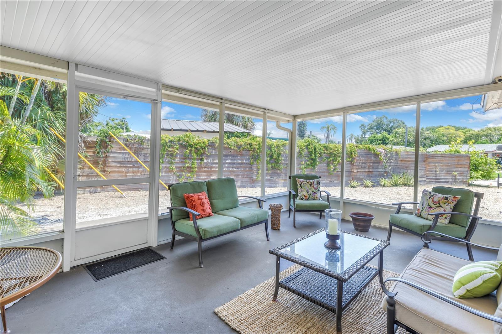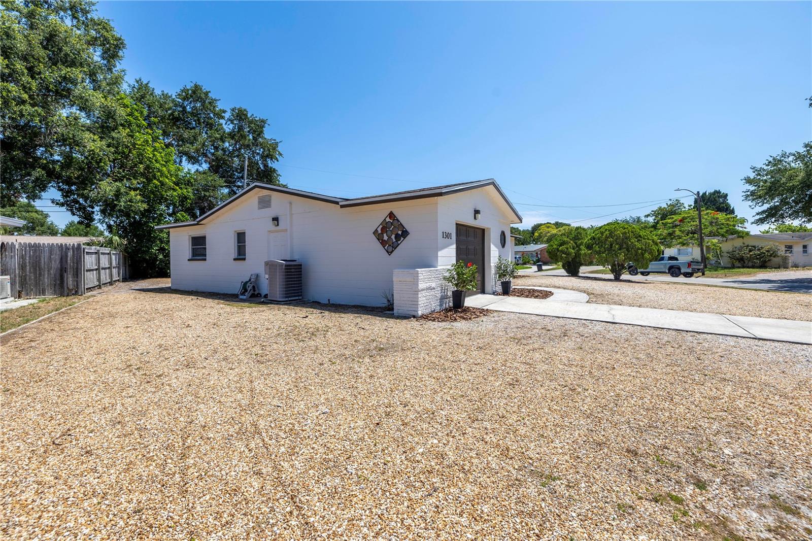 Come on home...move-in ready, mid-century block construction home positioned on a sizable corner lot in a wonderful neighborhood of the Greater Pinellas Point area in St. Petersburg. This updated, open and split floor plan offers 3 bedrooms, 2 bathrooms, and 1 car garage with over 1500 heated square feet of comfortable living. The interior features a beautiful updated kitchen, double pane windows, seamless tile flooring throughout the home, recessed lighting, prewiring for large screen television, custom coordinated window blinds, custom coordinated lighted ceiling fans, a newer roof, and a hurricane rated automatic garage door. The open kitchen is ideal for your gourmet creations or quick meals, and great for entertaining, boasting stainless steel appliances, modern built-in microwave drawer, quartz countertops, built in dishwasher, deep well double stainless steel sink, garbage disposal, window that overlooks the screened in back patio, and prewiring for optional pendant lighting. The split bedroom layout provides privacy with a back bedroom suite and an updated en-suite bathroom. This suite can easily be used as the primary or guest suite. Nice sized closets throughout and ample cabinets for storage in the garage as well. This spacious lot can accommodate your RV or other outdoor toys and activities. Automatic night security lighting on home exterior. Located in a non-flood zone, only minutes to Boyd Hill Nature Park, St. Petersburg Golf & Country Club, Bay Vista Park and Public Boat Ramp, Maximo Park and Public Boat Ramp and easy access to our award-winning Gulf Beaches, vibrant Downtown St. Petersburg, and several magnet and fundamental school choices. Come enjoy the sunshine and Florida lifestyle at 1301 62nd Place S.