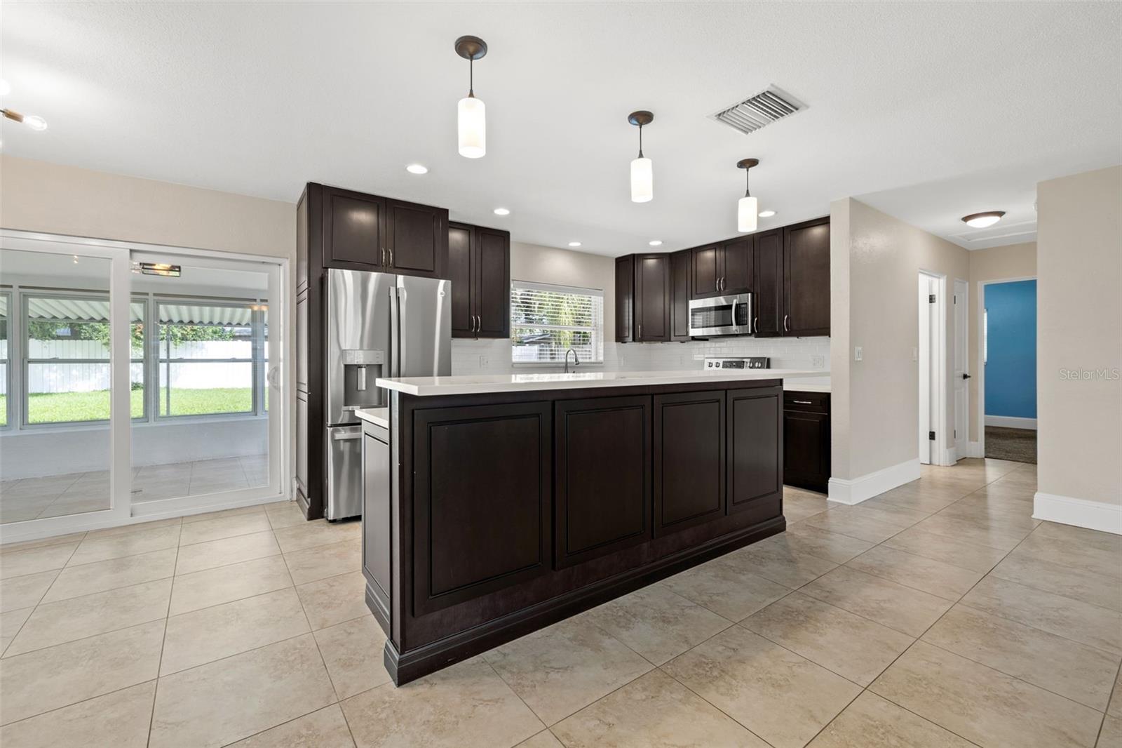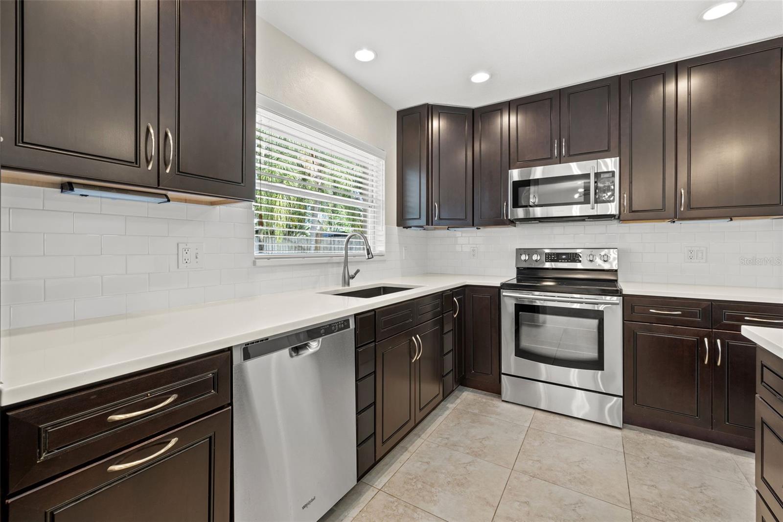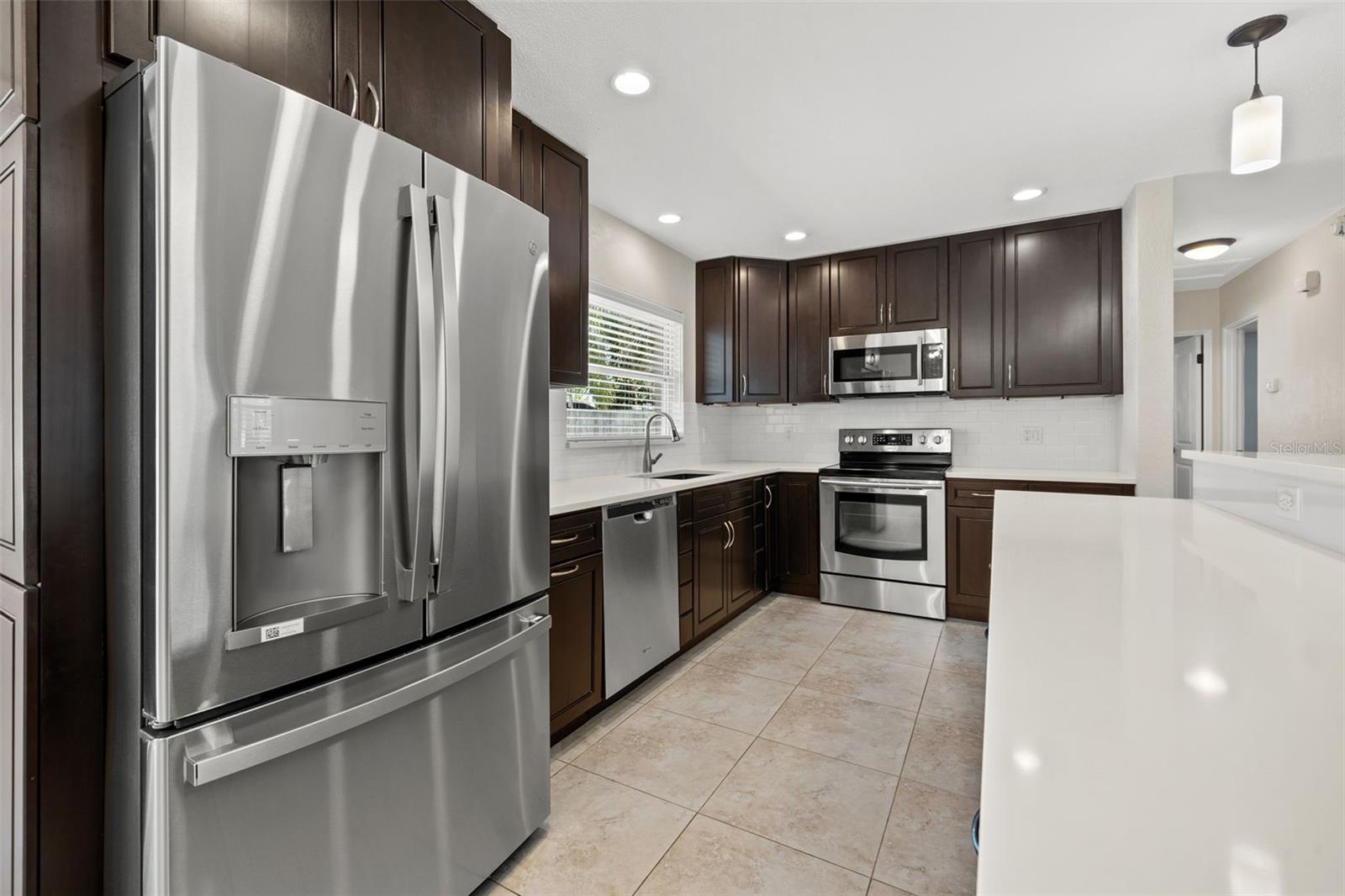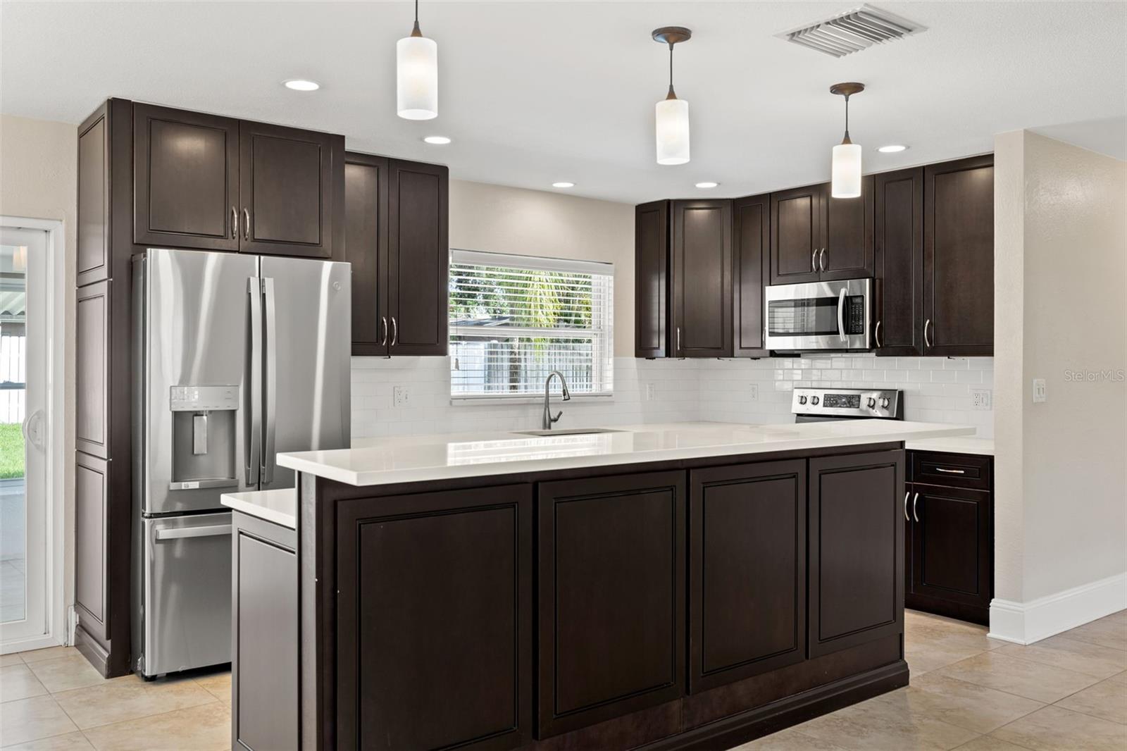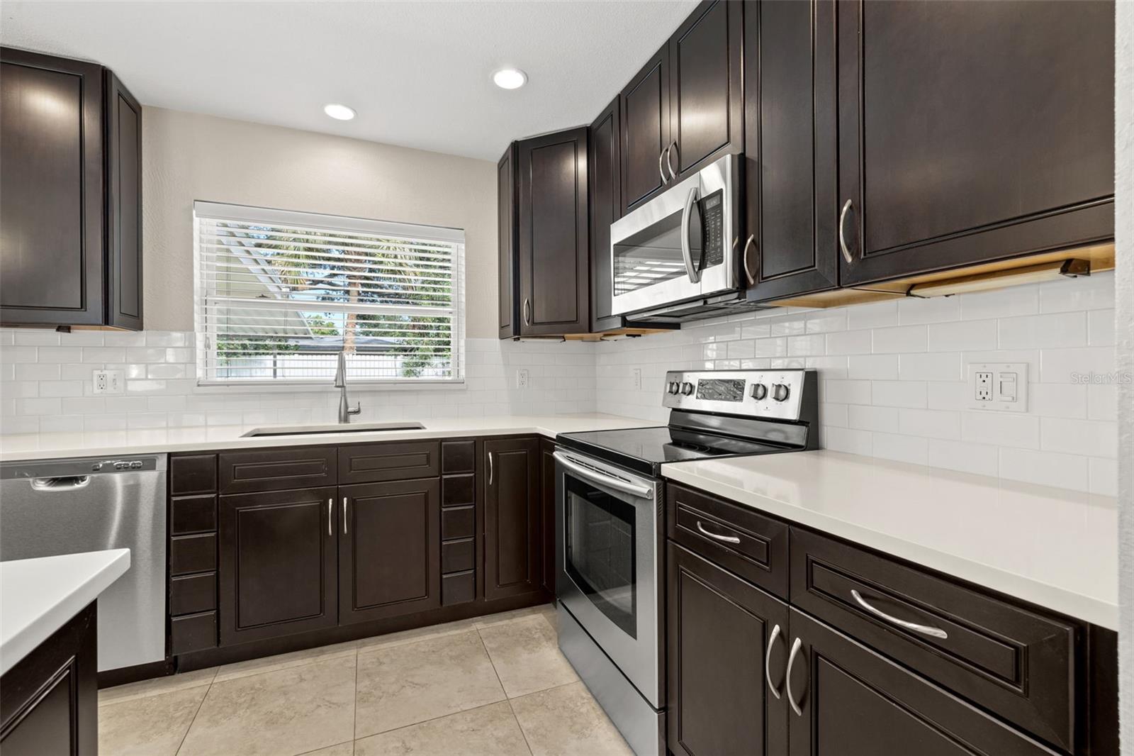 One or more photo(s) has been virtually staged. Welcome to your dream home! Nestled on a pristine lot you'll find this stunning 2-bedroom, 2-bathroom ranch-style home with 1,144 square feet and of living space and has been beautifully updated to feature an open floor plan that is perfect for modern living. Step inside to discover the easy-care ceramic tile floors throughout the main living area making maintenance a breeze. The spacious living area flows seamlessly into a dining area and gourmet kitchen, complete with a large island equipped with built-in electrical outlets. The kitchen is a chef's delight, boasting ceiling-length wood cabinets, a custom granite composite sink, gleaming Quartz countertops, and state-of-the-art stainless steel appliances. Both bedrooms are generously sized, offering plenty of space and comfort. The primary suite provides a serene retreat with its own private ensuite. Outside, the large fenced-in backyard (90x123) is an entertainer's paradise. Enjoy year-round gatherings on the covered patio or in the cozy 165 square foot Florida room with separate A/C and tons of natural lighting with direct access to the private backyard. There's ample space for outdoor activities, gardening, or simply soaking in the Florida sunshine in your own private oasis. Additional features included in this beautiful home is a brand new roof in July 2024, newer a/c in 2017, new carpet, newer double pane windows throughout and updated lighting & ceiling fans. The one car garage is perfect for your vehicle and has ample storage space. Located in a quiet neighborhood and close to downtown St. Pete, Vinoy Club, North Shore, and easy access to I-275. This beautiful home is perfectly situated near great schools, speciality waterfront restaurants, parks, and much more. Don’t miss out on this opportunity to own a beautiful, updated home in the sough after Eden Shores.