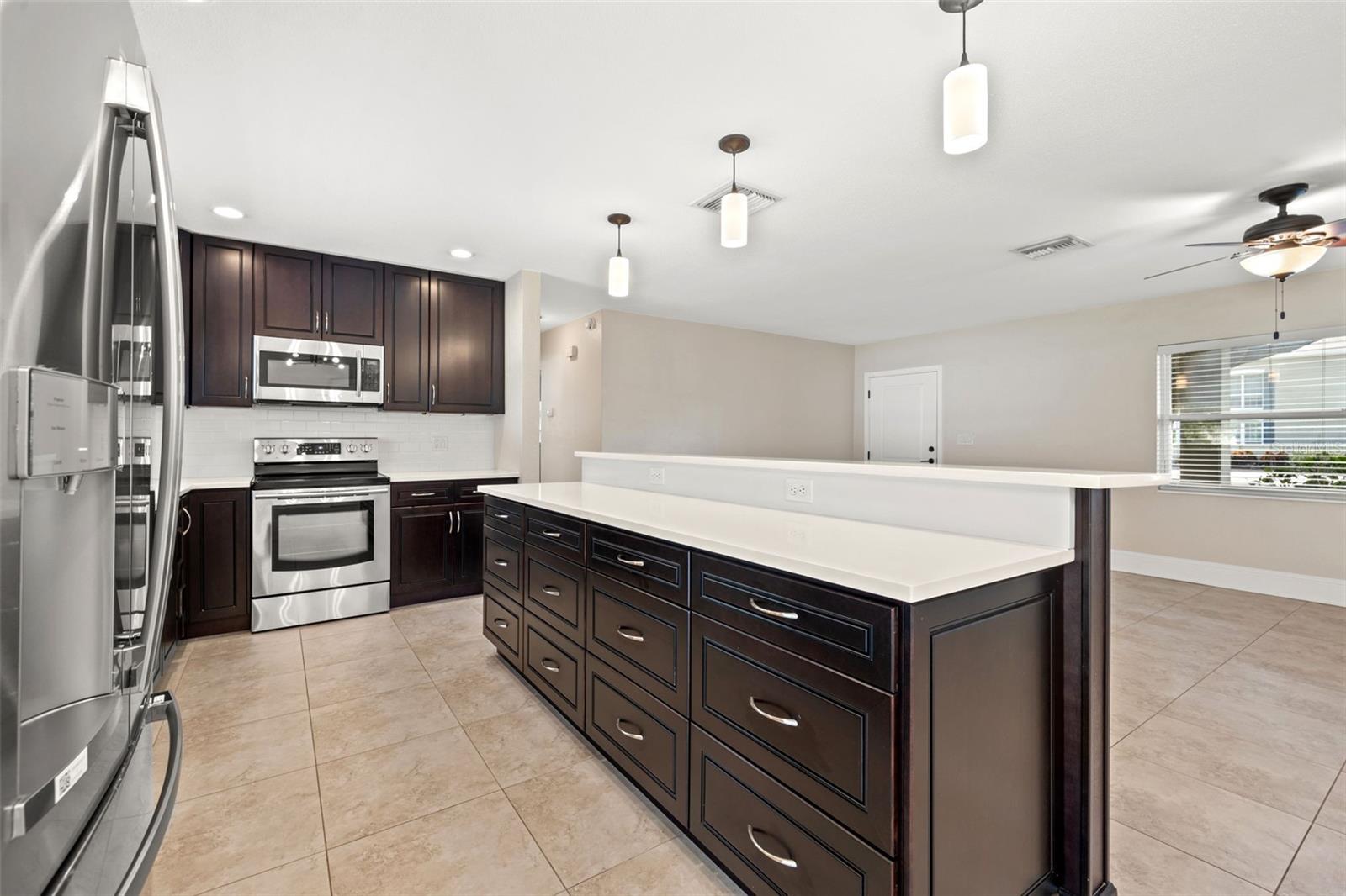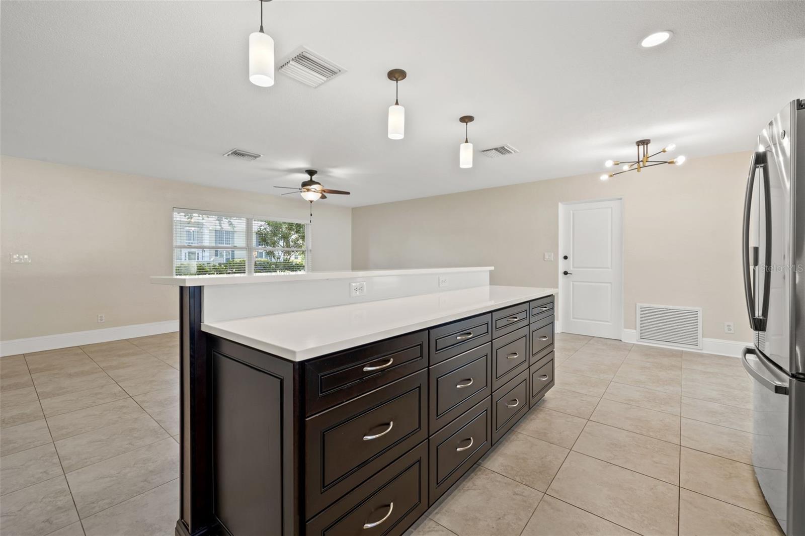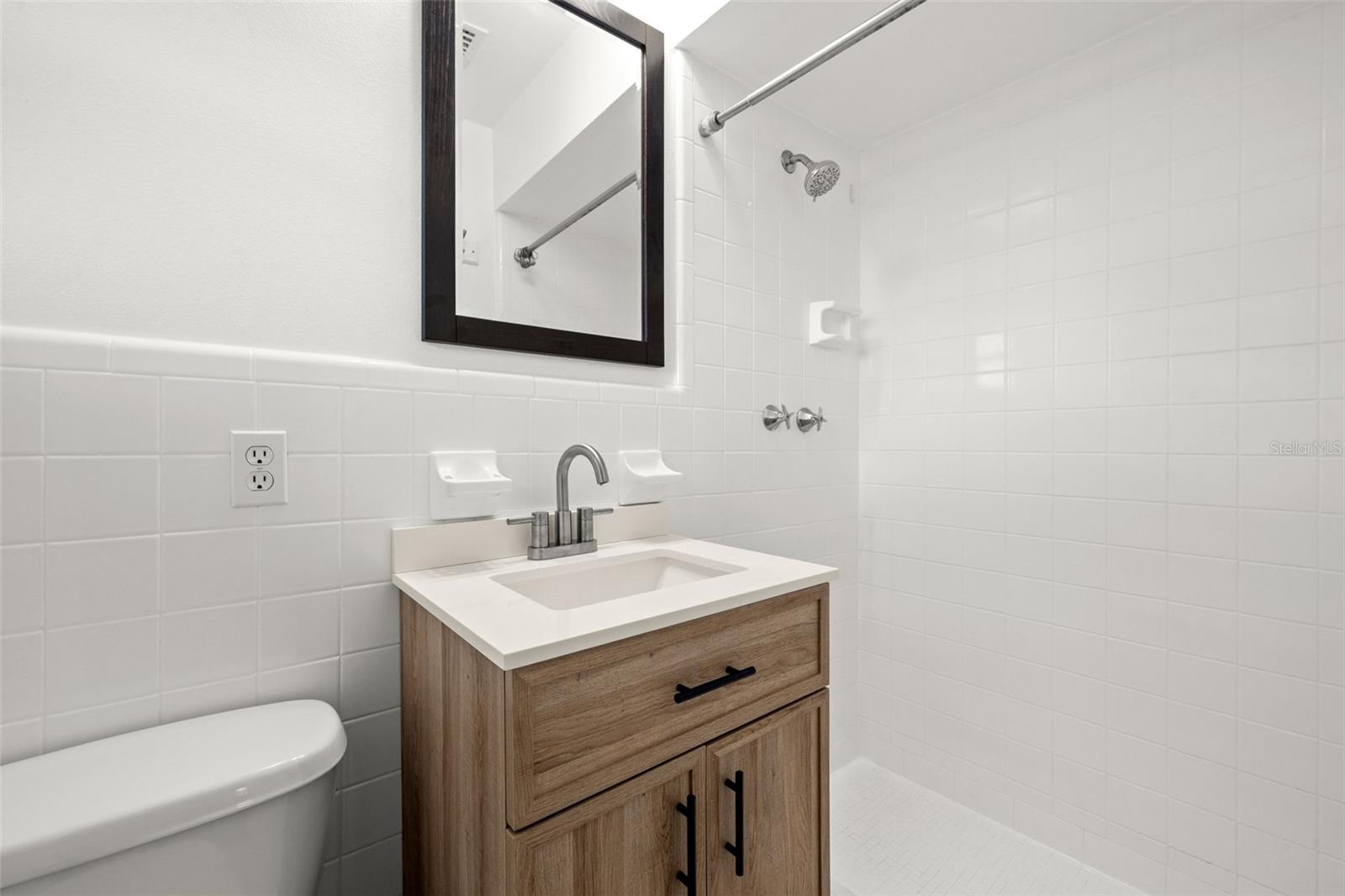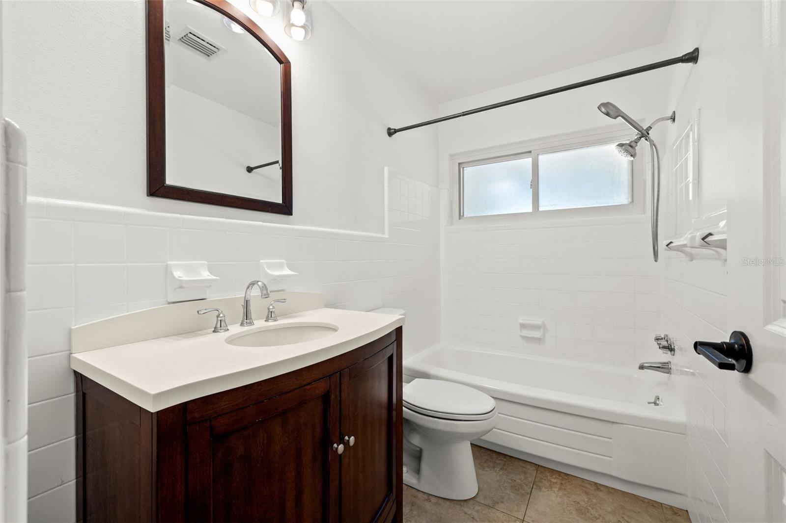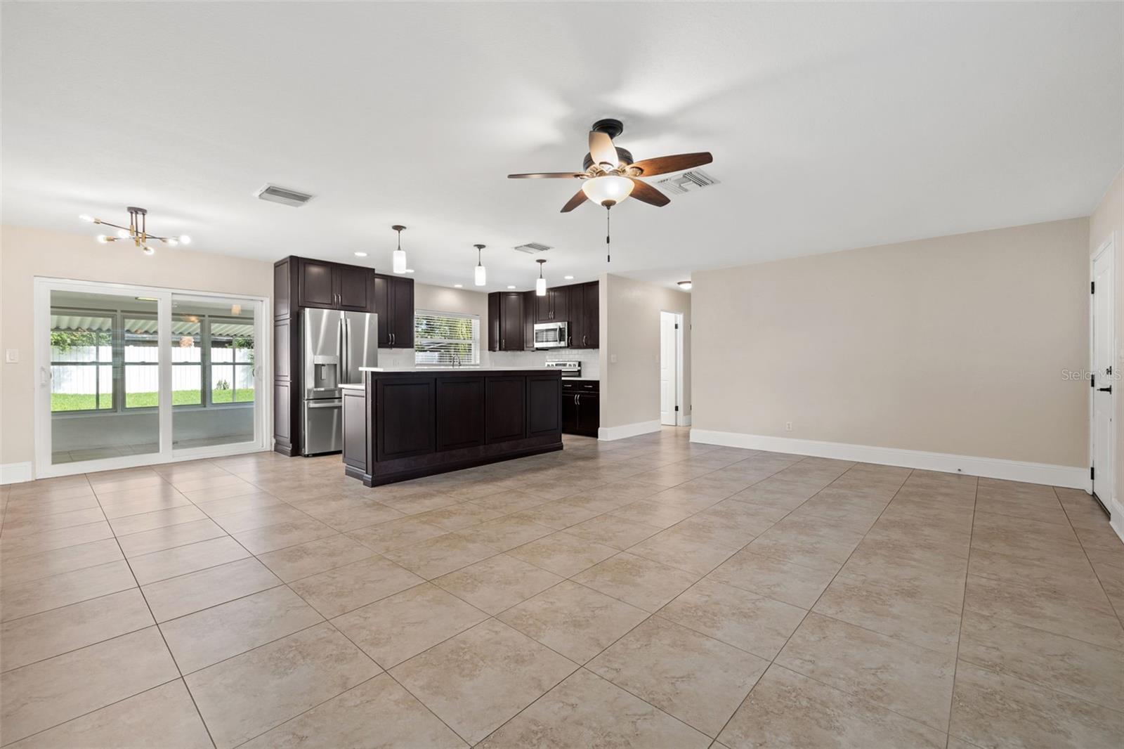 One or more photo(s) has been virtually staged. Welcome to your dream home! Nestled on a pristine lot you'll find this stunning 2-bedroom, 2-bathroom ranch-style home with 1,144 square feet and of living space and has been beautifully updated to feature an open floor plan that is perfect for modern living. Step inside to discover the easy-care ceramic tile floors throughout the main living area making maintenance a breeze. The spacious living area flows seamlessly into a dining area and gourmet kitchen, complete with a large island equipped with built-in electrical outlets. The kitchen is a chef's delight, boasting ceiling-length wood cabinets, a custom granite composite sink, gleaming Quartz countertops, and state-of-the-art stainless steel appliances. Both bedrooms are generously sized, offering plenty of space and comfort. The primary suite provides a serene retreat with its own private ensuite. Outside, the large fenced-in backyard (90x123) is an entertainer's paradise. Enjoy year-round gatherings on the covered patio or in the cozy 165 square foot Florida room with separate A/C and tons of natural lighting with direct access to the private backyard. There's ample space for outdoor activities, gardening, or simply soaking in the Florida sunshine in your own private oasis. Additional features included in this beautiful home is a brand new roof in July 2024, newer a/c in 2017, new carpet, newer double pane windows throughout and updated lighting & ceiling fans. The one car garage is perfect for your vehicle and has ample storage space. Located in a quiet neighborhood and close to downtown St. Pete, Vinoy Club, North Shore, and easy access to I-275. This beautiful home is perfectly situated near great schools, speciality waterfront restaurants, parks, and much more. Don’t miss out on this opportunity to own a beautiful, updated home in the sough after Eden Shores.