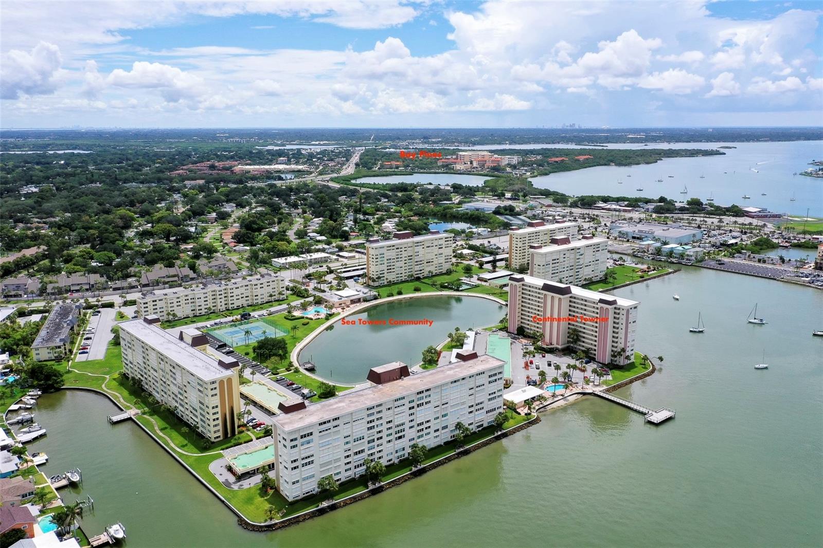 Welcome to this well-maintained 55+ Community Sea Towers and this 8th-floor condo located in the sought-after Continental Towers. Stunning southern views of Intra-Coastal Waterway and bridge and boat activity right from the dining table. This 2BR/2BA comes with the assigned parking and an extra storage locker. This unit features updated windows and HVAC system. Buyers can add their personal touches to this unit. The sunroom is tiled with the bedrooms and living room having carpet. The nice Breakfast bar adds counter space in the kitchen. Enjoy views of the boats, seagulls, and dolphins right from your unit. Watch the manatees or dolphins play in the Intracoastal. If you are looking for quiet peaceful living this is the place the SEA TOWERS is your 55+ community. The Condo association is well run with all documents in place. Designed for the discerning 55+ community, Sea Towers presents a wealth of resort-style amenities to enrich every aspect of your life. From the reassurance of 24-hour guard service to the convenience of an onsite management office; security and details for your active Florida Lifestyle. The Continental Tower has the Milestone reports, and flood and wind mitigation documents. The Continental Towers’ Board is constantly making improvements for its residents. Jump into the planned activities or just relax by the pool and watch the boats go by. This waterfront community offers fantastic amenities - two heated pools, tennis courts, fishing piers, shuffleboard courts, a fitness center, pickleball courts, an inside gym, and a walking path. A walking gate connects to you the shopping areas nearby. Close to Madeira Beach, Shopping, Bay Pines VA Medical Center, and Seminole Center. St Petersburg, Clearwater, and International Airport are easily accessible. Sea Towers Community Make It Your Personal Paradise.