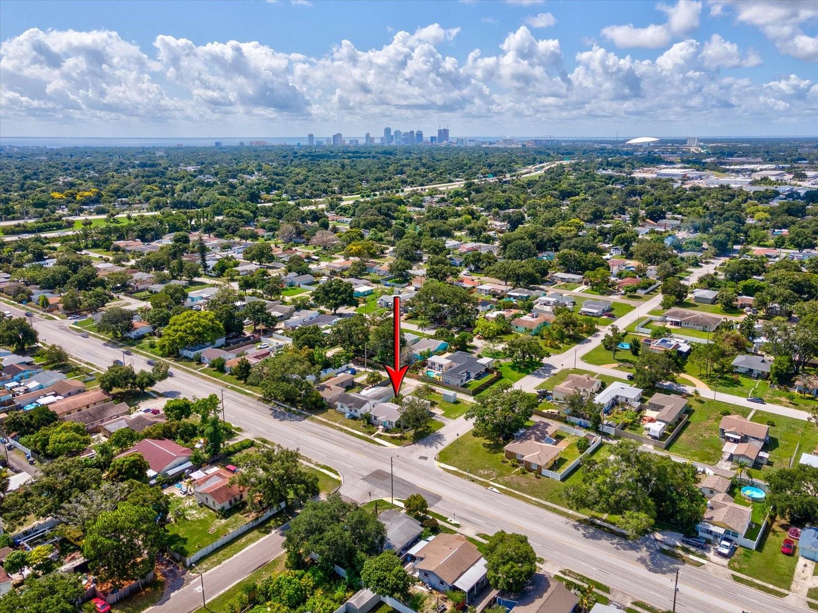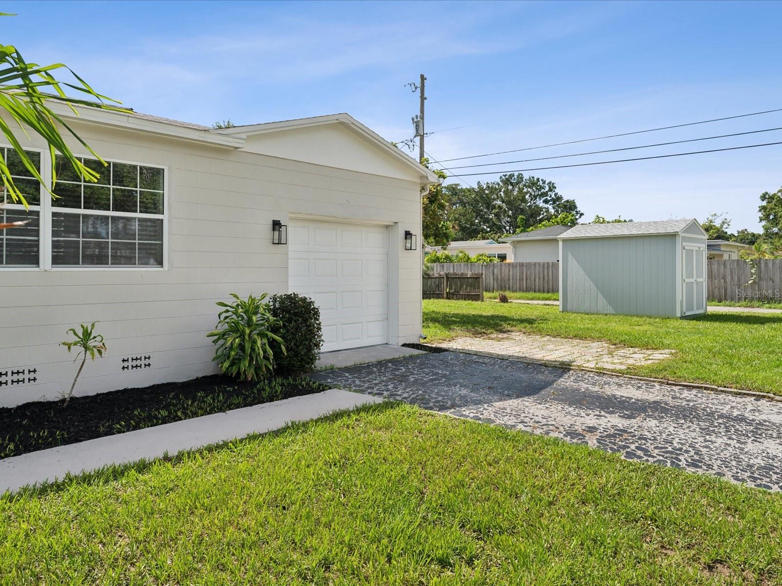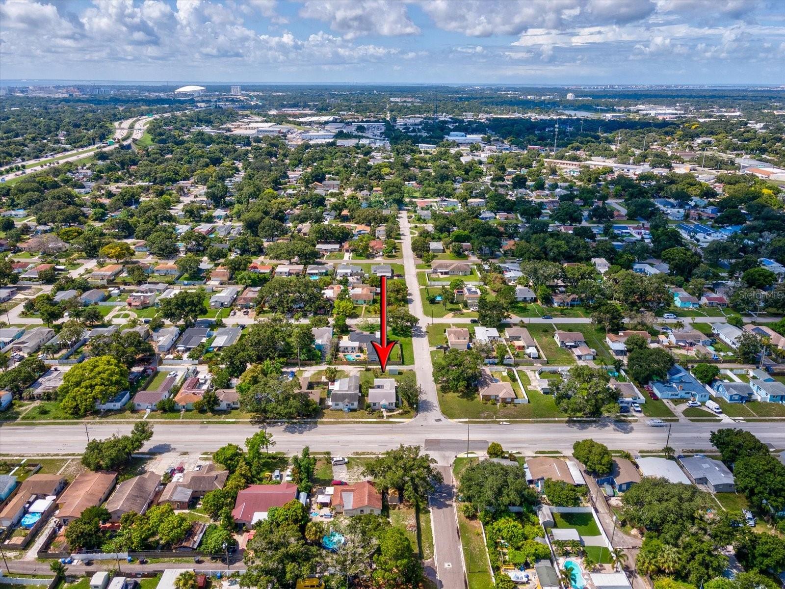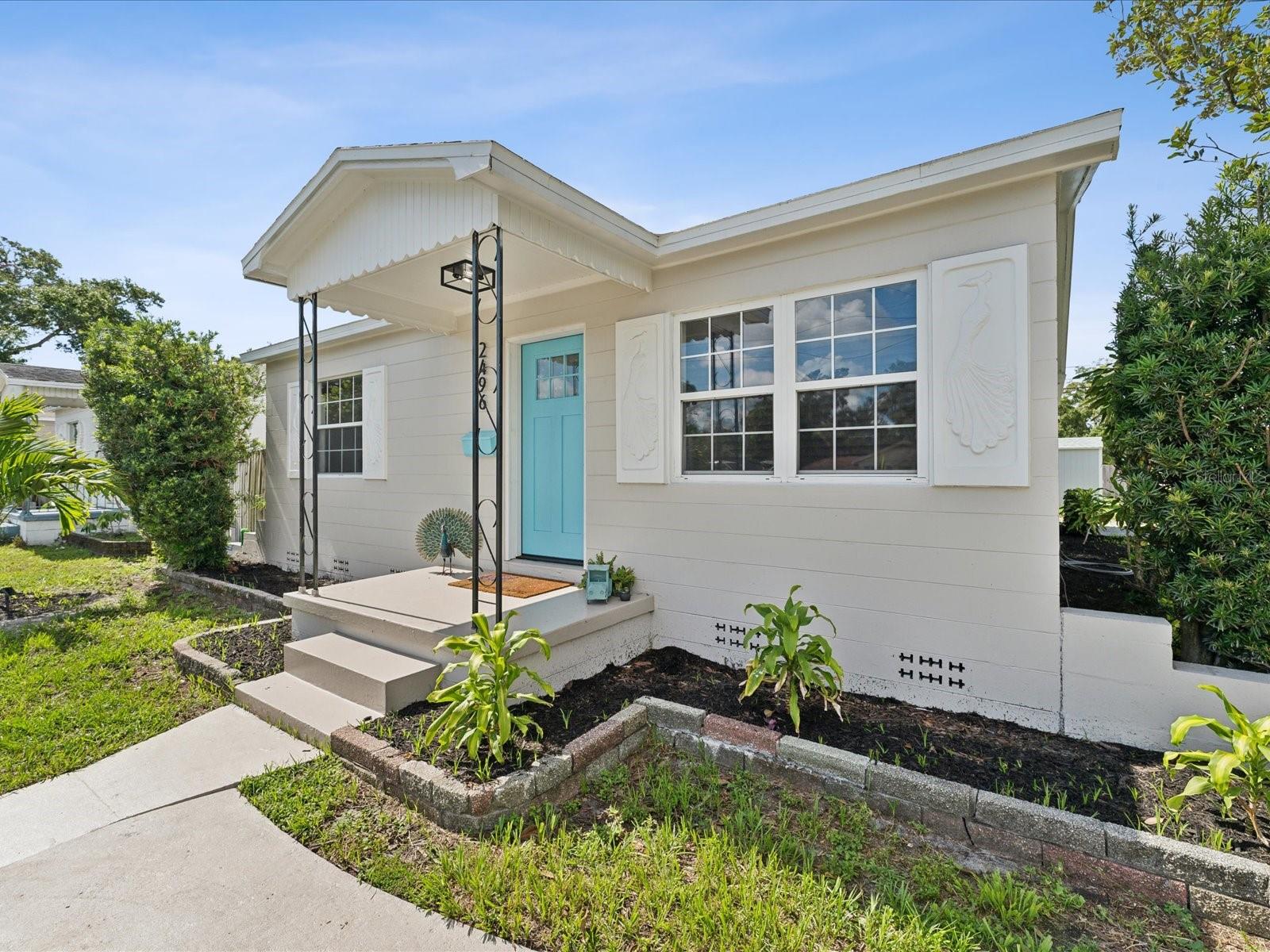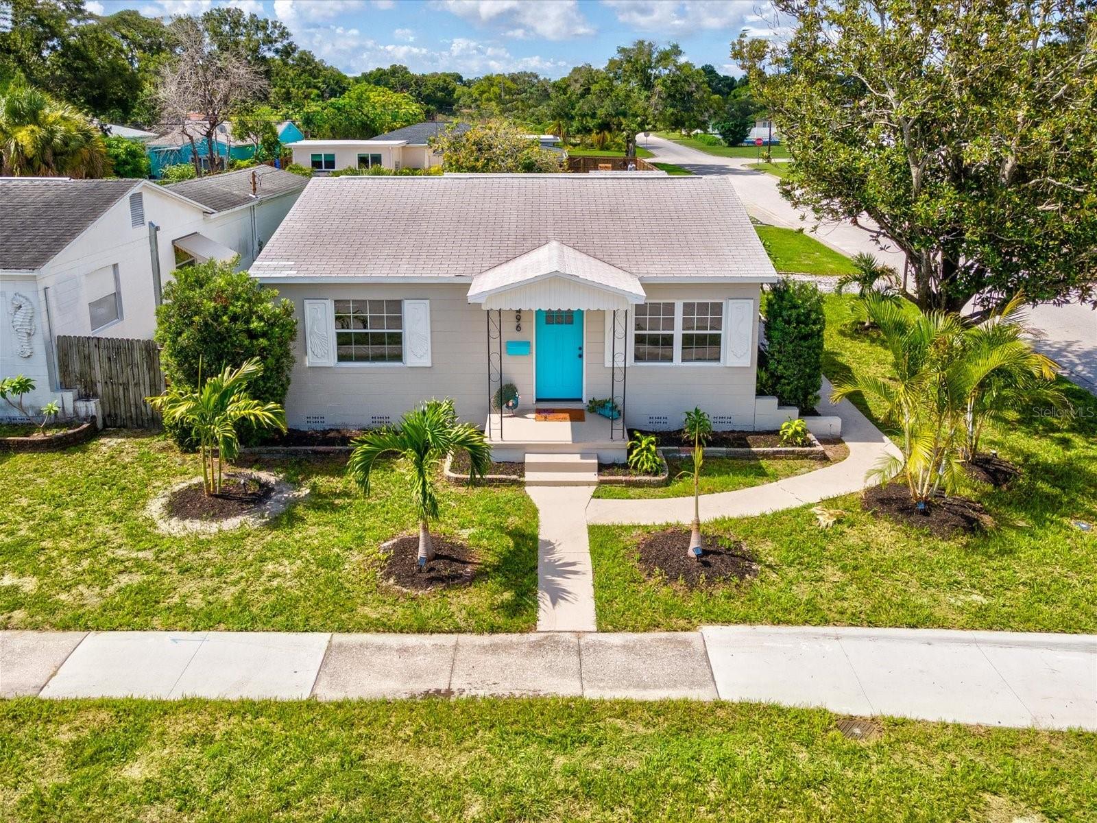 Welcome to this 1953 block home, Not in a flood zone! This home has been meticulously maintained and is located just 10 minutes from the downtown restaurants, shops, museums, waterfront, and so much more. When you enter the home you are greeted with large windows that bring in an abundant amount of natural light to the living room which has an open flow to the kitchen and dining. Each room is embraced with large windows, making each room full of Natural light. The updated kitchen has new appliances, quartz countertops, lots of storage and includes a built-in eat-in space, plus a wine fridge. The garage has its own A/C unit which was installed in 2024 and stores the washer and dryer; for those needing more space this would be a great opportunity to update this to livable space. With this being a corner lot on an alley there is plenty of room to park a boat or RV, or install a pool. If you want to hang out at a heated pool, North Shore Aquatic Center is just a quick 10-minute drive. The Gulf beaches (15-20 minutes away), Tampa International Airport (25-30 minutes away), and plenty of public golf courses are throughout the area as well. There is also the sailing community of SPYC, the MLB Rays Tropicana Field and Rowdies soccer. The location of this home is pretty spectacular, offering an excellent opportunity to live the vacation life every day or use as a rental. This home is move-in-ready. **A/C July 2024 and June 2024 garage. Tented 2024. New custom shed is included in the purchase too. The roof has a 5yr seal warrant.**