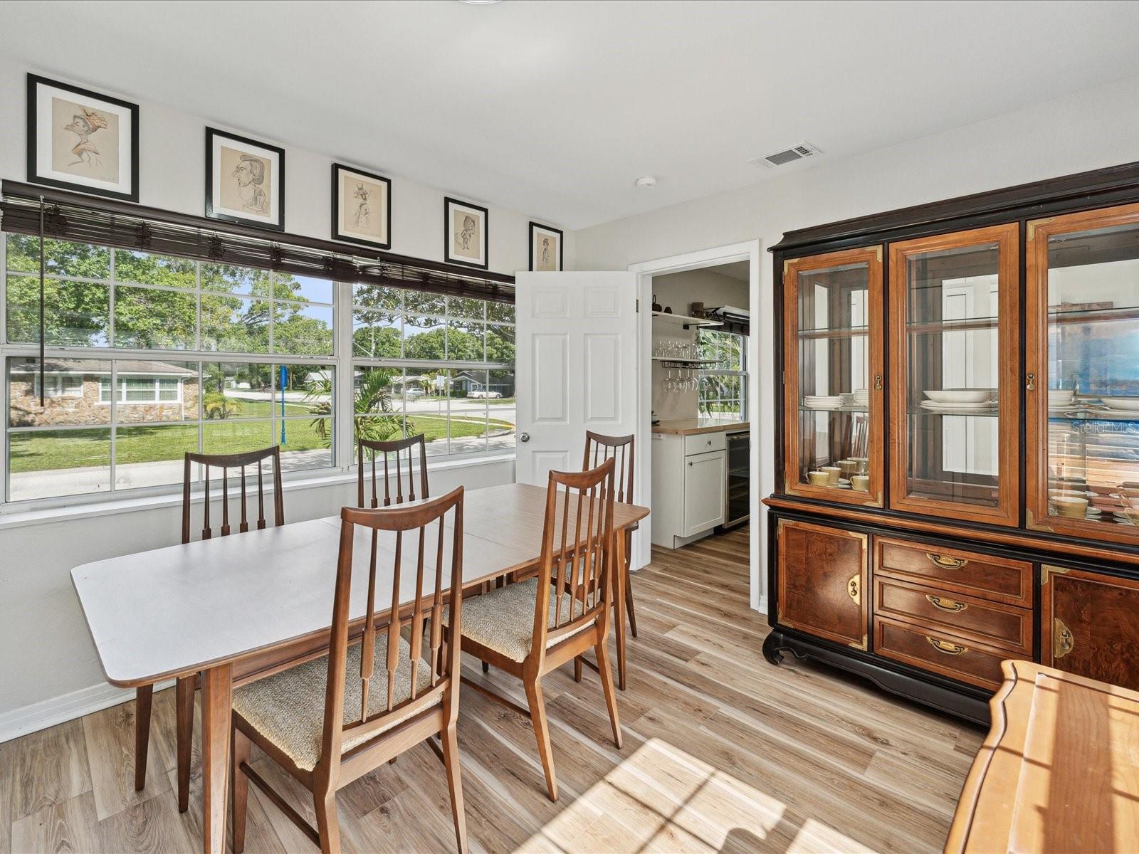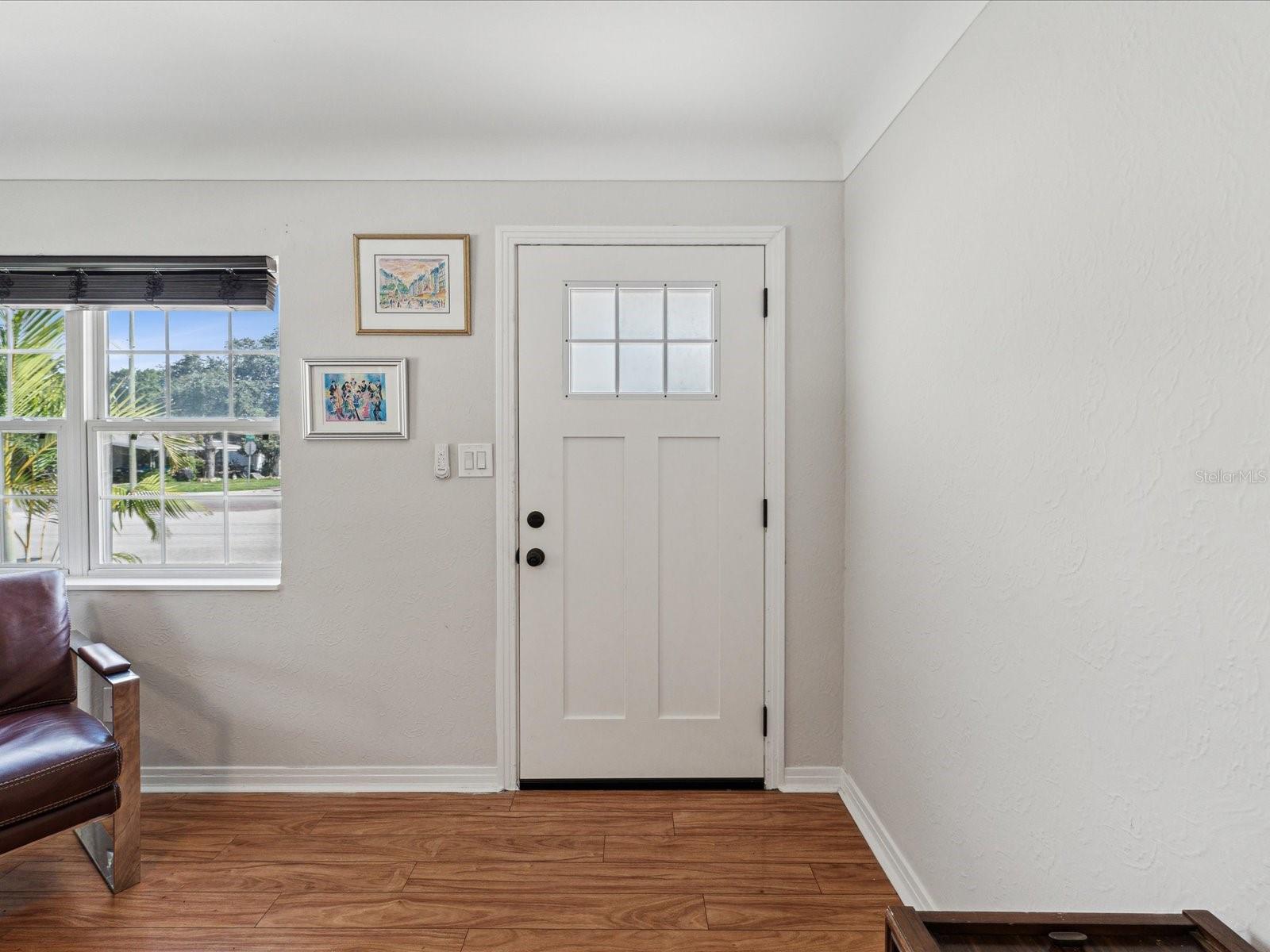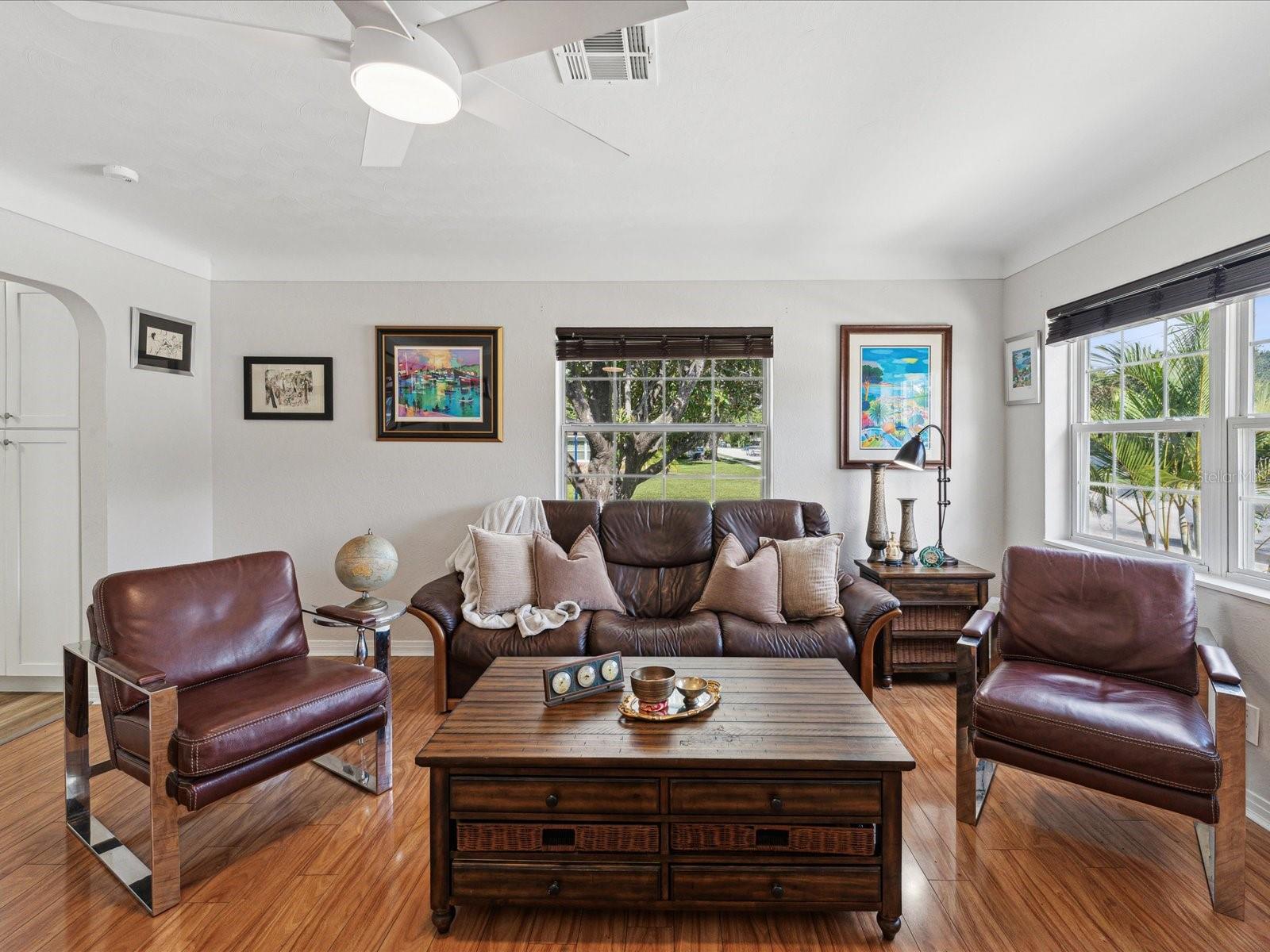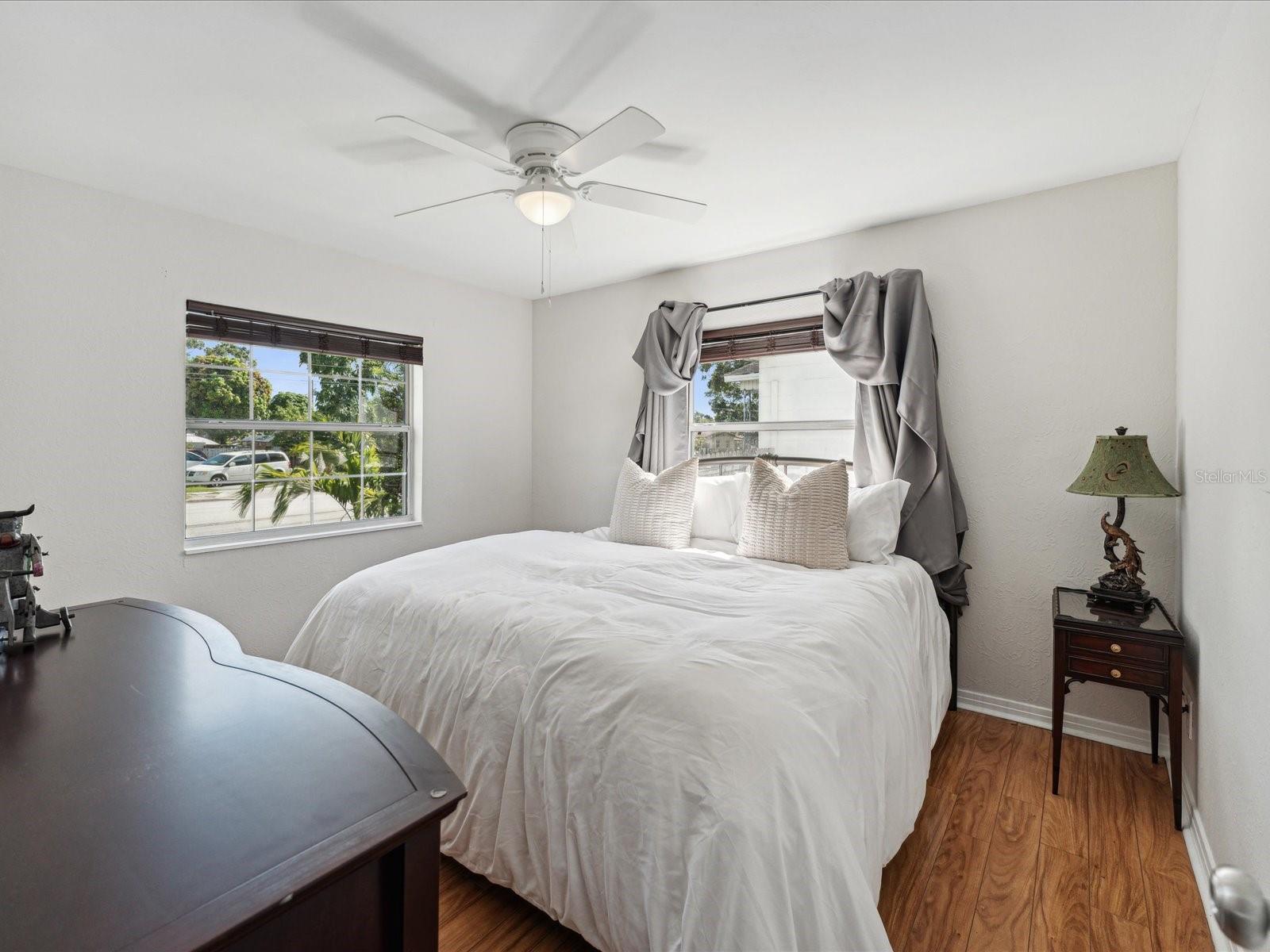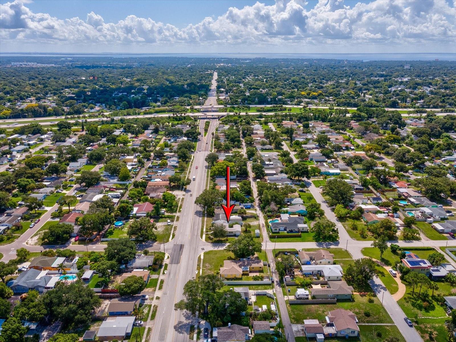 Welcome to this 1953 block home, Not in a flood zone! This home has been meticulously maintained and is located just 10 minutes from the downtown restaurants, shops, museums, waterfront, and so much more. When you enter the home you are greeted with large windows that bring in an abundant amount of natural light to the living room which has an open flow to the kitchen and dining. Each room is embraced with large windows, making each room full of Natural light. The updated kitchen has new appliances, quartz countertops, lots of storage and includes a built-in eat-in space, plus a wine fridge. The garage has its own A/C unit which was installed in 2024 and stores the washer and dryer; for those needing more space this would be a great opportunity to update this to livable space. With this being a corner lot on an alley there is plenty of room to park a boat or RV, or install a pool. If you want to hang out at a heated pool, North Shore Aquatic Center is just a quick 10-minute drive. The Gulf beaches (15-20 minutes away), Tampa International Airport (25-30 minutes away), and plenty of public golf courses are throughout the area as well. There is also the sailing community of SPYC, the MLB Rays Tropicana Field and Rowdies soccer. The location of this home is pretty spectacular, offering an excellent opportunity to live the vacation life every day or use as a rental. This home is move-in-ready. **A/C July 2024 and June 2024 garage. Tented 2024. New custom shed is included in the purchase too. The roof has a 5yr seal warrant.**