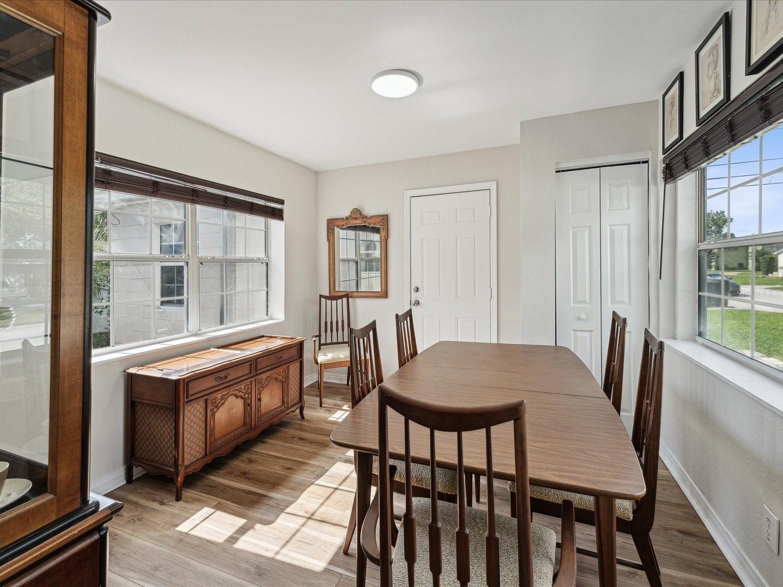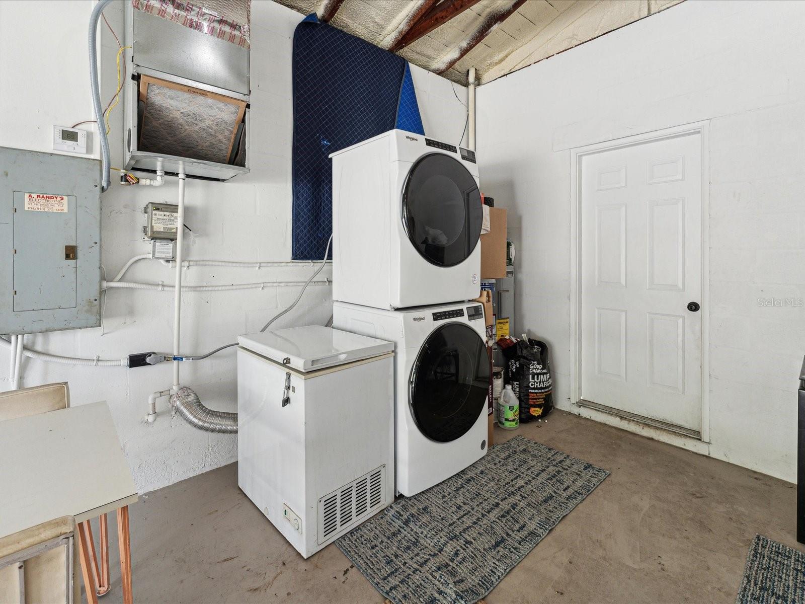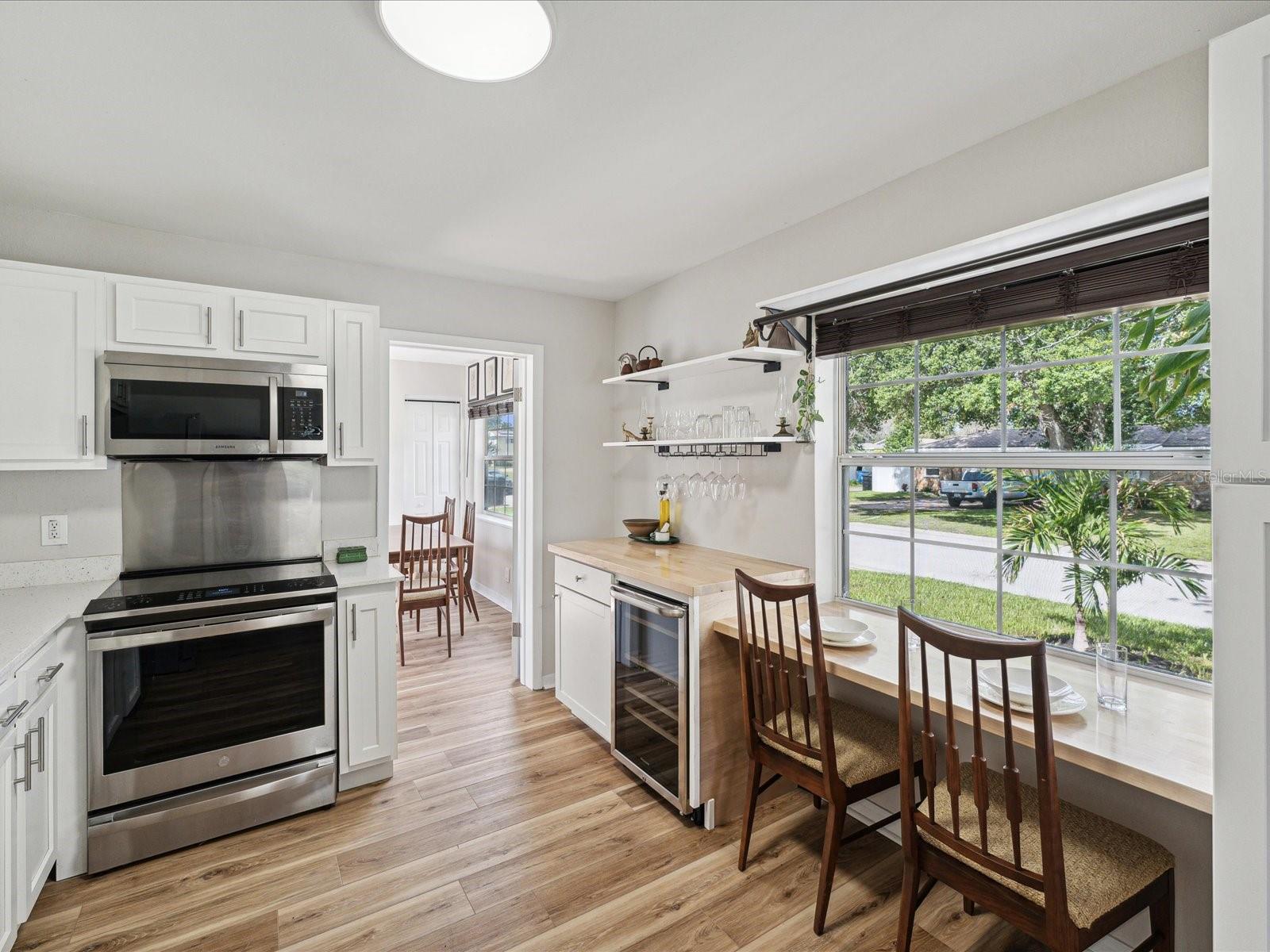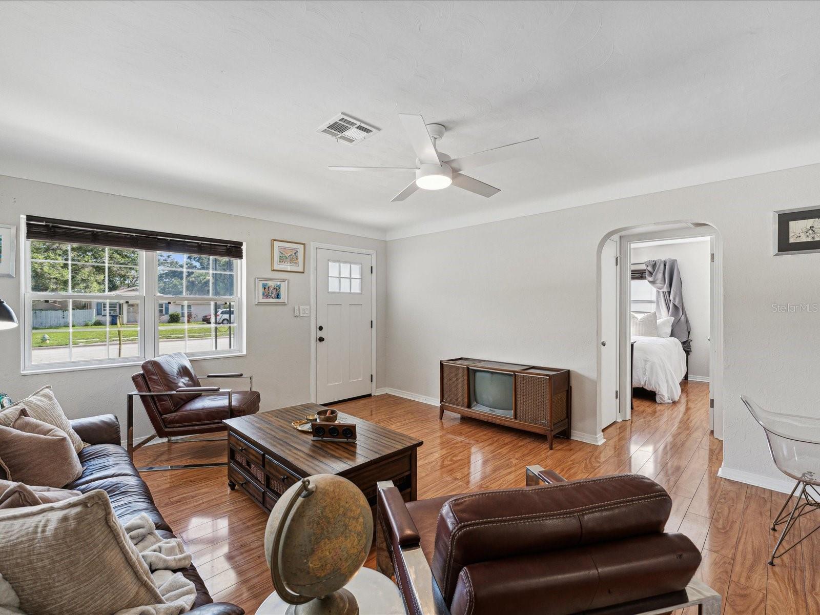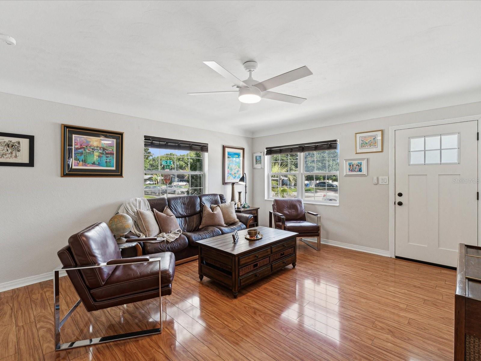 Welcome to this 1953 block home, Not in a flood zone! This home has been meticulously maintained and is located just 10 minutes from the downtown restaurants, shops, museums, waterfront, and so much more. When you enter the home you are greeted with large windows that bring in an abundant amount of natural light to the living room which has an open flow to the kitchen and dining. Each room is embraced with large windows, making each room full of Natural light. The updated kitchen has new appliances, quartz countertops, lots of storage and includes a built-in eat-in space, plus a wine fridge. The garage has its own A/C unit which was installed in 2024 and stores the washer and dryer; for those needing more space this would be a great opportunity to update this to livable space. With this being a corner lot on an alley there is plenty of room to park a boat or RV, or install a pool. If you want to hang out at a heated pool, North Shore Aquatic Center is just a quick 10-minute drive. The Gulf beaches (15-20 minutes away), Tampa International Airport (25-30 minutes away), and plenty of public golf courses are throughout the area as well. There is also the sailing community of SPYC, the MLB Rays Tropicana Field and Rowdies soccer. The location of this home is pretty spectacular, offering an excellent opportunity to live the vacation life every day or use as a rental. This home is move-in-ready. **A/C July 2024 and June 2024 garage. Tented 2024. New custom shed is included in the purchase too. The roof has a 5yr seal warrant.**