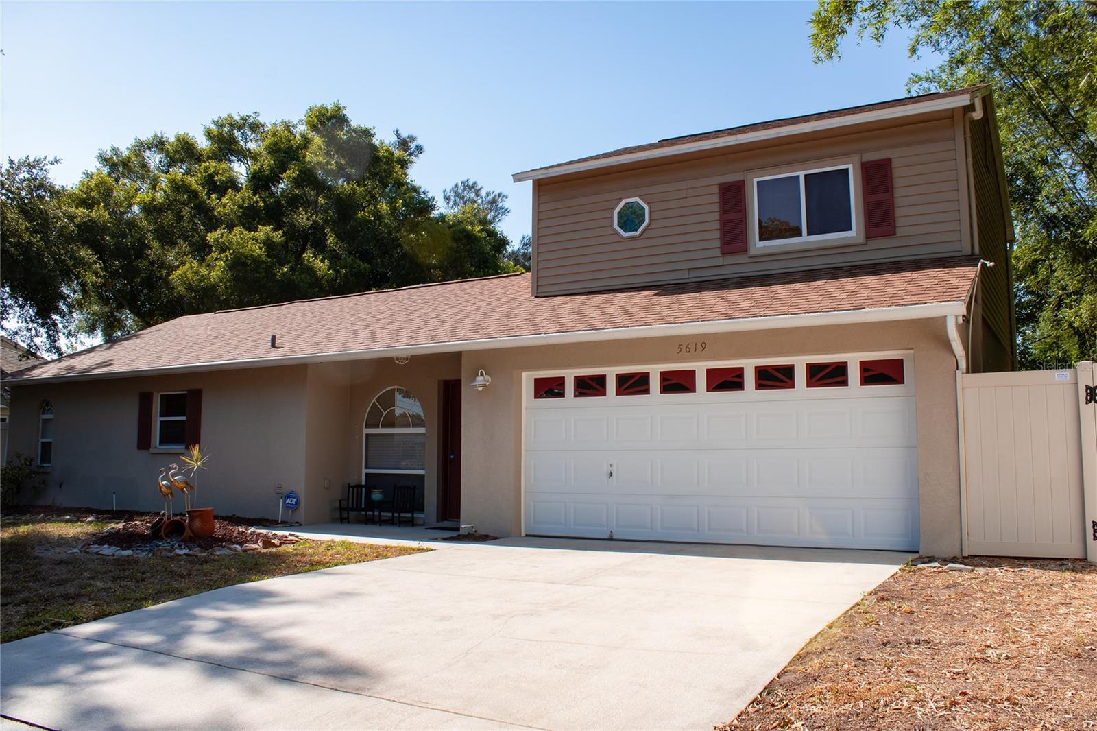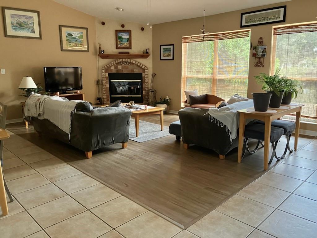 Immaculate move-in ready lakefront home. Beautiful lake views from living,dining,primary bedroom. Custom caged pool with jets,natural stone waterfall,and pavered patio. Open floor plan. Stainless steel appliances and granite countertops. Wood burning fireplace,inside laundry,and ensuite with large walk-in closet and separate linen closet. Luxury vinyl flooring and ceramic tile throughout the home. Ceiling fans with lighting in all bedrooms,great room and patio. Two car attached garage with built in storage shelving. Upgraded roof in 2020. Vinyl fencing with two gates. Leaf Guard gutters. Sprinkler system. ADT security system on all entry points. Separate camera surveillance system. Transferable termite bond.