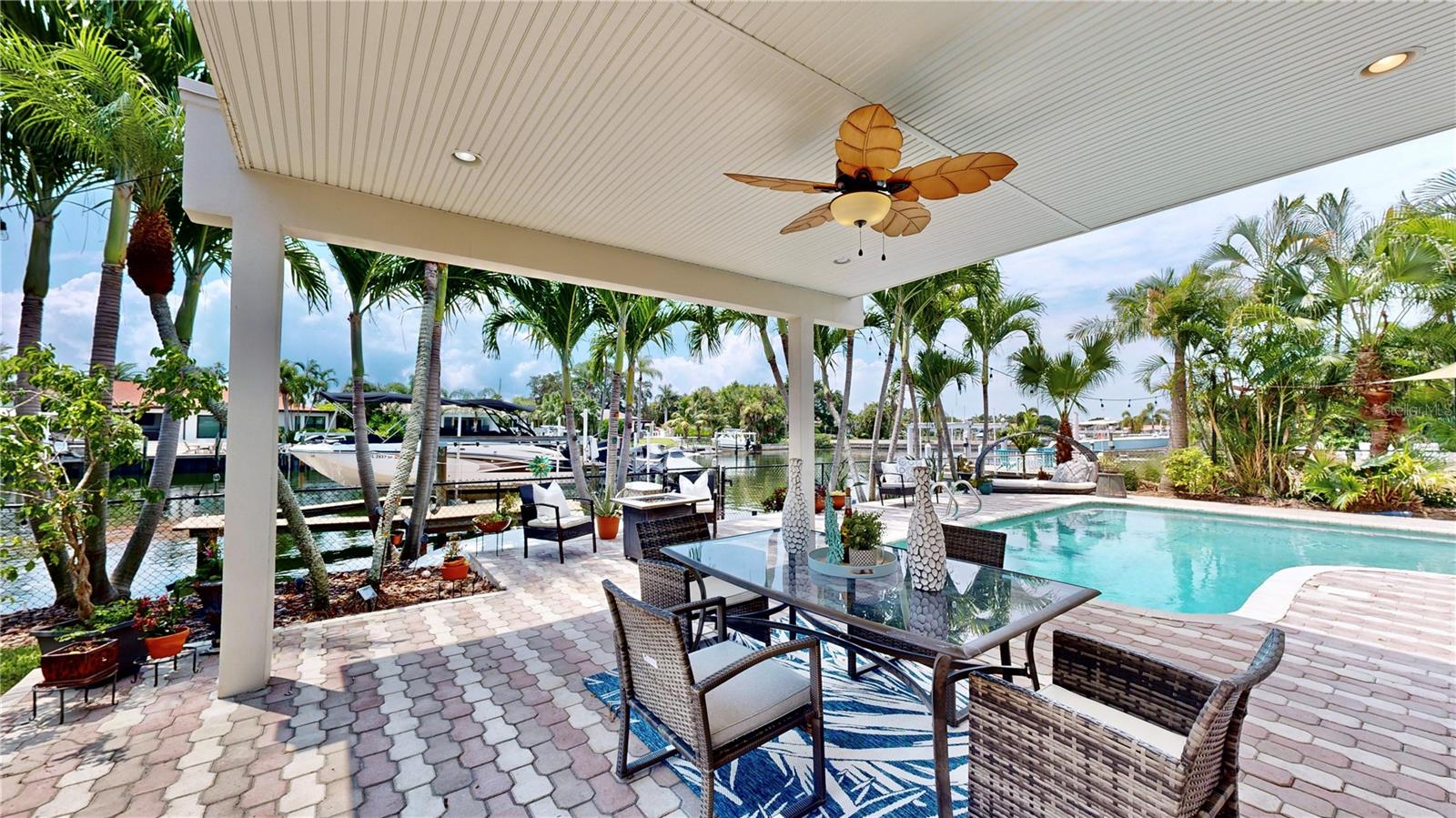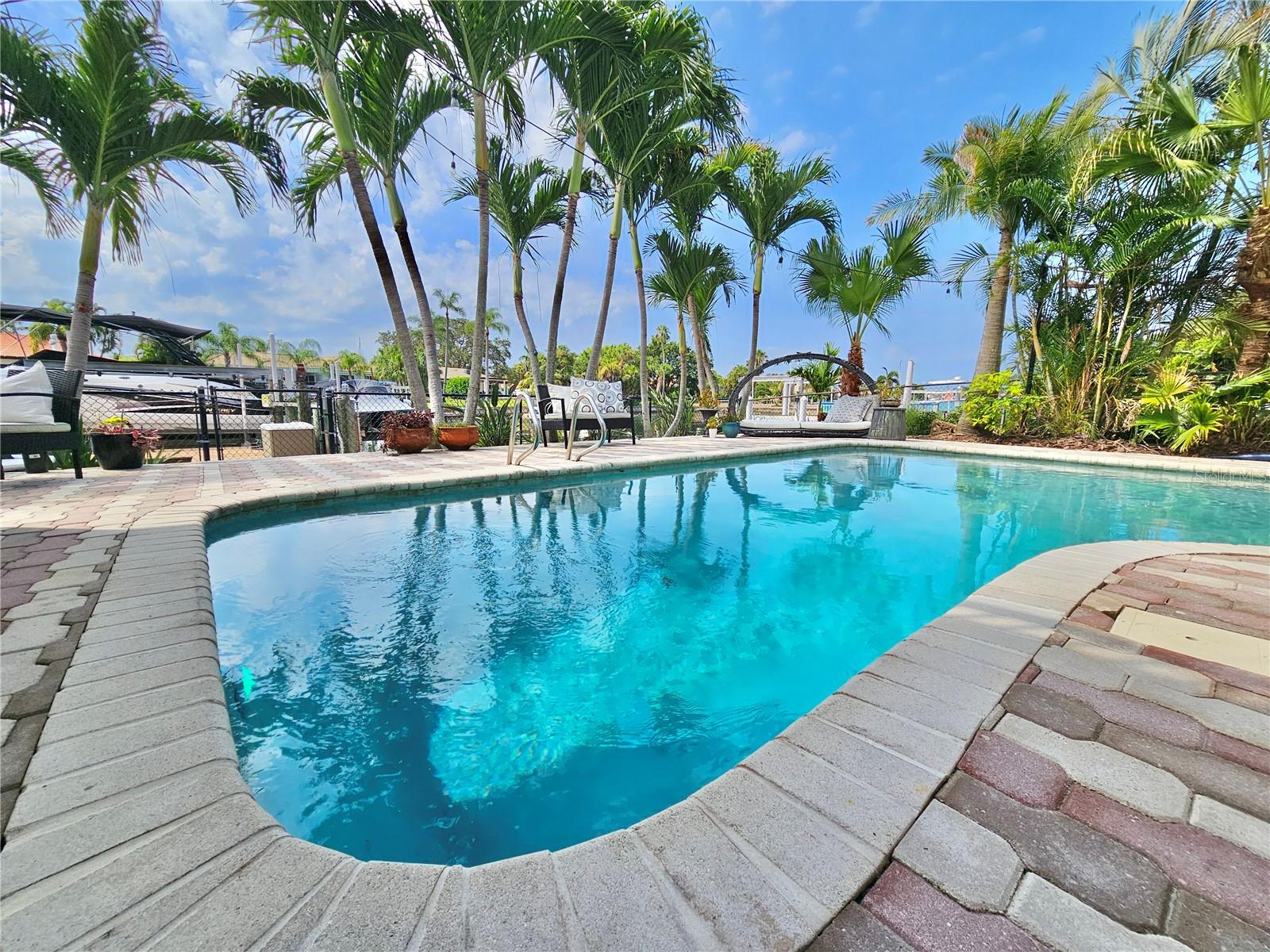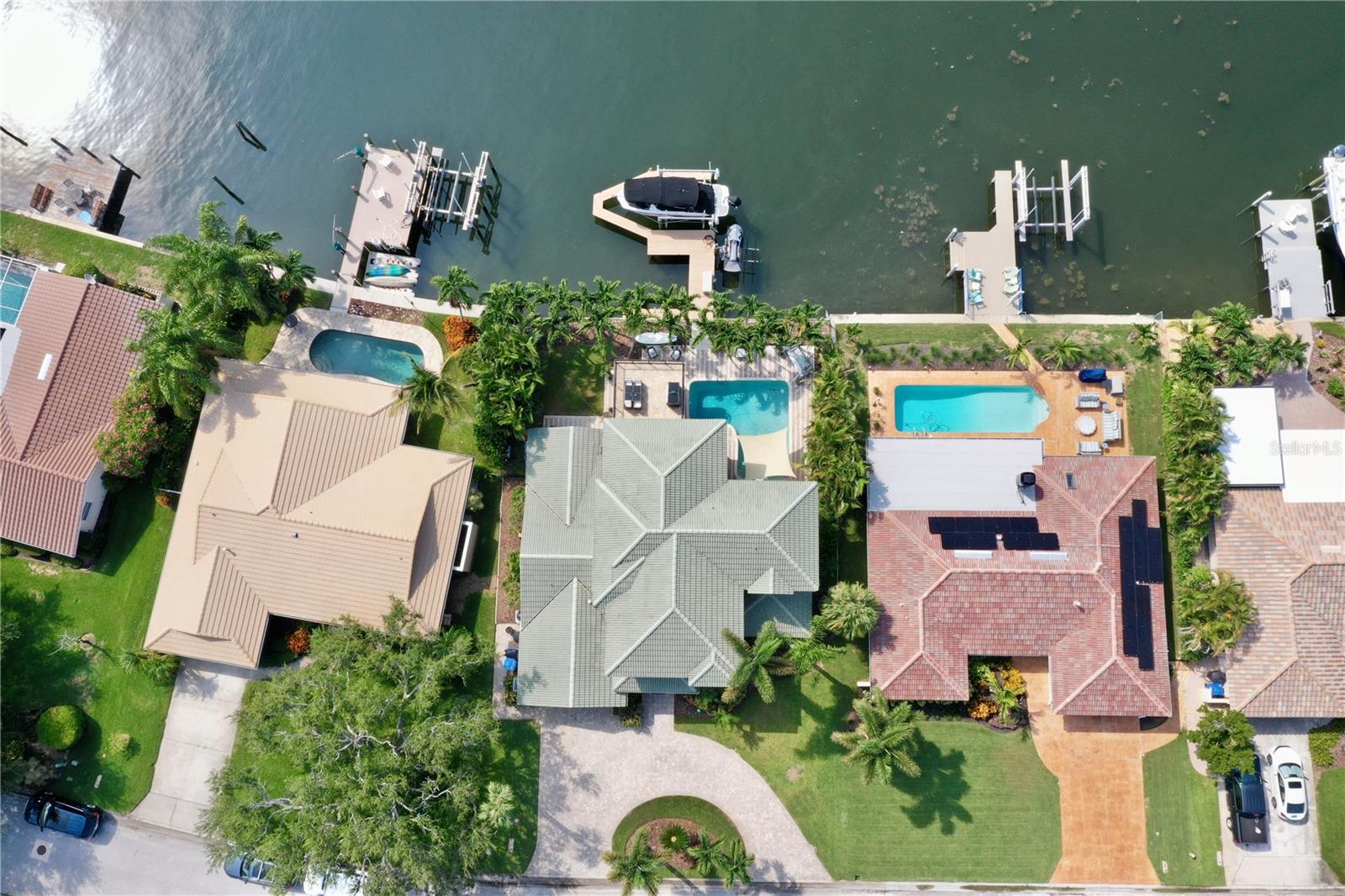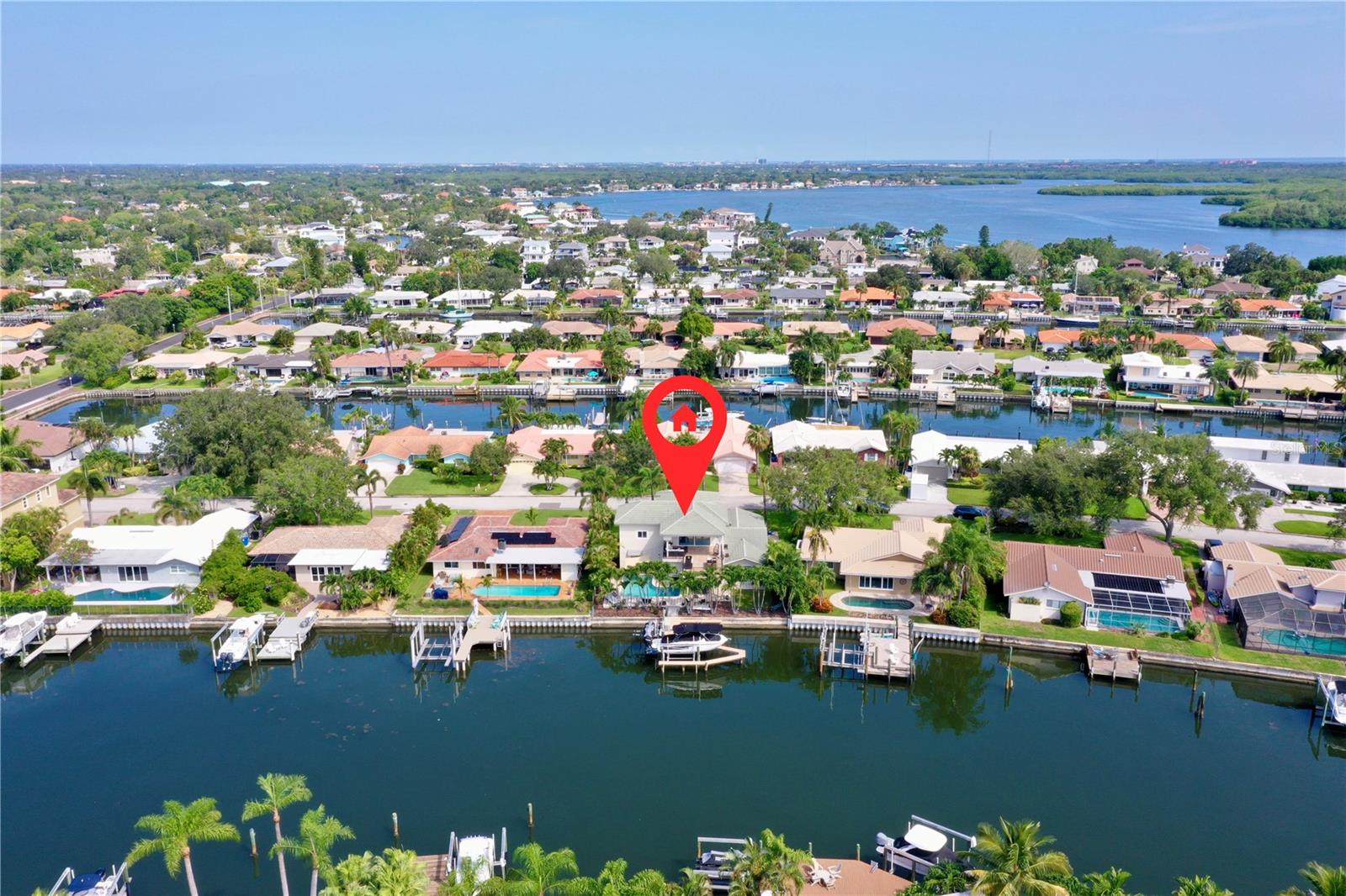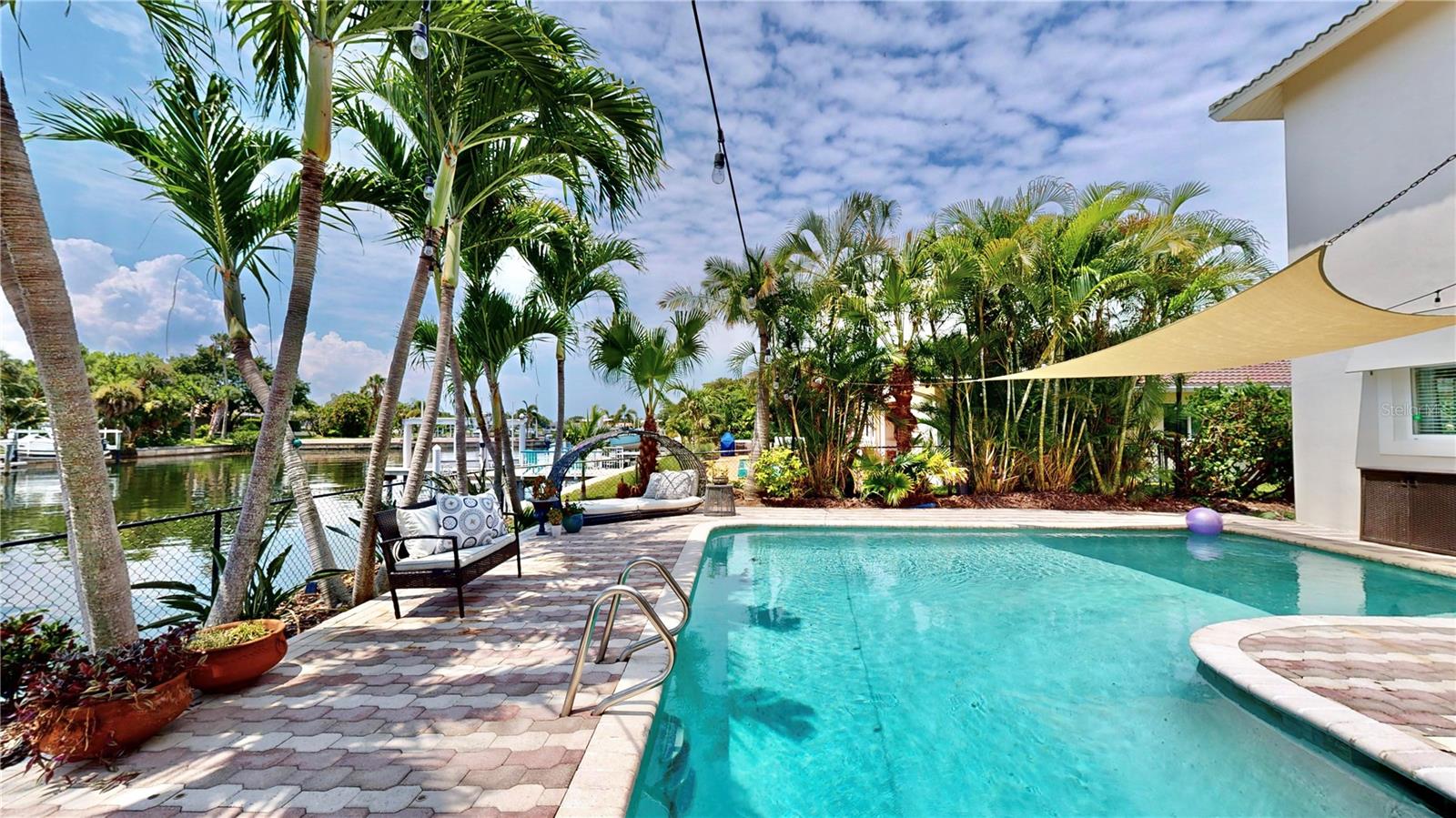 Welcome to your waterfront paradise in Venetian Isles! LIMITED TIME PRICE REDUCTION! The current price reflects the home being sold as-is. Minimal water intrusion from hurricane Helene. Home was dried out and remediated immediately. Remediation includes flooring and drywall removed as well as professionally dried. This stunning Mediterranean-style home is perfectly situated on 74.4 feet of deep sailboat water with no bridges to the Bay or Gulf, offering unparalleled access for boating enthusiasts. Enjoy breathtaking panoramic water views, downtown views, and stunning sunrise views from the large upstairs balcony and backyard living area. As you step into the home, you'll be greeted by the light-filled entrance with soaring ceilings creating a peaceful open and airy feel. The heart of this home is the centrally located kitchen, perfect for everyone to gather. It's a dream for anyone who loves to cook and create, with massive granite countertops, updated stainless steel appliances, and solid wood cabinets. There is plenty of space to cook and enjoy your favorite meals. The kitchen opens up to two large living areas and a breakfast nook, with amazing views of the water. Downstairs, the home has a smart split bedroom plan with 4 bedrooms and 2 full bathrooms. Two of the bedrooms have custom paint and one of them has a murphy bed. Upstairs, you’ll discover a tranquil loft space that seamlessly transitions into the primary suite. With plenty of natural light, Brazilian Cherry Hardwood floors and an open layout, this comfortable space offers a serene environment for any use, whether it’s for work, reading, or simply lounging. The private owner's suite is a truly luxurious retreat. It has two granite vanities, a two-person jetted spa tub, a seamless glass shower, separate toilet and two large walk-in closets. The owner's suite opens to a huge 600 sq ft balcony where you can enjoy both the sunrise and seasonal sunset looking out over your sanctuary. It’s the perfect space for entertaining and enjoying a beverage at the beginning and end of the day. The balcony has both covered and uncovered portions for versatile outdoor enjoyment. The backyard area is perfect for anyone who loves the water. The large dock features two lifts – one for a larger boat and a new jet-ski lift that holds two small watercraft. There's also a glistening, heated saltwater pool surrounded by beautiful pavers. The tropical backyard is great for entertaining with string lights, canopies for shade, and plenty of space to relax and dine outside. The home is situated on a cul-de-sac street and has a U-shaped driveway for extra convenience. Location is everything, and this home delivers. It’s a short boat or bike ride to downtown St. Pete, where you can enjoy all the city has to enjoy. Paddle or boat to Weedon Island for a day of adventure. You might even see dolphins and manatees in your backyard! Recent updates make this home even more special. There's fresh paint inside and out, new ceiling fans, smart locks and lighting systems, recessed lighting in all living areas, and a custom garage with epoxy flooring and cabinets, plus mirrors installed for working out. Additional features include tropical privacy landscaping, hard-wired security cameras, and both tubs in the house are jetted. This home is part of a voluntary HOA with deed restrictions, ensuring a well-maintained community. Elevation Certificate available.