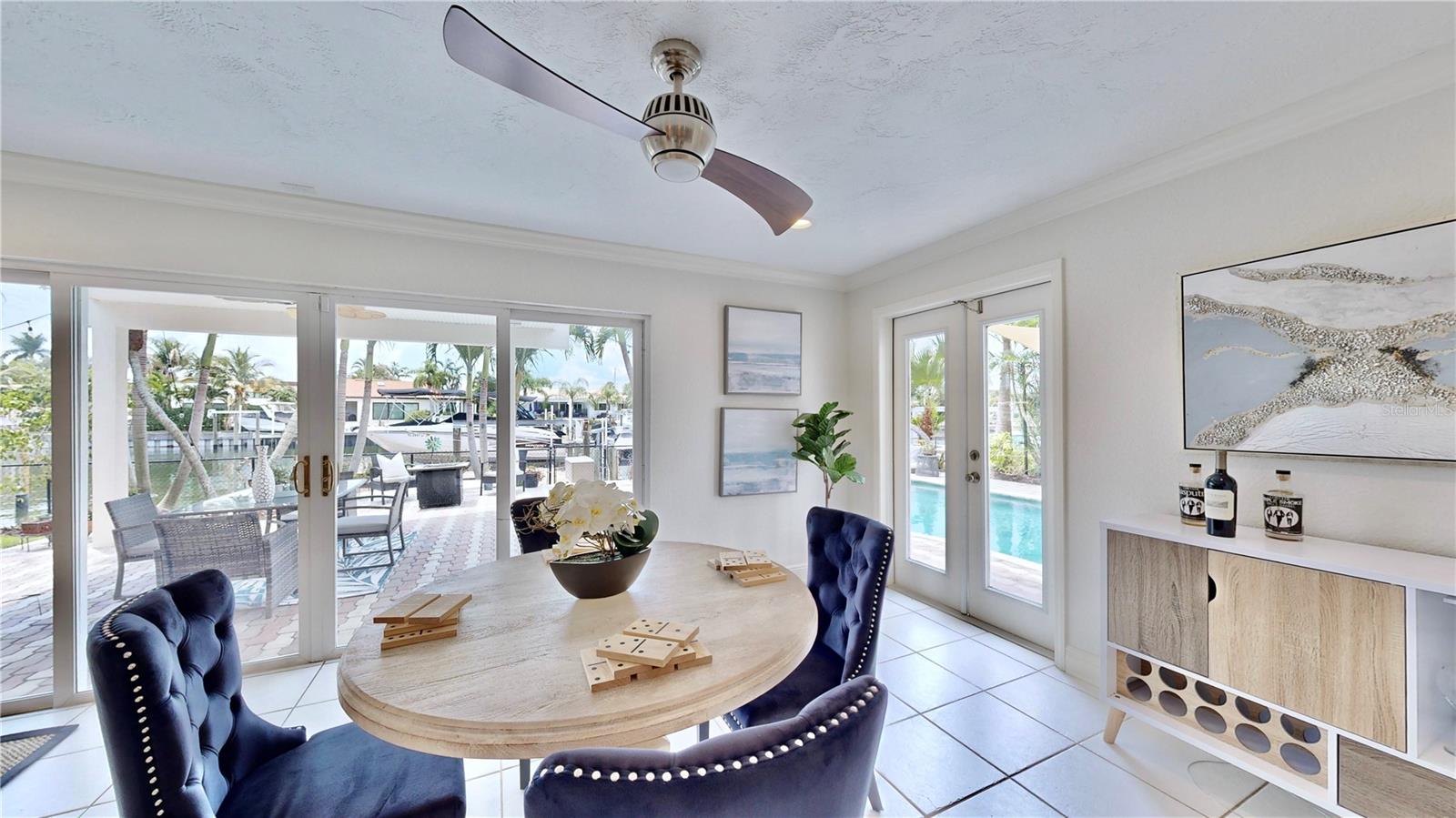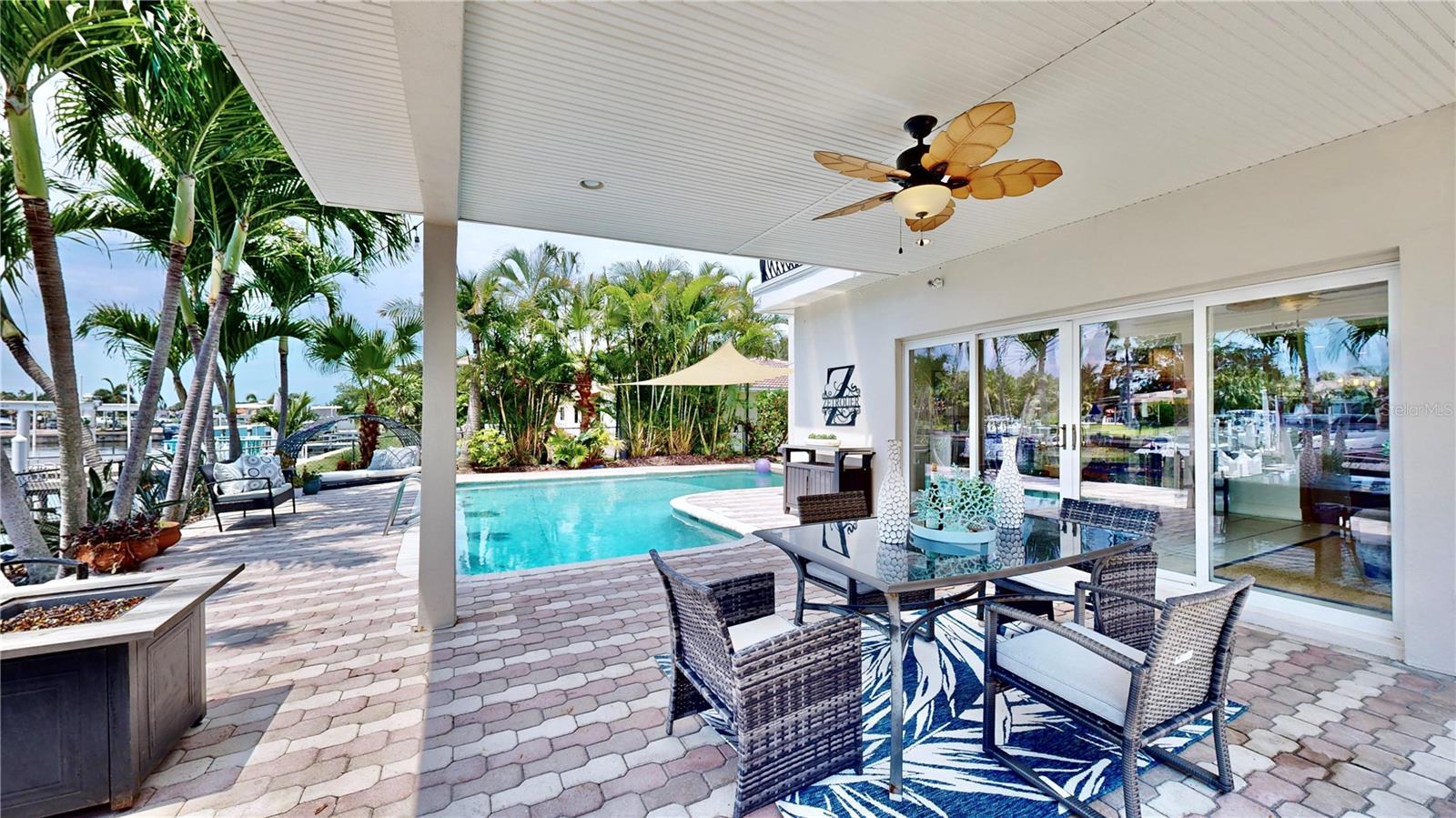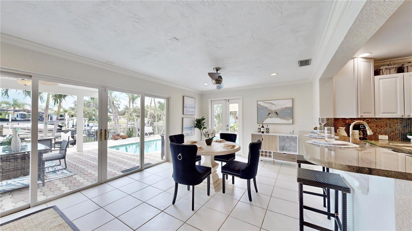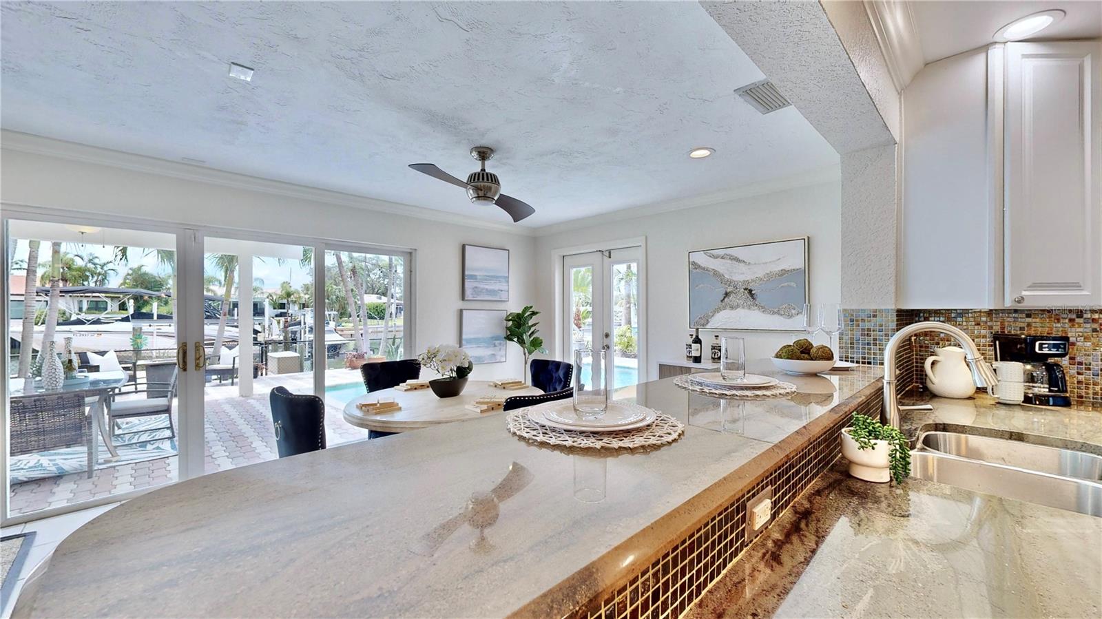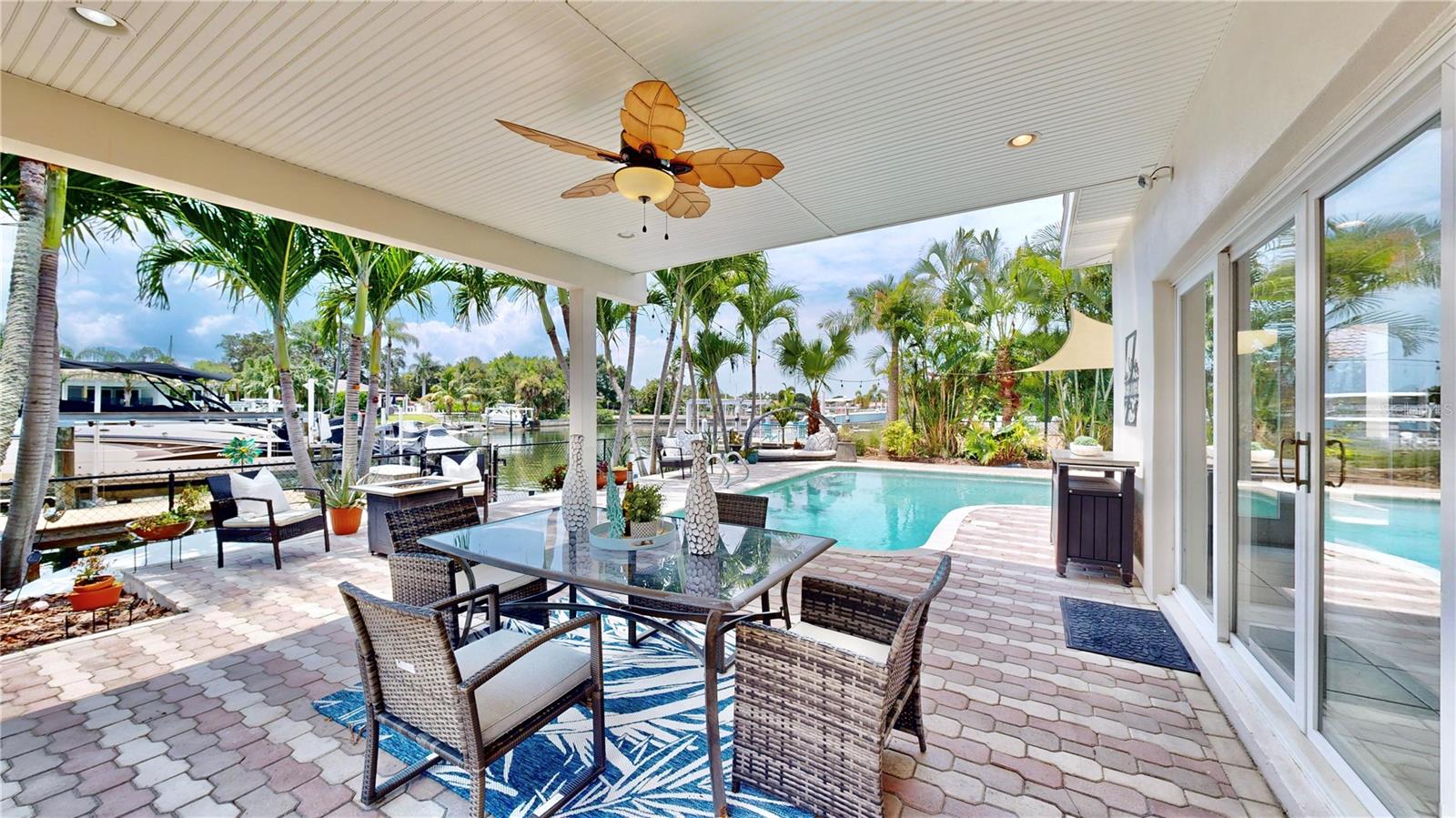 Welcome to your waterfront paradise in Venetian Isles! LIMITED TIME PRICE REDUCTION! The current price reflects the home being sold as-is. Minimal water intrusion from hurricane Helene. Home was dried out and remediated immediately. Remediation includes flooring and drywall removed as well as professionally dried. This stunning Mediterranean-style home is perfectly situated on 74.4 feet of deep sailboat water with no bridges to the Bay or Gulf, offering unparalleled access for boating enthusiasts. Enjoy breathtaking panoramic water views, downtown views, and stunning sunrise views from the large upstairs balcony and backyard living area. As you step into the home, you'll be greeted by the light-filled entrance with soaring ceilings creating a peaceful open and airy feel. The heart of this home is the centrally located kitchen, perfect for everyone to gather. It's a dream for anyone who loves to cook and create, with massive granite countertops, updated stainless steel appliances, and solid wood cabinets. There is plenty of space to cook and enjoy your favorite meals. The kitchen opens up to two large living areas and a breakfast nook, with amazing views of the water. Downstairs, the home has a smart split bedroom plan with 4 bedrooms and 2 full bathrooms. Two of the bedrooms have custom paint and one of them has a murphy bed. Upstairs, you’ll discover a tranquil loft space that seamlessly transitions into the primary suite. With plenty of natural light, Brazilian Cherry Hardwood floors and an open layout, this comfortable space offers a serene environment for any use, whether it’s for work, reading, or simply lounging. The private owner's suite is a truly luxurious retreat. It has two granite vanities, a two-person jetted spa tub, a seamless glass shower, separate toilet and two large walk-in closets. The owner's suite opens to a huge 600 sq ft balcony where you can enjoy both the sunrise and seasonal sunset looking out over your sanctuary. It’s the perfect space for entertaining and enjoying a beverage at the beginning and end of the day. The balcony has both covered and uncovered portions for versatile outdoor enjoyment. The backyard area is perfect for anyone who loves the water. The large dock features two lifts – one for a larger boat and a new jet-ski lift that holds two small watercraft. There's also a glistening, heated saltwater pool surrounded by beautiful pavers. The tropical backyard is great for entertaining with string lights, canopies for shade, and plenty of space to relax and dine outside. The home is situated on a cul-de-sac street and has a U-shaped driveway for extra convenience. Location is everything, and this home delivers. It’s a short boat or bike ride to downtown St. Pete, where you can enjoy all the city has to enjoy. Paddle or boat to Weedon Island for a day of adventure. You might even see dolphins and manatees in your backyard! Recent updates make this home even more special. There's fresh paint inside and out, new ceiling fans, smart locks and lighting systems, recessed lighting in all living areas, and a custom garage with epoxy flooring and cabinets, plus mirrors installed for working out. Additional features include tropical privacy landscaping, hard-wired security cameras, and both tubs in the house are jetted. This home is part of a voluntary HOA with deed restrictions, ensuring a well-maintained community. Elevation Certificate available.