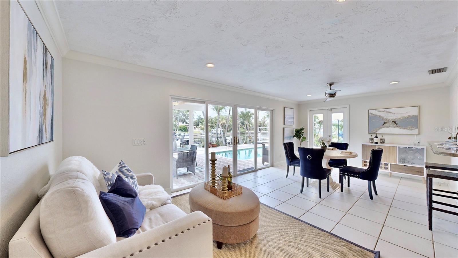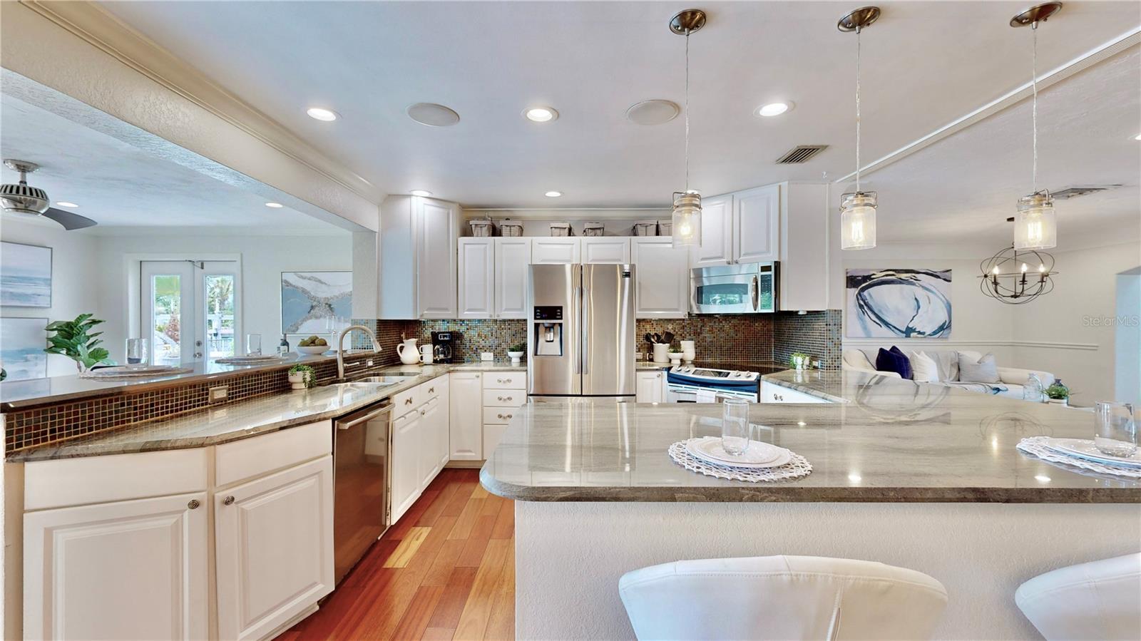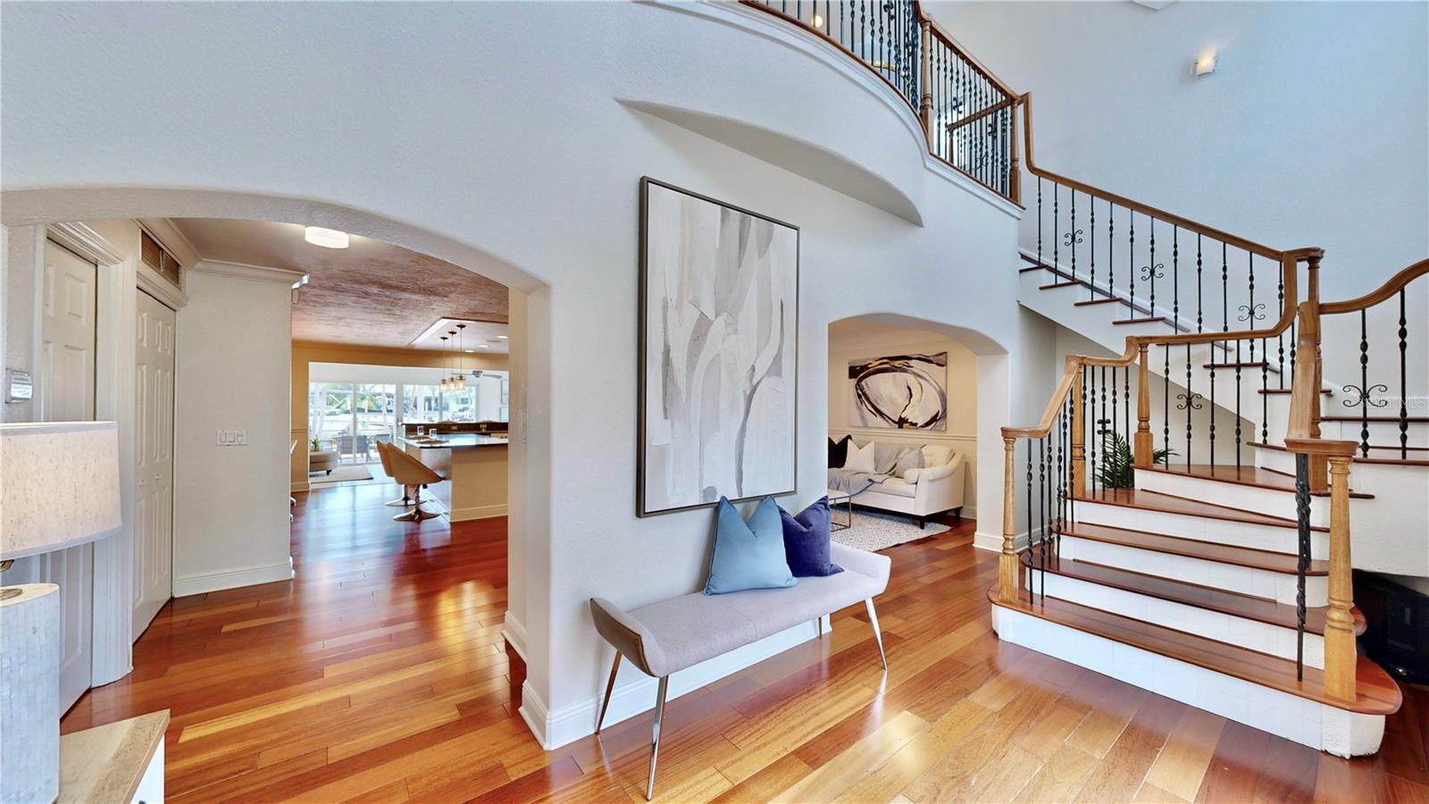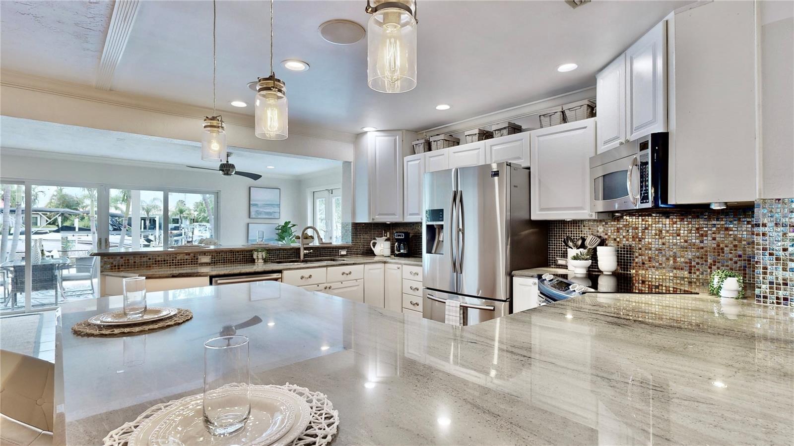 Welcome to your waterfront paradise in Venetian Isles! LIMITED TIME PRICE REDUCTION! The current price reflects the home being sold as-is. Minimal water intrusion from hurricane Helene. Home was dried out and remediated immediately. Remediation includes flooring and drywall removed as well as professionally dried. This stunning Mediterranean-style home is perfectly situated on 74.4 feet of deep sailboat water with no bridges to the Bay or Gulf, offering unparalleled access for boating enthusiasts. Enjoy breathtaking panoramic water views, downtown views, and stunning sunrise views from the large upstairs balcony and backyard living area. As you step into the home, you'll be greeted by the light-filled entrance with soaring ceilings creating a peaceful open and airy feel. The heart of this home is the centrally located kitchen, perfect for everyone to gather. It's a dream for anyone who loves to cook and create, with massive granite countertops, updated stainless steel appliances, and solid wood cabinets. There is plenty of space to cook and enjoy your favorite meals. The kitchen opens up to two large living areas and a breakfast nook, with amazing views of the water. Downstairs, the home has a smart split bedroom plan with 4 bedrooms and 2 full bathrooms. Two of the bedrooms have custom paint and one of them has a murphy bed. Upstairs, you’ll discover a tranquil loft space that seamlessly transitions into the primary suite. With plenty of natural light, Brazilian Cherry Hardwood floors and an open layout, this comfortable space offers a serene environment for any use, whether it’s for work, reading, or simply lounging. The private owner's suite is a truly luxurious retreat. It has two granite vanities, a two-person jetted spa tub, a seamless glass shower, separate toilet and two large walk-in closets. The owner's suite opens to a huge 600 sq ft balcony where you can enjoy both the sunrise and seasonal sunset looking out over your sanctuary. It’s the perfect space for entertaining and enjoying a beverage at the beginning and end of the day. The balcony has both covered and uncovered portions for versatile outdoor enjoyment. The backyard area is perfect for anyone who loves the water. The large dock features two lifts – one for a larger boat and a new jet-ski lift that holds two small watercraft. There's also a glistening, heated saltwater pool surrounded by beautiful pavers. The tropical backyard is great for entertaining with string lights, canopies for shade, and plenty of space to relax and dine outside. The home is situated on a cul-de-sac street and has a U-shaped driveway for extra convenience. Location is everything, and this home delivers. It’s a short boat or bike ride to downtown St. Pete, where you can enjoy all the city has to enjoy. Paddle or boat to Weedon Island for a day of adventure. You might even see dolphins and manatees in your backyard! Recent updates make this home even more special. There's fresh paint inside and out, new ceiling fans, smart locks and lighting systems, recessed lighting in all living areas, and a custom garage with epoxy flooring and cabinets, plus mirrors installed for working out. Additional features include tropical privacy landscaping, hard-wired security cameras, and both tubs in the house are jetted. This home is part of a voluntary HOA with deed restrictions, ensuring a well-maintained community. Elevation Certificate available.