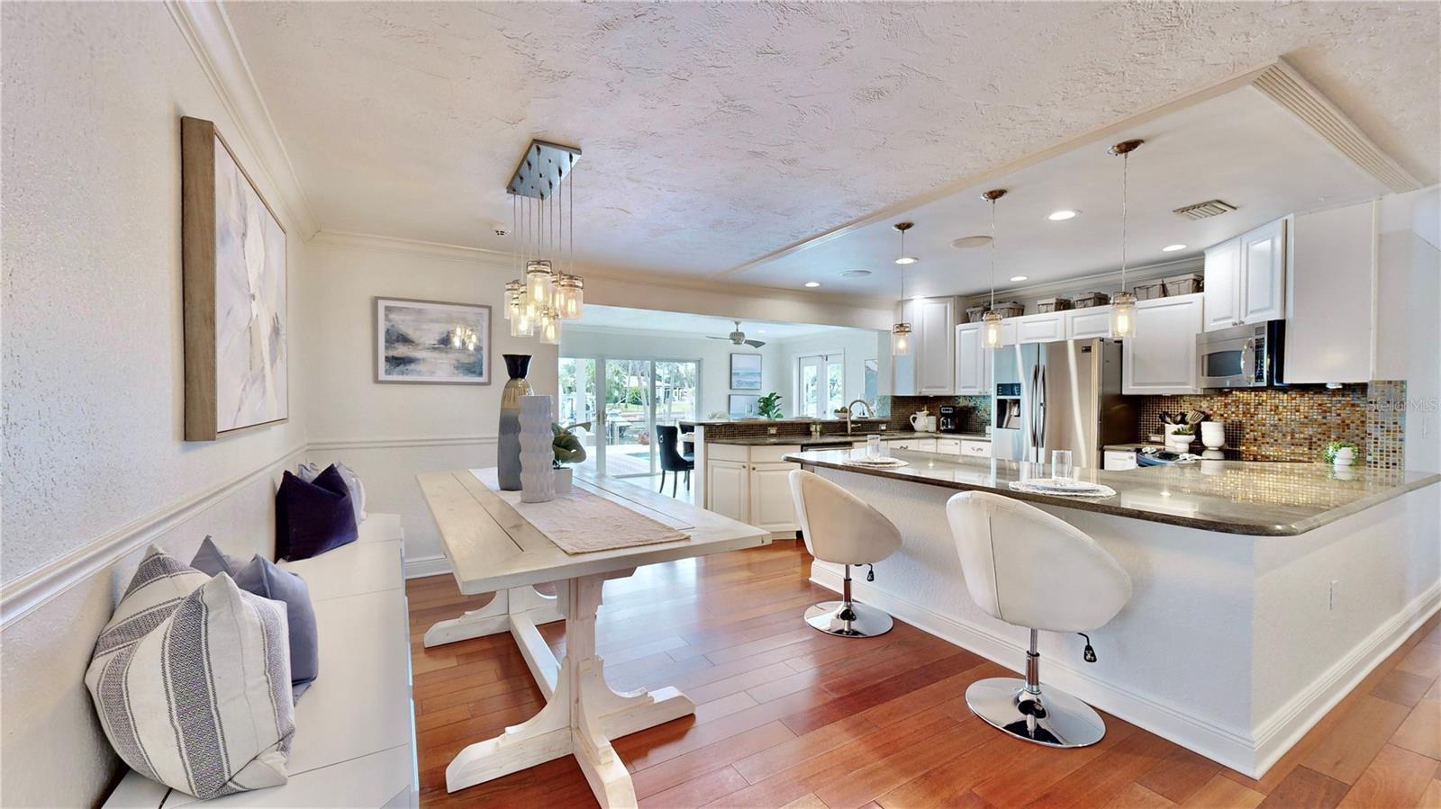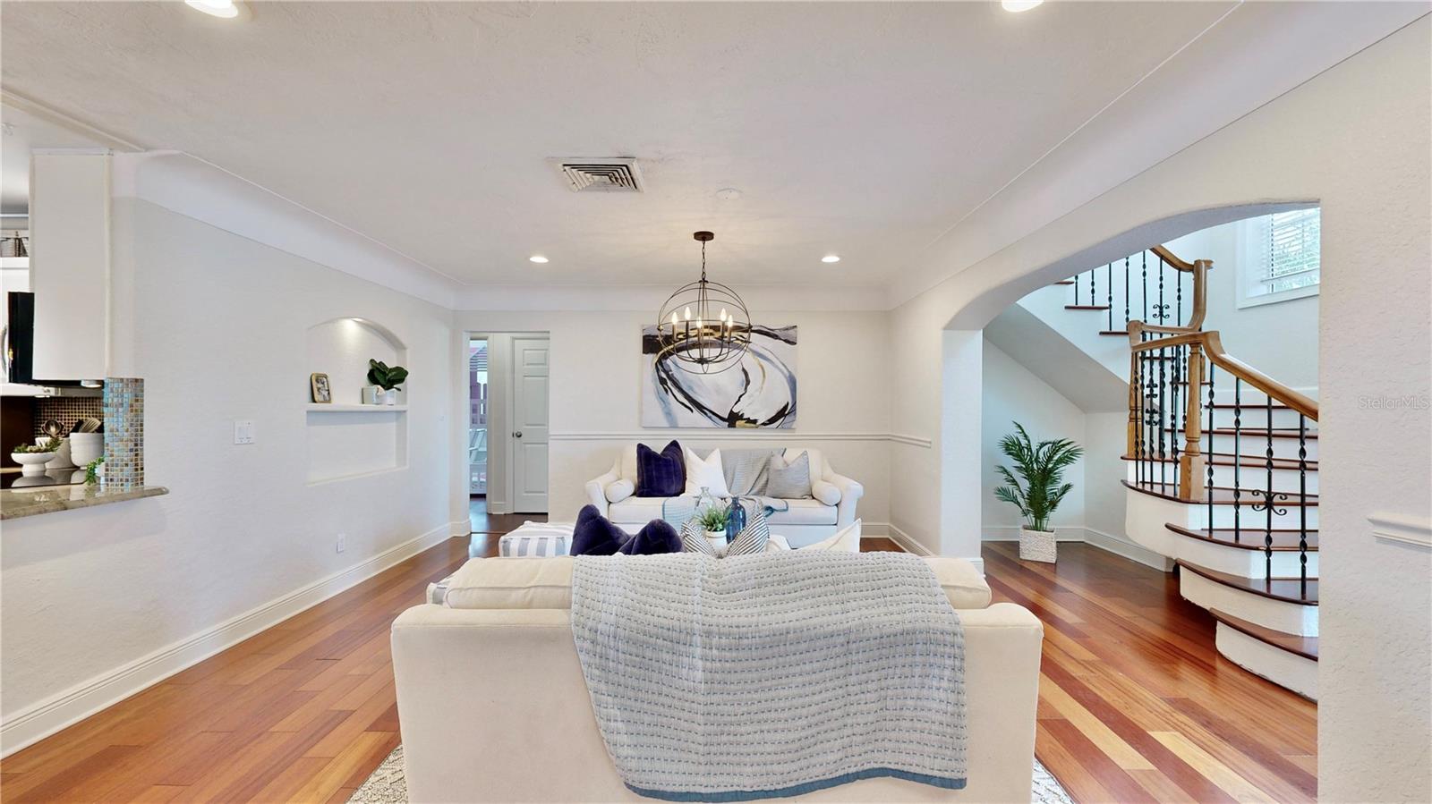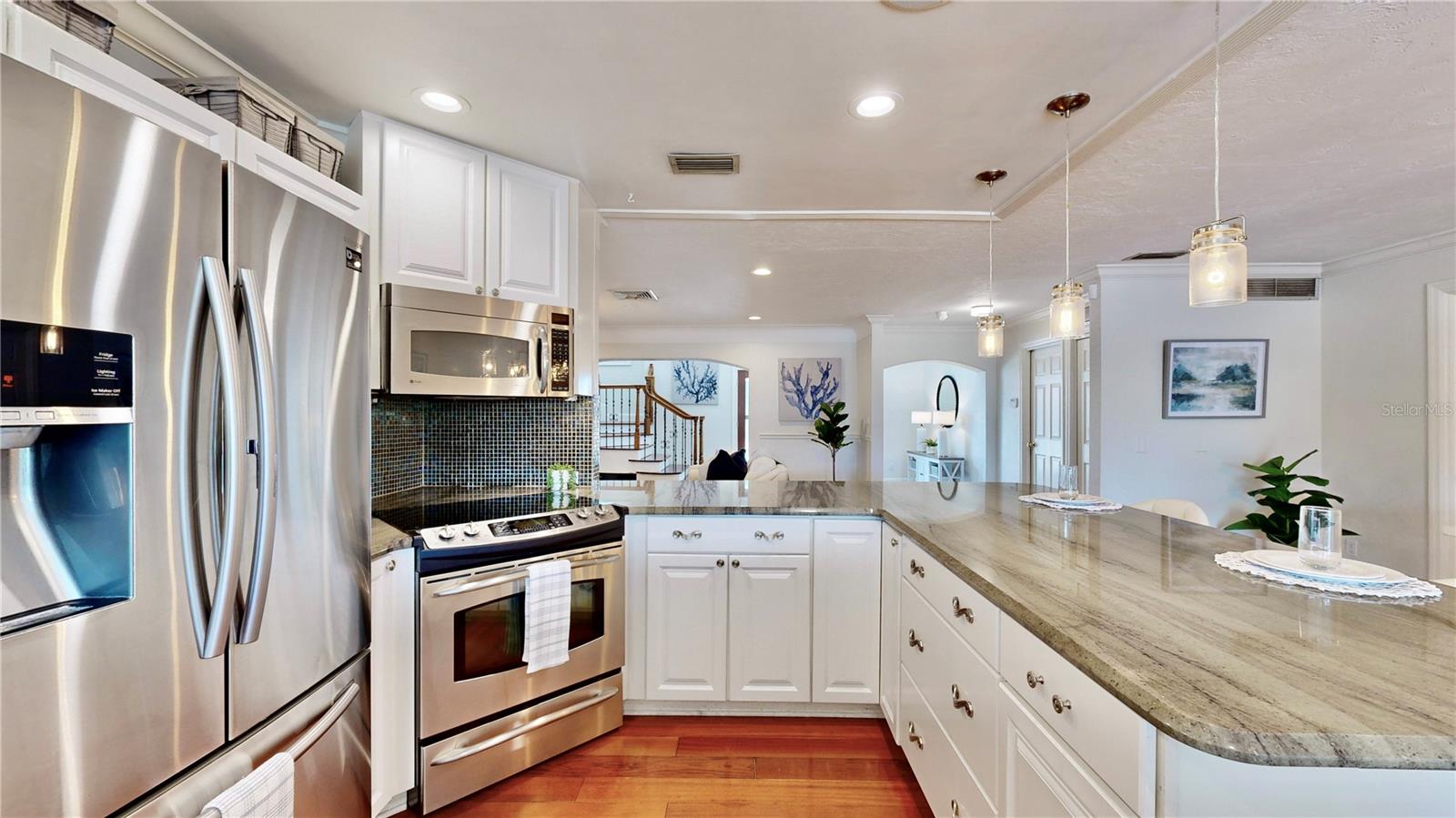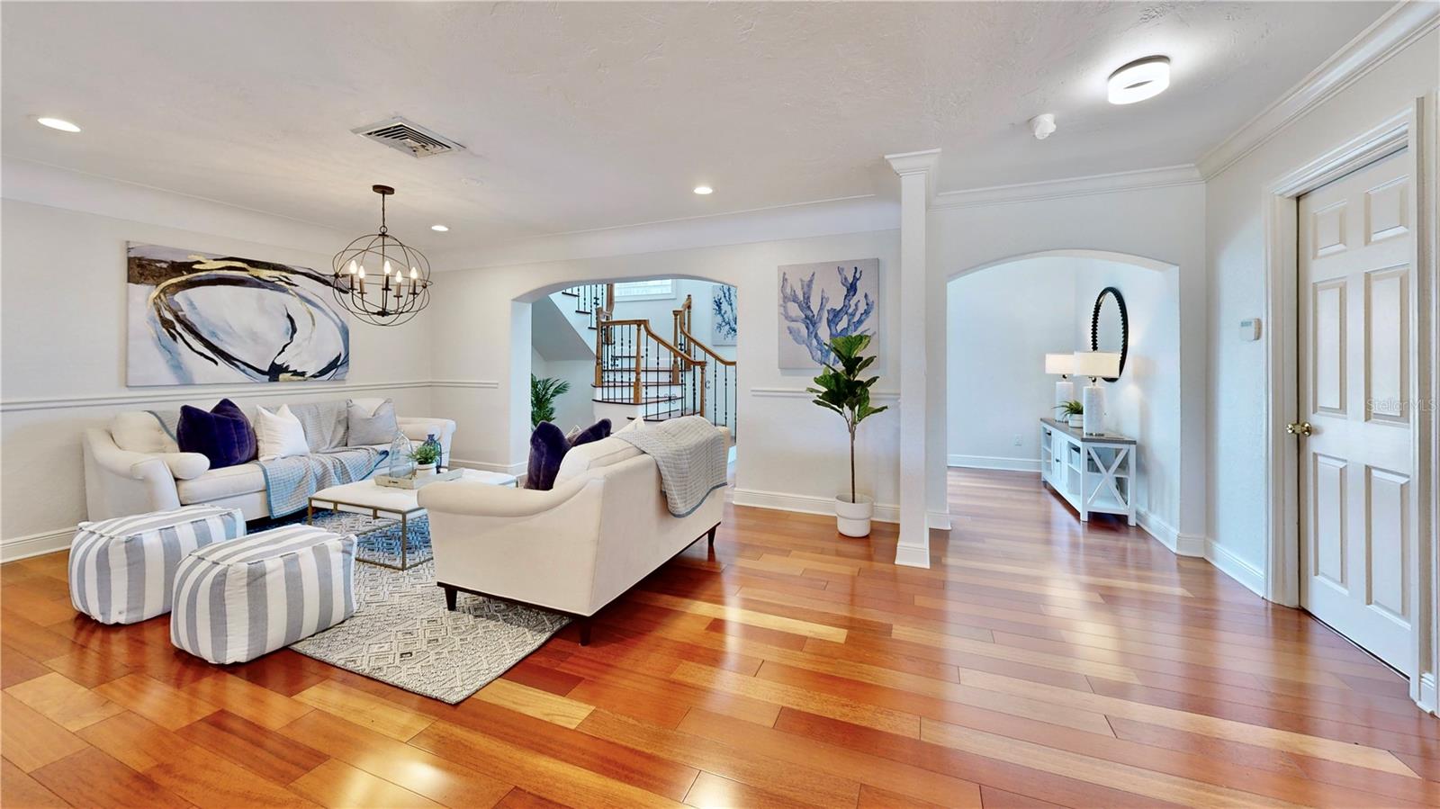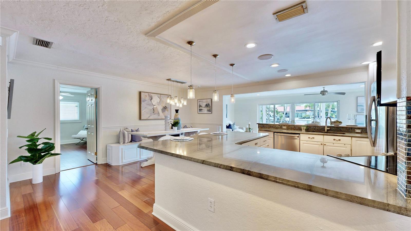 Welcome to your waterfront paradise in Venetian Isles! LIMITED TIME PRICE REDUCTION! The current price reflects the home being sold as-is. Minimal water intrusion from hurricane Helene. Home was dried out and remediated immediately. Remediation includes flooring and drywall removed as well as professionally dried. This stunning Mediterranean-style home is perfectly situated on 74.4 feet of deep sailboat water with no bridges to the Bay or Gulf, offering unparalleled access for boating enthusiasts. Enjoy breathtaking panoramic water views, downtown views, and stunning sunrise views from the large upstairs balcony and backyard living area. As you step into the home, you'll be greeted by the light-filled entrance with soaring ceilings creating a peaceful open and airy feel. The heart of this home is the centrally located kitchen, perfect for everyone to gather. It's a dream for anyone who loves to cook and create, with massive granite countertops, updated stainless steel appliances, and solid wood cabinets. There is plenty of space to cook and enjoy your favorite meals. The kitchen opens up to two large living areas and a breakfast nook, with amazing views of the water. Downstairs, the home has a smart split bedroom plan with 4 bedrooms and 2 full bathrooms. Two of the bedrooms have custom paint and one of them has a murphy bed. Upstairs, you’ll discover a tranquil loft space that seamlessly transitions into the primary suite. With plenty of natural light, Brazilian Cherry Hardwood floors and an open layout, this comfortable space offers a serene environment for any use, whether it’s for work, reading, or simply lounging. The private owner's suite is a truly luxurious retreat. It has two granite vanities, a two-person jetted spa tub, a seamless glass shower, separate toilet and two large walk-in closets. The owner's suite opens to a huge 600 sq ft balcony where you can enjoy both the sunrise and seasonal sunset looking out over your sanctuary. It’s the perfect space for entertaining and enjoying a beverage at the beginning and end of the day. The balcony has both covered and uncovered portions for versatile outdoor enjoyment. The backyard area is perfect for anyone who loves the water. The large dock features two lifts – one for a larger boat and a new jet-ski lift that holds two small watercraft. There's also a glistening, heated saltwater pool surrounded by beautiful pavers. The tropical backyard is great for entertaining with string lights, canopies for shade, and plenty of space to relax and dine outside. The home is situated on a cul-de-sac street and has a U-shaped driveway for extra convenience. Location is everything, and this home delivers. It’s a short boat or bike ride to downtown St. Pete, where you can enjoy all the city has to enjoy. Paddle or boat to Weedon Island for a day of adventure. You might even see dolphins and manatees in your backyard! Recent updates make this home even more special. There's fresh paint inside and out, new ceiling fans, smart locks and lighting systems, recessed lighting in all living areas, and a custom garage with epoxy flooring and cabinets, plus mirrors installed for working out. Additional features include tropical privacy landscaping, hard-wired security cameras, and both tubs in the house are jetted. This home is part of a voluntary HOA with deed restrictions, ensuring a well-maintained community. Elevation Certificate available.