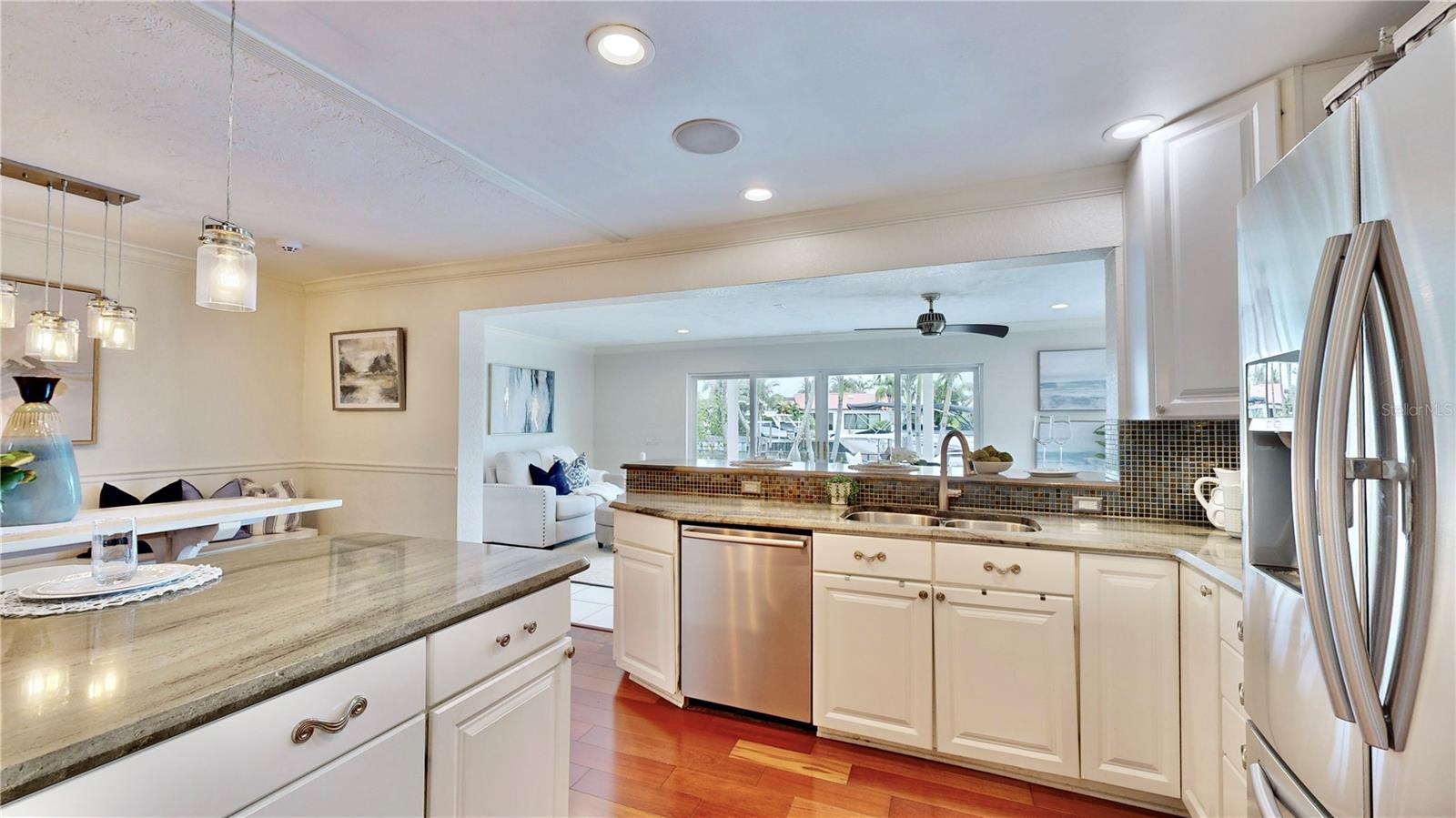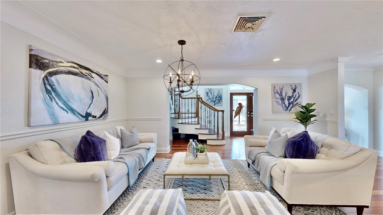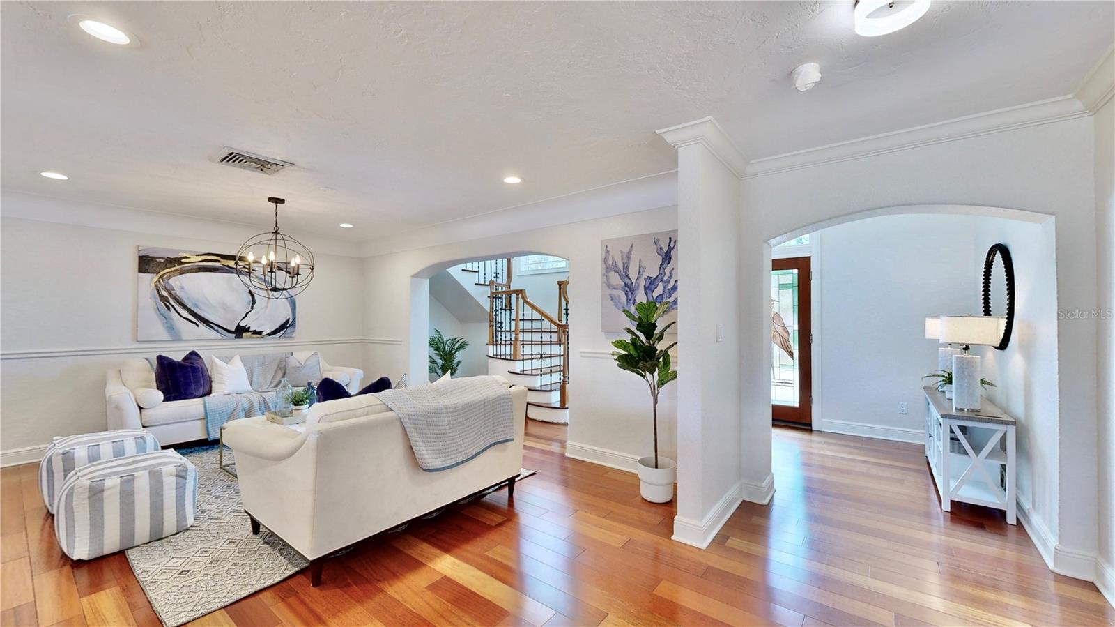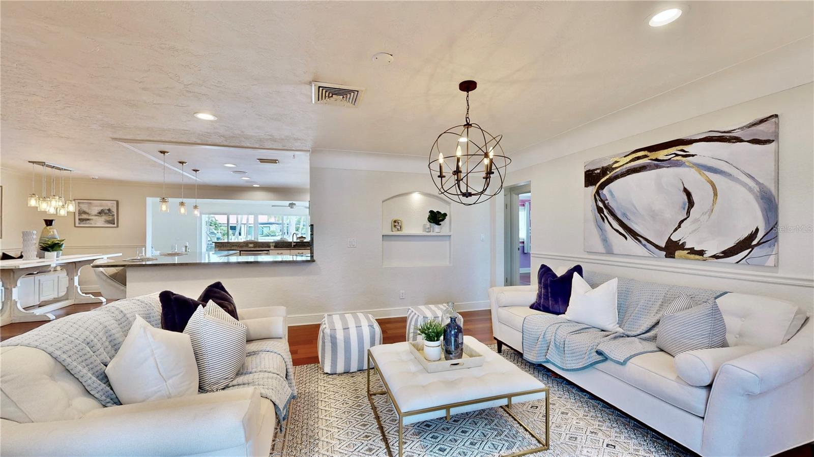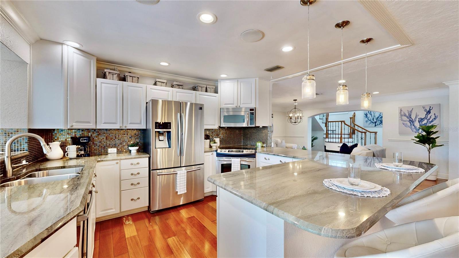 Welcome to your waterfront paradise in Venetian Isles! LIMITED TIME PRICE REDUCTION! The current price reflects the home being sold as-is. Minimal water intrusion from hurricane Helene. Home was dried out and remediated immediately. Remediation includes flooring and drywall removed as well as professionally dried. This stunning Mediterranean-style home is perfectly situated on 74.4 feet of deep sailboat water with no bridges to the Bay or Gulf, offering unparalleled access for boating enthusiasts. Enjoy breathtaking panoramic water views, downtown views, and stunning sunrise views from the large upstairs balcony and backyard living area. As you step into the home, you'll be greeted by the light-filled entrance with soaring ceilings creating a peaceful open and airy feel. The heart of this home is the centrally located kitchen, perfect for everyone to gather. It's a dream for anyone who loves to cook and create, with massive granite countertops, updated stainless steel appliances, and solid wood cabinets. There is plenty of space to cook and enjoy your favorite meals. The kitchen opens up to two large living areas and a breakfast nook, with amazing views of the water. Downstairs, the home has a smart split bedroom plan with 4 bedrooms and 2 full bathrooms. Two of the bedrooms have custom paint and one of them has a murphy bed. Upstairs, you’ll discover a tranquil loft space that seamlessly transitions into the primary suite. With plenty of natural light, Brazilian Cherry Hardwood floors and an open layout, this comfortable space offers a serene environment for any use, whether it’s for work, reading, or simply lounging. The private owner's suite is a truly luxurious retreat. It has two granite vanities, a two-person jetted spa tub, a seamless glass shower, separate toilet and two large walk-in closets. The owner's suite opens to a huge 600 sq ft balcony where you can enjoy both the sunrise and seasonal sunset looking out over your sanctuary. It’s the perfect space for entertaining and enjoying a beverage at the beginning and end of the day. The balcony has both covered and uncovered portions for versatile outdoor enjoyment. The backyard area is perfect for anyone who loves the water. The large dock features two lifts – one for a larger boat and a new jet-ski lift that holds two small watercraft. There's also a glistening, heated saltwater pool surrounded by beautiful pavers. The tropical backyard is great for entertaining with string lights, canopies for shade, and plenty of space to relax and dine outside. The home is situated on a cul-de-sac street and has a U-shaped driveway for extra convenience. Location is everything, and this home delivers. It’s a short boat or bike ride to downtown St. Pete, where you can enjoy all the city has to enjoy. Paddle or boat to Weedon Island for a day of adventure. You might even see dolphins and manatees in your backyard! Recent updates make this home even more special. There's fresh paint inside and out, new ceiling fans, smart locks and lighting systems, recessed lighting in all living areas, and a custom garage with epoxy flooring and cabinets, plus mirrors installed for working out. Additional features include tropical privacy landscaping, hard-wired security cameras, and both tubs in the house are jetted. This home is part of a voluntary HOA with deed restrictions, ensuring a well-maintained community. Elevation Certificate available.
