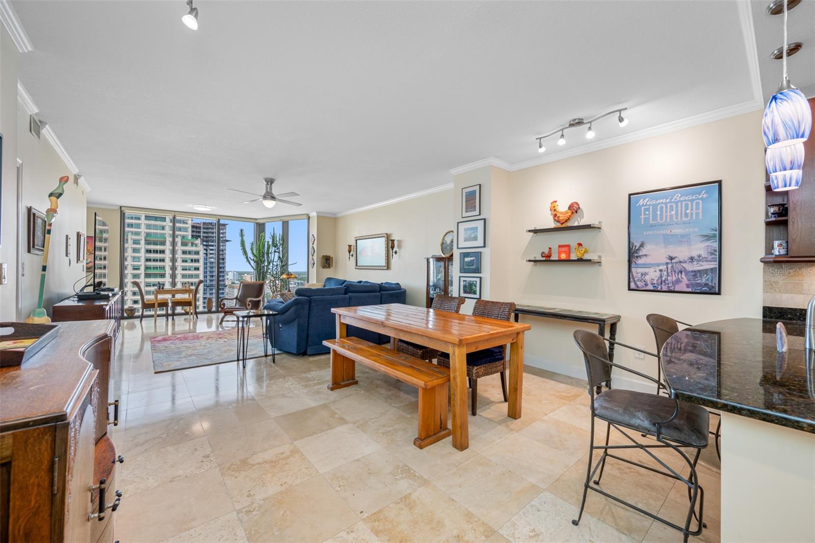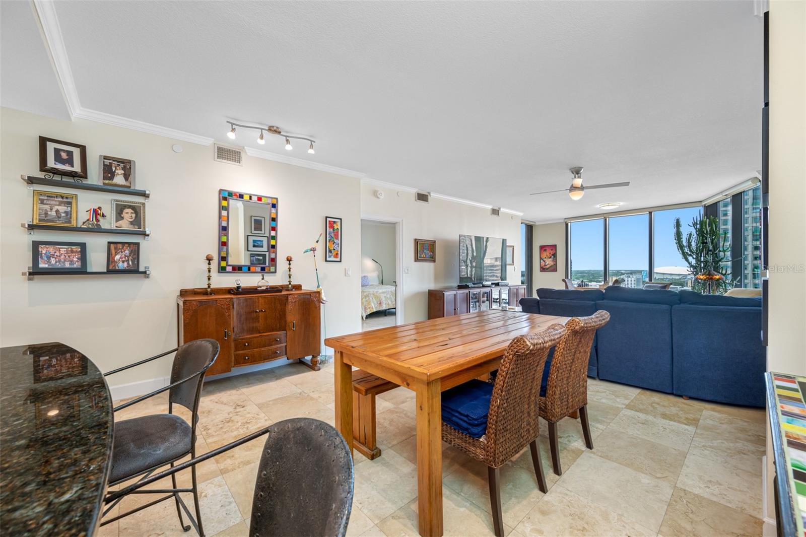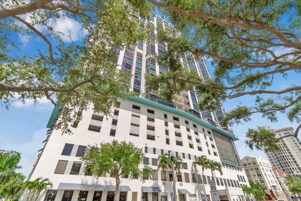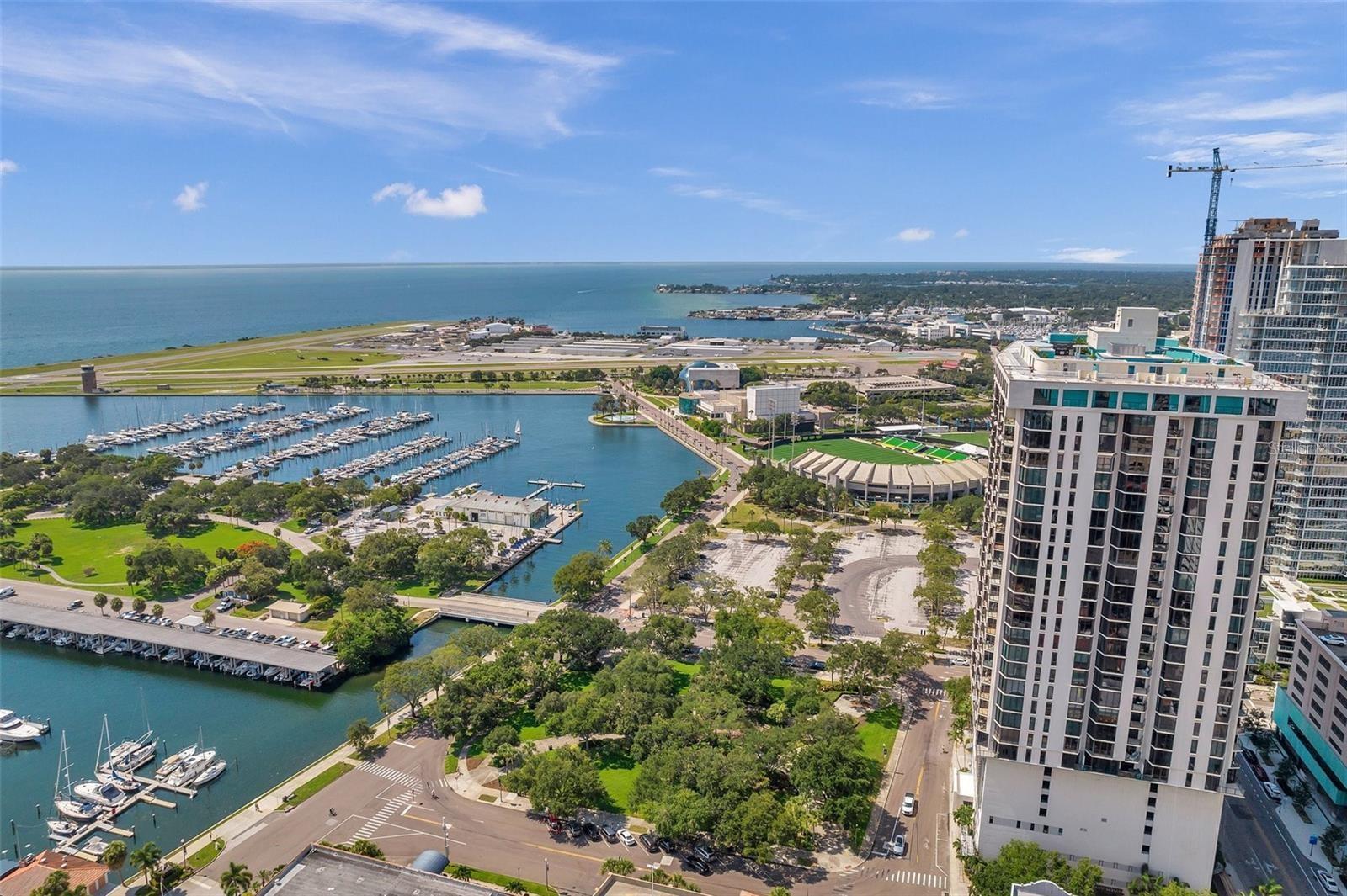 Bayfront Tower - 1 Bedroom, 1 1/2 Bath 22nd floor unit with dramatic City & Sunset Views. Kitchen has been opened up to Dining/living room to give a wonderful open feel. Travertine flooring thru out. Updated kitchen and baths with granite counters and wood cabinetry. Hurricane Impact Windows & Sliders thru out. Installed Fire Sprinklers. Marinas and Waterfront parks are just steps from your door. Close to St. Pete Yacht Club, shopping, world class museums and restaurants. Bayfront tower offers 24 concierge, maintenance and valet service. The 28th and 29th floors offer a state-of-the-art fitness center, library, huge party room and catering kitchen, heated pool, herb garden, outdoor kitchen with grills. 360-degree views from walking track around the shaded 28th floor and open-air jogging track on the 29th floor. Unit includes covered parking, a climate controlled 6x8 storage space on the same floor as the unit. Pet friendly, city living at it's best! Short drive to gulf beaches or walk to spa beach at the pier. **The Building took out a loan for interior renovations several years ago which ends in January 2027. This unit currently pays $262.06 toward this loan.