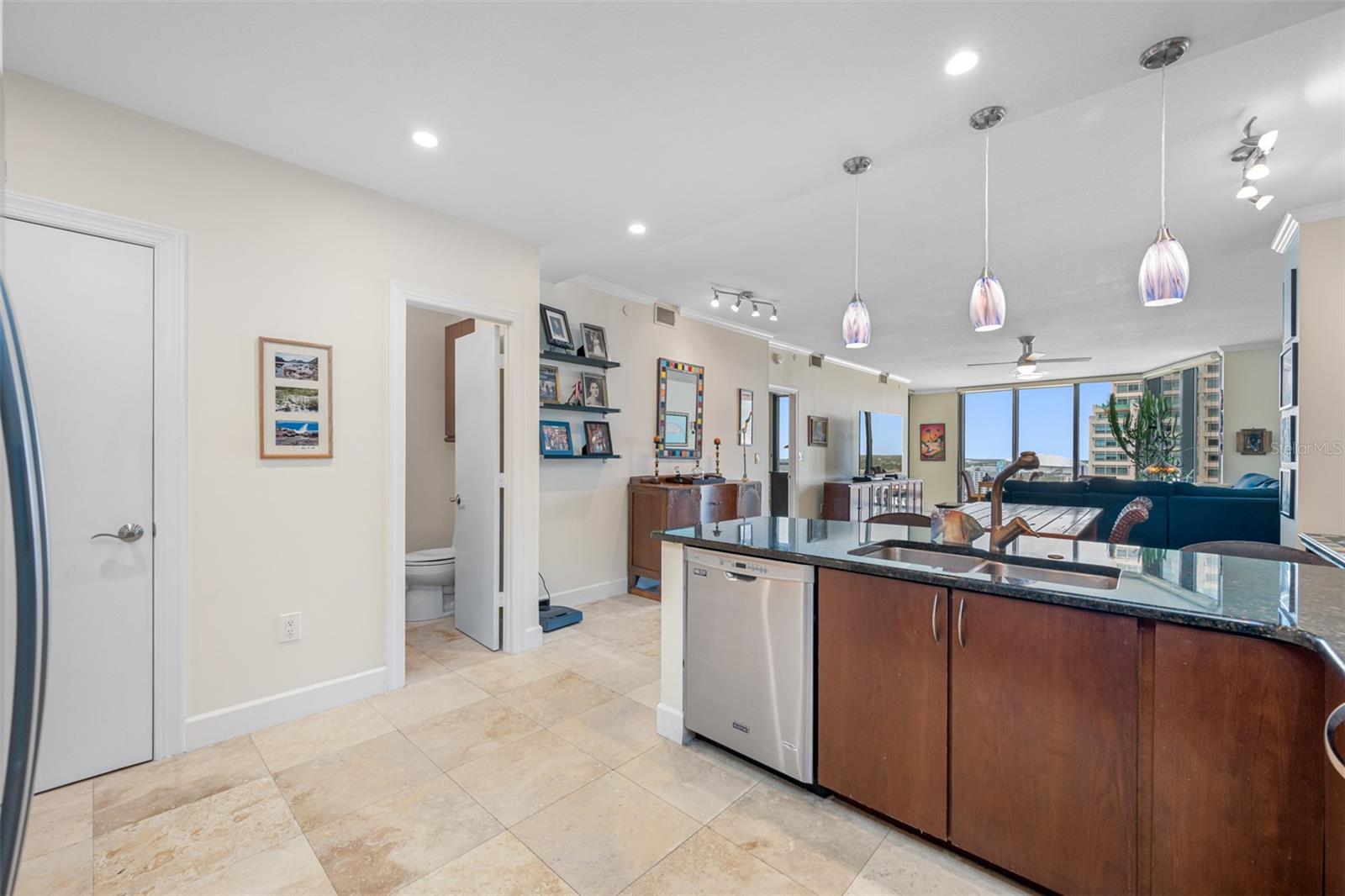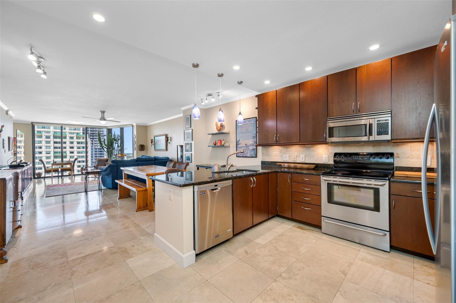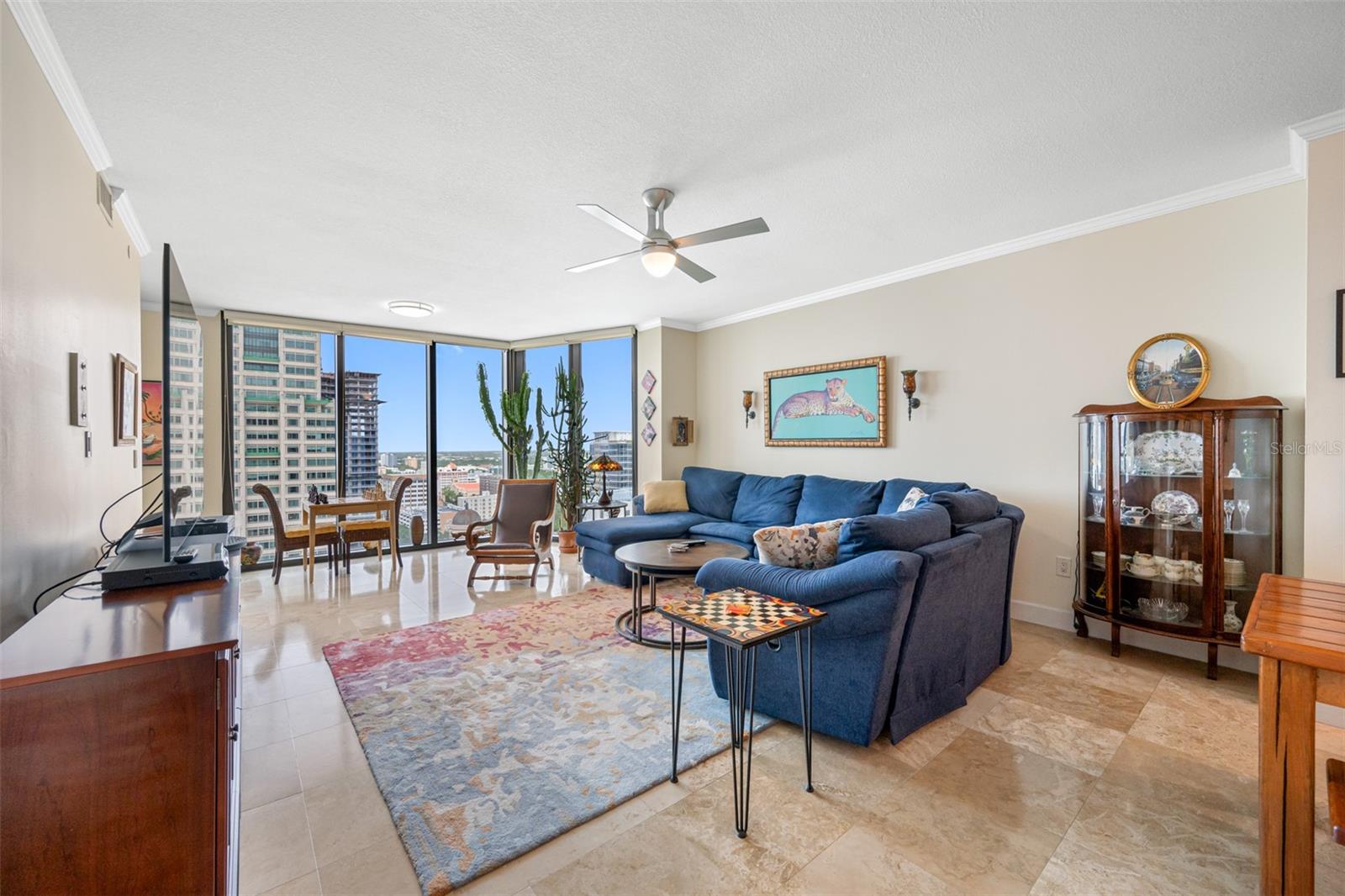 Bayfront Tower - 1 Bedroom, 1 1/2 Bath 22nd floor unit with dramatic City & Sunset Views. Kitchen has been opened up to Dining/living room to give a wonderful open feel. Travertine flooring thru out. Updated kitchen and baths with granite counters and wood cabinetry. Hurricane Impact Windows & Sliders thru out. Installed Fire Sprinklers. Marinas and Waterfront parks are just steps from your door. Close to St. Pete Yacht Club, shopping, world class museums and restaurants. Bayfront tower offers 24 concierge, maintenance and valet service. The 28th and 29th floors offer a state-of-the-art fitness center, library, huge party room and catering kitchen, heated pool, herb garden, outdoor kitchen with grills. 360-degree views from walking track around the shaded 28th floor and open-air jogging track on the 29th floor. Unit includes covered parking, a climate controlled 6x8 storage space on the same floor as the unit. Pet friendly, city living at it's best! Short drive to gulf beaches or walk to spa beach at the pier. **The Building took out a loan for interior renovations several years ago which ends in January 2027. This unit currently pays $262.06 toward this loan.