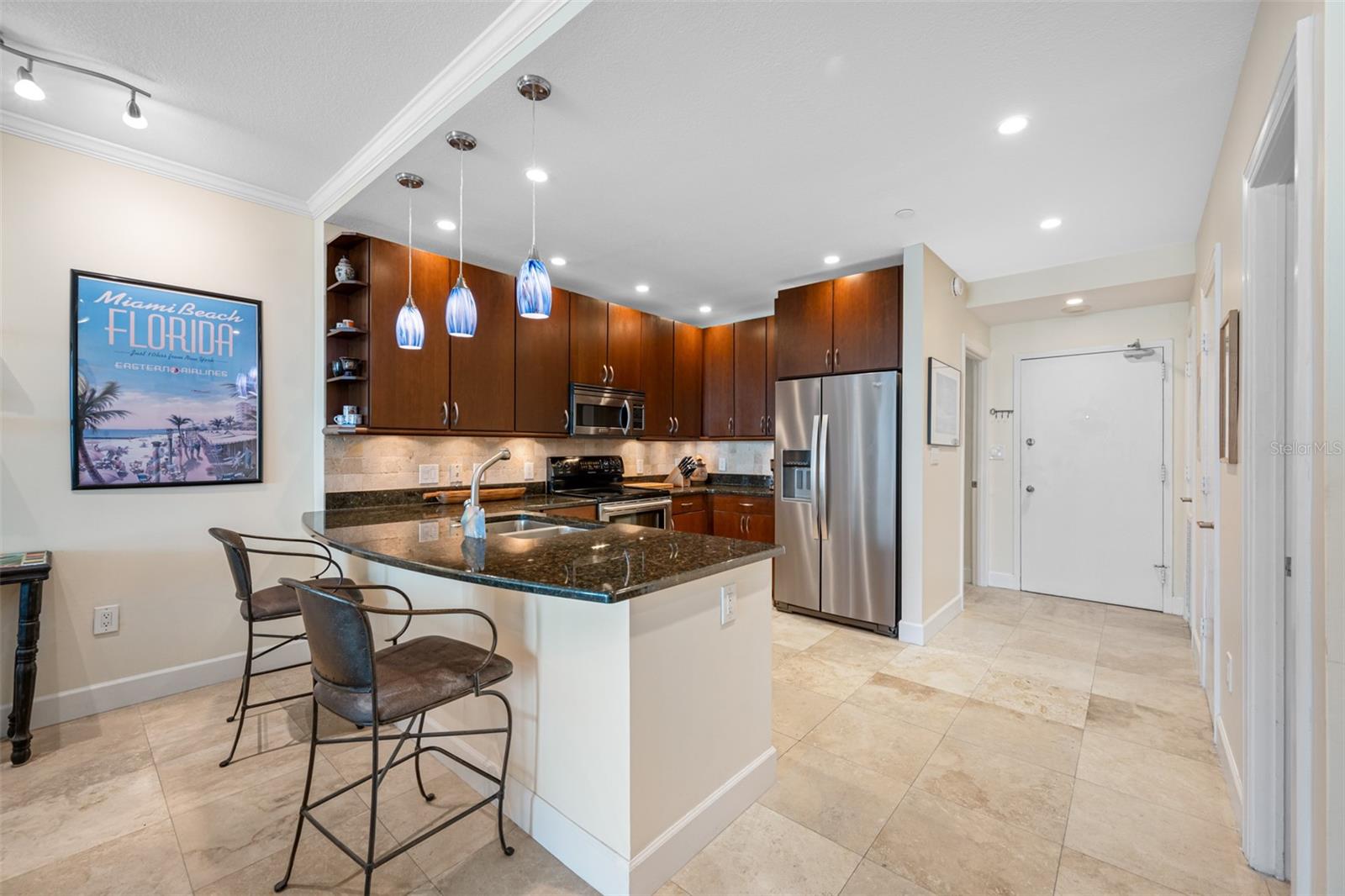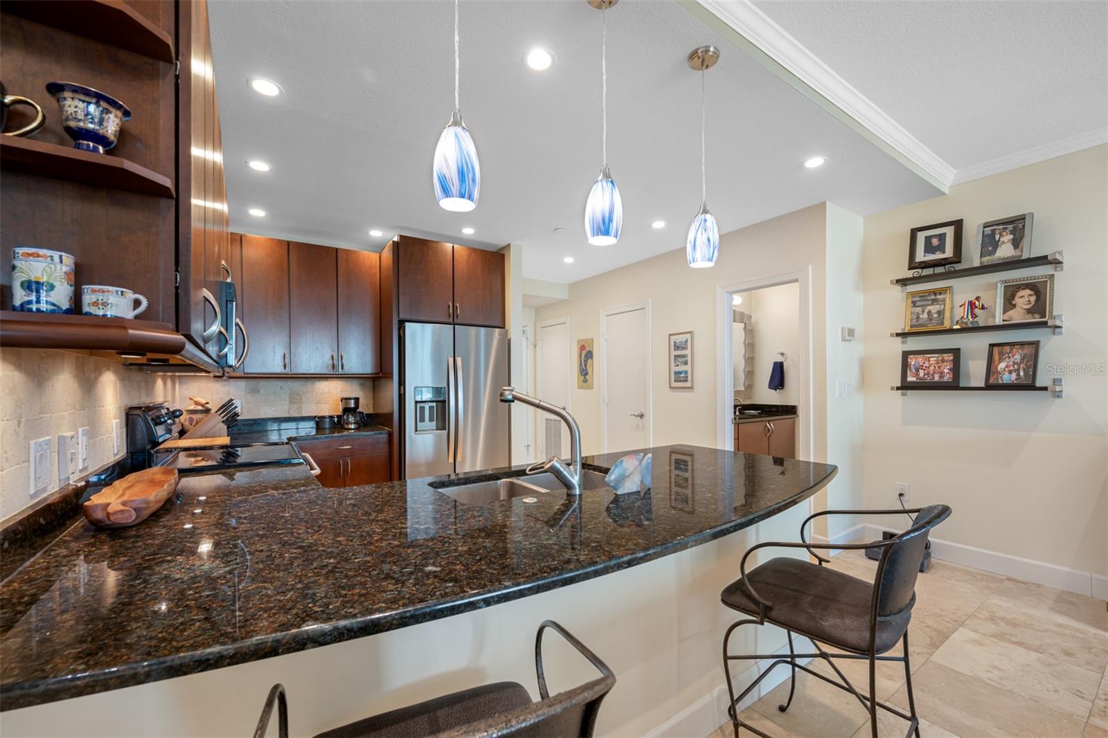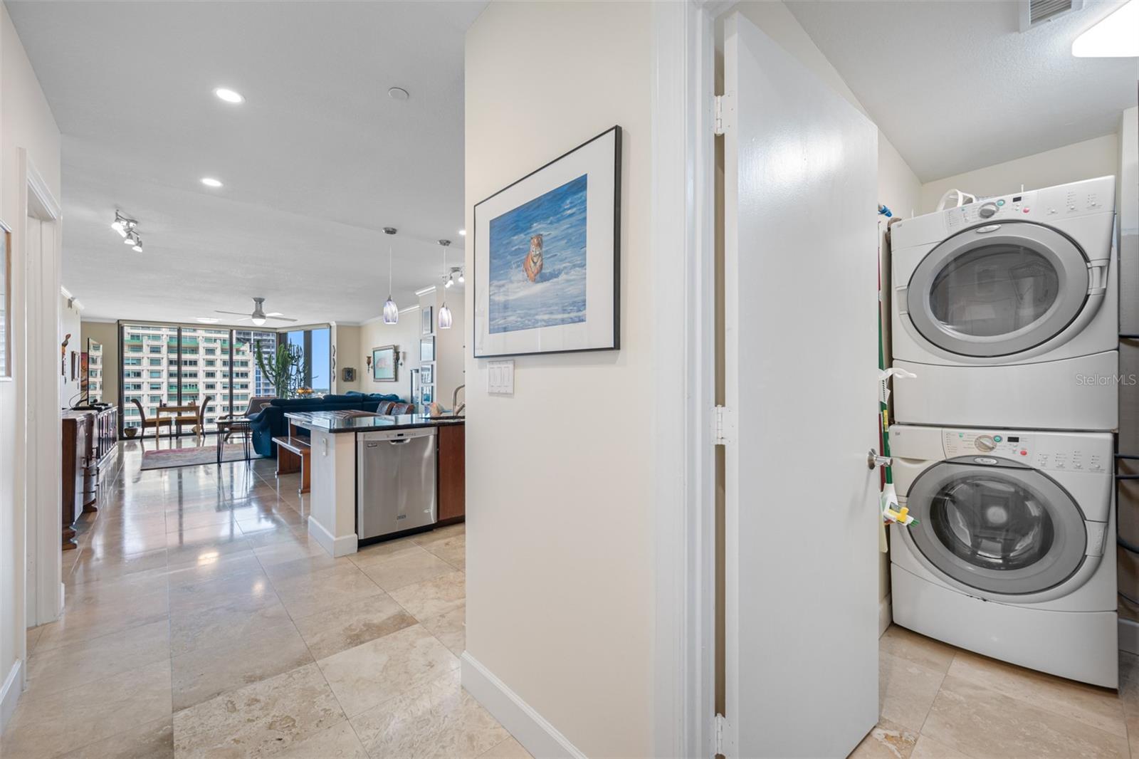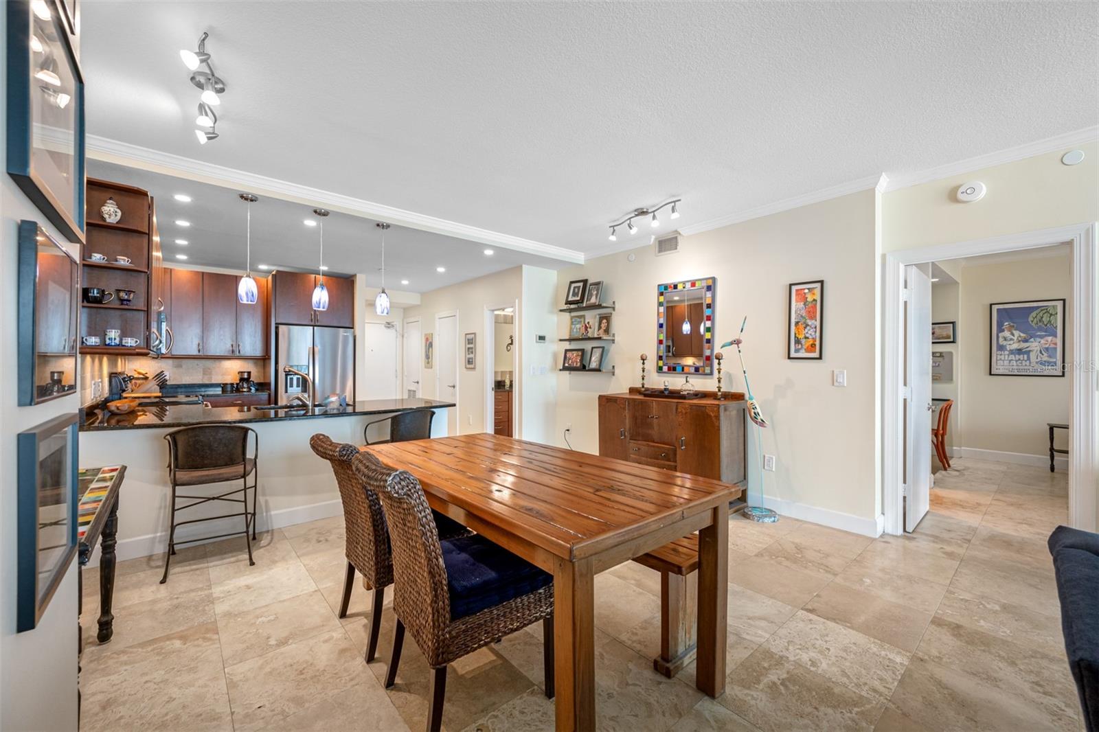 Bayfront Tower - 1 Bedroom, 1 1/2 Bath 22nd floor unit with dramatic City & Sunset Views. Kitchen has been opened up to Dining/living room to give a wonderful open feel. Travertine flooring thru out. Updated kitchen and baths with granite counters and wood cabinetry. Hurricane Impact Windows & Sliders thru out. Installed Fire Sprinklers. Marinas and Waterfront parks are just steps from your door. Close to St. Pete Yacht Club, shopping, world class museums and restaurants. Bayfront tower offers 24 concierge, maintenance and valet service. The 28th and 29th floors offer a state-of-the-art fitness center, library, huge party room and catering kitchen, heated pool, herb garden, outdoor kitchen with grills. 360-degree views from walking track around the shaded 28th floor and open-air jogging track on the 29th floor. Unit includes covered parking, a climate controlled 6x8 storage space on the same floor as the unit. Pet friendly, city living at it's best! Short drive to gulf beaches or walk to spa beach at the pier. **The Building took out a loan for interior renovations several years ago which ends in January 2027. This unit currently pays $262.06 toward this loan.