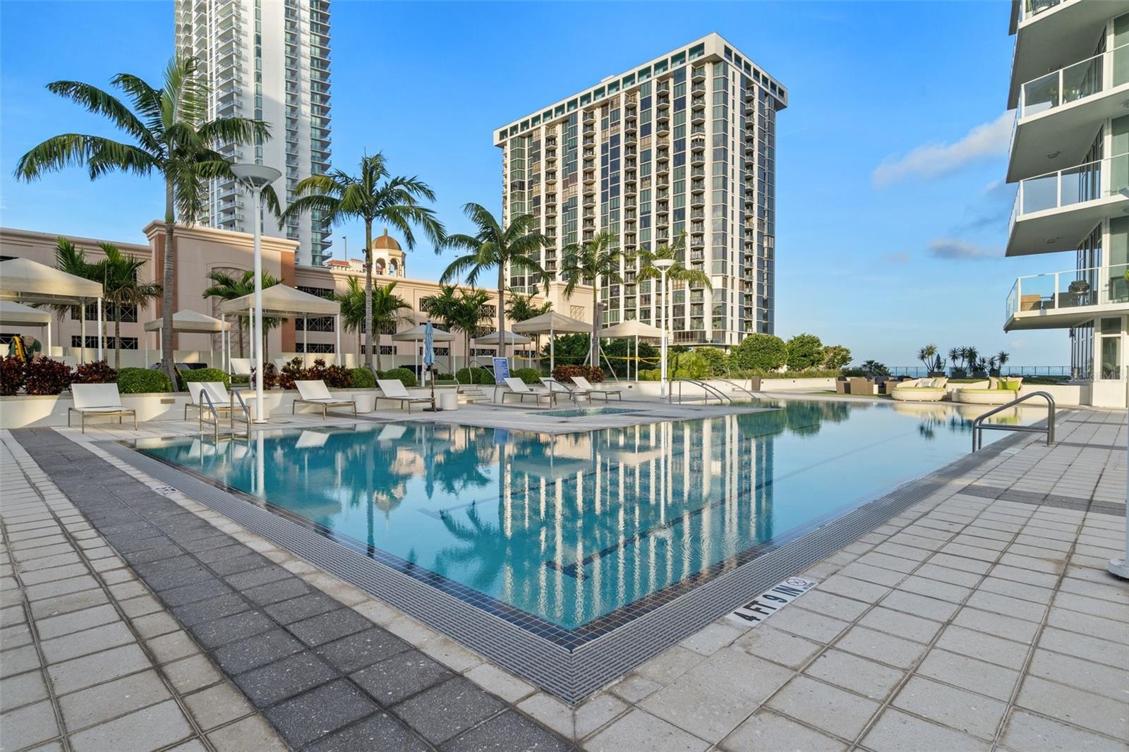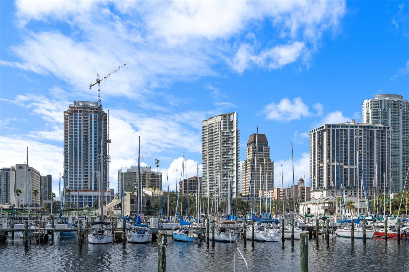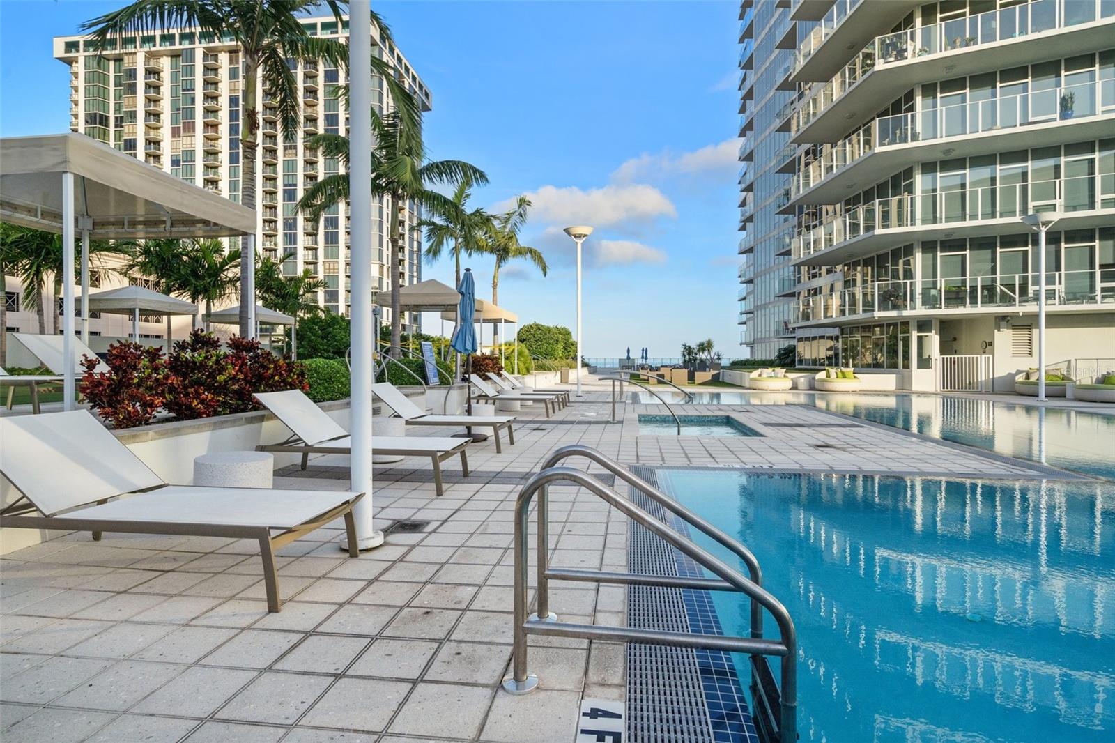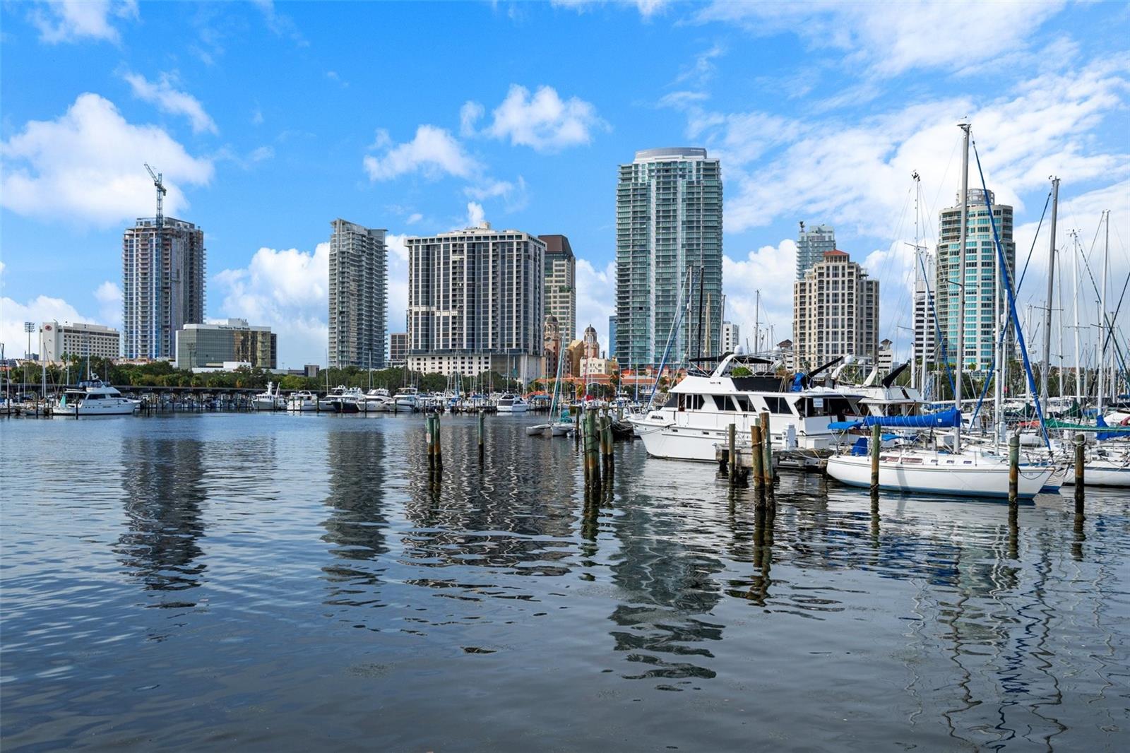 Welcome to Signature Place a 34 story residential condominium designed to resemble a sail as it rises above the downtown skyline. All of the units are uniquely designed to be modern and architecturally stunning. This 2 bed 2 bath unit is no exception. With floor to ceiling windows in every room, an open floor plan to enhance the relaxing Florida lifestyle, and split bedrooms to provide for privacy this unit is a perfect blend of elegance and sophistication. The centerpiece of Signature Place is the 5-story waterfall on the south side of the building which is directly in front of this corner end unit. The sound of the waterfall is the perfect backdrop when enjoying a morning coffee or evening cocktail. This 5th floor unit has 2 parking spots also on the 5th floor which create easy access to the unit when bringing in groceries, luggage from a trip, or your bike from a ride along the Pinellas Trial. Signature Place has luxury amenities including a 24-hour concierge service, gated parking garage, package room, and dry cleaning drop off. Additionally, the 6th floor has an outdoor amenity deck, an infinity edge heated pool and spa with cabanas, well equipped fitness center, social room with an expansive view of the Bay and an exercise/putting green. The 7th floor has an additional social room with kitchen/bar, a library and outdoor deck perfect for watching the Firestone Indy Car Races each spring. The Condominium has a social committee that provides multiple opportunities each month to meet your neighbors and experience all downtown St Pete has to offer. With the Pinellas Trail outside the building biking to the many shops, restaurants and the Tropicana is a breeze. The Saturday Morning market in the fall and winter are just steps across the street. Beach Street, the Pier, Demons Landing, The Dali Museum are just a few walkable attractions from Signature Place.