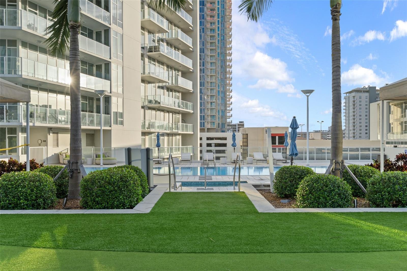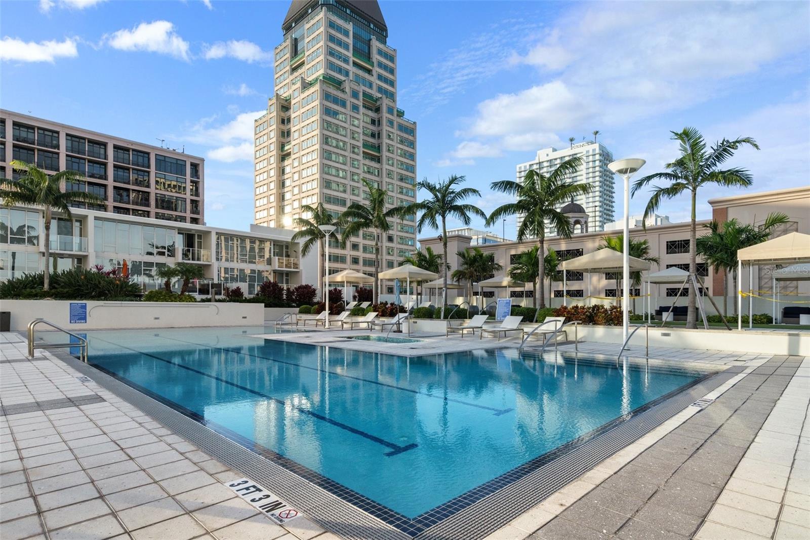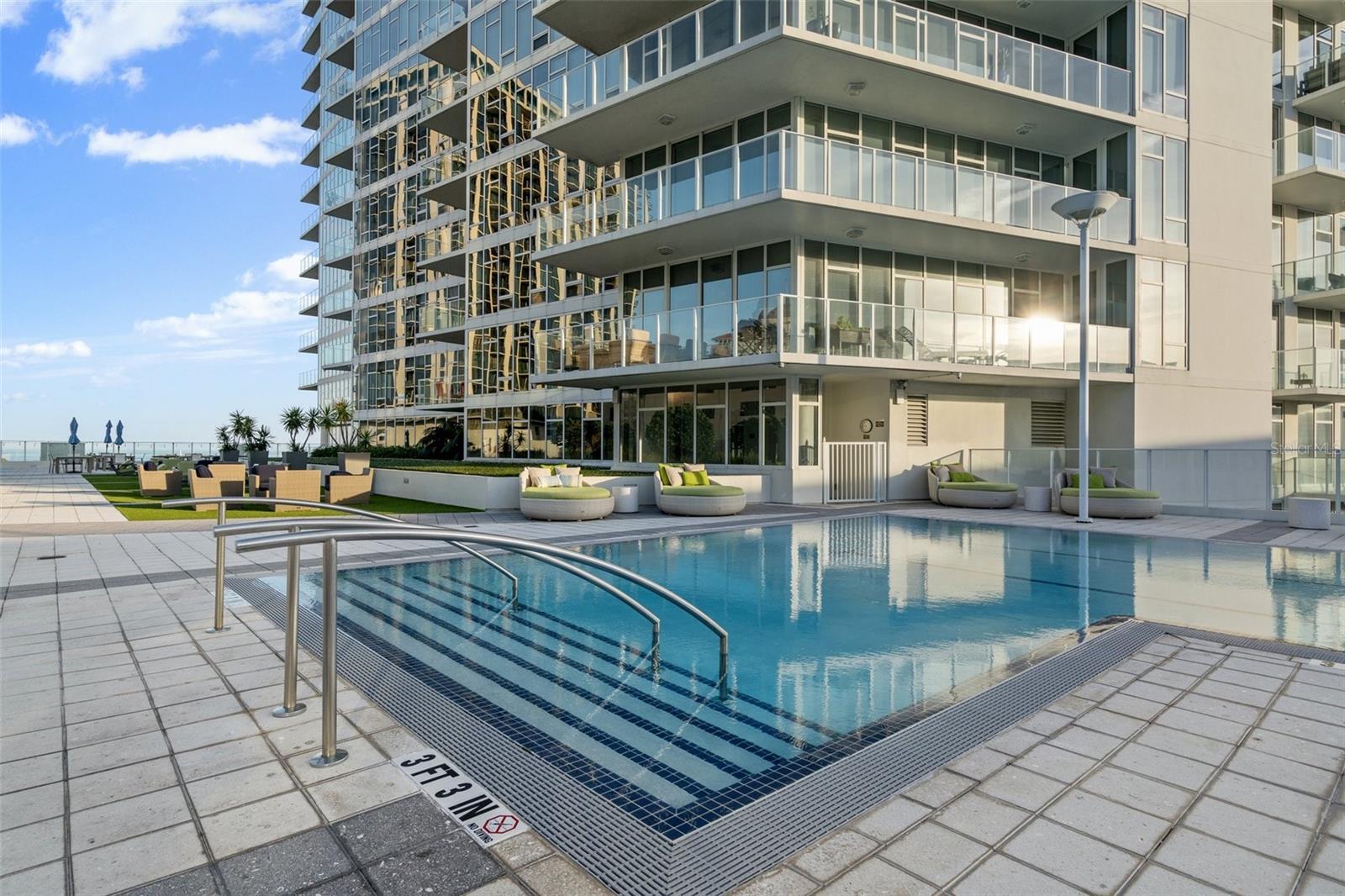 Welcome to Signature Place a 34 story residential condominium designed to resemble a sail as it rises above the downtown skyline. All of the units are uniquely designed to be modern and architecturally stunning. This 2 bed 2 bath unit is no exception. With floor to ceiling windows in every room, an open floor plan to enhance the relaxing Florida lifestyle, and split bedrooms to provide for privacy this unit is a perfect blend of elegance and sophistication. The centerpiece of Signature Place is the 5-story waterfall on the south side of the building which is directly in front of this corner end unit. The sound of the waterfall is the perfect backdrop when enjoying a morning coffee or evening cocktail. This 5th floor unit has 2 parking spots also on the 5th floor which create easy access to the unit when bringing in groceries, luggage from a trip, or your bike from a ride along the Pinellas Trial. Signature Place has luxury amenities including a 24-hour concierge service, gated parking garage, package room, and dry cleaning drop off. Additionally, the 6th floor has an outdoor amenity deck, an infinity edge heated pool and spa with cabanas, well equipped fitness center, social room with an expansive view of the Bay and an exercise/putting green. The 7th floor has an additional social room with kitchen/bar, a library and outdoor deck perfect for watching the Firestone Indy Car Races each spring. The Condominium has a social committee that provides multiple opportunities each month to meet your neighbors and experience all downtown St Pete has to offer. With the Pinellas Trail outside the building biking to the many shops, restaurants and the Tropicana is a breeze. The Saturday Morning market in the fall and winter are just steps across the street. Beach Street, the Pier, Demons Landing, The Dali Museum are just a few walkable attractions from Signature Place.