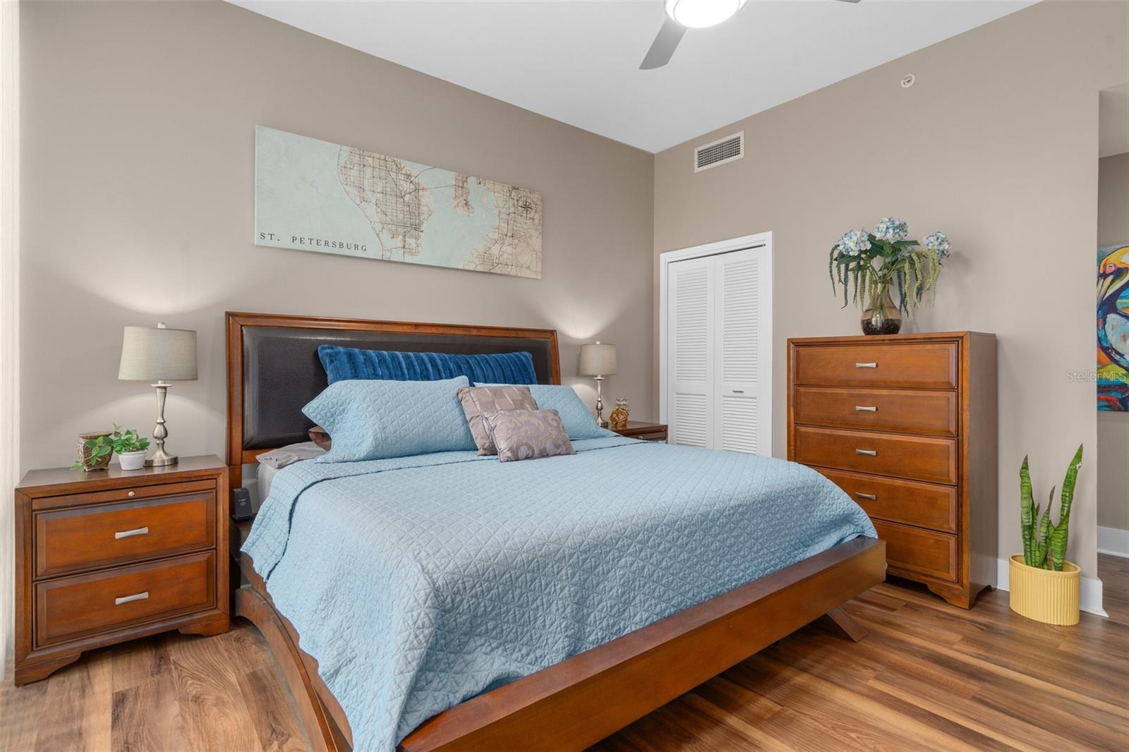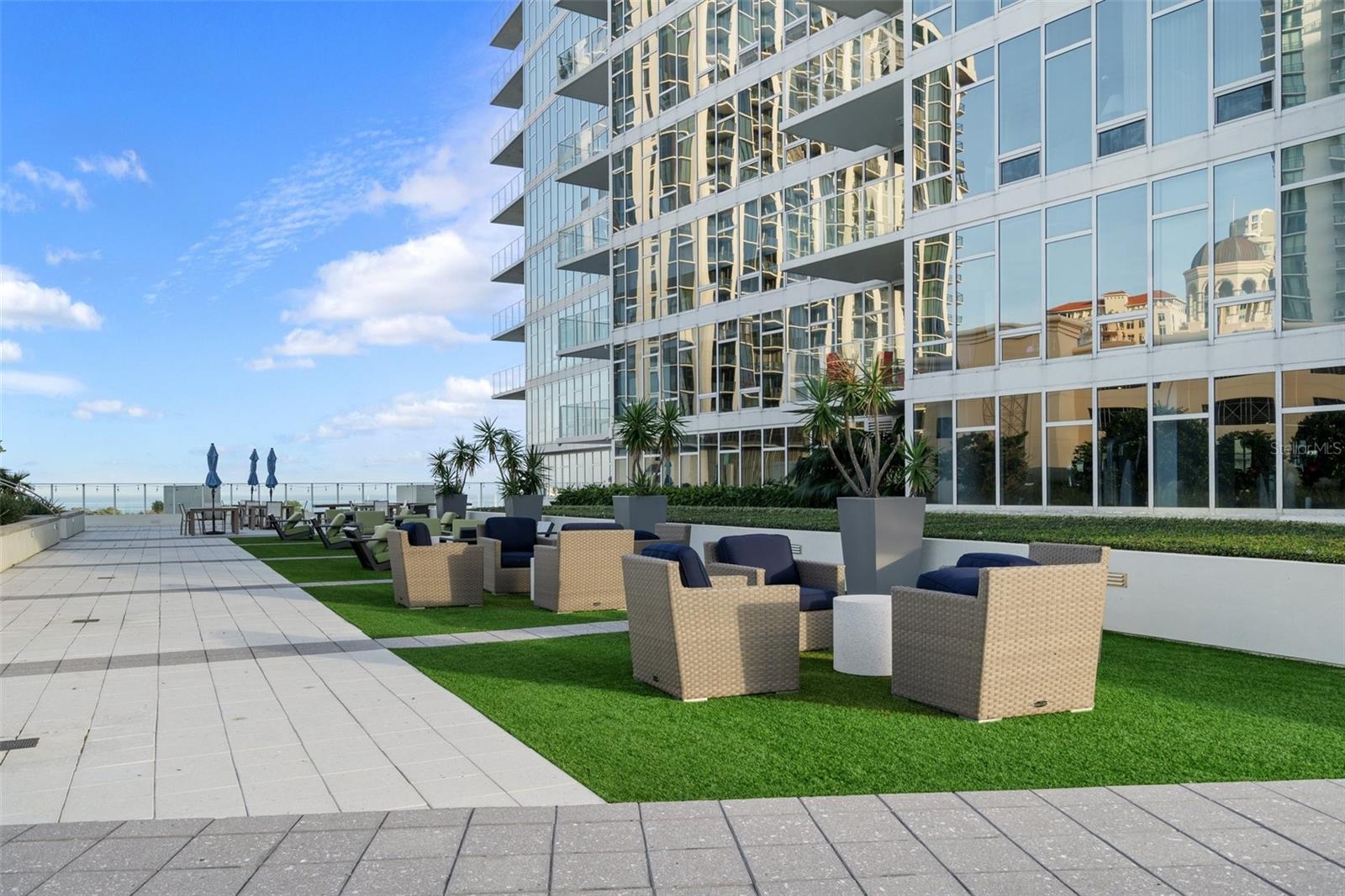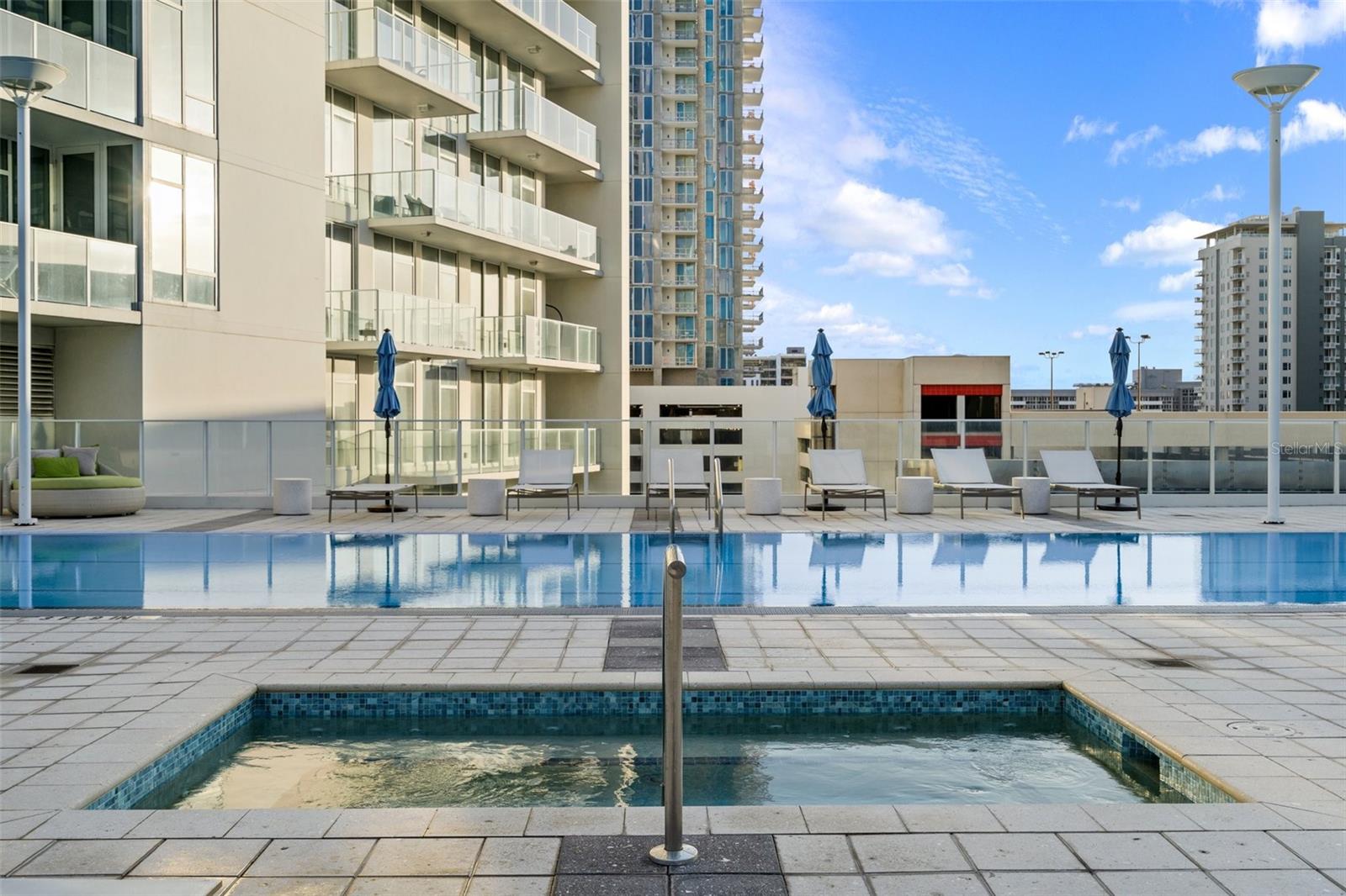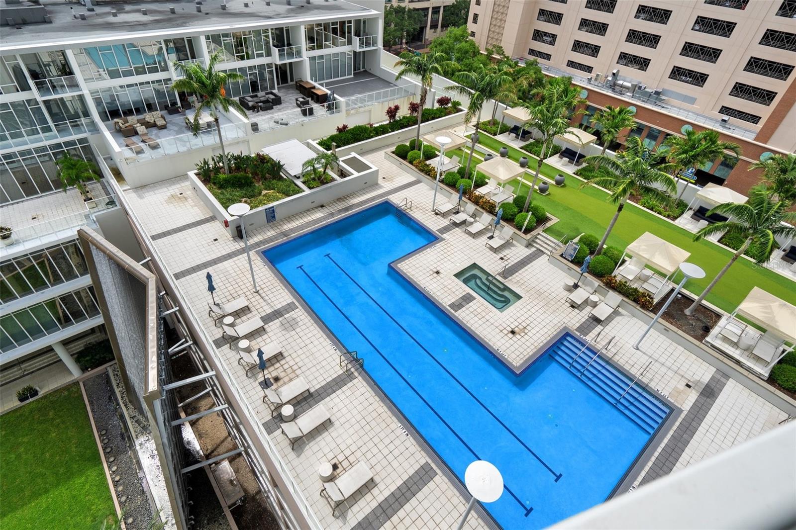 Welcome to Signature Place a 34 story residential condominium designed to resemble a sail as it rises above the downtown skyline. All of the units are uniquely designed to be modern and architecturally stunning. This 2 bed 2 bath unit is no exception. With floor to ceiling windows in every room, an open floor plan to enhance the relaxing Florida lifestyle, and split bedrooms to provide for privacy this unit is a perfect blend of elegance and sophistication. The centerpiece of Signature Place is the 5-story waterfall on the south side of the building which is directly in front of this corner end unit. The sound of the waterfall is the perfect backdrop when enjoying a morning coffee or evening cocktail. This 5th floor unit has 2 parking spots also on the 5th floor which create easy access to the unit when bringing in groceries, luggage from a trip, or your bike from a ride along the Pinellas Trial. Signature Place has luxury amenities including a 24-hour concierge service, gated parking garage, package room, and dry cleaning drop off. Additionally, the 6th floor has an outdoor amenity deck, an infinity edge heated pool and spa with cabanas, well equipped fitness center, social room with an expansive view of the Bay and an exercise/putting green. The 7th floor has an additional social room with kitchen/bar, a library and outdoor deck perfect for watching the Firestone Indy Car Races each spring. The Condominium has a social committee that provides multiple opportunities each month to meet your neighbors and experience all downtown St Pete has to offer. With the Pinellas Trail outside the building biking to the many shops, restaurants and the Tropicana is a breeze. The Saturday Morning market in the fall and winter are just steps across the street. Beach Street, the Pier, Demons Landing, The Dali Museum are just a few walkable attractions from Signature Place.