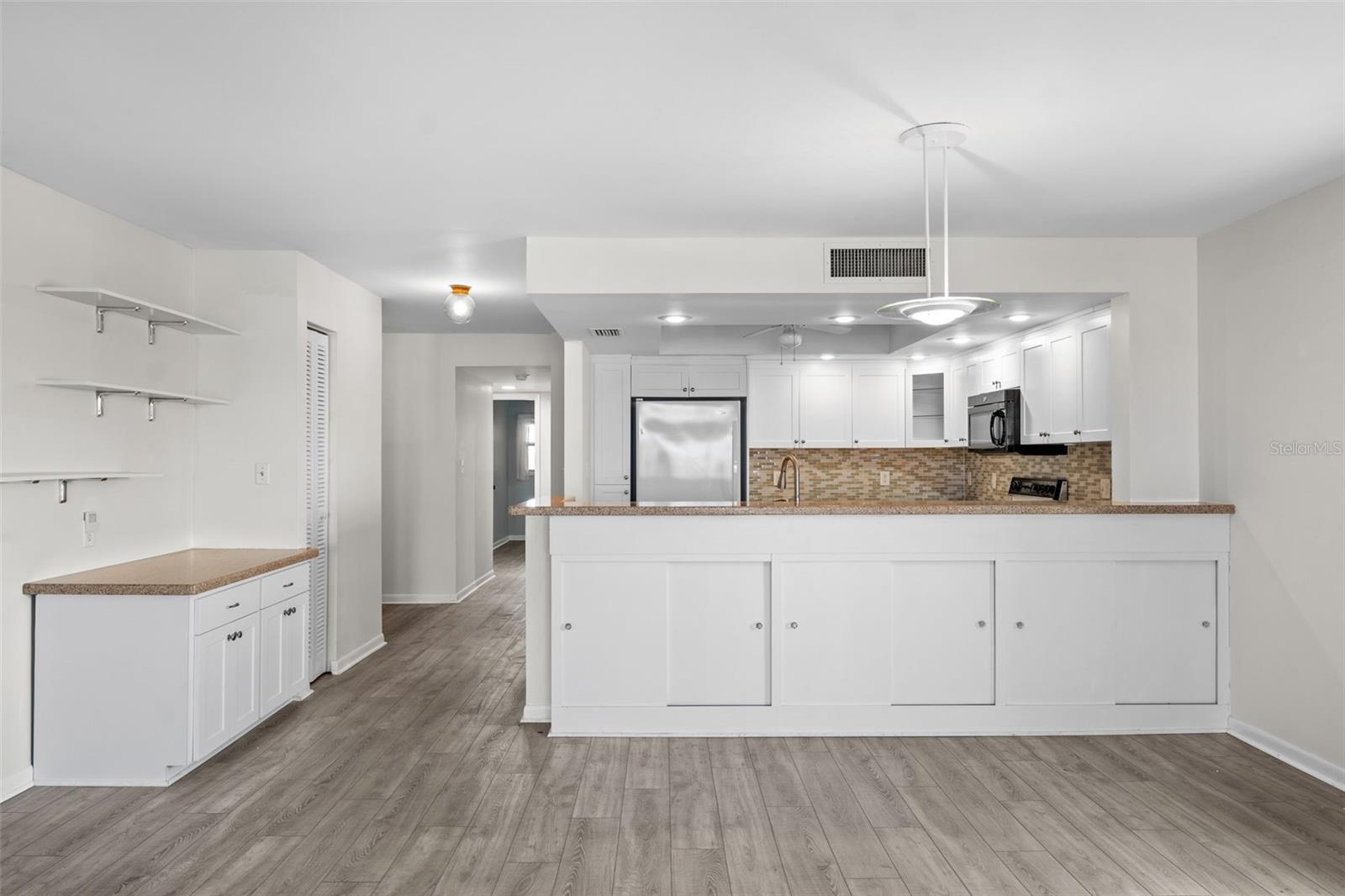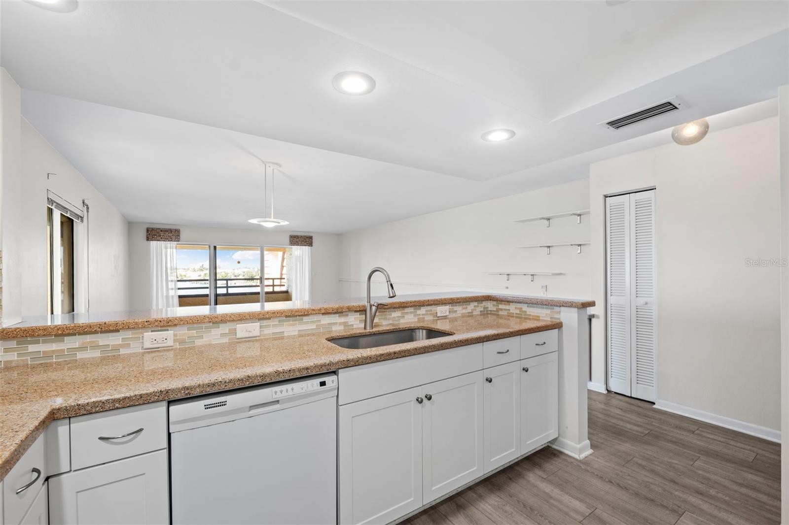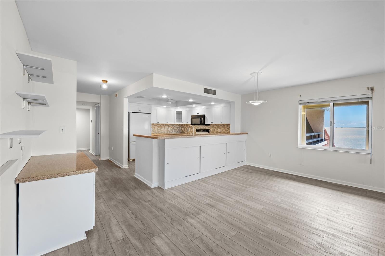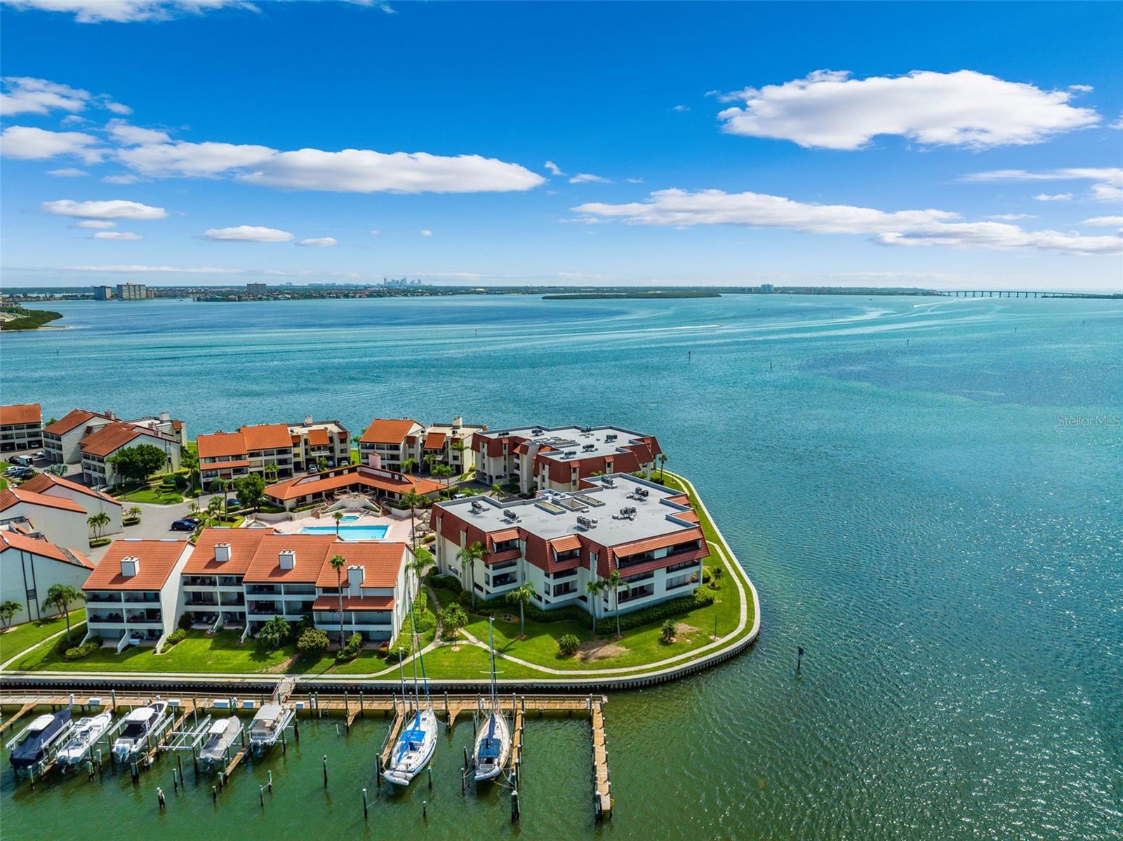 Live the ultimate waterfront lifestyle at The Village of Tierra Verde! This amazing 2-bed, 2-bath TOP FLOOR CORNER UNIT offers stunning open water views of Tampa Bay and the iconic skyway bridge. The easy living single level open floor plan fills the space with natural light, creating a warm and inviting vibe. The kitchen is the heart of the home, with modern updates like white shaker cabinetry, a breakfast bar overlooking the great room, and recessed lighting. Ideal for entertaining, the great room boasts panoramic water views and a large covered balcony for seamless indoor-outdoor living. Additional highlights include a newer A/C, luxury vinyl flooring, and a convenient storage closet. The building provides covered parking, an elevator, and is small pet-friendly, ensuring a comfy and convenient lifestyle. The Village of Tierra Verde offers resort-style amenities including 3 pools, Jacuzzis, tennis courts, and fishing, promising endless relaxation and fun. Embrace the laid-back luxury of waterfront living at The Village of Tierra Verde – your own piece of paradise awaits!