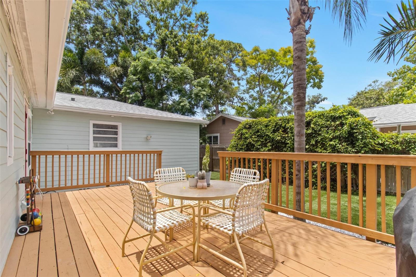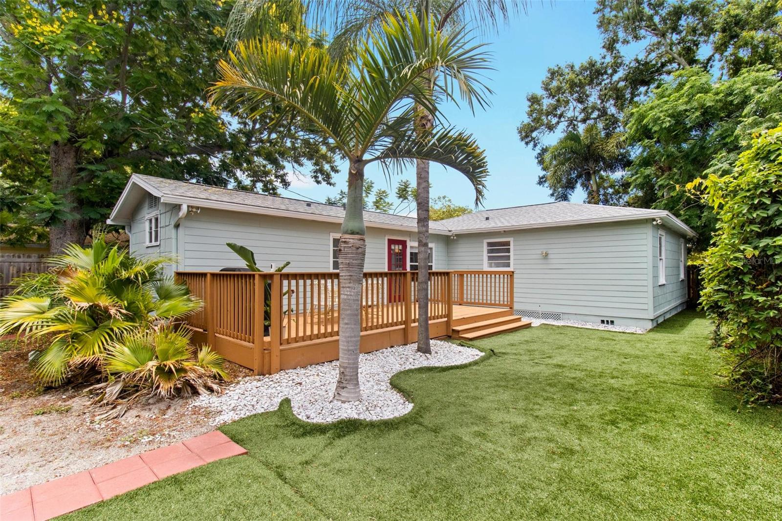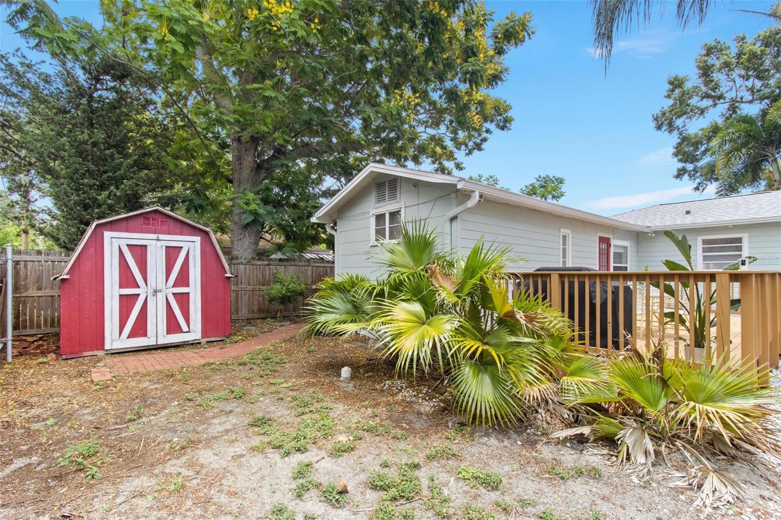 Seller offering $3,000 towards buyer's closing costs for any offer accepted before October 10th. Welcome to this beautifully updated 3-bedroom, 2-bathroom home in the charming Central Oak Park neighborhood of St. Petersburg. This residence seamlessly blends vintage charm with modern conveniences, featuring original oak plank floors, coved plaster ceilings, arched doorways, and unique wall niches. The home’s split floor plan offers flexibility and privacy, with the bedrooms thoughtfully positioned on opposite ends of the house. The back bedroom, with its proximity to the backyard gate and French doors, provides the potential for a separate entrance—perfect for accommodating guests or offering additional privacy. Recent updates to the home include a new roof, HVAC, and electric hot water heater in 2022, engineered hardwood in the kitchen and dining areas, updated sewer lines, a new dishwasher, and fresh exterior paint. The backyard boasts low-maintenance turf, a massive deck ideal for gatherings, and a spacious storage shed. No flood insurance required! This home offers a central location just minutes from the popular Grand Central District, downtown St. Petersburg, and the beaches. Plus, it’s within walking distance to the SunRunner, making beach trips a breeze. Central Oak Park is known for its friendly community atmosphere and convenient amenities. You'll be just a short stroll from nearby parks, including scenic Seminole Park, perfect for picnics and outdoor activities. Experience the perfect blend of historic charm and contemporary living in this move-in-ready gem!