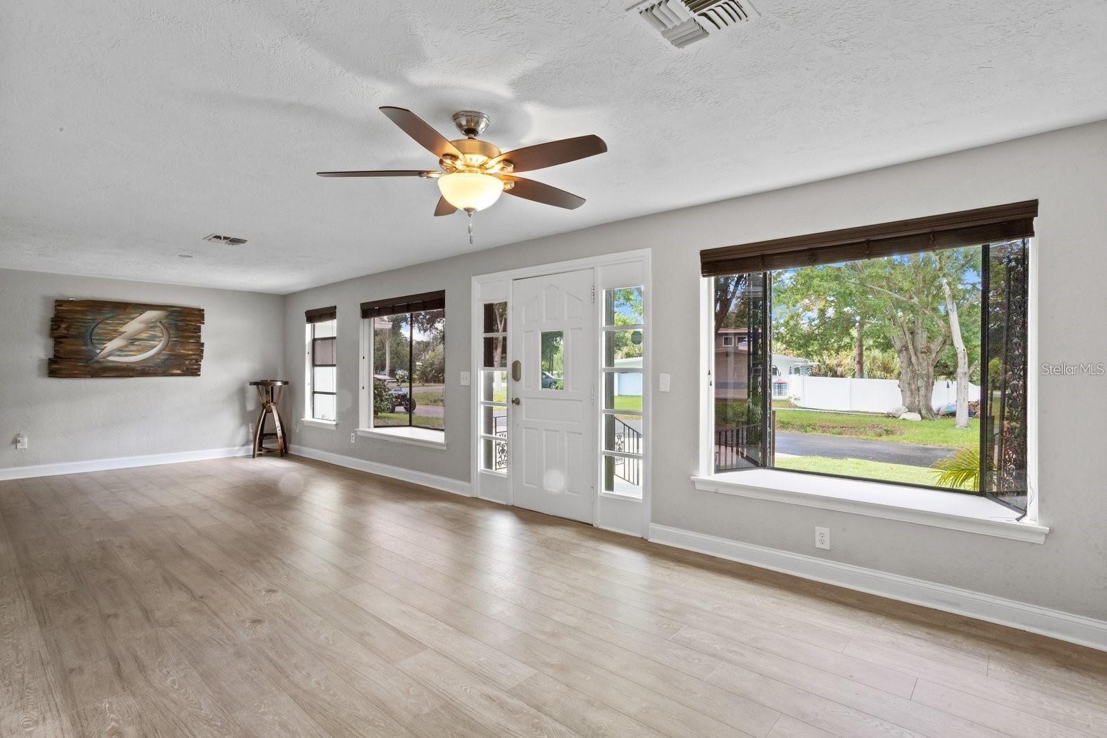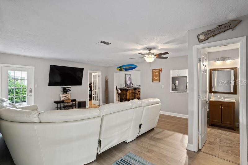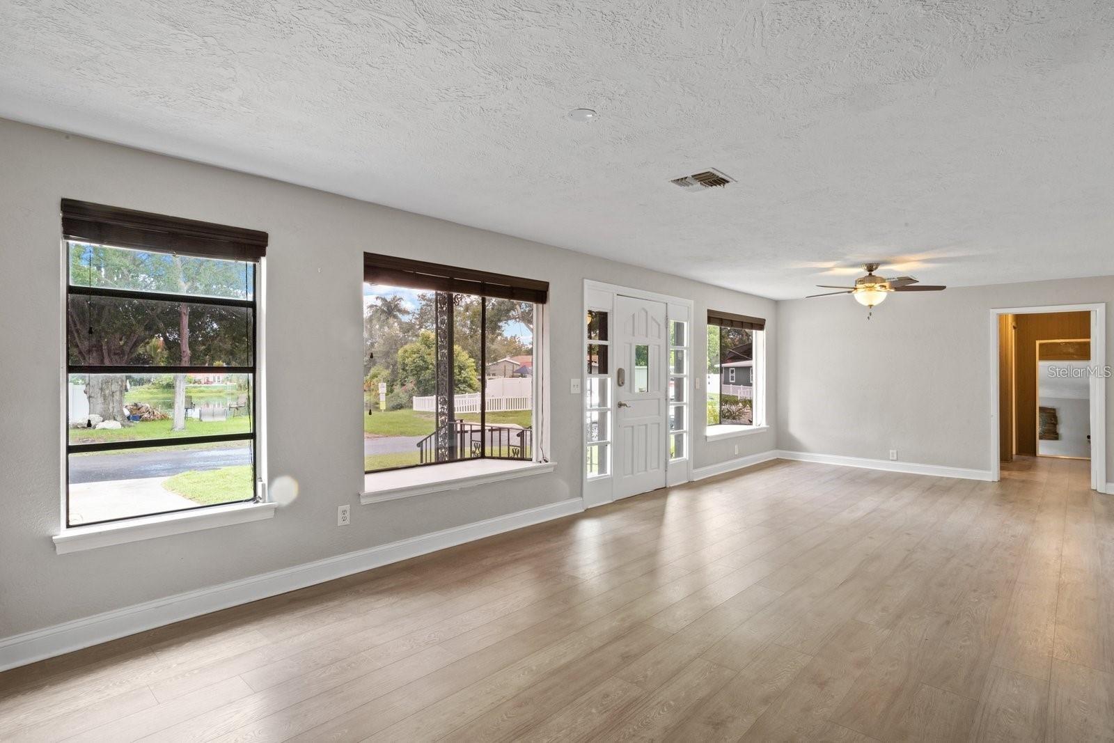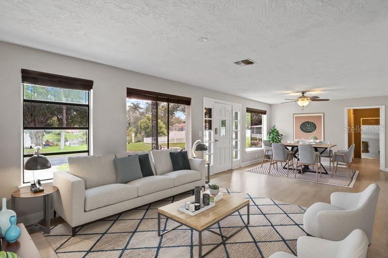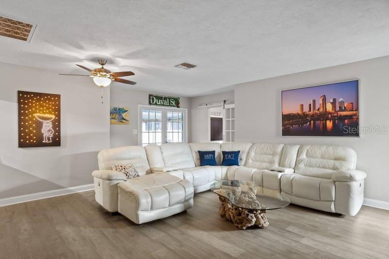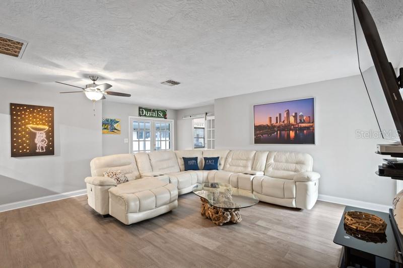 One or more photos have been virtually staged. NO FLOOD ZONE. High and Dry Home. No Damage from Helene or Milton. Perched graciously overlooking the serene waters of Ibis Lake, this exceptional lakefront residence is a true gem nestled within the heart of the Pelican Creek subdivision in St. Petersburg. Located in a NO FLOOD ZONE & NO HOA, this home offers peace of mind and a prime location. Impeccably positioned just moments away from Florida's most captivating beaches, esteemed private & public schools, diverse dining options, shopping, the vibrant downtown of St. Petersburg, & easily accessible international airports, this home defines convenience and comfortable living. With over 1,900 square feet of living space, the residence features 3 bedrooms, 2.5 upgraded bathrooms, an inviting office, and a versatile art studio or additional office/playroom & inside laundry facility. The interior includes a spacious gathering room, ideal for relaxation & entertainment, as well as a formal living & dining room combination. The 2017-renovated kitchen boasts soft-close, pristine white cabinets, stainless steel appliances, & elegant granite countertops. A screened lanai with a heated spa/soaking pool, a fully fenced backyard with a firepit, and a 1-car garage enhance the home's appeal. The concrete driveway can accommodate multiple cars, and there's an extended driveway perfect for an RV or boat. Additional amenities include updated utilities & flooring, an Electrical Panel (2023), an Electrical Pool Heater (2023), a Fence Gate (2023), a Concrete Driveway Extension (2023), a Garage Door Opener (2023), and an HD Security System with 6 Cameras and Storage Hard Drive (no fees). With no HOA fees, NO FLOOD INSURANCE REQUIRED & its advantageous location, this residence offers an exceptional lifestyle. All information is to be verified by buyers.