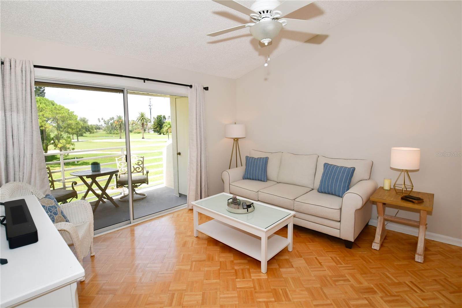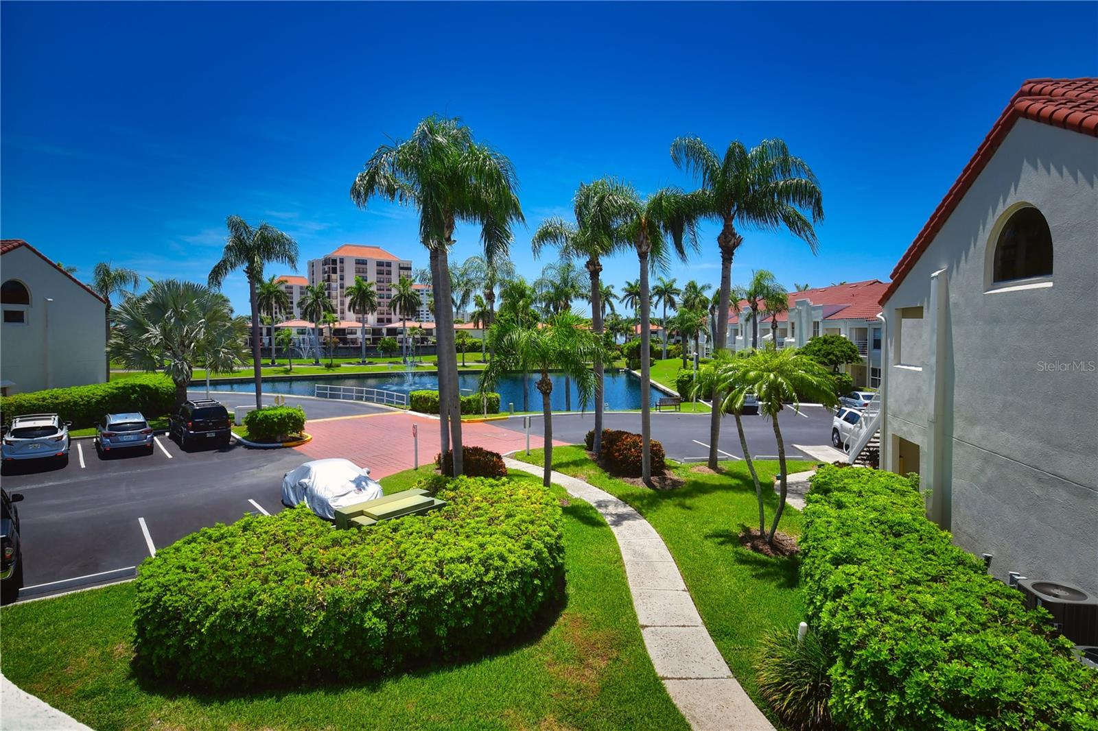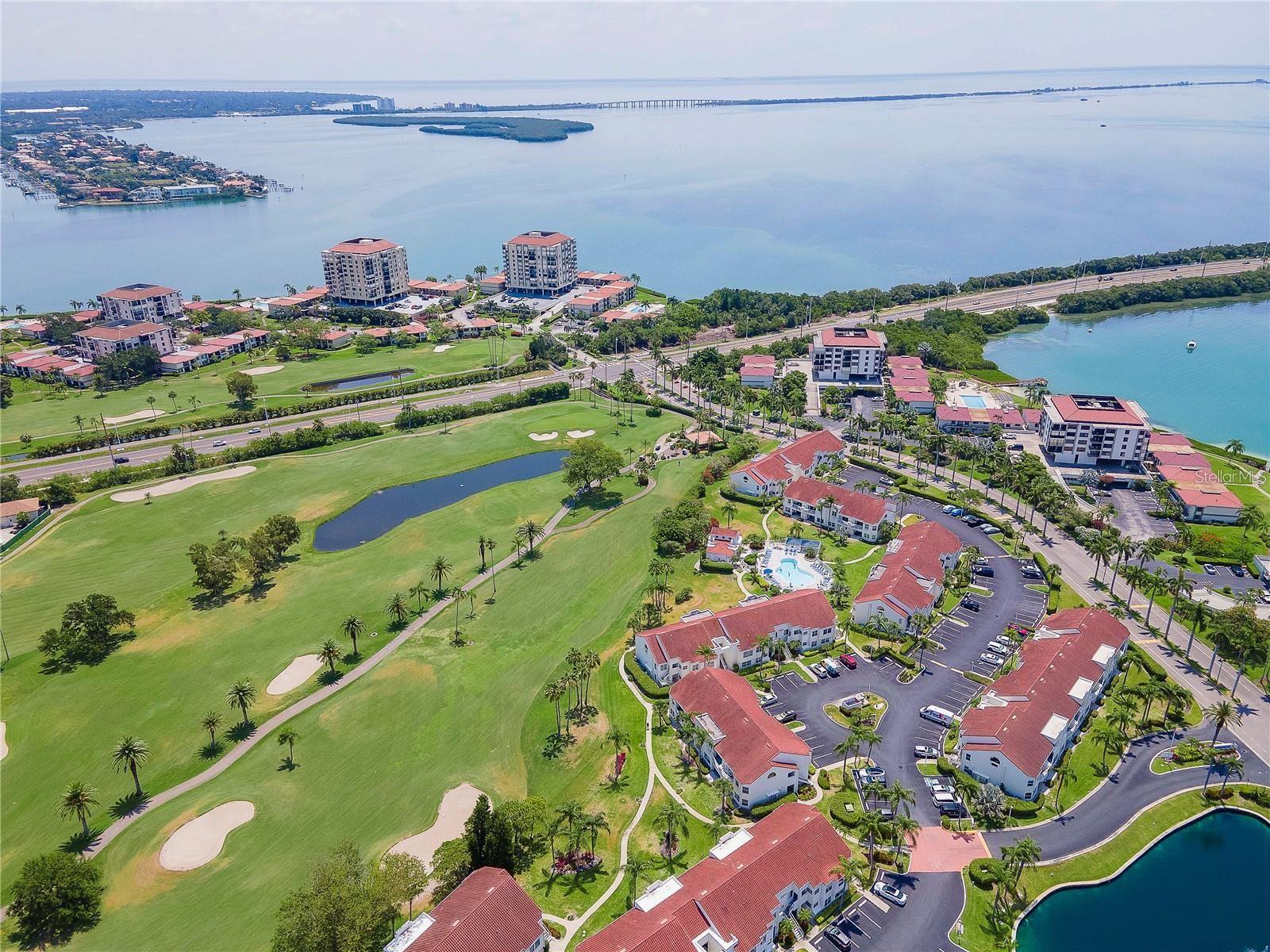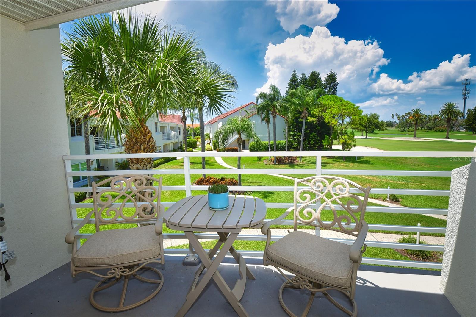 Welcome to Isla Del Sol. This community lives up to its name as an Island in the Sun! A planned development with tropical landscaping, winding paths and community pools - surrounded by a championship golf course. As soon as you enter this CORNER UNIT condominium, you are drawn to the incredible Golf Course Views! Soaring Vaulted ceilings create a large bright space in the open floor plan. The kitchen has newer appliances and plenty of pantry storage. Glass sliders from the living space lead you directly to your personal patio with fairway views, the perfect spot for sipping your morning coffee. Ideally located off the 18-hole golf course, the balcony is secluded among the lush landscape where you can maintain the entertaining views the golf course has to offer while staying out of the direct path of golf balls. Parquet flooring throughout the entire residence has a beachy blonde finish - easily maintain this elegant and elevated look. The primary suite has more golf course views, high ceilings and ensuite bath with walk-in closet. The primary bath has double vanity and a large tub with shower. The split bedroom plan offers privacy for hosts and guests with the second bedroom on the opposite side of the home. This spacious second bedroom has a full wall of built-in shelving, a walk-in closet and ensuite bath. Laundry and linen closets offer additional convenience and storage space. Take the winding walkway from your private staircase to the heated pool and spa. Become a member of Isla Del Sol Yacht and Country Club and enjoy the 18-hole championship golf course, 8 clay tennis courts, 6 pickleball courts, 76 slip yacht harbor, dining facilities, fitness center and the Club Pool overlooking Boca Ciega Bay. If this purchase is to be part of your investment portfolio, the weekly rental restrictions make this a very lucrative venture (7 day minimum). One reserved parking space, plenty of guest parking and an EV charging station. Located in the enclave called Vista Verde East, this area of Isla del Sol is just 10 minutes to anywhere! Over the Pinellas Bayway South to Tierra Verde and the pristine shoreline of Ft. Desoto Park, Pinellas Bayway West to the warm Gulf waters of St. Pete Beach, or East toward Downtown St. Petersburg with its fine dining, museums, micro-breweries and shops! Just a short 25-minute drive to Tampa International Airport or over the Skyway to Bradenton and Sarasota. Enjoy the entertainment of FIVE Professional Sports Teams – Tampa Bay Buccaneers Football, Tampa Bay Lightning Hockey, Tampa Bay Rays Baseball and The Rowdies and Suns Soccer.