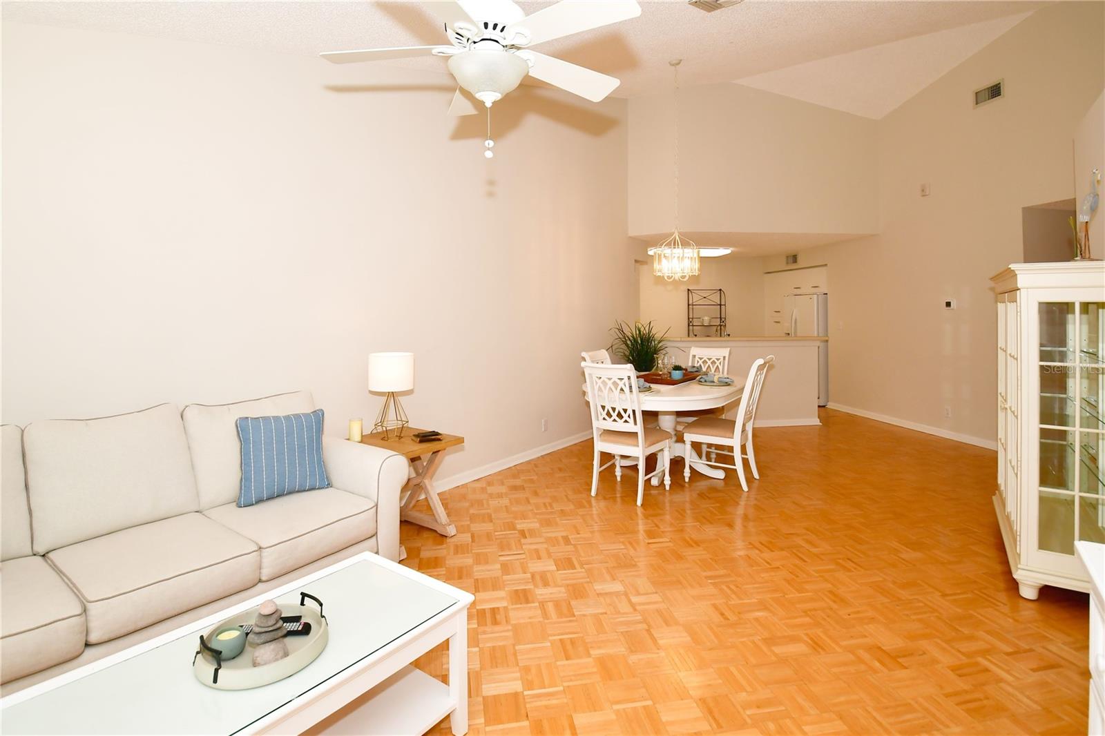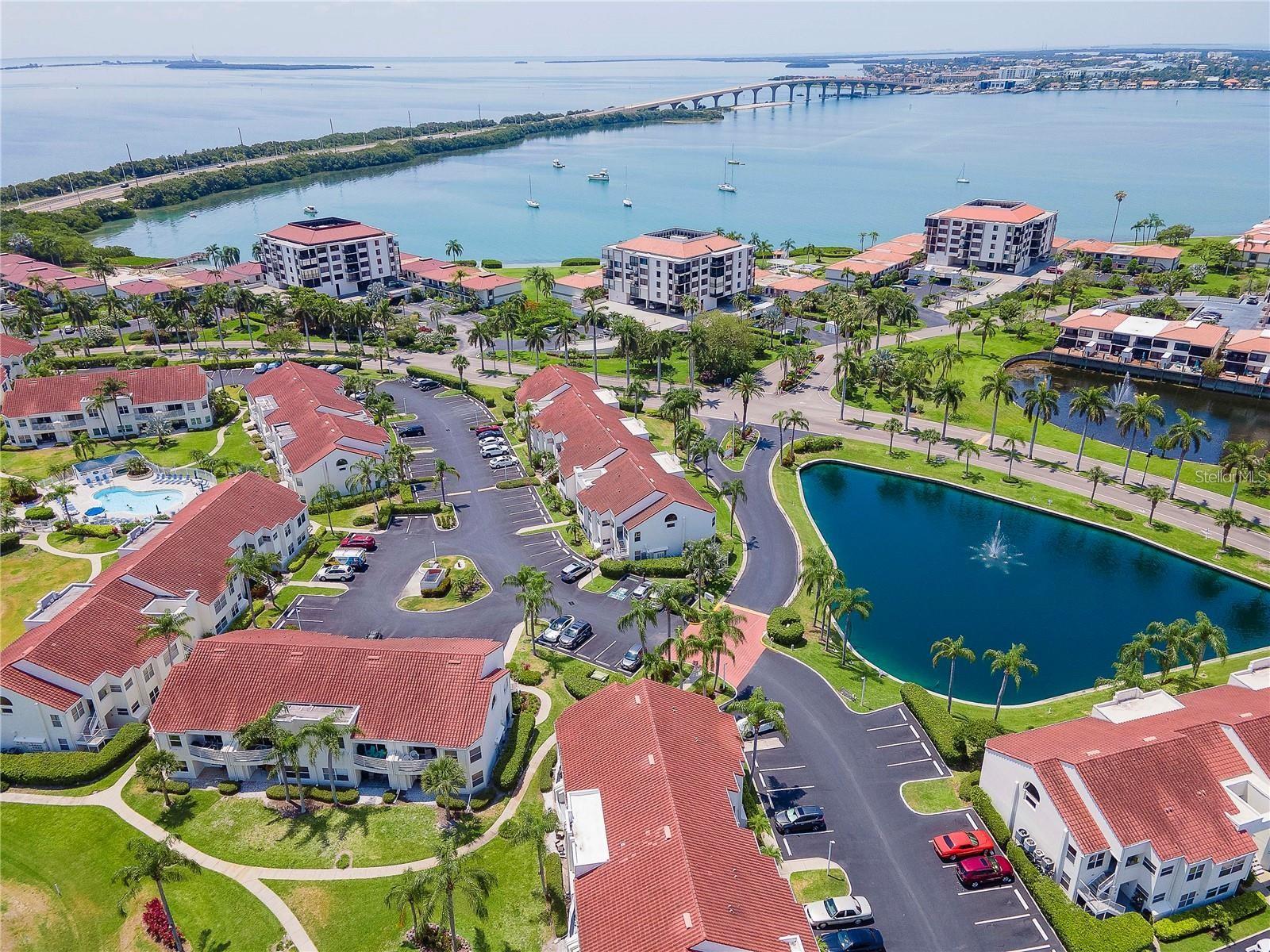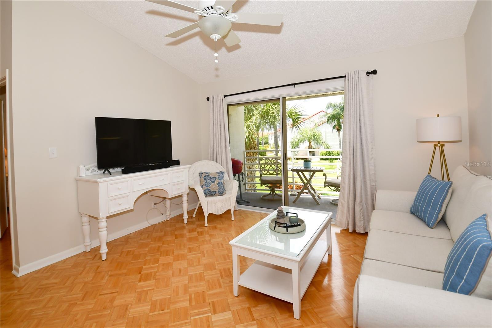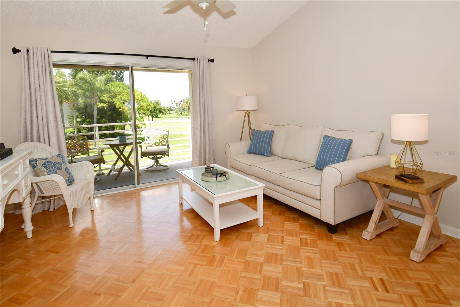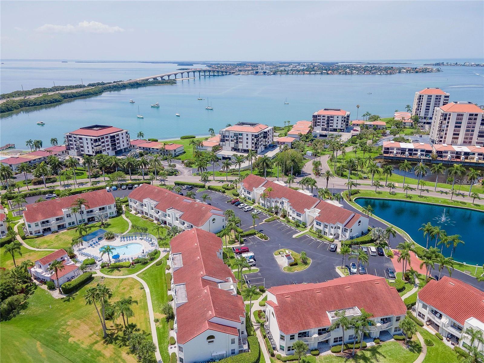 Welcome to Isla Del Sol. This community lives up to its name as an Island in the Sun! A planned development with tropical landscaping, winding paths and community pools - surrounded by a championship golf course. As soon as you enter this CORNER UNIT condominium, you are drawn to the incredible Golf Course Views! Soaring Vaulted ceilings create a large bright space in the open floor plan. The kitchen has newer appliances and plenty of pantry storage. Glass sliders from the living space lead you directly to your personal patio with fairway views, the perfect spot for sipping your morning coffee. Ideally located off the 18-hole golf course, the balcony is secluded among the lush landscape where you can maintain the entertaining views the golf course has to offer while staying out of the direct path of golf balls. Parquet flooring throughout the entire residence has a beachy blonde finish - easily maintain this elegant and elevated look. The primary suite has more golf course views, high ceilings and ensuite bath with walk-in closet. The primary bath has double vanity and a large tub with shower. The split bedroom plan offers privacy for hosts and guests with the second bedroom on the opposite side of the home. This spacious second bedroom has a full wall of built-in shelving, a walk-in closet and ensuite bath. Laundry and linen closets offer additional convenience and storage space. Take the winding walkway from your private staircase to the heated pool and spa. Become a member of Isla Del Sol Yacht and Country Club and enjoy the 18-hole championship golf course, 8 clay tennis courts, 6 pickleball courts, 76 slip yacht harbor, dining facilities, fitness center and the Club Pool overlooking Boca Ciega Bay. If this purchase is to be part of your investment portfolio, the weekly rental restrictions make this a very lucrative venture (7 day minimum). One reserved parking space, plenty of guest parking and an EV charging station. Located in the enclave called Vista Verde East, this area of Isla del Sol is just 10 minutes to anywhere! Over the Pinellas Bayway South to Tierra Verde and the pristine shoreline of Ft. Desoto Park, Pinellas Bayway West to the warm Gulf waters of St. Pete Beach, or East toward Downtown St. Petersburg with its fine dining, museums, micro-breweries and shops! Just a short 25-minute drive to Tampa International Airport or over the Skyway to Bradenton and Sarasota. Enjoy the entertainment of FIVE Professional Sports Teams – Tampa Bay Buccaneers Football, Tampa Bay Lightning Hockey, Tampa Bay Rays Baseball and The Rowdies and Suns Soccer.