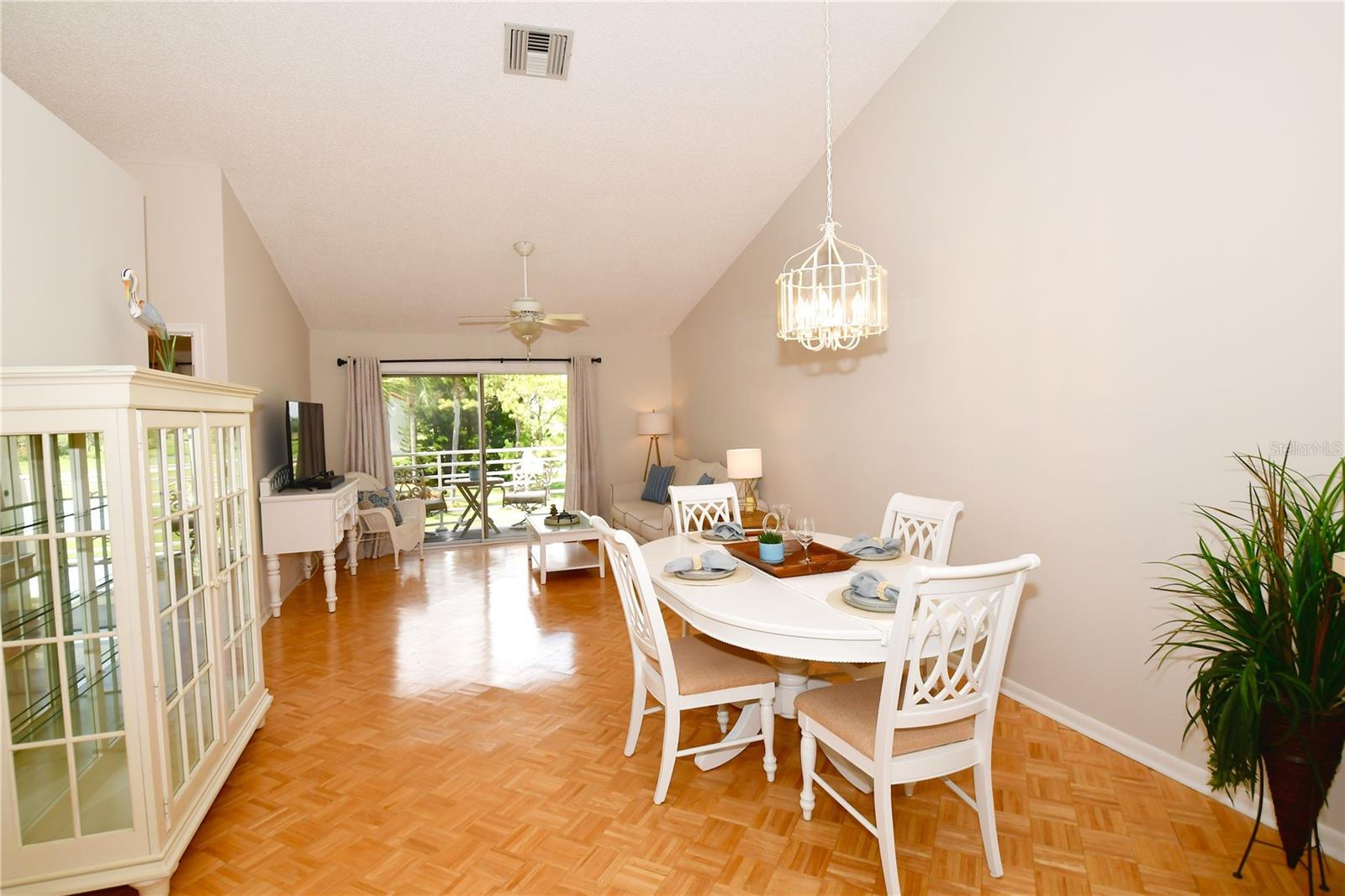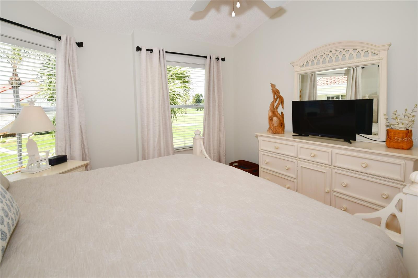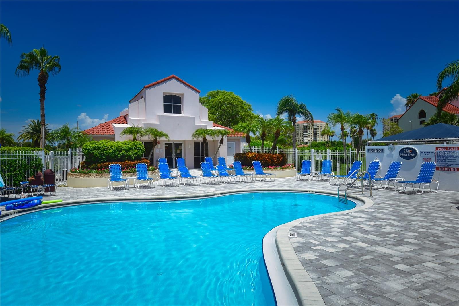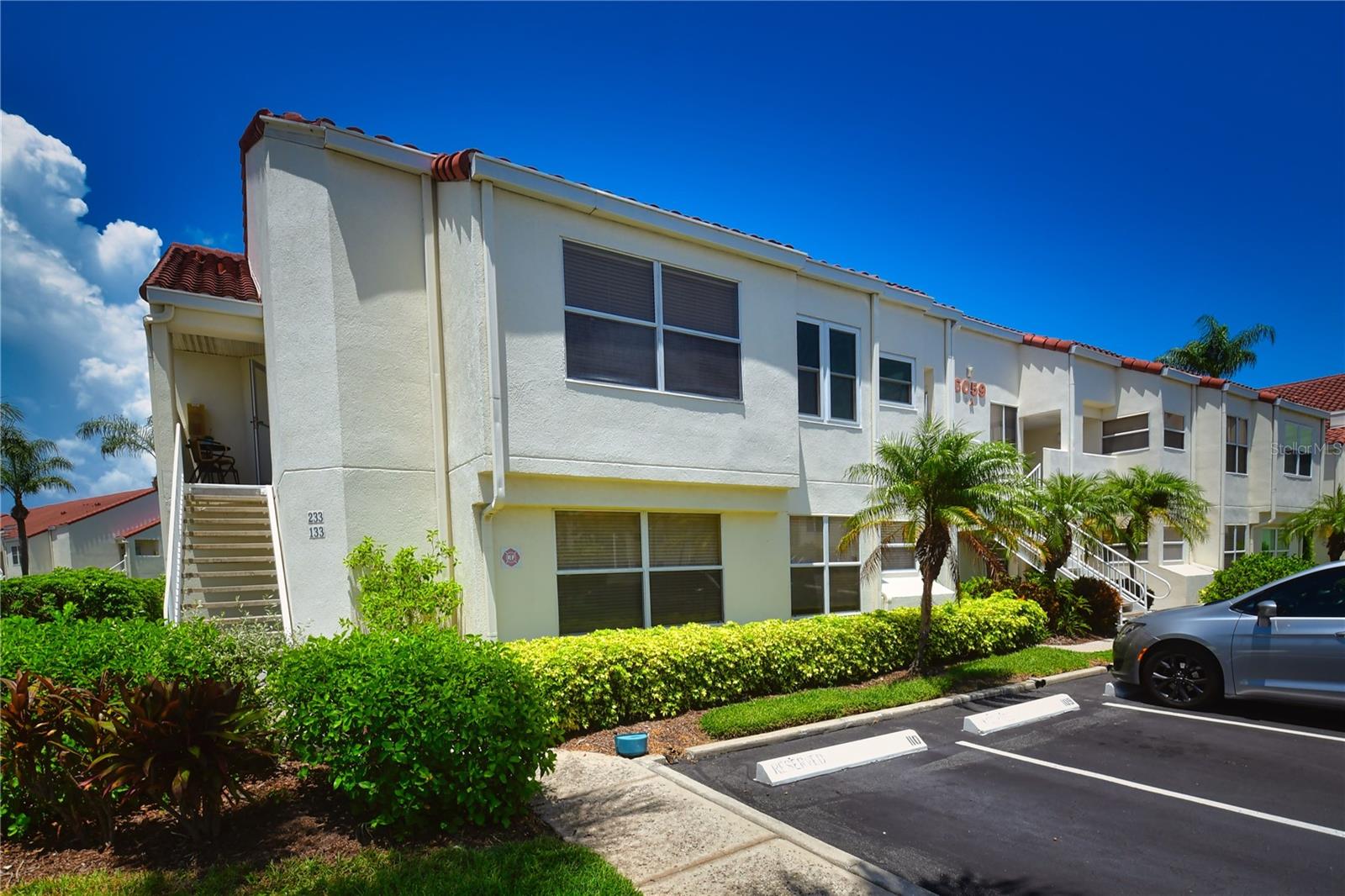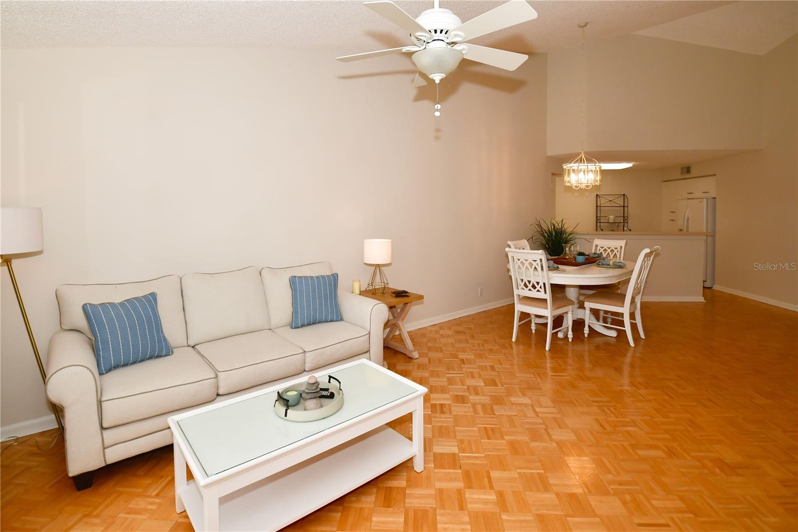 Welcome to Isla Del Sol. This community lives up to its name as an Island in the Sun! A planned development with tropical landscaping, winding paths and community pools - surrounded by a championship golf course. As soon as you enter this CORNER UNIT condominium, you are drawn to the incredible Golf Course Views! Soaring Vaulted ceilings create a large bright space in the open floor plan. The kitchen has newer appliances and plenty of pantry storage. Glass sliders from the living space lead you directly to your personal patio with fairway views, the perfect spot for sipping your morning coffee. Ideally located off the 18-hole golf course, the balcony is secluded among the lush landscape where you can maintain the entertaining views the golf course has to offer while staying out of the direct path of golf balls. Parquet flooring throughout the entire residence has a beachy blonde finish - easily maintain this elegant and elevated look. The primary suite has more golf course views, high ceilings and ensuite bath with walk-in closet. The primary bath has double vanity and a large tub with shower. The split bedroom plan offers privacy for hosts and guests with the second bedroom on the opposite side of the home. This spacious second bedroom has a full wall of built-in shelving, a walk-in closet and ensuite bath. Laundry and linen closets offer additional convenience and storage space. Take the winding walkway from your private staircase to the heated pool and spa. Become a member of Isla Del Sol Yacht and Country Club and enjoy the 18-hole championship golf course, 8 clay tennis courts, 6 pickleball courts, 76 slip yacht harbor, dining facilities, fitness center and the Club Pool overlooking Boca Ciega Bay. If this purchase is to be part of your investment portfolio, the weekly rental restrictions make this a very lucrative venture (7 day minimum). One reserved parking space, plenty of guest parking and an EV charging station. Located in the enclave called Vista Verde East, this area of Isla del Sol is just 10 minutes to anywhere! Over the Pinellas Bayway South to Tierra Verde and the pristine shoreline of Ft. Desoto Park, Pinellas Bayway West to the warm Gulf waters of St. Pete Beach, or East toward Downtown St. Petersburg with its fine dining, museums, micro-breweries and shops! Just a short 25-minute drive to Tampa International Airport or over the Skyway to Bradenton and Sarasota. Enjoy the entertainment of FIVE Professional Sports Teams – Tampa Bay Buccaneers Football, Tampa Bay Lightning Hockey, Tampa Bay Rays Baseball and The Rowdies and Suns Soccer.