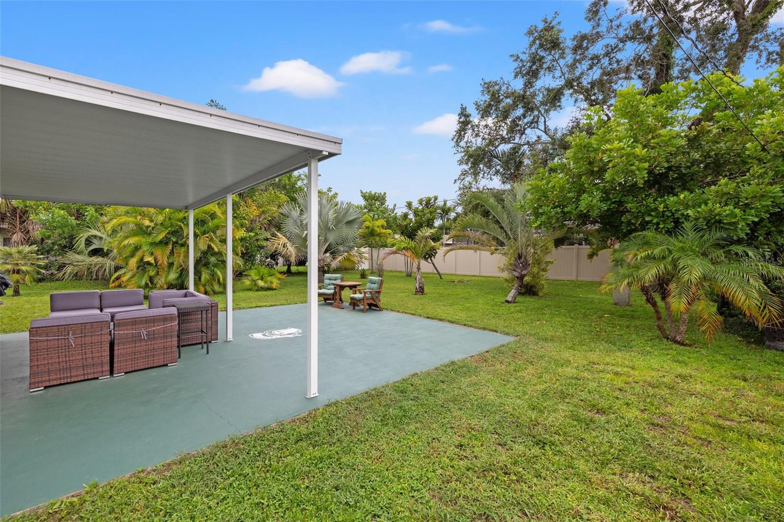 Tropical oasis in Northeast Park Shores! Two bedroom, two bath block home featuring an open concept living space with views of your lush tropically landscaped private backyard oasis complete with covered patio--ideal for entertaining family and friends. You'll love the tall ceilings and natural light. The spacious kitchen is at the heart of the home with new stone countertops -- it's perfect for the chef in your life. The well appointed bedrooms include two that amazing retro Florida tile bathrooms in pristine condition. This stunning home is close to golf courses, tennis courts, waterfront parks, bike and walking paths, boat launches, fitness centers along with convenient grocery shopping such as Publix, Trader Joe’s, Fresh Market and Whole Foods are less than a mile away. Venture to nearby thriving downtown St Petersburg where you can enjoy fine dining, museums, shopping, nightlife, The Pier and professional sports. Quick commutes to Tampa International Airport and award-winning beaches. Schedule your tour today!