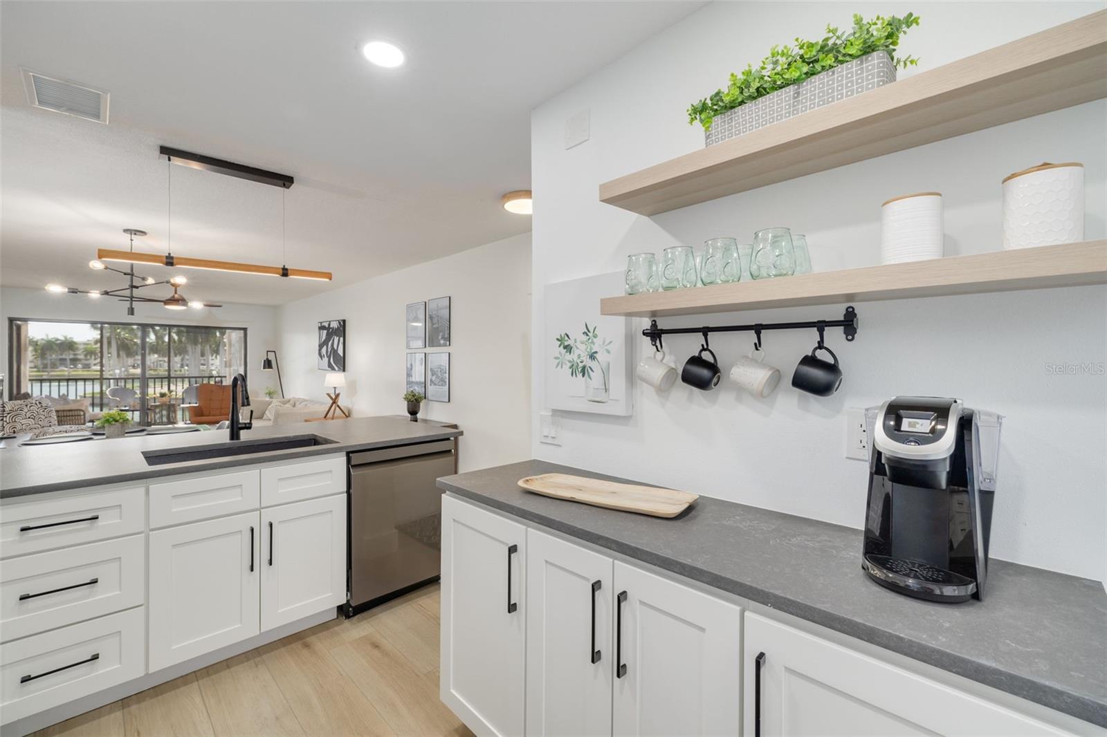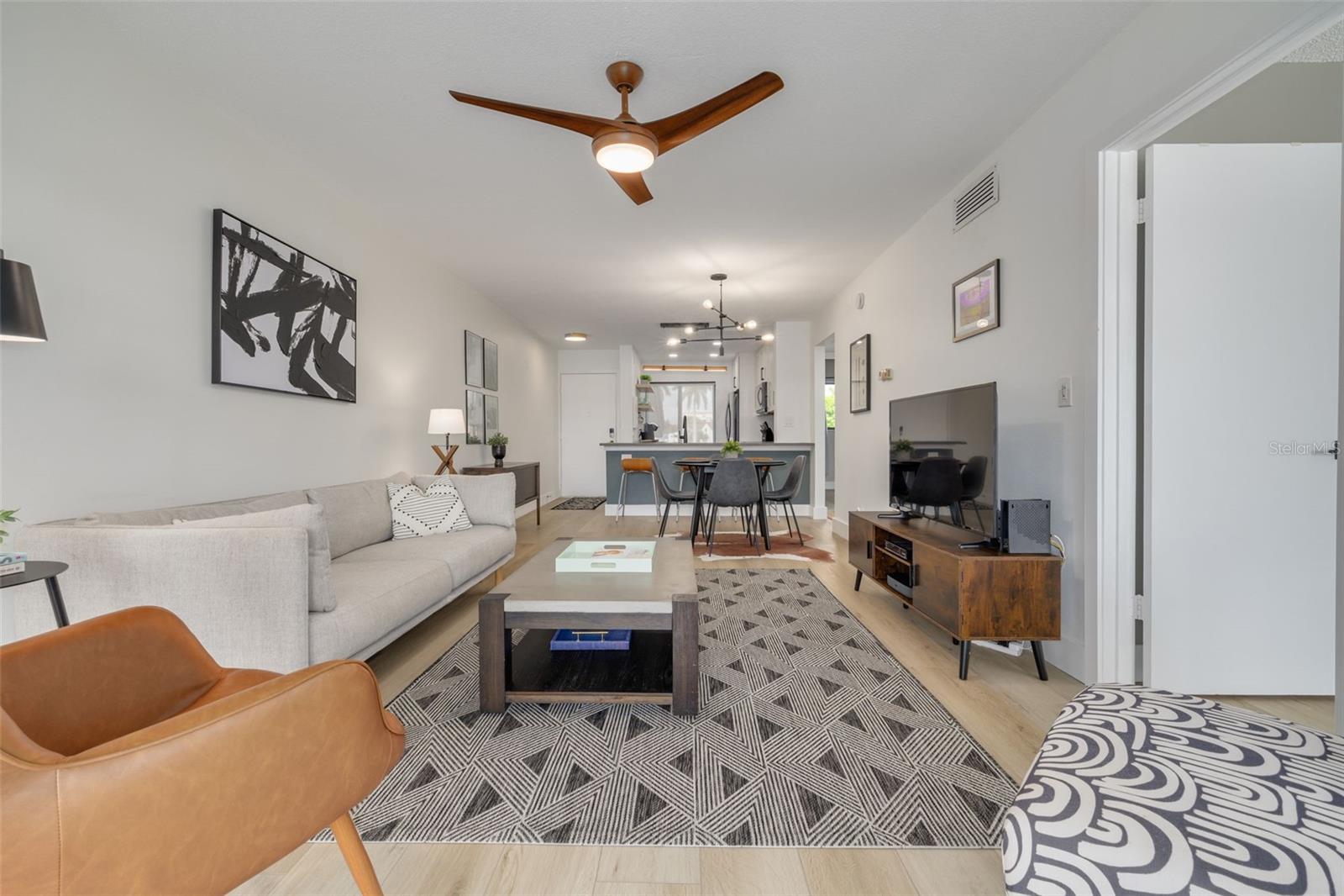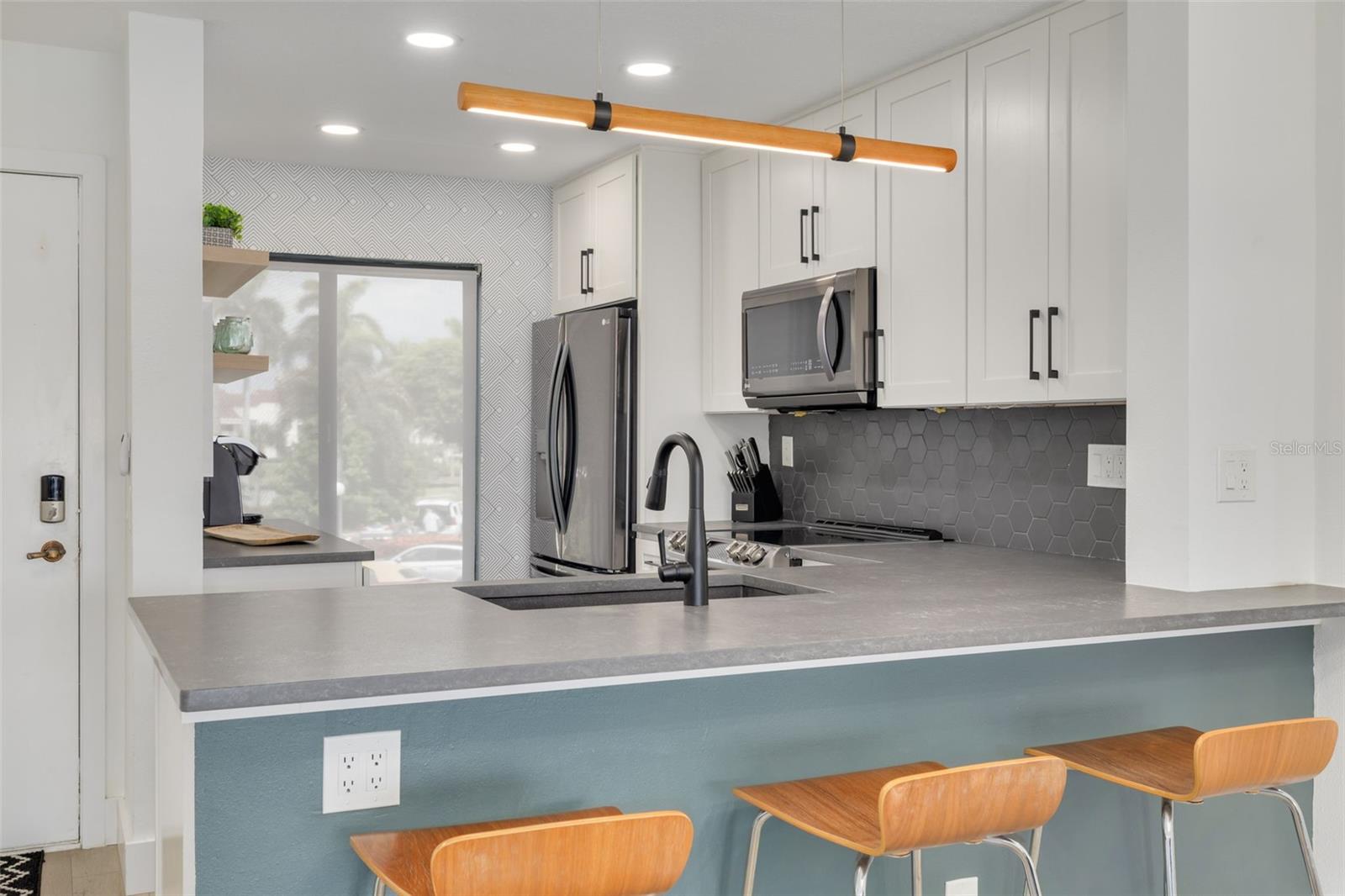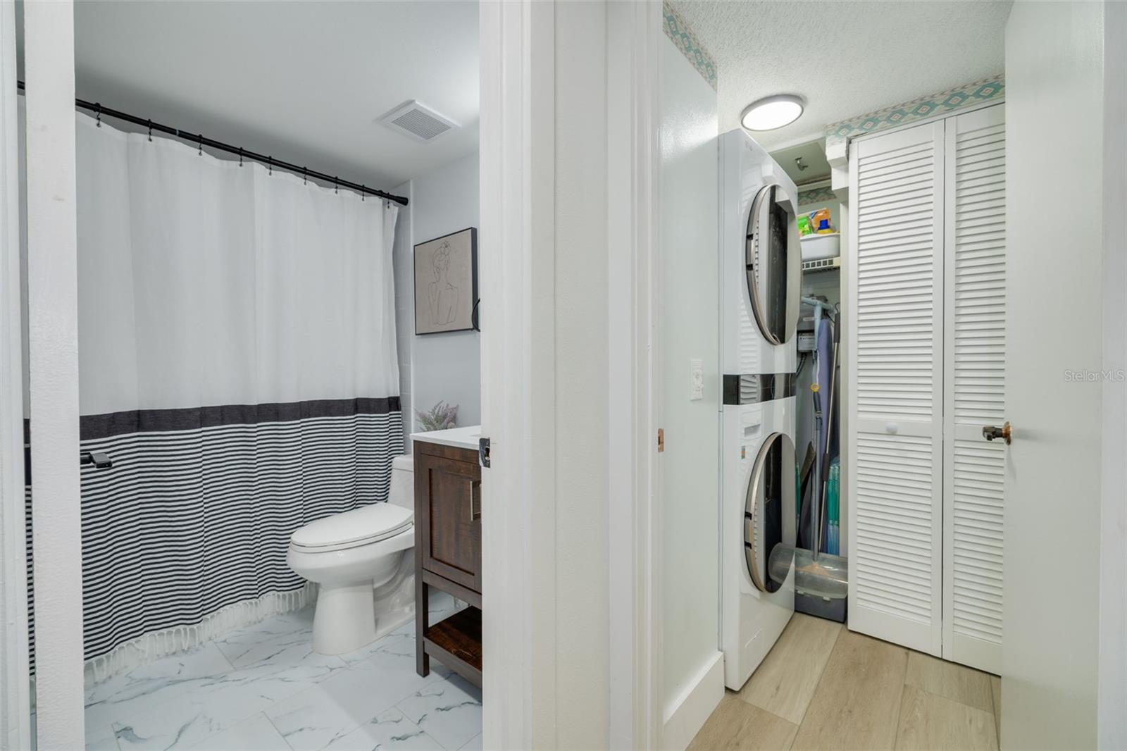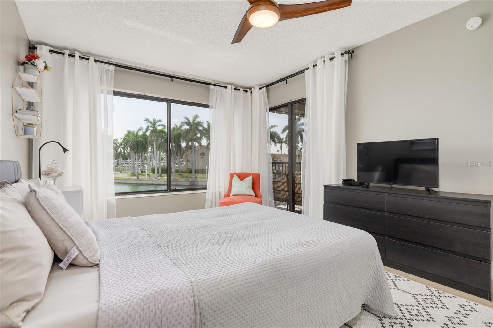 This condo is DRY and had NO DAMAGE from the hurricanes! Welcome to Bahia del Mar, part of the Isla del Sol community where residents enjoy a pampered and active lifestyle. Nestled at the southern tip of St Petesburg, this community is minutes from Tierra Verde, Fort Desoto State Park and the sugar sand Gulf beaches of Pass-A-Grille and St Pete Beach. Lush tropical landscaping, winding bike paths and walkways, and shimmering water surround this resort-style community. Life at Bahia del Mar includes days lounging at the pool overlooking the bay, and evenings making new friends in the clubhouse where you can enjoy the fitness room and play pool, poker and ping pong. Membership to the Isla del Sol Yacht and Country Club is available and gives access to their first-class 18-hole golf course, tennis and pickleball courts, a 76-slip yacht harbor and more. Unit #210 is a beautifully updated and turnkey condo. This second floor unit features an open concept with a sightline from your front door out to your private balcony overlooking the lake. The kitchen includes a coffee bar, soft-close doors and drawers, pull-out shelves for maximum storage and a breakfast bar. The dining and living space is shared and flows nicely to your balcony, creating an ideal floorplan for entertaining and hosting dinner parties. The balcony is fully screened and provides ample space for outdoor living or dining and includes an exterior storage closet for beach toys and tools. You'll love watching pelicans and other wildlife enjoy the lake! The primary bedroom has an abundance of natural light through large windows overlooking the lake and a private slider giving access to the balcony. This bedroom offers a custom closet system and sophisticated ensuite bath including a step-in shower. The guest bedroom is in the front of the condo and includes easy access to the updated guest bath that offers a tub/shower. Your private laundry room is the cherry on top accomodating a full-size stackable washer/dryer set and providing additional storage space. Modern fixtures and sleek tones accented by the lush greenery and water accessibility create the ideal lifestyle here at Bahia del Mar. One reserved parking spot conveys with this unit and is conveniently located steps away from your front door. Tons of guest parking as well as bike storage is available. A monthly condo fee of $657 includes water, sewer, trash, internet and basic cable as well as access to first-class amenities. This is an ALL-AGES community, residents and tenants may have up to 2 pets (total weight not to exceed 30 lbs) and here you can rent your units immediately and for a minimum lease period of 30 days. This unit has a strong rental history and would make an excellent primary residence, weekend or winter getaway or income-generating asset. Learn more about the lifestyle that awaits you at Bahia del Mar...schedule your showing today!