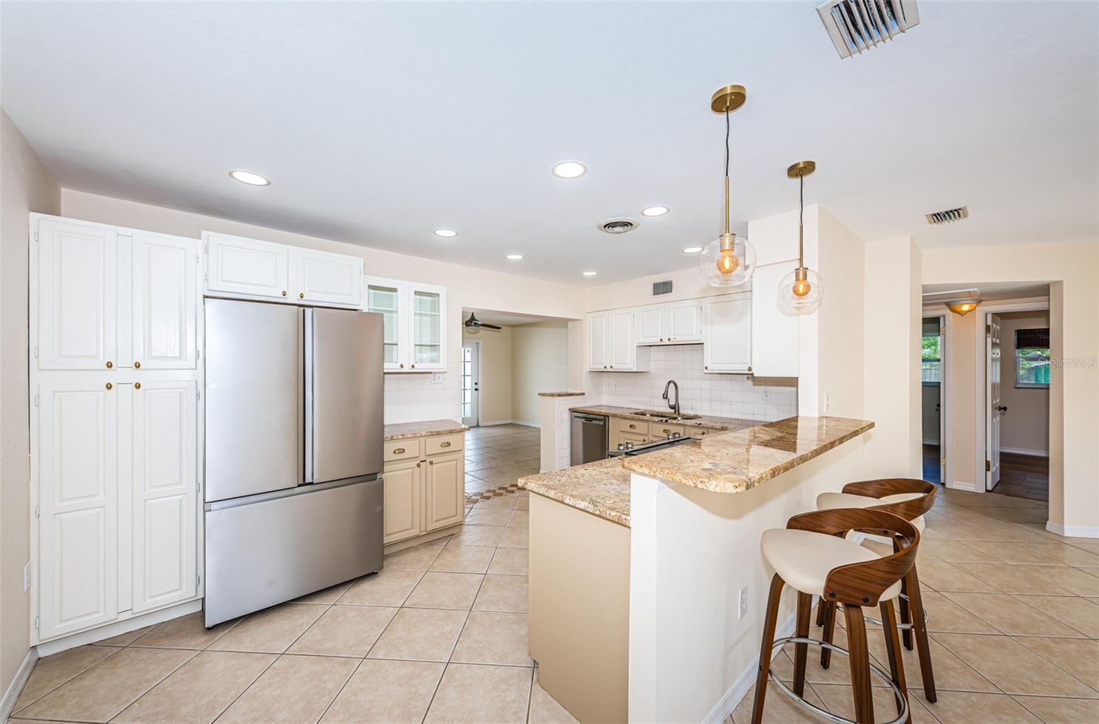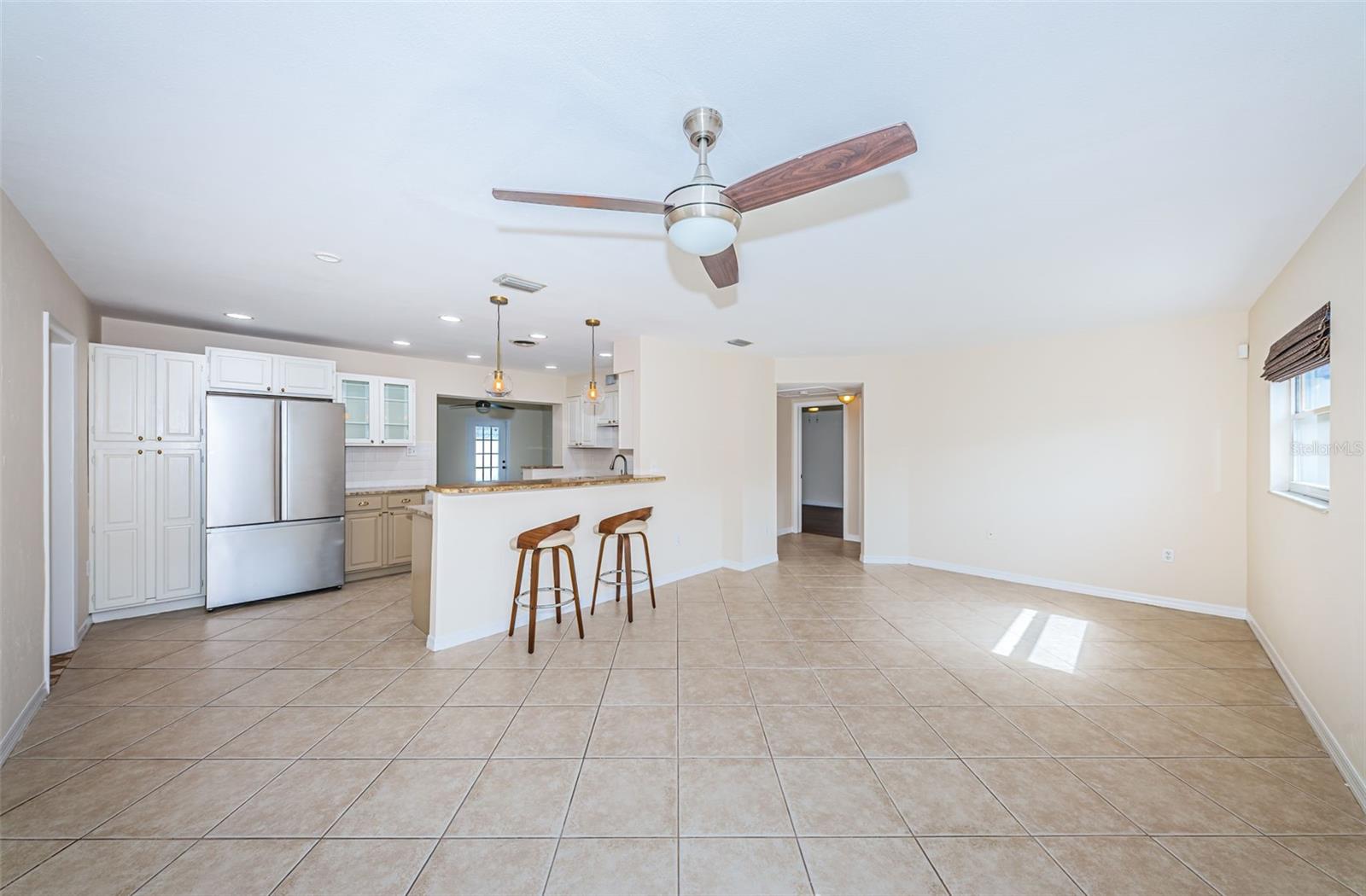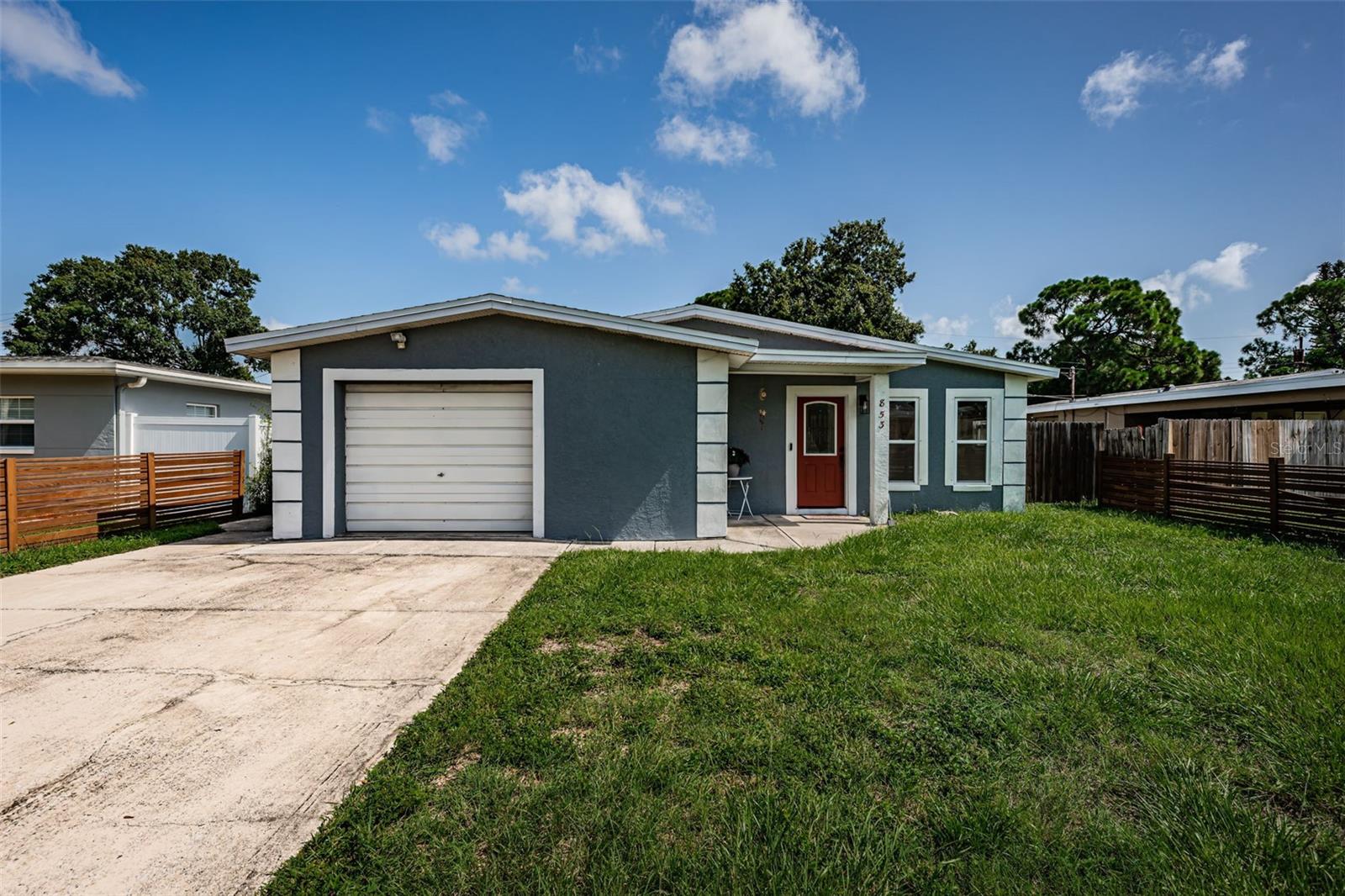 Welcome to 853 88th Avenue N, St. Petersburg, Florida! This beautifully updated 3-bedroom, 2-bathroom home offers 1,452 sq. ft. of modern living space. Step into a large, oversized living room that seamlessly opens to the kitchen, featuring white painted cabinetry, a breakfast bar, and newer stainless steel appliances. The home is adorned with new light fixtures and ceiling fans throughout, adding a contemporary touch to its inviting atmosphere. The one-car garage is equipped with large storage shelves with separate area for laundry providing ample space for all your storage needs. The expansive fenced-in backyard is perfect for pets and includes an oversized storage shed, ideal for outdoor equipment and tools. Conveniently located just 2 miles from grocery stores, shopping, and restaurants, this home offers easy access to everyday essentials. Enjoy the vibrant downtown St. Petersburg lifestyle, just a 10-minute drive away, with its array of dining, shopping, and entertainment options. Nature lovers will appreciate the proximity to Weedon Island Preserve, only 3.5 miles away, offering kayaking tours and scenic hiking paths. Don’t miss out on this fantastic opportunity to own a home that combines modern comfort with an unbeatable location!