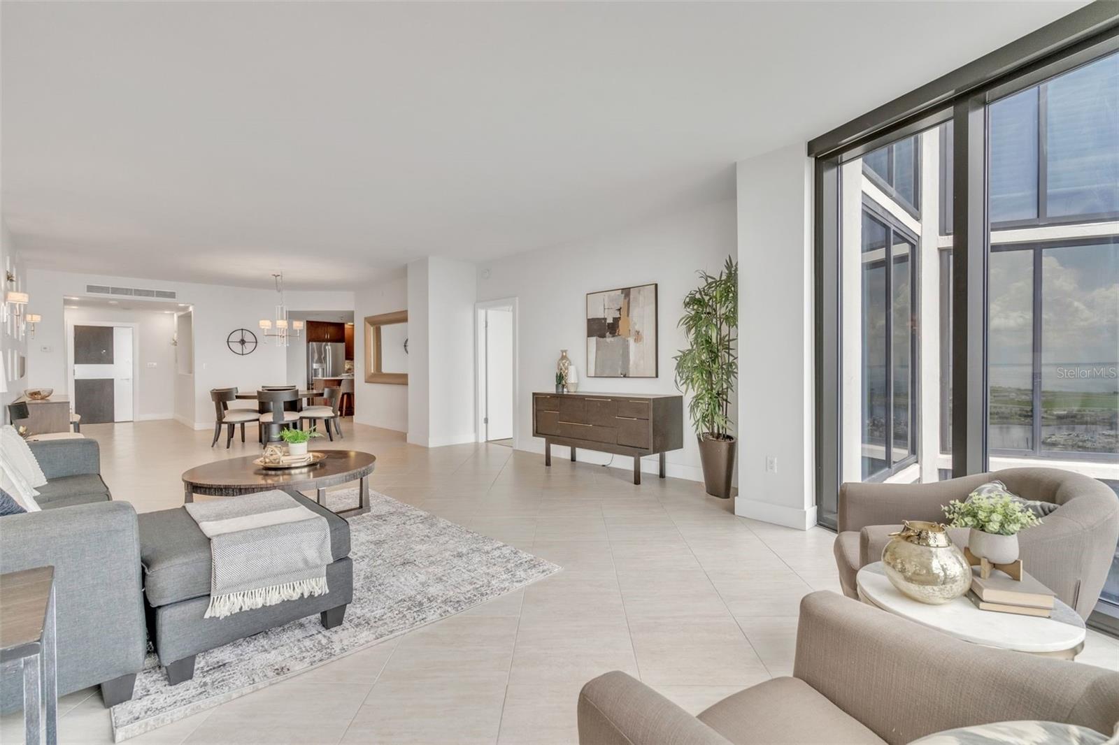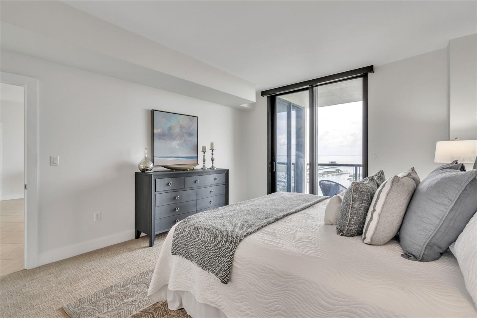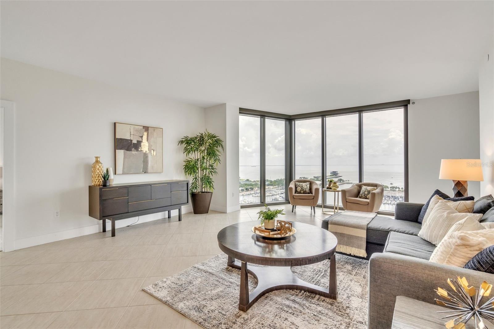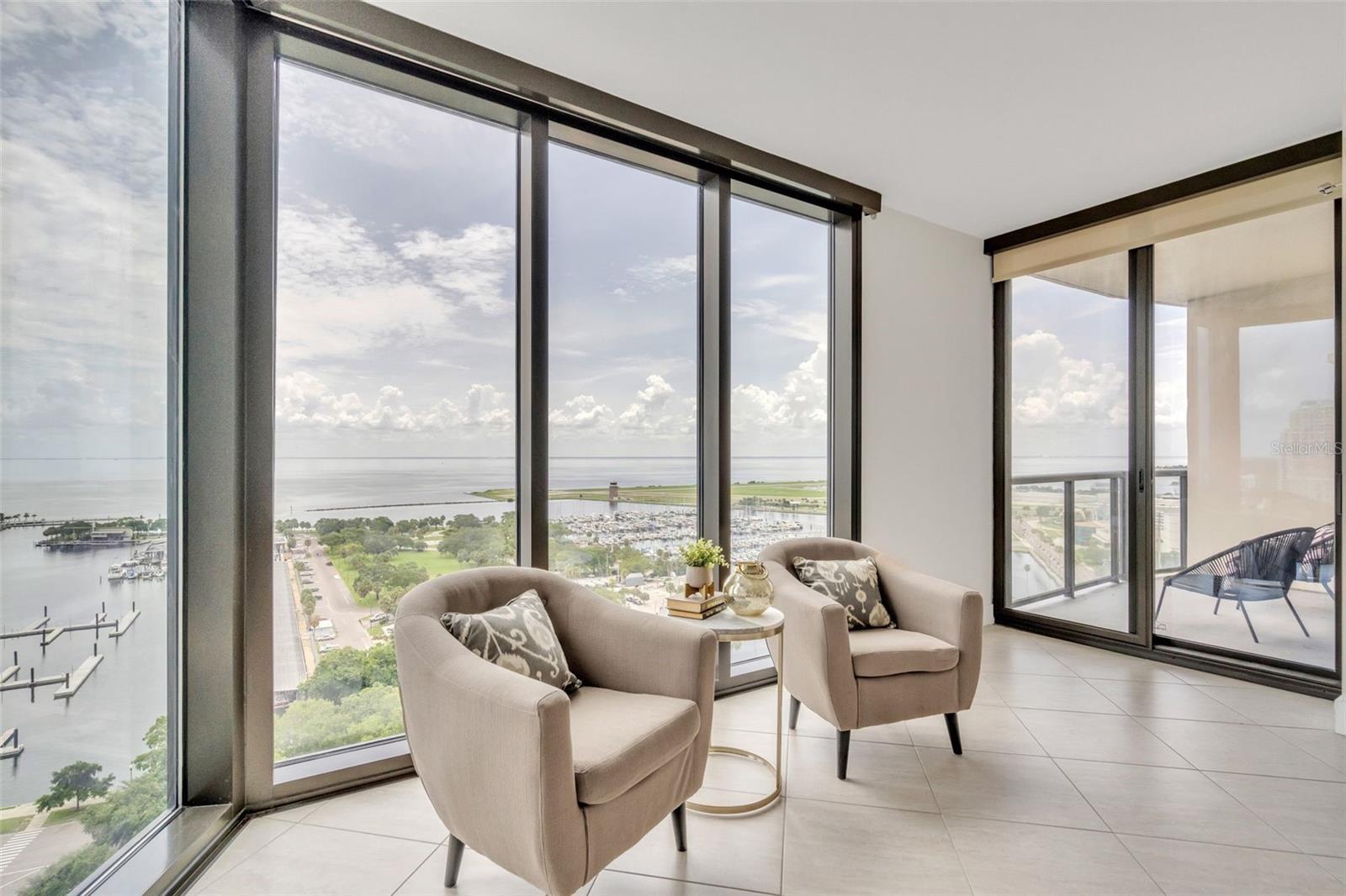 Downtown St. Pete living at its finest at Bayfront Tower. Enjoy floor to ceiling windows that overlook Tampa Bay, the Peir and spectacular sunrises! This beautifully renovated 2 bedroom, 2 bath condo, with a large office, that can be used as a 3rd bedroom. The kitchen has granite counters and solid wood cabinet, stainless appliances and a large island, perfect for prepping dinner or gathering around. Other additions include electric shades throughout the unit, controlled by remotes, newly installed sprinkler system, large bathrooms and ample storage throughout the condo. The common areas, on the 28 and 29th floor have been renovated and include a heated pool, fitness center, saunas, a library, party room and kitchen, pool, barbecues, walking tracks on both floors and sprawling views. Easy living is yours with the 24/7 concierge, valet and a short walk to Beach Drive restaurants and museums. One will be impressed with the elegant design in This large 18th floor unit that is move in ready and could be yours!