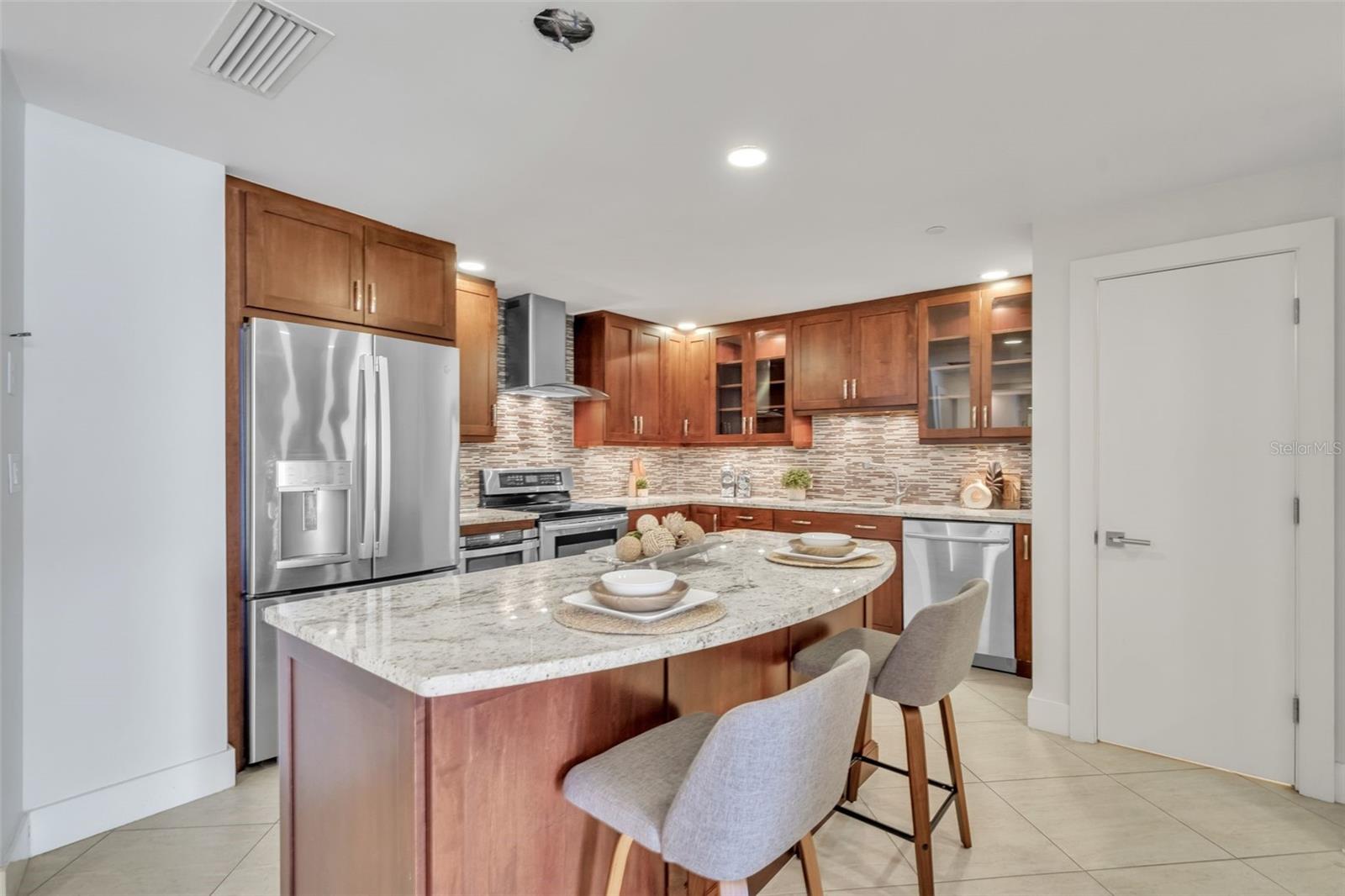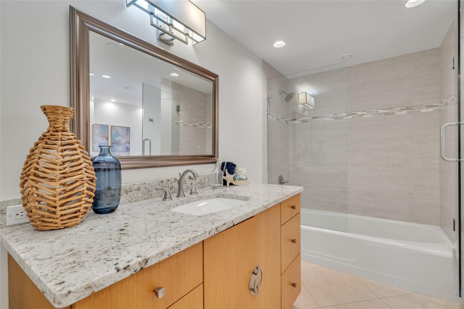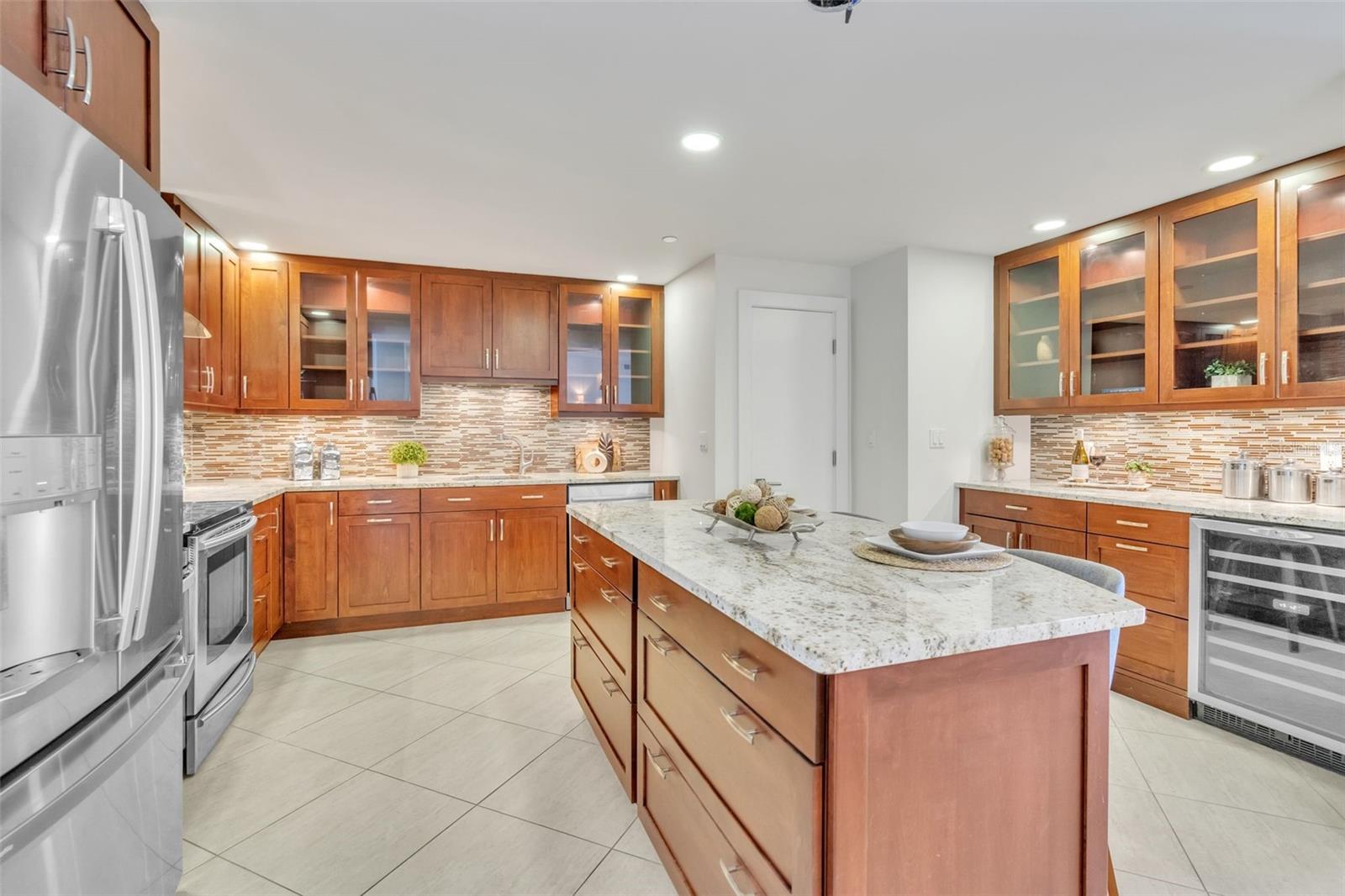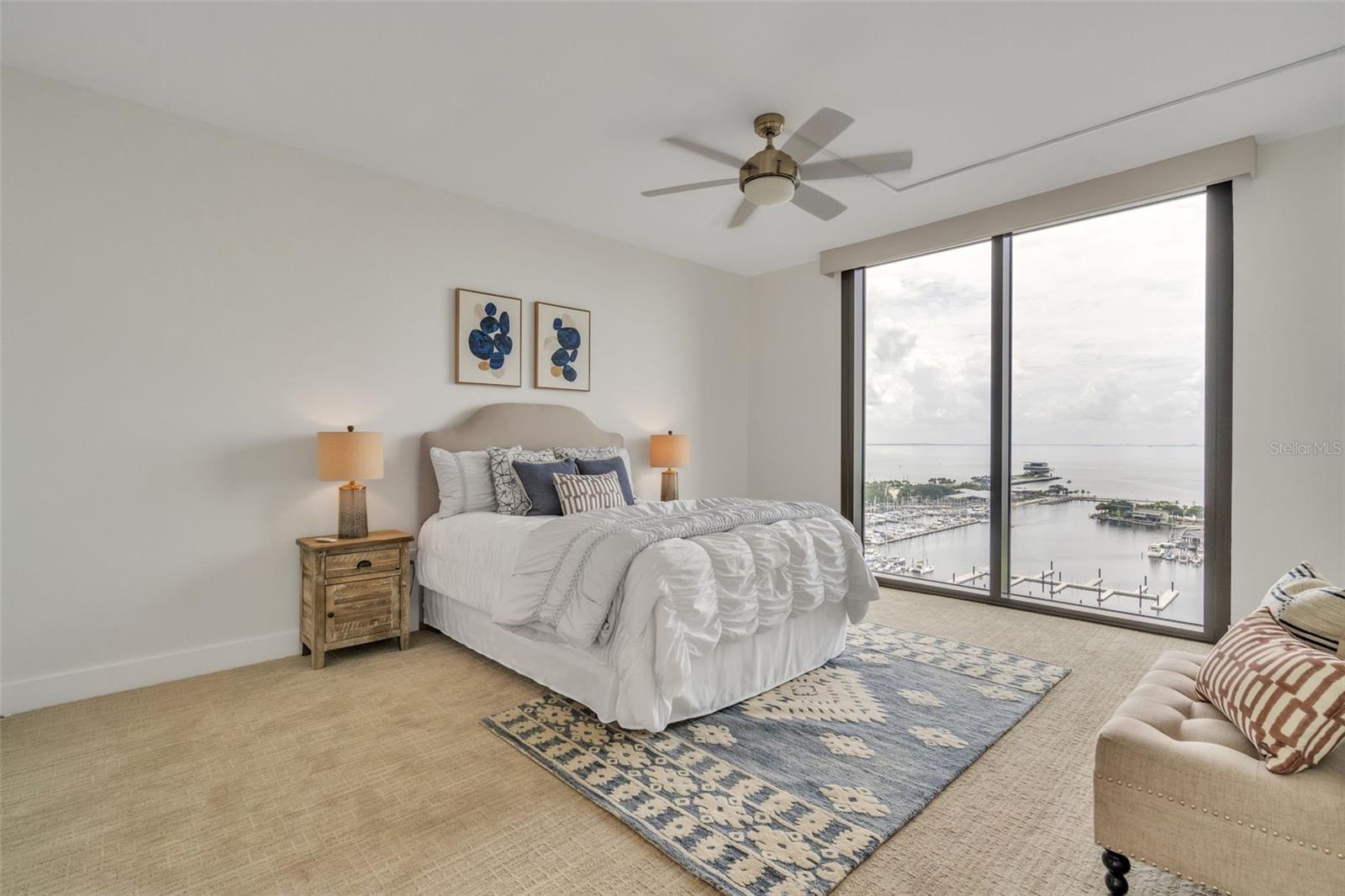 Downtown St. Pete living at its finest at Bayfront Tower. Enjoy floor to ceiling windows that overlook Tampa Bay, the Peir and spectacular sunrises! This beautifully renovated 2 bedroom, 2 bath condo, with a large office, that can be used as a 3rd bedroom. The kitchen has granite counters and solid wood cabinet, stainless appliances and a large island, perfect for prepping dinner or gathering around. Other additions include electric shades throughout the unit, controlled by remotes, newly installed sprinkler system, large bathrooms and ample storage throughout the condo. The common areas, on the 28 and 29th floor have been renovated and include a heated pool, fitness center, saunas, a library, party room and kitchen, pool, barbecues, walking tracks on both floors and sprawling views. Easy living is yours with the 24/7 concierge, valet and a short walk to Beach Drive restaurants and museums. One will be impressed with the elegant design in This large 18th floor unit that is move in ready and could be yours!