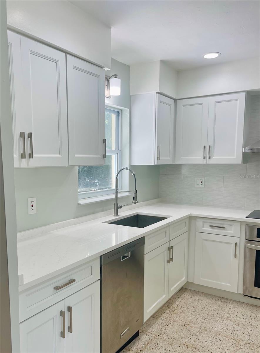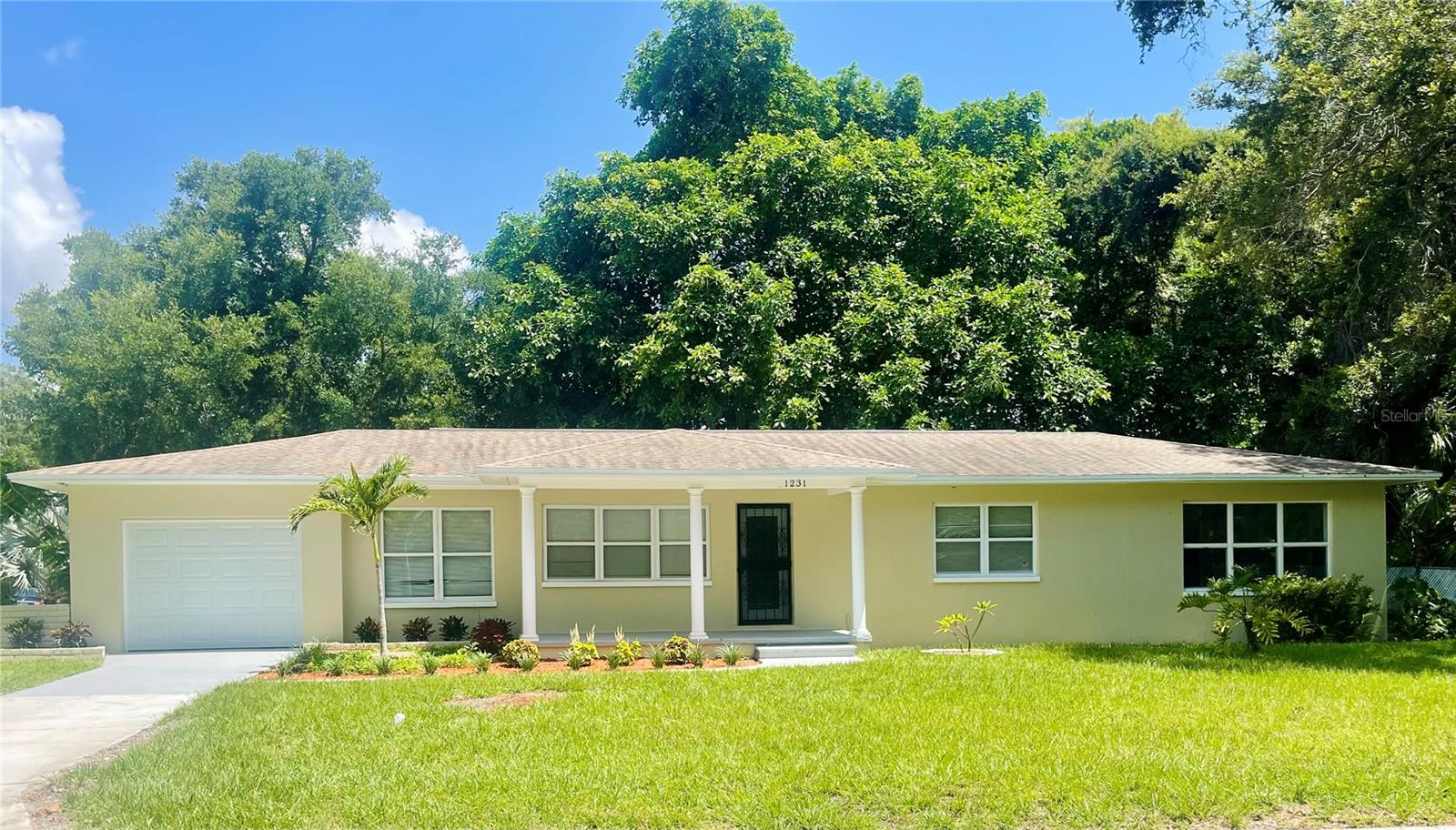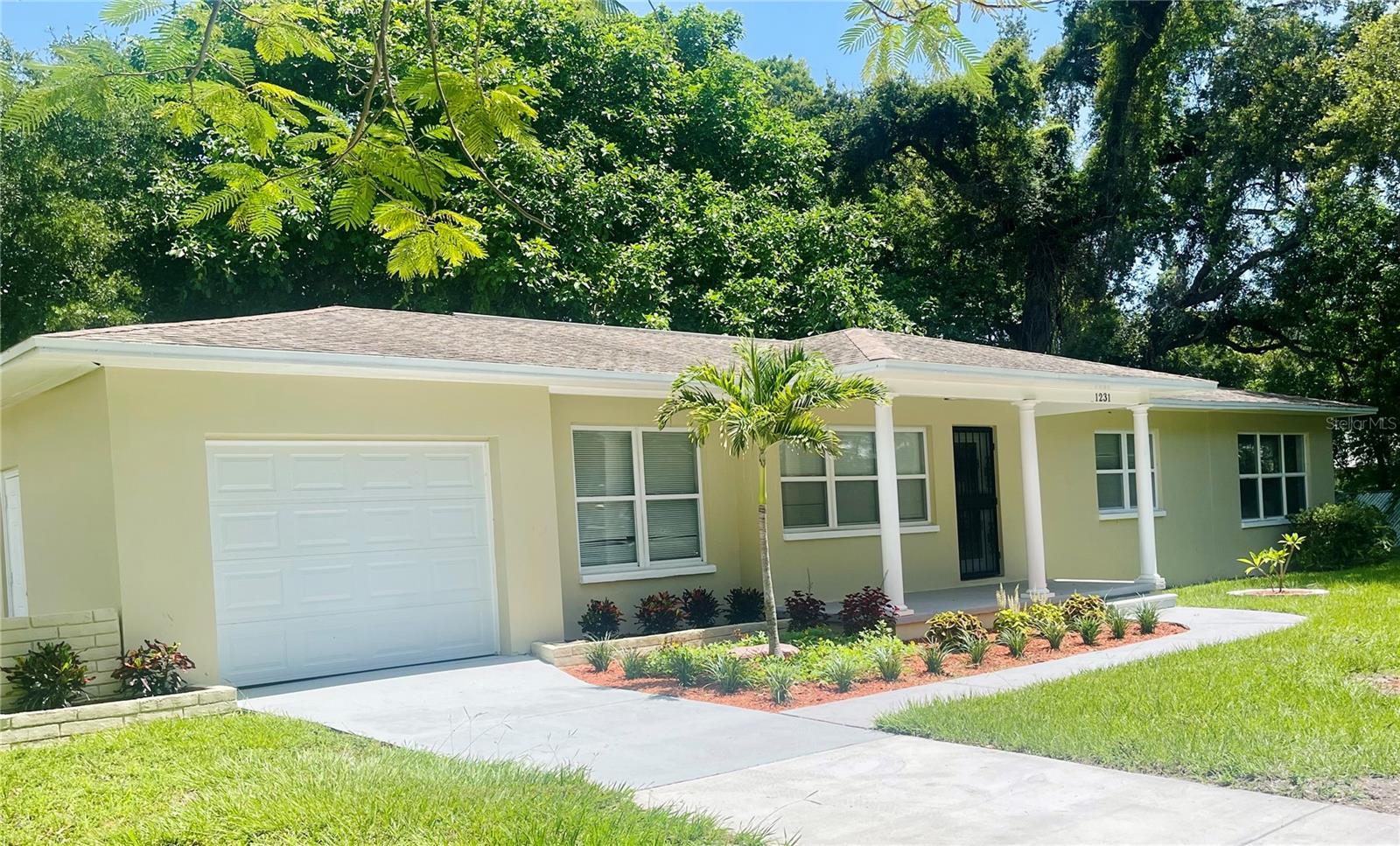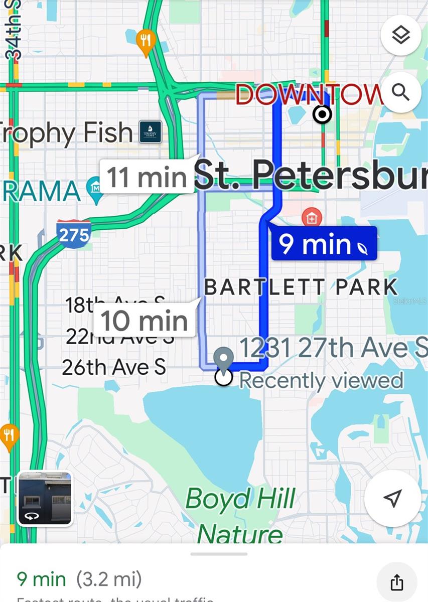 This property offers endless possibilities consisting of a 3 bedroom/1 bath main house with enormous master bedroom, and an attached one bedroom/one bath accessory dwelling unit (ADU) that could be used as an In-law suite, a private home office, or a rental unit to generate additional income. This solid block home situates on a double corner lot in a peaceful neighborhood one block from Lake Maggiore with easy access to I-275 (5 min), downtown St Pete (10 min), and beautiful beaches (15 min). The home has been updated throughout with fresh paint inside and out, modern kitchen cabinets, Quartz countertops, stainless steel appliances, luxury vinyl floor in master bedroom, new water, heater, new garage door and additional attic insulation to conserve energy. Elevation certificate obtained in 2024 reveals that the house's top floor is 9 ft above sea level (100 year floodplain) which will significantly reduce flood exposure and flood insurance premium.