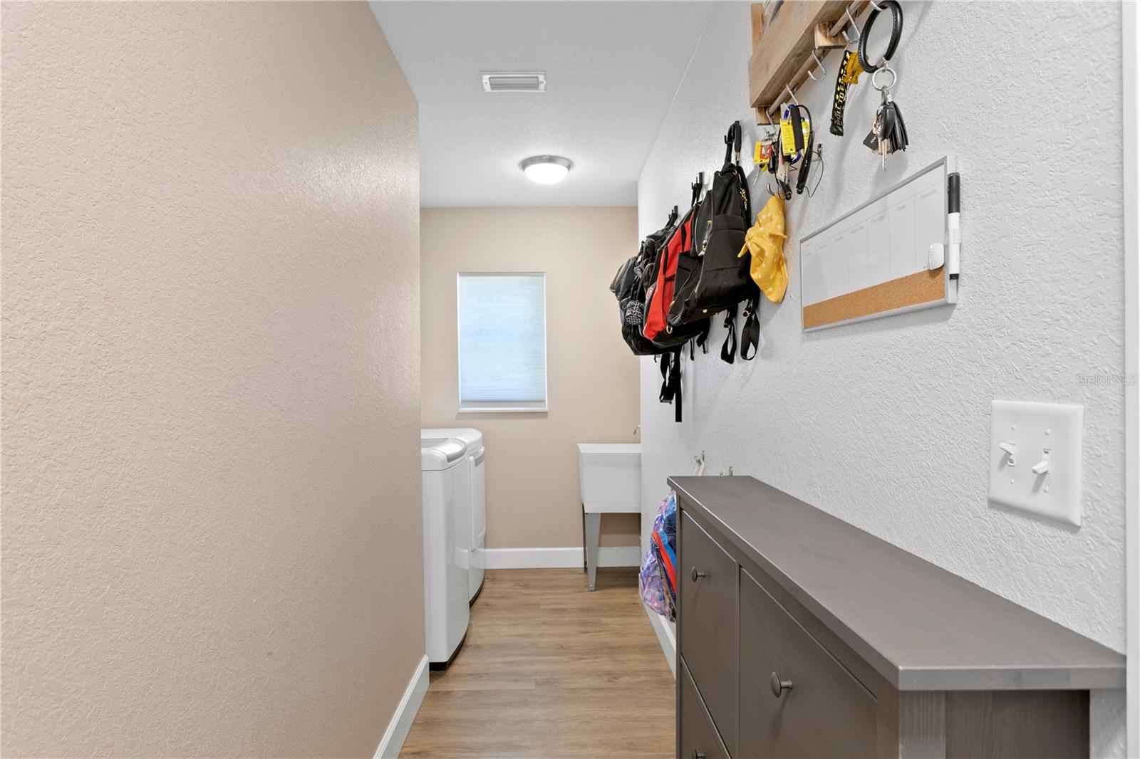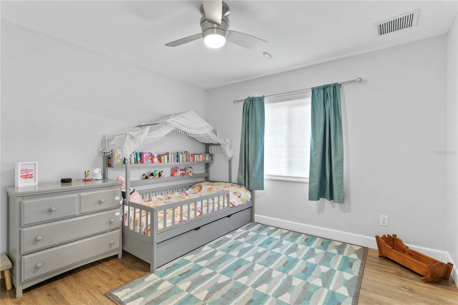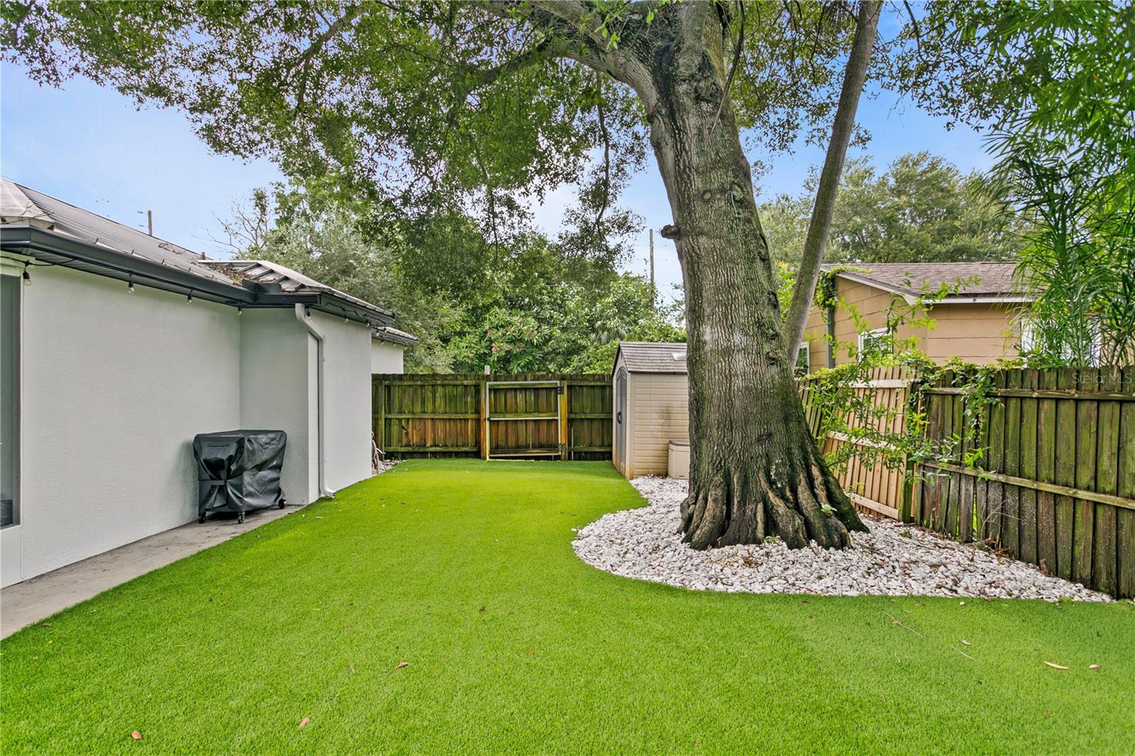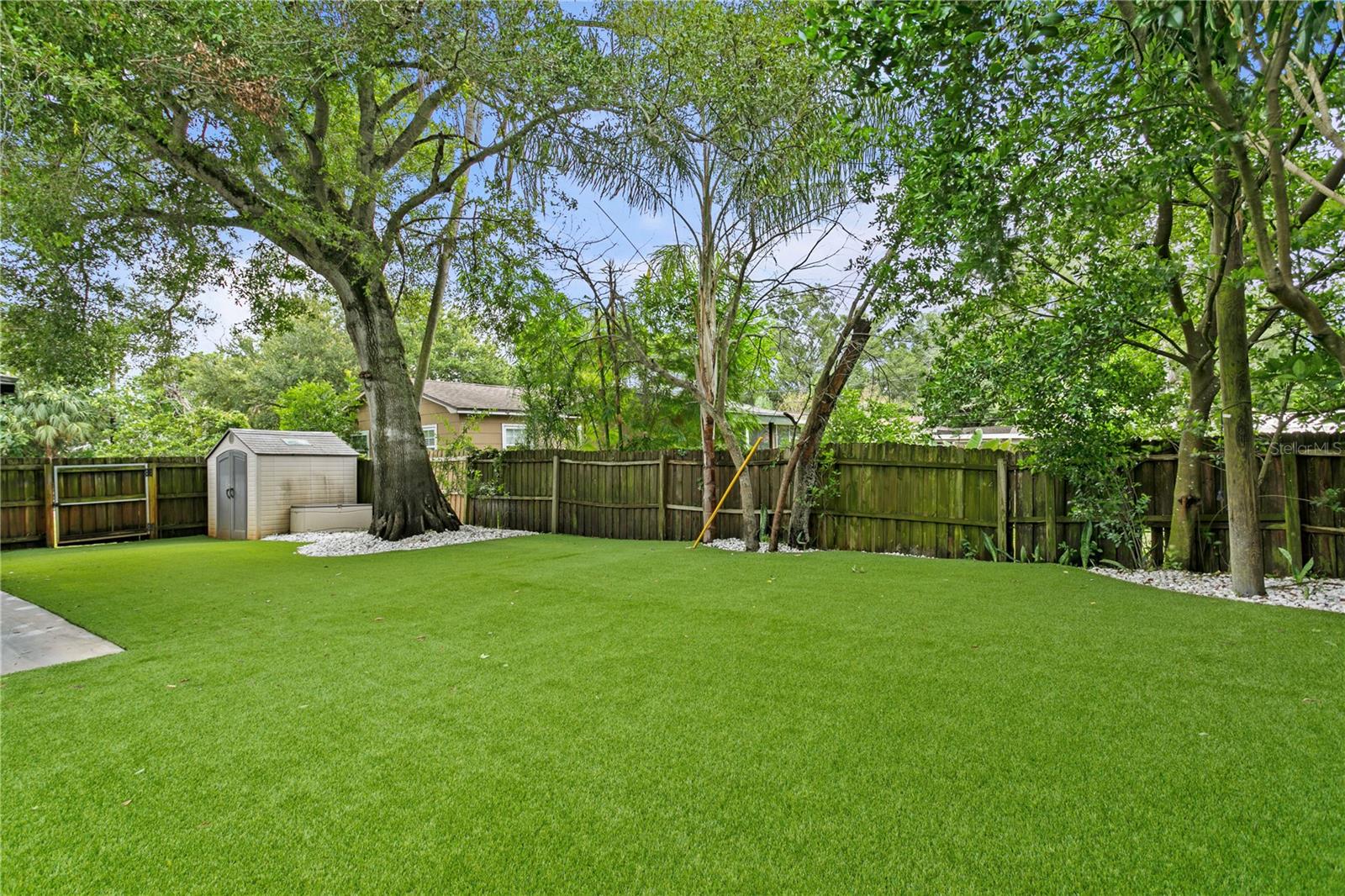This captivating NEWER construction (2016 build) 4-bedroom, 2-bathroom, 2-car garage home features an exciting and spacious floor plan. Step into the home and be greeted by an expansive living room perfect for entertaining. Adjacent to the kitchen is a dining space and bar top. The dream kitchen has been updated with quartz countertops, new backsplash, painted cabinets and ample counter space. The 4th bedroom addition makes it useful for play room, den/office, or guest bedroom (it currently offers a Murphy bed as well) enhancing the home's versatility. The split bedroom layout offers privacy, with a huge master bedroom featuring a custom walk-in closet. The master bathroom is a showstopper, with a tiled shower, dual sinks, and a granite vanity top. The well-sized second and third bedrooms also include sizable closets and conveniently situated away from entertaining spaces. Additional features include an inside laundry room, a new and oversized screened-in porch, and new exterior paint. Enjoy a large backyard with artificial turf — be maintenance free in the backyard! The yard is enclosed by a 6-foot privacy fence, providing both security and seclusion. Situated on a corner lot, this home offers added space and privacy. For peace of mind, all windows and doors are hurricane-proof, making this home both beautiful and resilient.