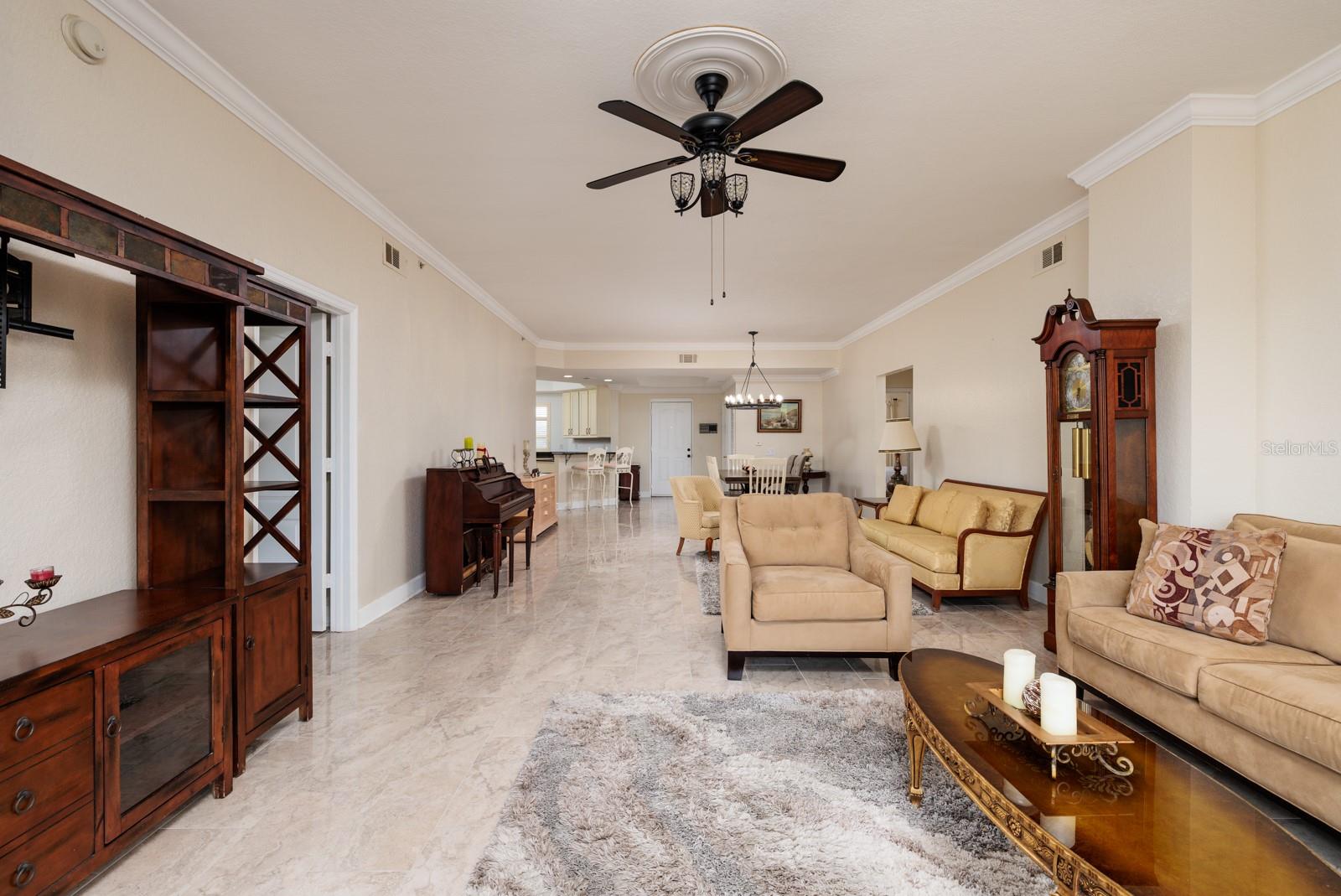 GORGEOUS in GRANDE VERANDAHS ON THE BAY ~ Location, Location, Location! Fall in LOVE with this THIRD FLOOR 3 bedroom and 2 bathroom CONDO in the BEAUTIFUL Community of GRANDE VERANDAHS ON THE BAY ~ an AMAZING location in Pinellas County! YOU WILL LOVE this maintenance free condo situated in this BEAUTIFUL COMMUNITY! This GORGEOUS CONDO has been lovingly and meticulously maintained. Pull up to LUSCIOUS TROPICAL landscape, palm trees, and BEAUTIFUL curb appeal. FALL in LOVE with the UNIQUE BEAUTIFUL exterior and be immediately drawn to the beauty of this Community. YOU WILL LOVE the abundance of light as you enter into this cozy 3 bedroom and 2 bathroom home. YOU WILL LOVE COOKING in the BEAUTIFUL OPEN kitchen, which is a chef's dream! It is very spacious with a HUGE breakfast bar, beautiful cabinetry, GORGEOUS tile backsplash, granite countertops, stainless appliances, and HUGE WALK-IN PANTRY. This home is open and inviting ~ allowing the chef to be part of the activity. The kitchen opens up to a bright cozy Dining Room/Living Room Combo. The SPACIOUS Dining Room/Living Room Combo area is welcoming and provides a wonderful space to relax while enjoying PRIVATE BALCONY VIEWS with sliding doors. The large private balcony is perfect for entertaining. Enjoy the BEAUTIFUL peaceful views. This home offers a large primary suite with SPACIOUS walk-in closets, an en-suite bathroom with SPACIOUS WALK-IN shower, soaking tub, private water closet, large vanity and dual sinks. Enjoy the private entry to the HUGE balcony. This perfect family home has everything you could want from crown molding, open floor plan, split bedrooms, plantation shutters, SPACIOUS indoor laundry room, assigned COVERED parking spaces, and much more! The HOA includes ~ exterior maintenance on building, lawn maintenance, recreational facilities, GORGEOUS community pool, FITNESS ROOM, sewer, trash, and water! Enjoy this maintenance free lifestyle of living! GRANDE VERANDAHS is one of the BEST locations offering quick access to TAMPA, DOWNTOWN ST. PETE, airports, beaches, interstates, shopping, and restaurants. YOU MUST SEE this little bit of Florida Paradise in this MAINTENANCE FREE COMMUNITY! **AVAILABLE to rent, FURNISHED, annual lease, $3,200/month**