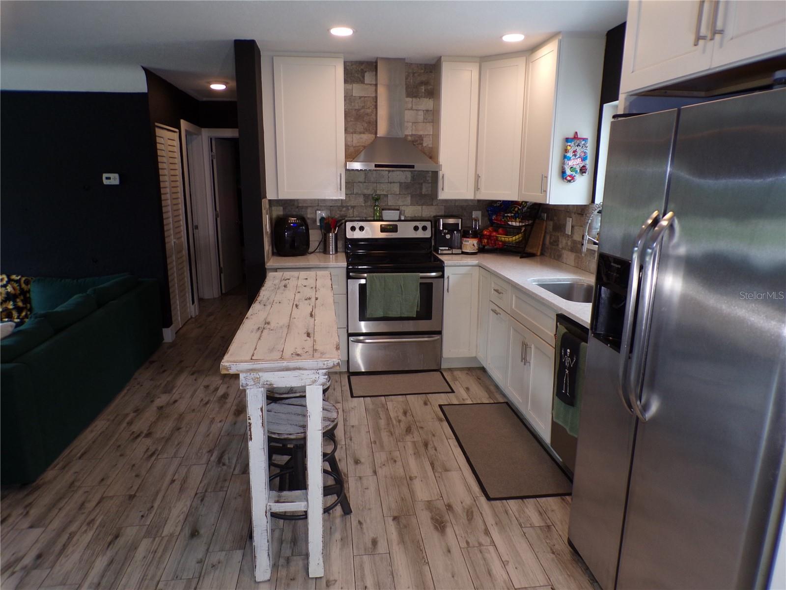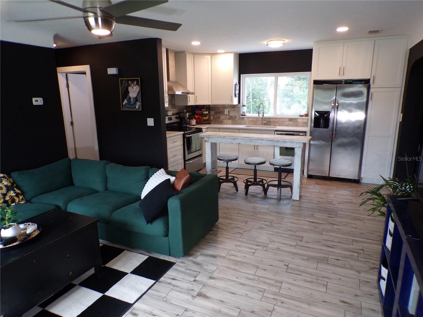 THIS HOUSE MADE IT THROUGH HURRICANE HELENE AND MILTON WITH ZERO DAMAGE! NOT A FLOOD ZONE, NO FLOOD INSURANCE REQUIRED! This 3 bedroom, 1 bath, affordable, concrete block beauty was completely remodeled with permits from top to bottom in 2017 including roof, AC system, kitchen, bathroom, texture, paint, flooring, electrical, windows, all doors, hardware, fixtures and more. One family has owned the home since and has maintained it wonderfully. The completely open living room to kitchen, with large windows in both, has a connecting flow that feels very spacious. The kitchen is simply stylish with stainless steel appliances and range hood, attractive tile backsplash, and higher level granite countertops. The flooring choice is excellent with stylish wood plank tile throughout all common areas. The house is on a great size lot with plenty of yard space in the back. Come check out this property, fall in love with it, and we will be waiting to hear from you.