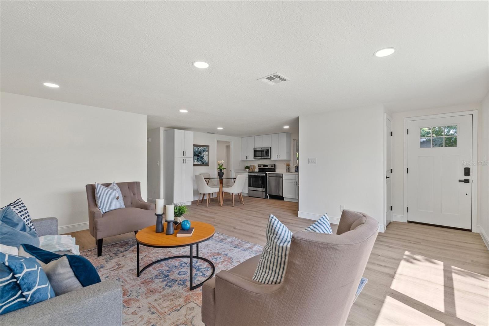 Welcome to your dream home, a beautifully renovated gem just minutes from downtown St. Pete! This charming residence offers three bedrooms and two fully remodeled bathrooms, providing a perfect blend of comfort and style. The heart of the home features a brand-new kitchen with state-of-the-art appliances, including brand-new stove, refrigerator, dishwasher, and microwave—ideal for both everyday meals and entertaining guests. Throughout the home, the flooring is brand-new, providing a fresh, modern feel. It also boasts brand-new double-glass, energy-efficient windows, enhancing both comfort and efficiency. The brand-new AC system ensures year-round climate control, while the newly installed roof provides peace of mind and long-term durability. Step outside to discover the massive backyard—an oasis of privacy and potential, perfect for gardening, play, or relaxation. This expansive outdoor space is a rare find so close to the vibrant downtown area, where you can enjoy local shops, restaurants, and cultural attractions. With every detail thoughtfully updated, from sleek new fixtures to fresh finishes, this home seamlessly combines modern convenience with classic charm. Don’t miss out on the chance to make this your new address!