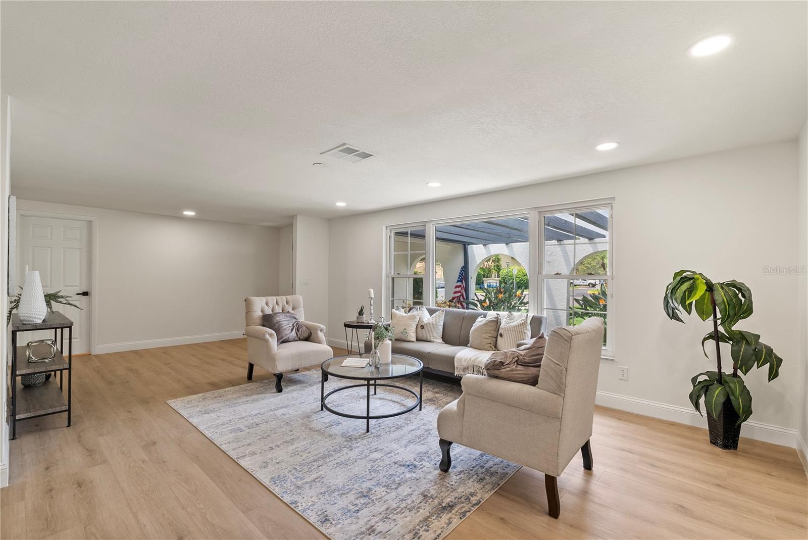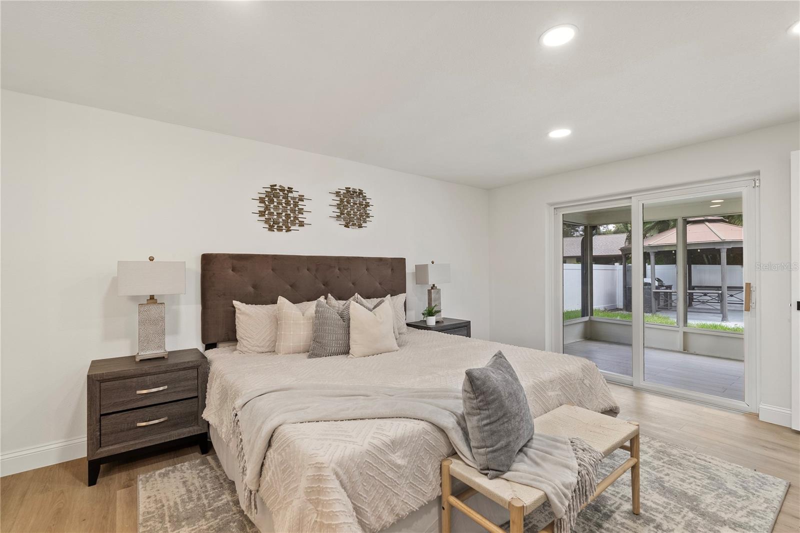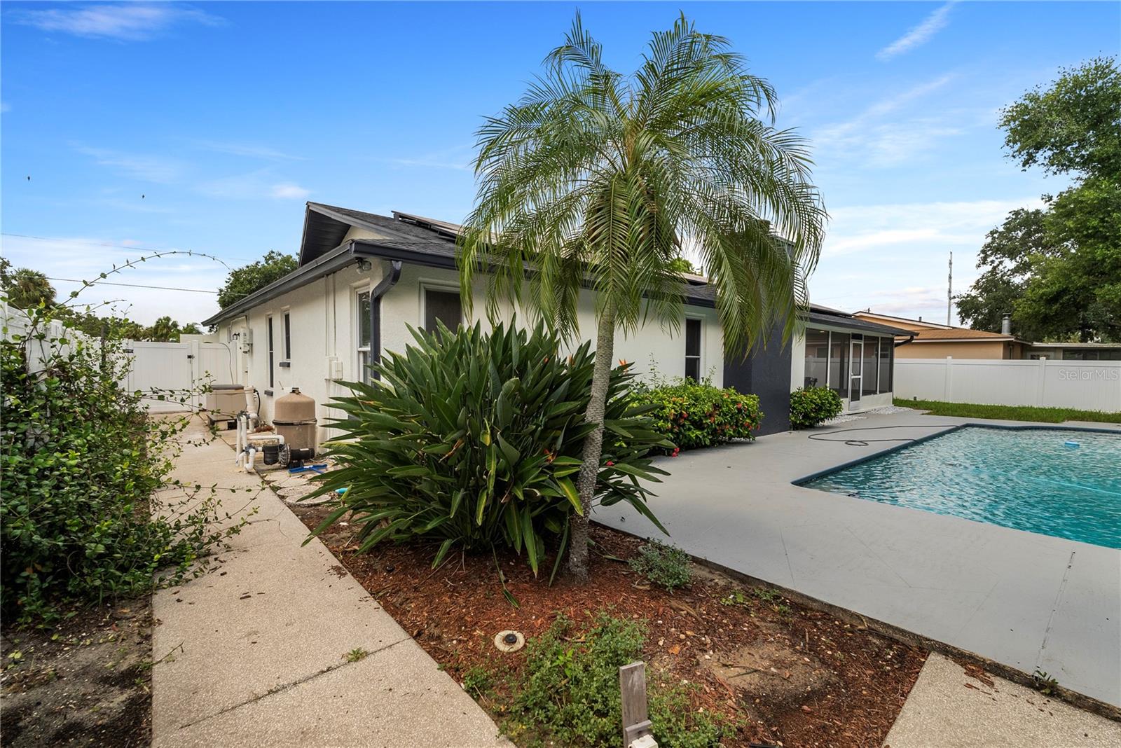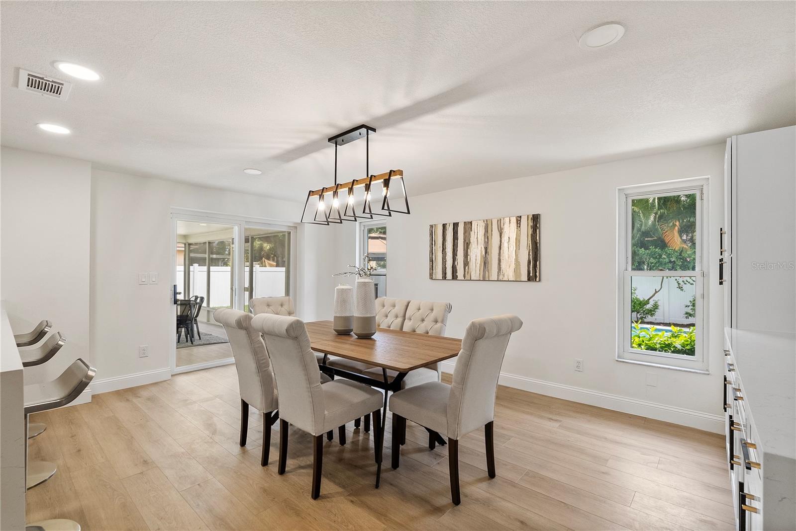 Welcome to this stunning, fully renovated home located in a serene and picturesque community. This spacious residence offers three generously sized bedrooms and two elegant bathrooms, providing a perfect blend of comfort and style. The heart of the home is a sprawling kitchen, complete with brand-new appliances and ample counter space, seamlessly flowing into a large dining room—ideal for family gatherings and entertaining. Step outside to discover your private paradise: a gorgeous pool surrounded by lush landscaping, creating a tranquil retreat right in your backyard. A brand new outdoor kitchen enhances your alfresco dining experience, making it effortless to enjoy meals and entertain guests in style. The property also features a well-maintained garage, adding convenience and additional storage space. The property also boasts brand-new flooring throughout, enhancing the fresh and modern feel. The bathrooms have been tastefully remodeled, and the windows have been replaced with brand-new double-glass, energy-efficient units. While the roof, renovated just seven years ago, promises durability and efficiency. In addition to these exceptional features, this home is equipped with a cutting-edge solar panel system, offering significant energy savings and environmental benefits. With its blend of modern updates, eco-friendly innovations, and serene surroundings, make this your new home and experience the perfect sanctuary for both luxury and relaxation.