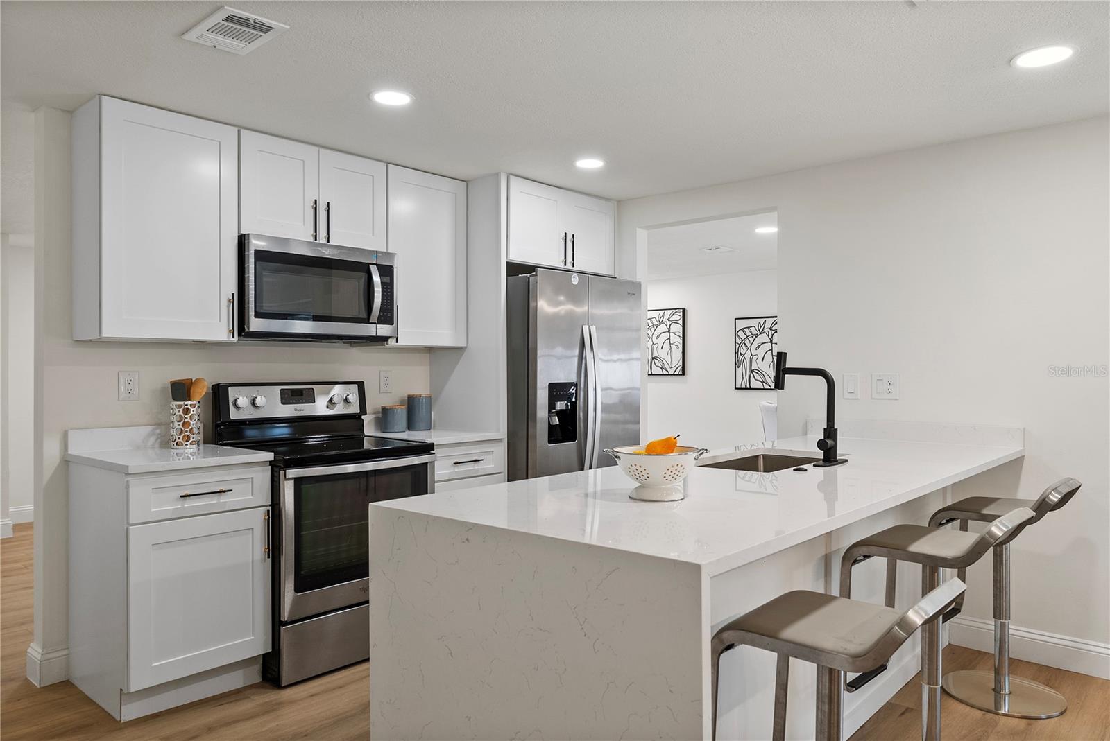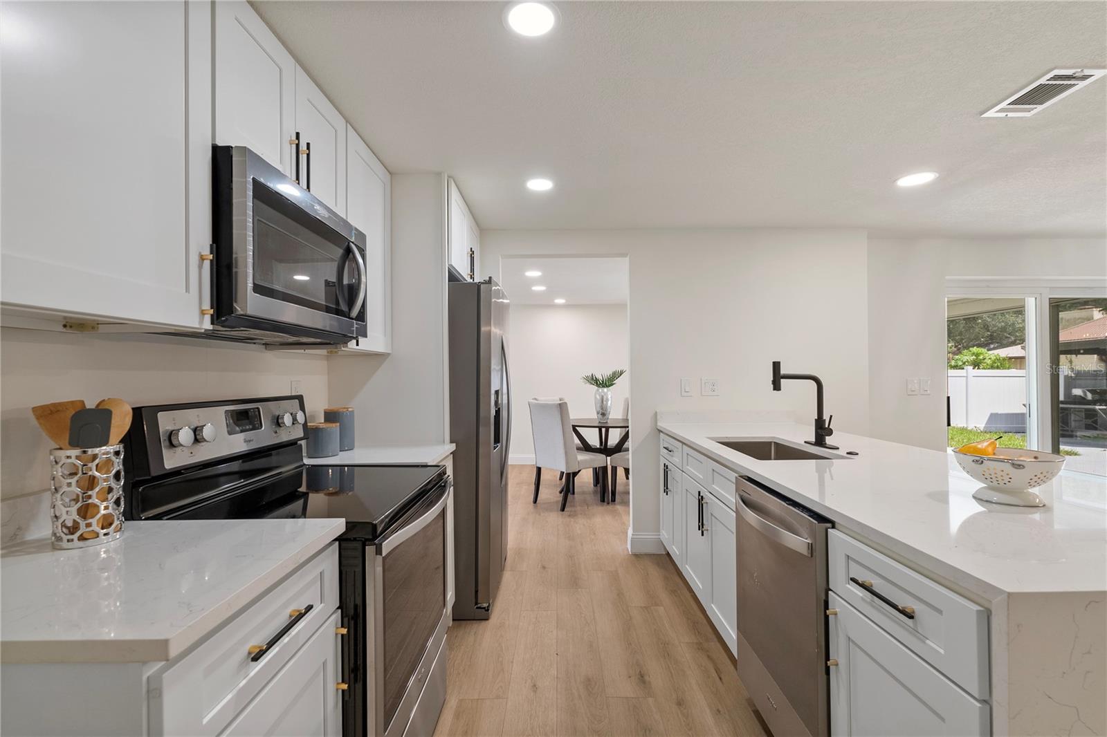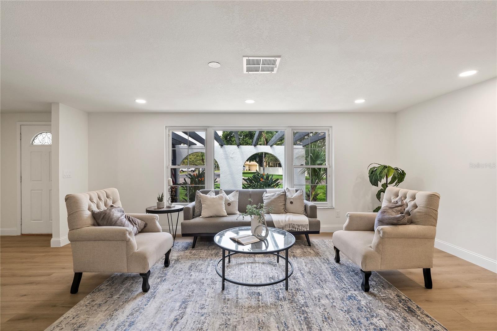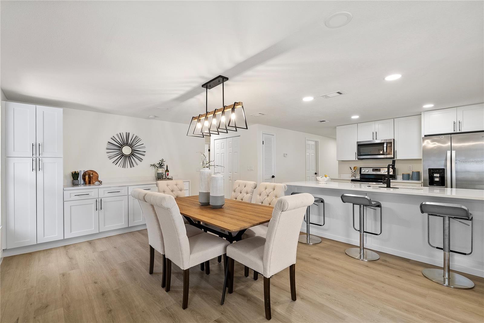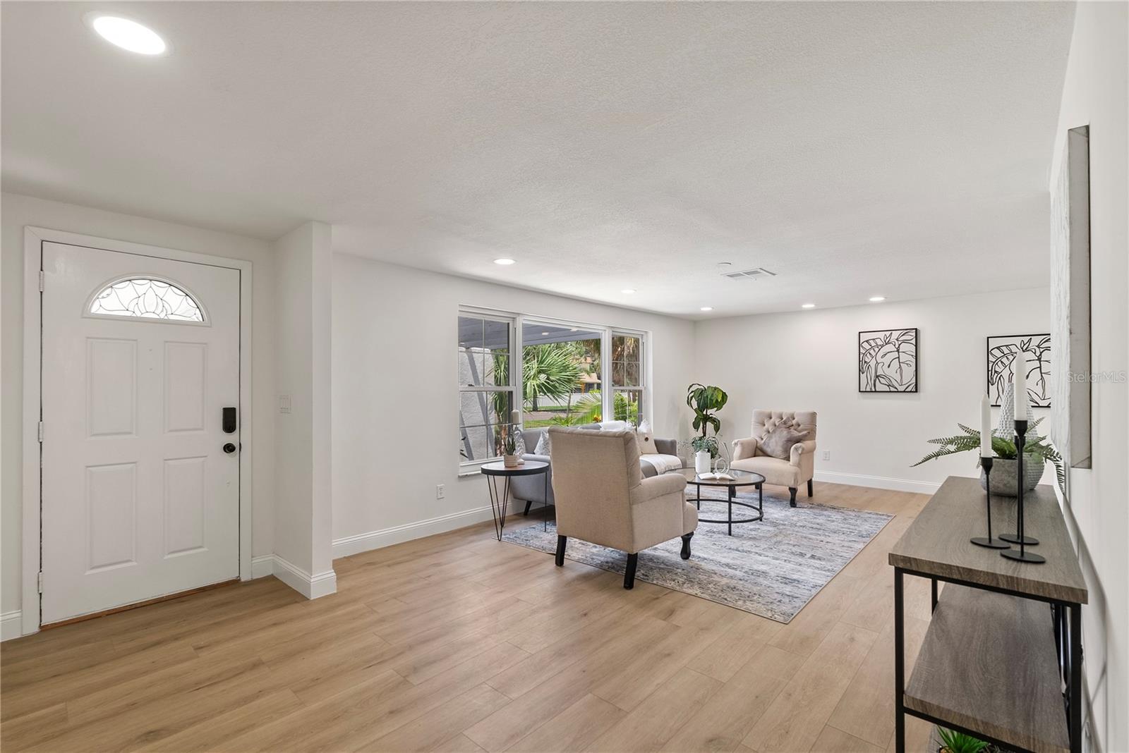 Welcome to this stunning, fully renovated home located in a serene and picturesque community. This spacious residence offers three generously sized bedrooms and two elegant bathrooms, providing a perfect blend of comfort and style. The heart of the home is a sprawling kitchen, complete with brand-new appliances and ample counter space, seamlessly flowing into a large dining room—ideal for family gatherings and entertaining. Step outside to discover your private paradise: a gorgeous pool surrounded by lush landscaping, creating a tranquil retreat right in your backyard. A brand new outdoor kitchen enhances your alfresco dining experience, making it effortless to enjoy meals and entertain guests in style. The property also features a well-maintained garage, adding convenience and additional storage space. The property also boasts brand-new flooring throughout, enhancing the fresh and modern feel. The bathrooms have been tastefully remodeled, and the windows have been replaced with brand-new double-glass, energy-efficient units. While the roof, renovated just seven years ago, promises durability and efficiency. In addition to these exceptional features, this home is equipped with a cutting-edge solar panel system, offering significant energy savings and environmental benefits. With its blend of modern updates, eco-friendly innovations, and serene surroundings, make this your new home and experience the perfect sanctuary for both luxury and relaxation.
