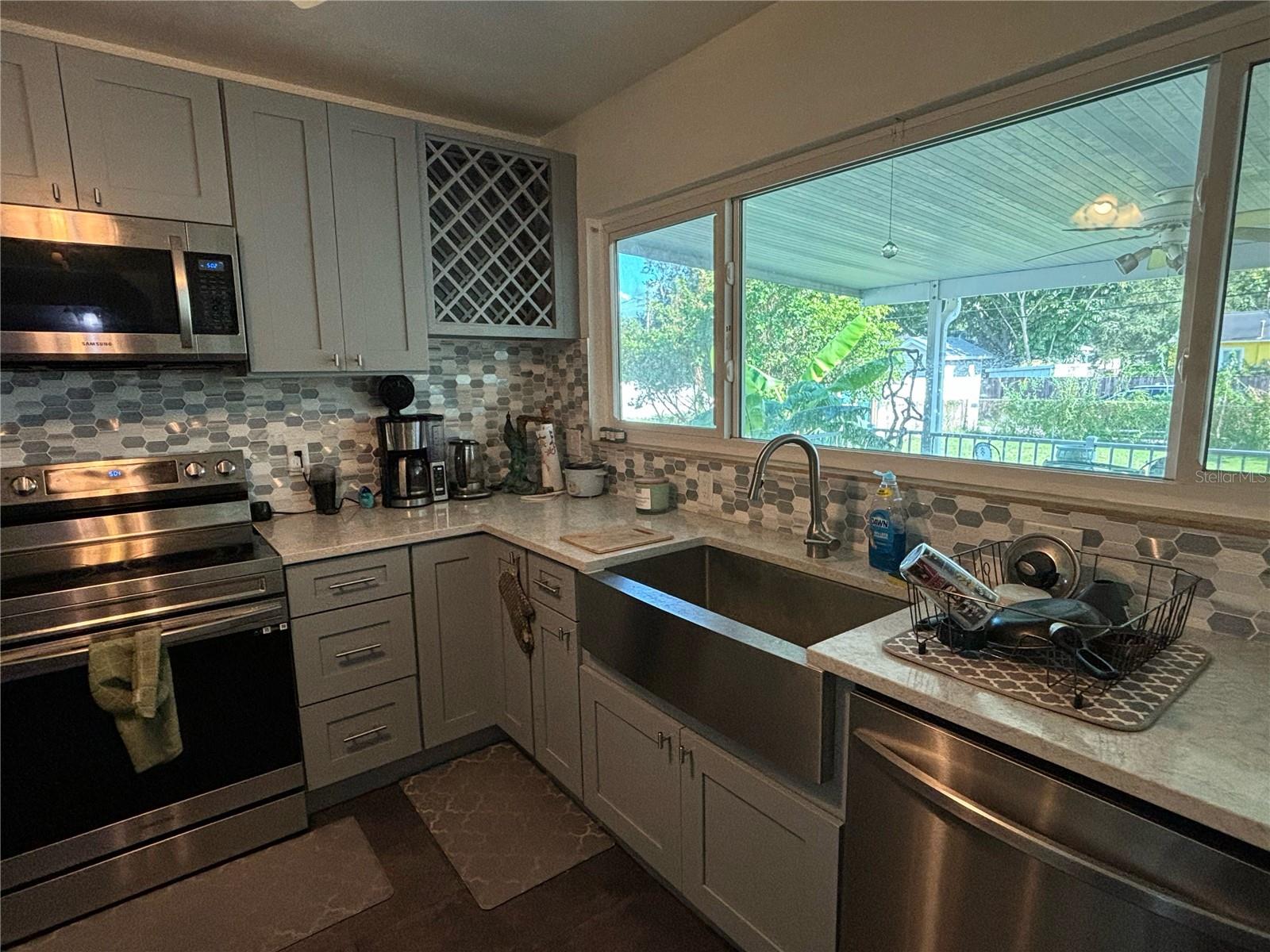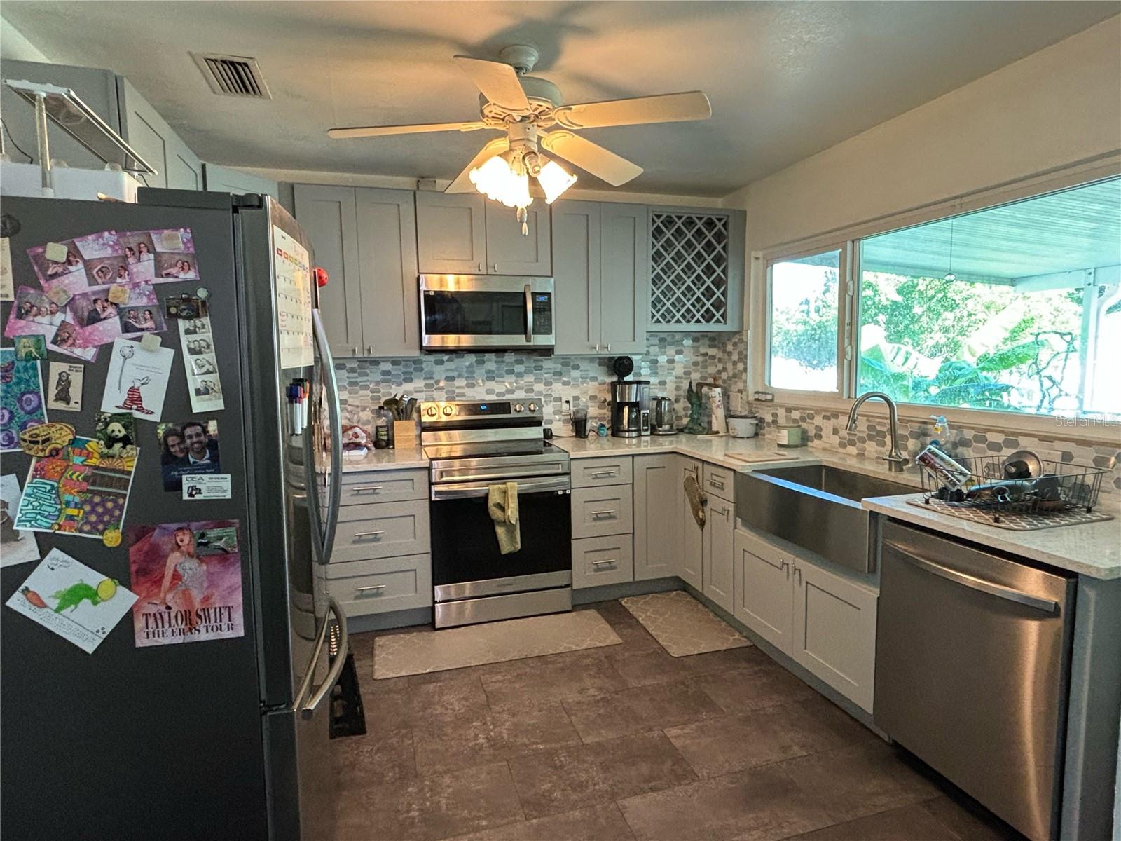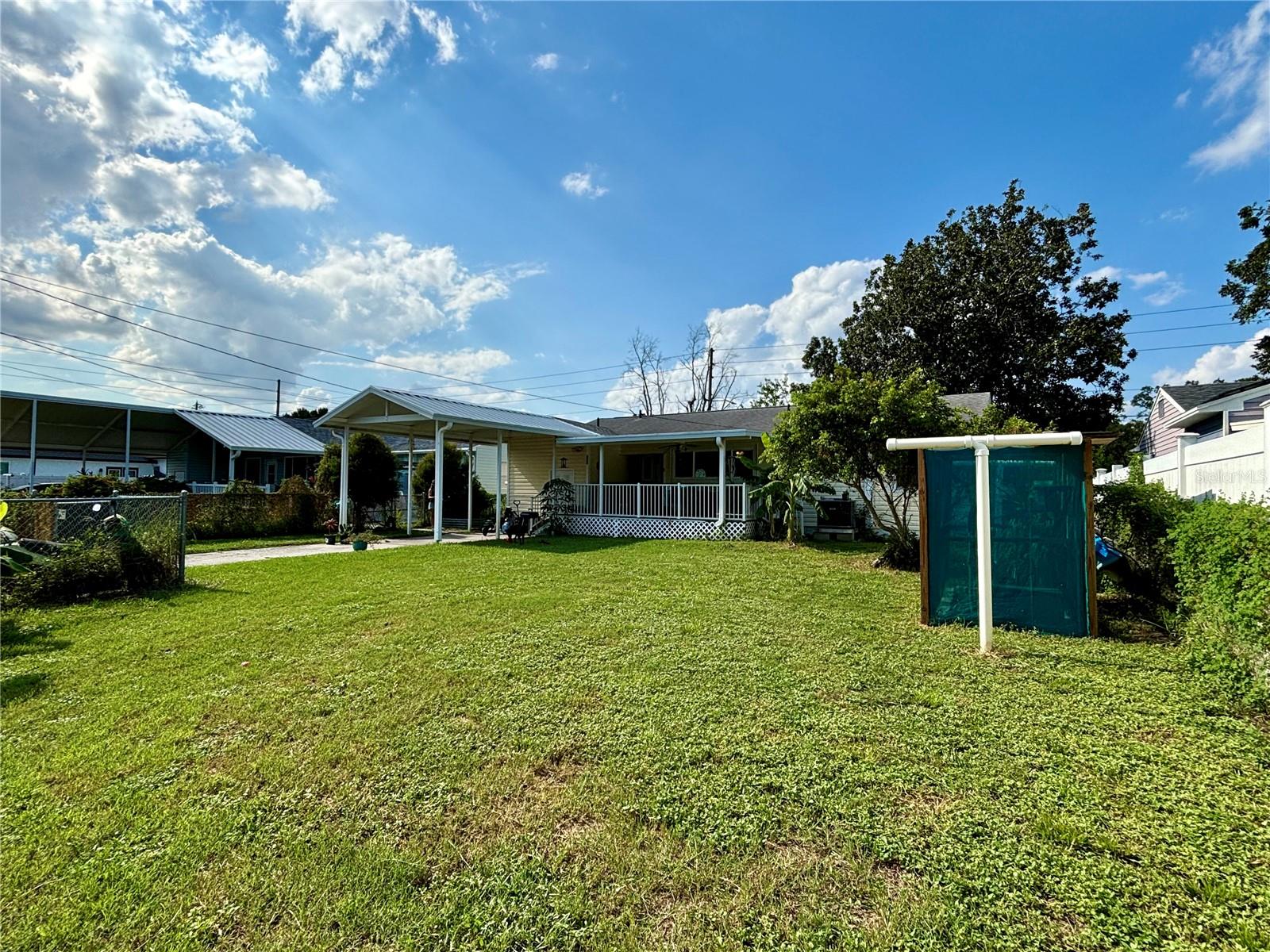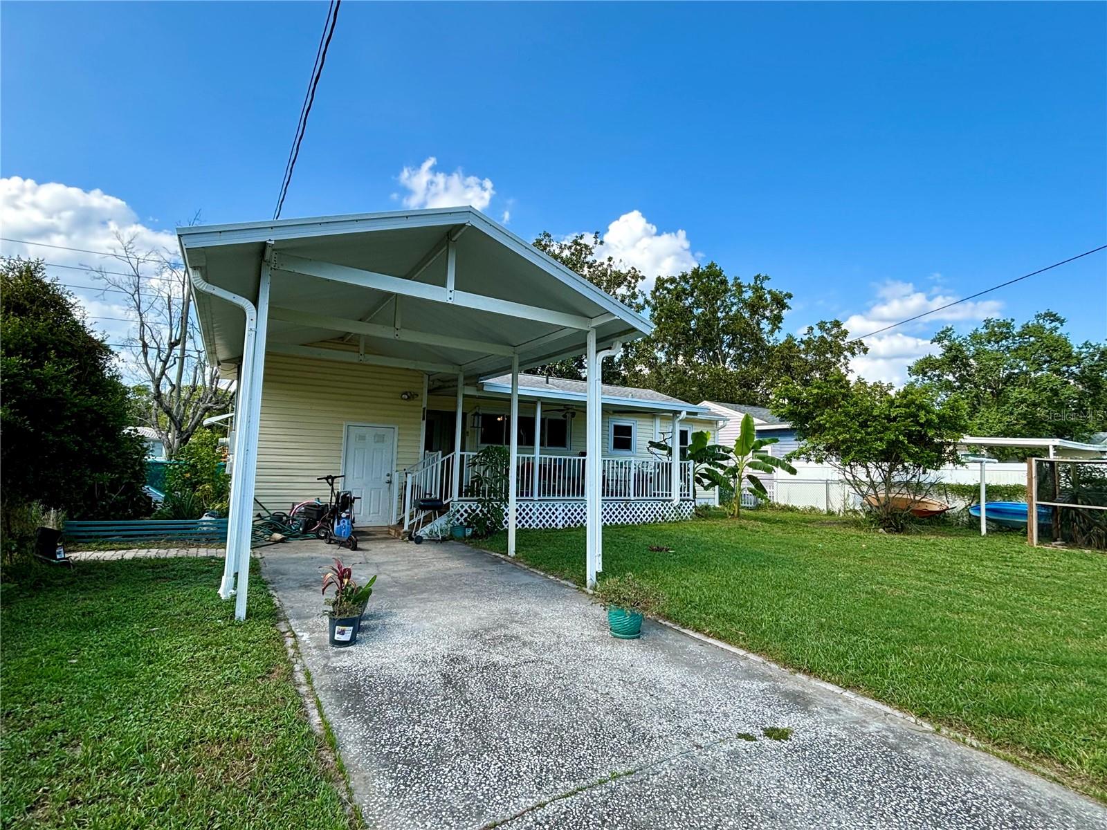 Welcome to this lovely home featuring an open floor plan with vaulted ceilings in the living room, creating an inviting and spacious atmosphere. The home boasts new window treatments in living room, a remodeled kitchen, and fresh flooring installed in the kitchen and living room in 2022, seamlessly blending with the original hardwood floors in other areas of the house. Key upgrades include a new AC unit (2021), new ductwork and insulation (2020), a new water heater (2024), and fresh interior paint (2022). The large backyard offers alley access, perfect for additional parking or future expansion, and includes a covered deck ideal for entertaining or relaxing, as well as a large storage shed for all your outdoor needs. Convenience is at your doorstep, with inside laundry for added comfort. This home is perfectly situated just a few blocks from Crisp Park, Publix, Whole Foods, shopping, and a variety of dining options. Don’t miss the opportunity to live in the heart of Northeast Park/Snell Shores—schedule your showing today!